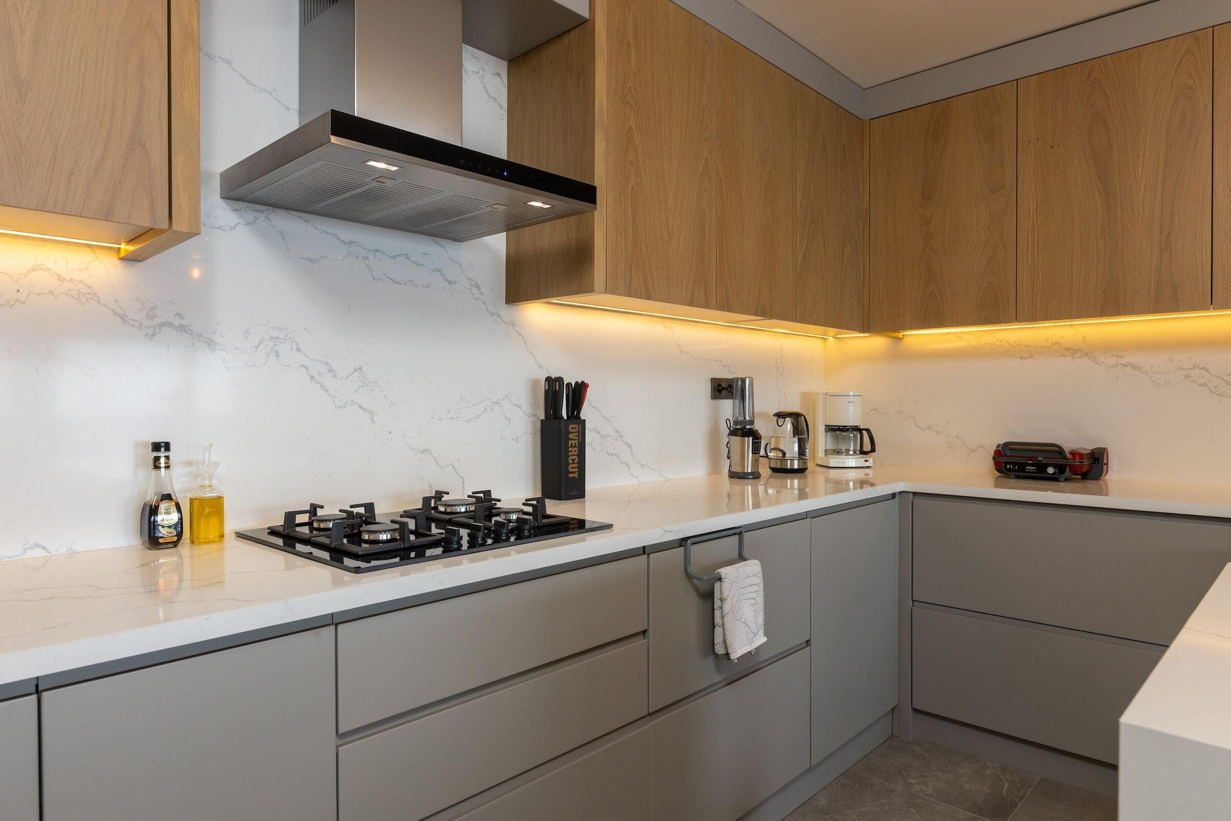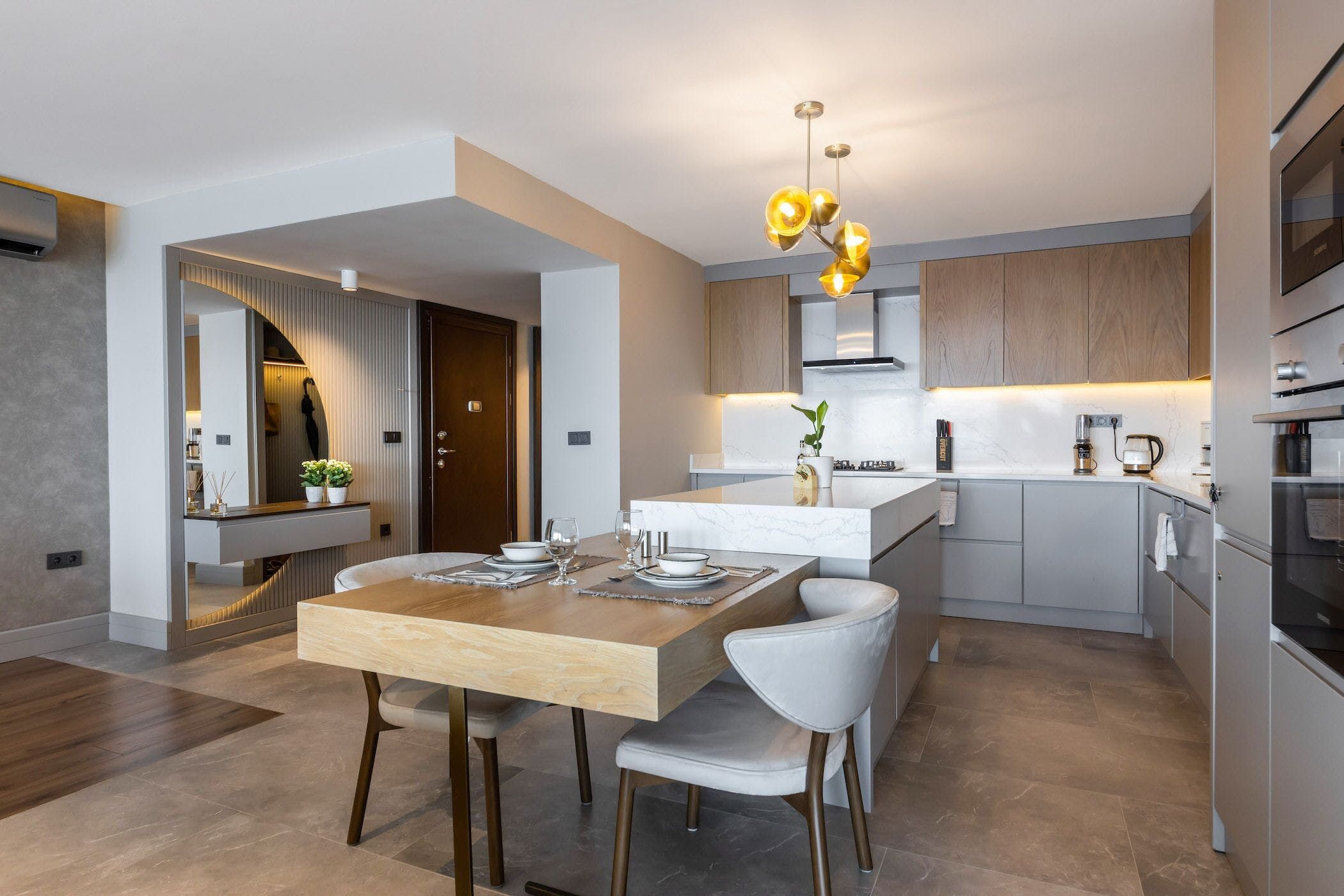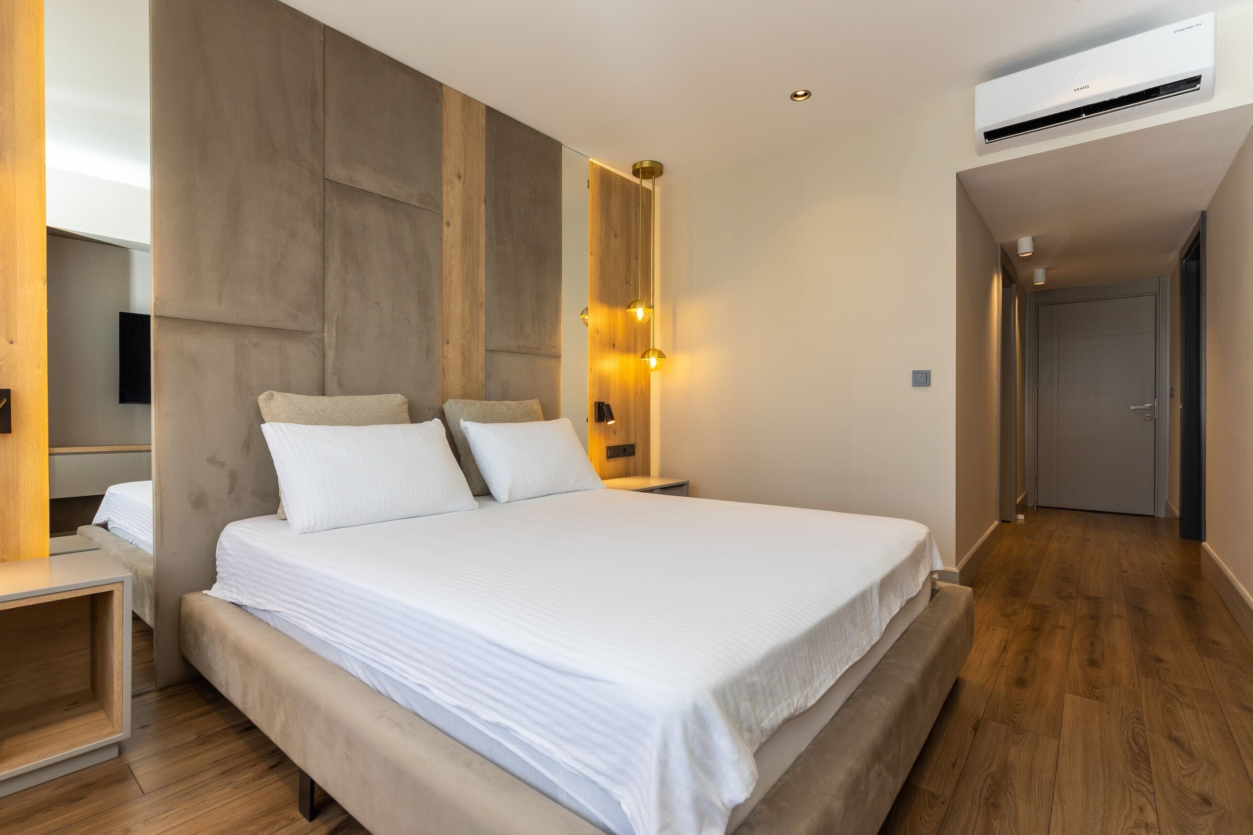 With its commanding position looking out over the Mediterranean and Antalya, you'll feel like a monarch while you're on the balcony of this penthouse home. The open-plan living space makes the home perfect for family reunions or friendly get-togethers, and the floor-to-ceiling windows ensure you can still enjoy the view. Nearby, you'll find local eateries, the harbour, and historical sites, and Mermerli Beach is just a ten-minute walk.