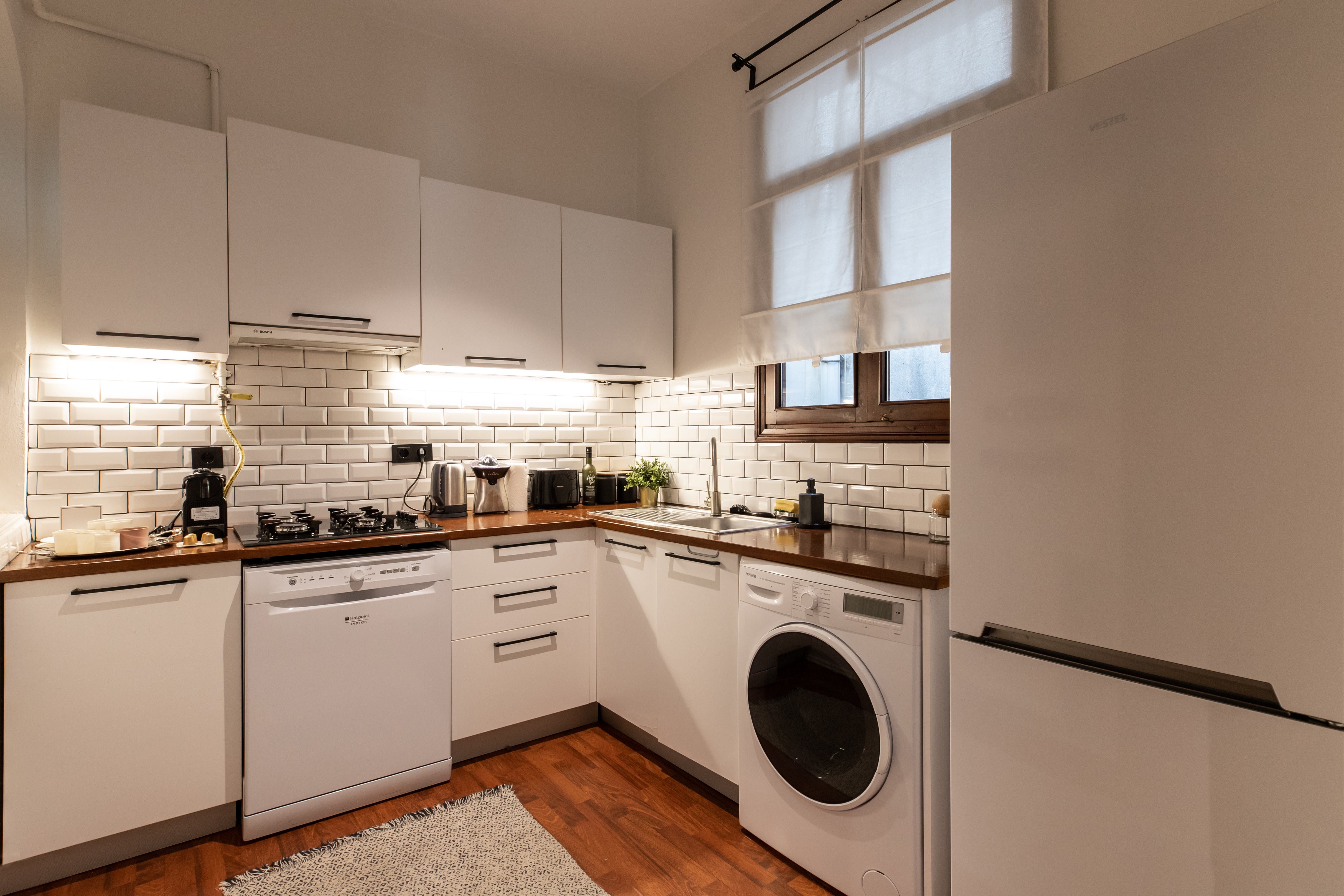 We love the generous space, high ceiling and streams of natural light that come flooding in through the large windows. Get cosy in the elegant living room and enjoy an evening of TV and wine in the company of your loved ones. While there’s certainly no lack of excellent dining out options in the vicinity, you can also choose to have a quiet evening at home, in which case rustling up something delicious will be a breeze, thanks to the modern and well-equipped kitchen.