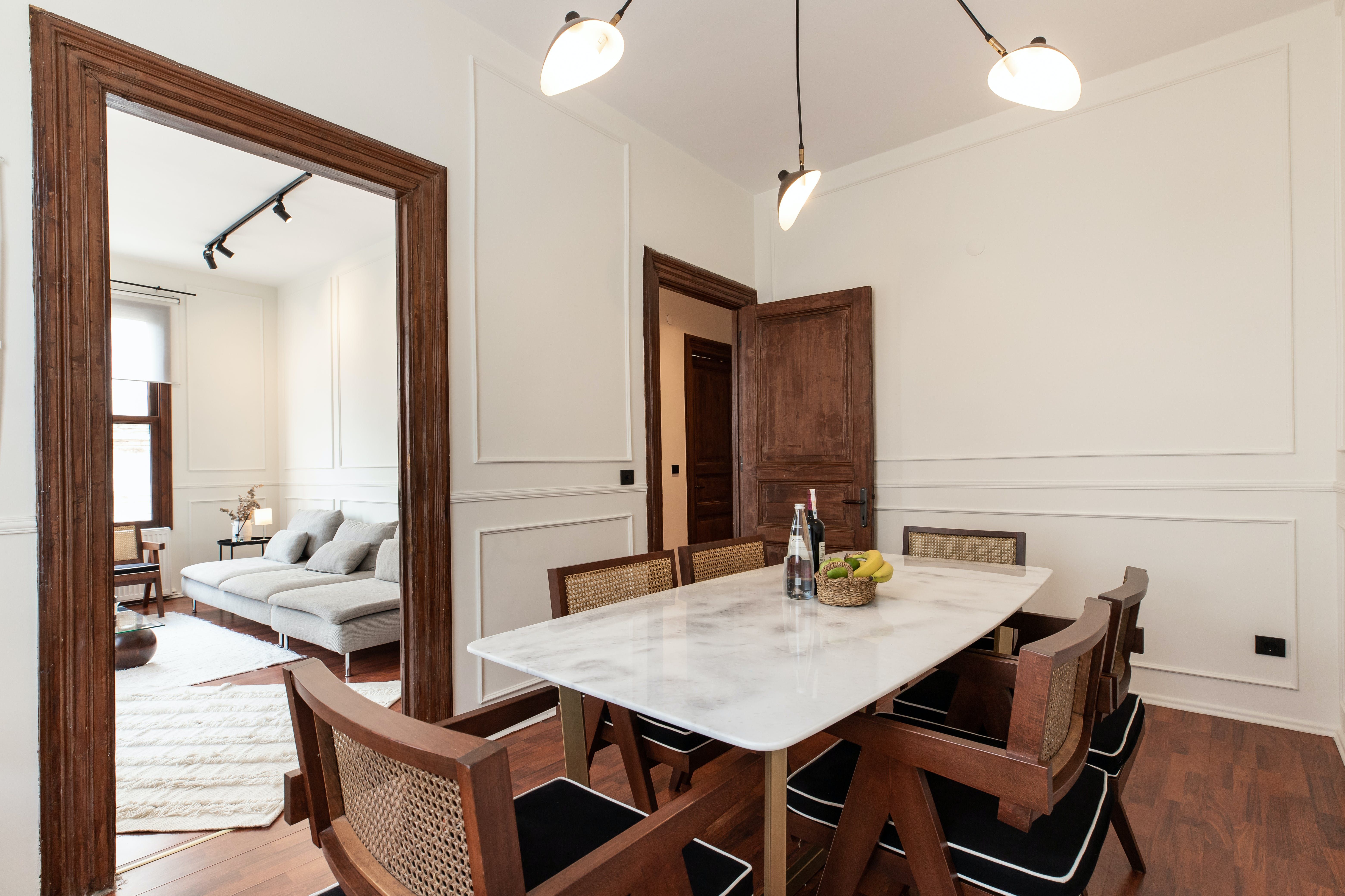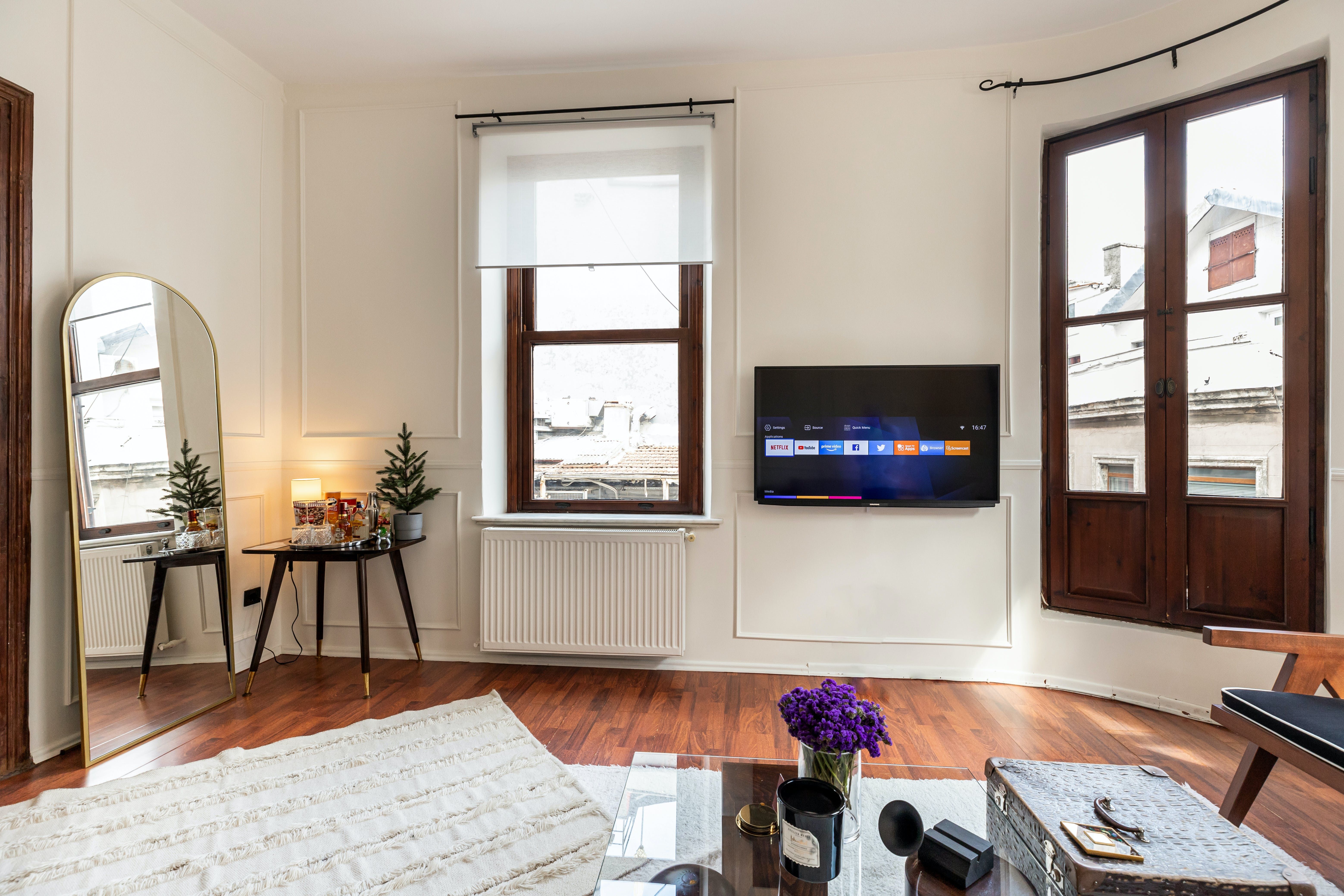 This gorgeous apartment situated inside a historic building right in the beating heart of Istanbul is an ideal base for a family or a group of friends wanting to make the most of their time in this magical city. While you’ll have to climb up quite a few stairs to reach this fourth-floor pad, it’ll be worth it once you come in and find yourself embraced by the warm ambience.