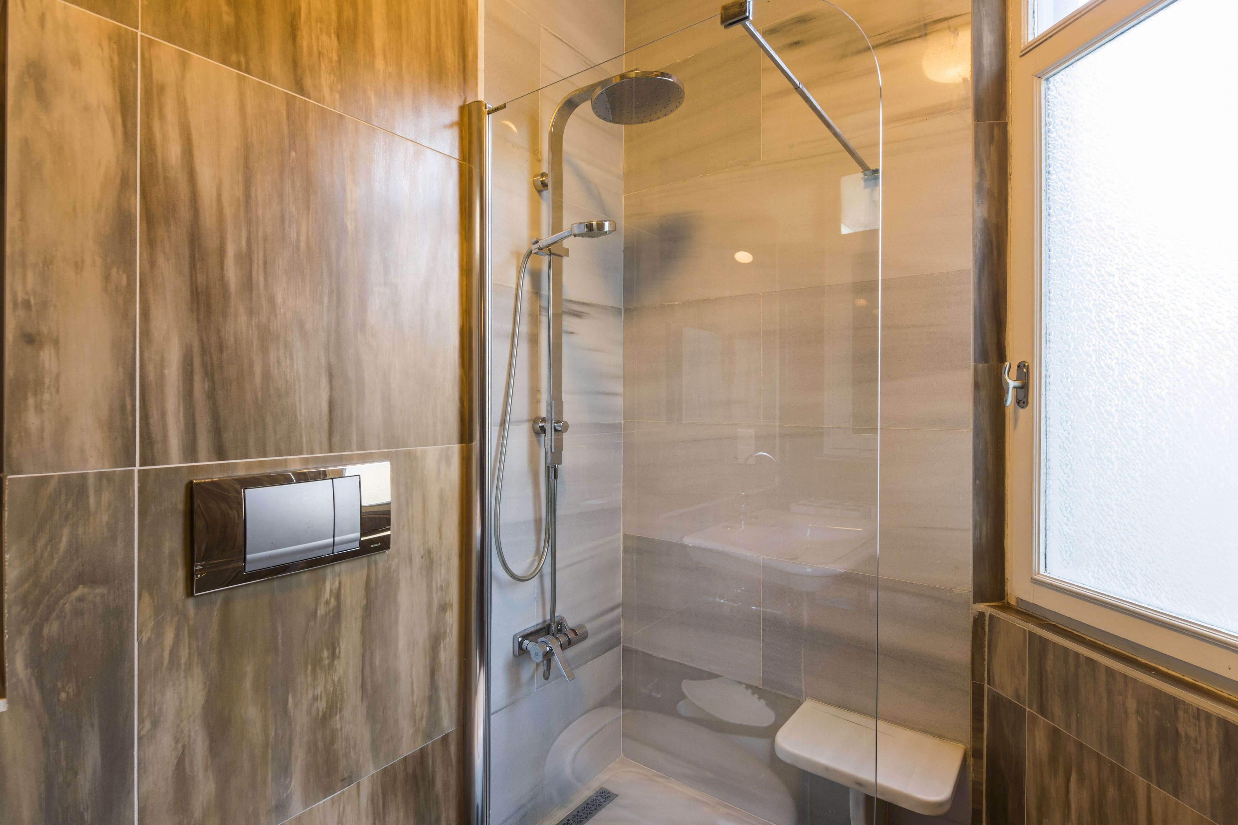 Inside, modernity meets tradition and we love the living room on the top floor with its warehouse-style windows showing off the view. This is the perfect spot for the group to gather and dine as the sun sets. Those lucky enough to bag the main bedroom can enjoy a post-sightseeing soak in the Jacuzzi tub with a cityscape panorama.