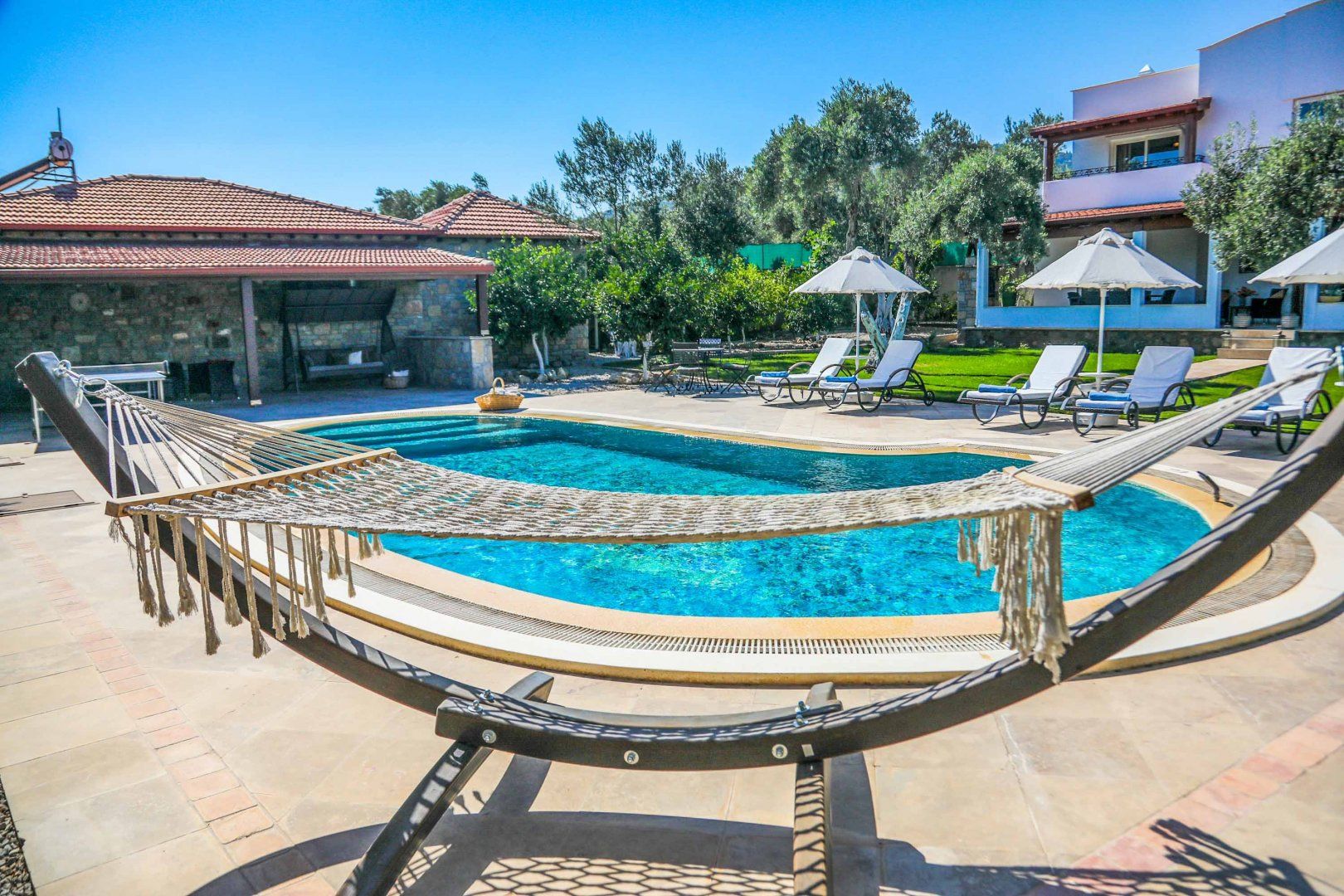 Situated on the outskirts of Bitez, this villa might be a bit out of the way for some, but others will love its location among Muğla’s verdant olive groves. The fenced garden is the standout feature here, offering total privacy and peace of mind for those travelling with young children. And your host has provided plenty of amenities to please the whole family, from Bluetooth speakers to a poolside ping-pong table. Even better, you’re just a short drive from the city of Bodrum, perfect if you fancy a sunset stroll by the Aegean Sea.