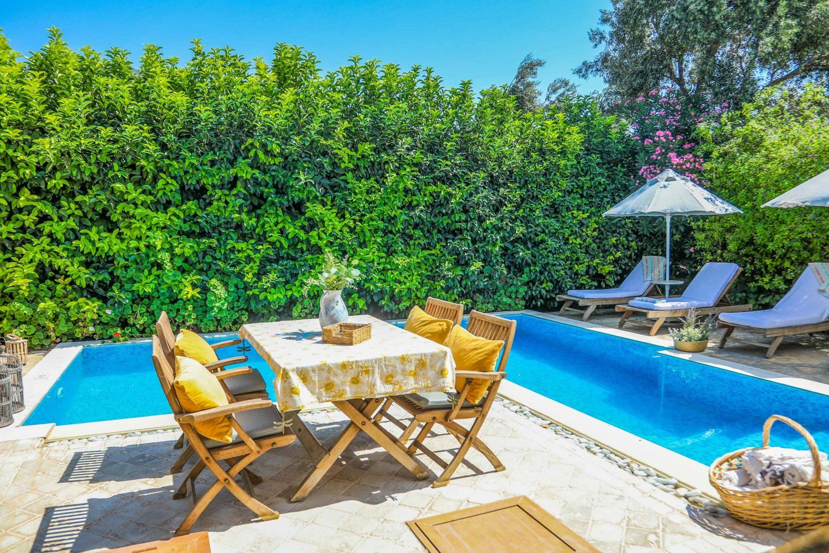 Just ten minutes from Bodrum, this villa is a cosy escape close to the Turkish coast. We're big fans of both bedrooms having en-suite (albeit somewhat dated) bathrooms, although our eyes are on the main with its open-air whirlpool tub. It's also situated on one level, so it'd be a good fit for families with children or guests who struggle with stairs. Outside, the garden offers a private swimming pool ideal for afternoon dips and shady spots where you can sit back with a glass of wine and relax. Factor in the charming coastal villages and Blue Flag beaches within driving distance, and you can see why we like it.