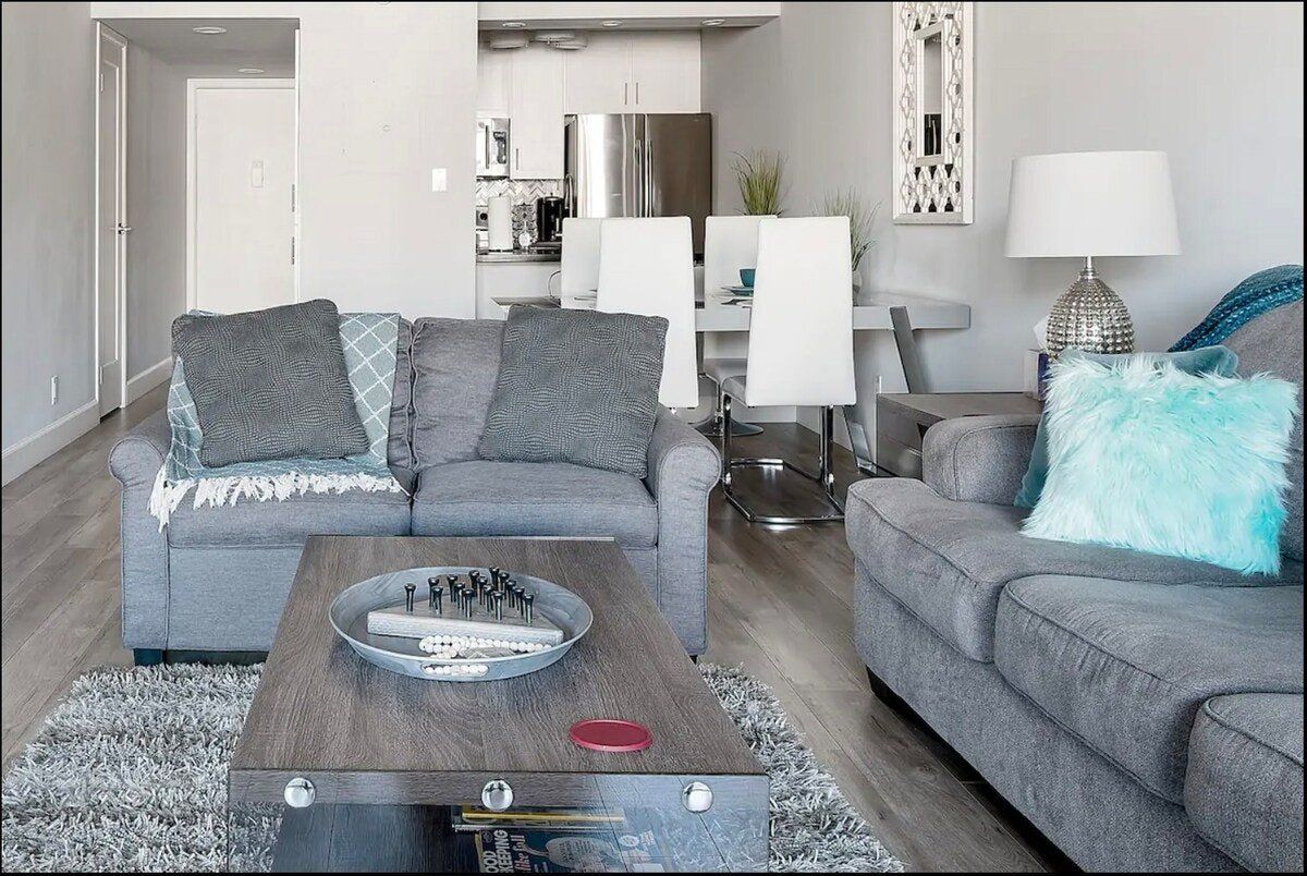 A desert delight in the heart of Scottsdale, this home feels like a tall glass of water on a hot summer’s day. With its white walls and ambient lighting mixed with cool blues and greys, you’ll feel a sense of calm the moment you walk through the door. Comfortable and stylish, it has everything you could need for a stay in this city. The kitchen is small but fully kitted out, so you can cook in the evenings and choose to eat either around the smart dining table or out on the balcony. And if you're worried about missing out on the pool front, there are shared resort-like amenities on-site, including a swimming pool, hot tub, recreation room, and gym. Nature lovers will want to seek out the nearby Gateway Loop, Pinnacle Peak, and Lost Dog hiking trails, while golf enthusiasts can head straight for the nearby Continental course. With Scottsdale’s Old Town and Entertainment District offering countless shops, bars, and restaurants within walking distance, you’ll feel like a local in no time.