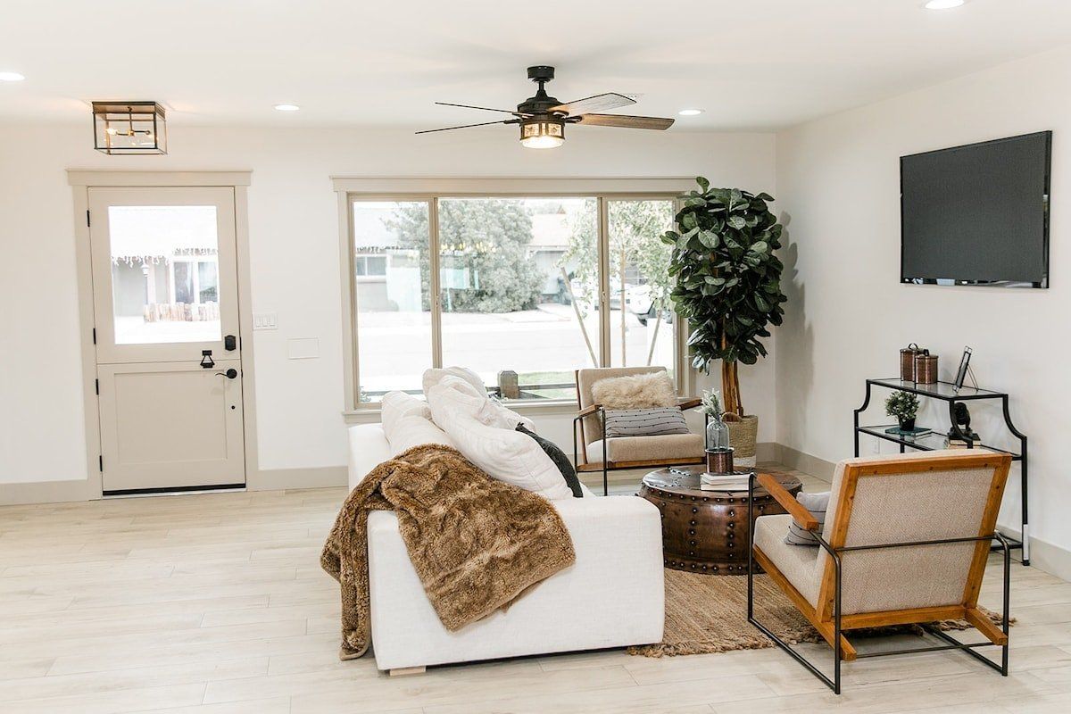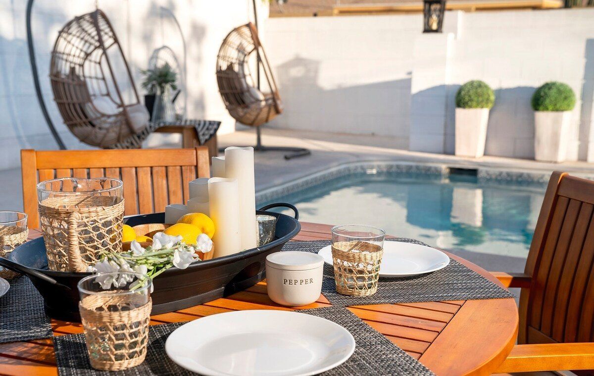 Choose Happiness is a luxurious central Scottsdale affair, complete with anything you need for a happy and relaxed time away. Before we get carried away with the features, it's important to mention that you'll have a plethora of sights and restaurants available within walking distance, but then, you've seen the kitchen, haven't you? The pictures barely do this home justice. When the team that designed this home decided on a mostly natural-tone look, they did so to highlight the high-end minimalist features like the fire pit and the sleek dining area. Arizona being the Copper State, there's a nod to this in the shape of a copper sink in the kitchen, which testifies to the great attention to detail. But let's not forget the more obvious star elements here – a heated pool, an abundance of outdoor seating to hang out, the concierge team at your disposal to book a variety of services, and a private office space for those who can't get completely away from it all.