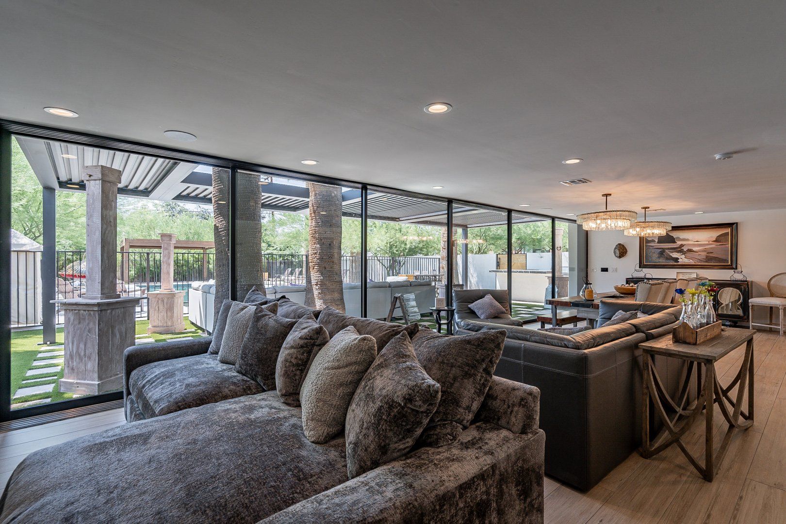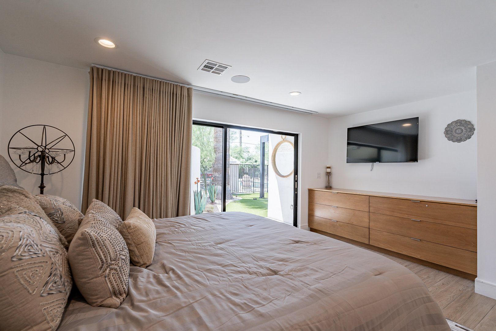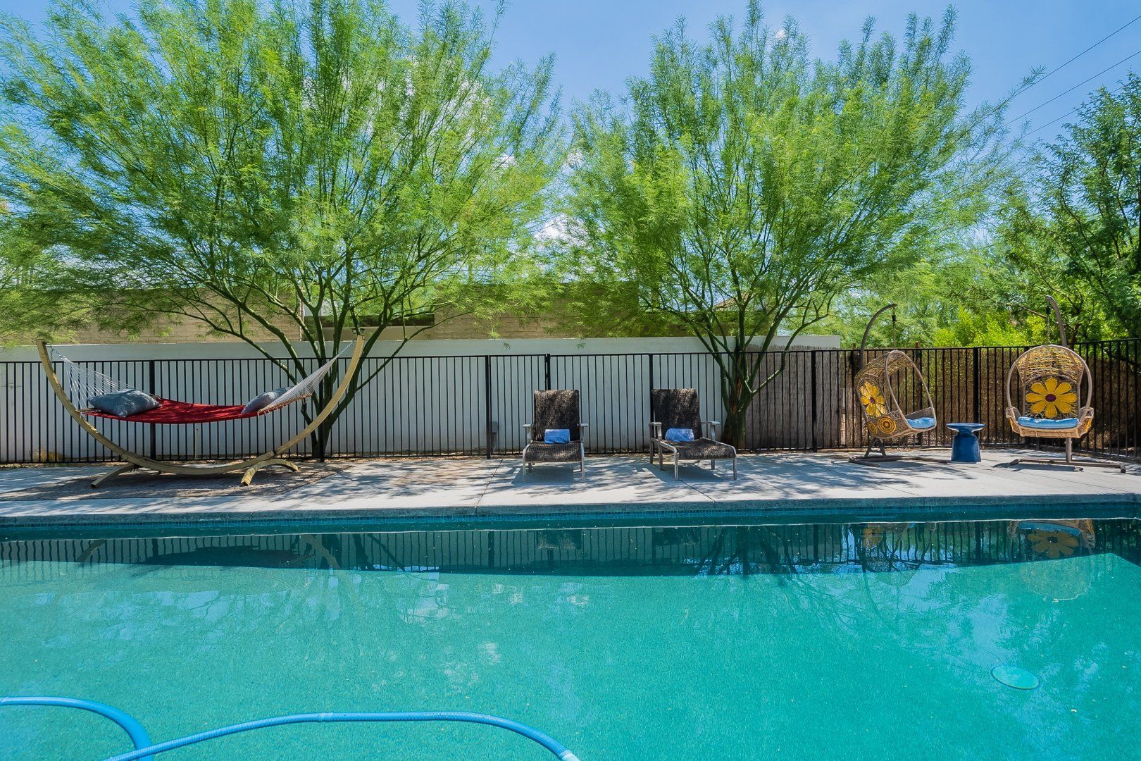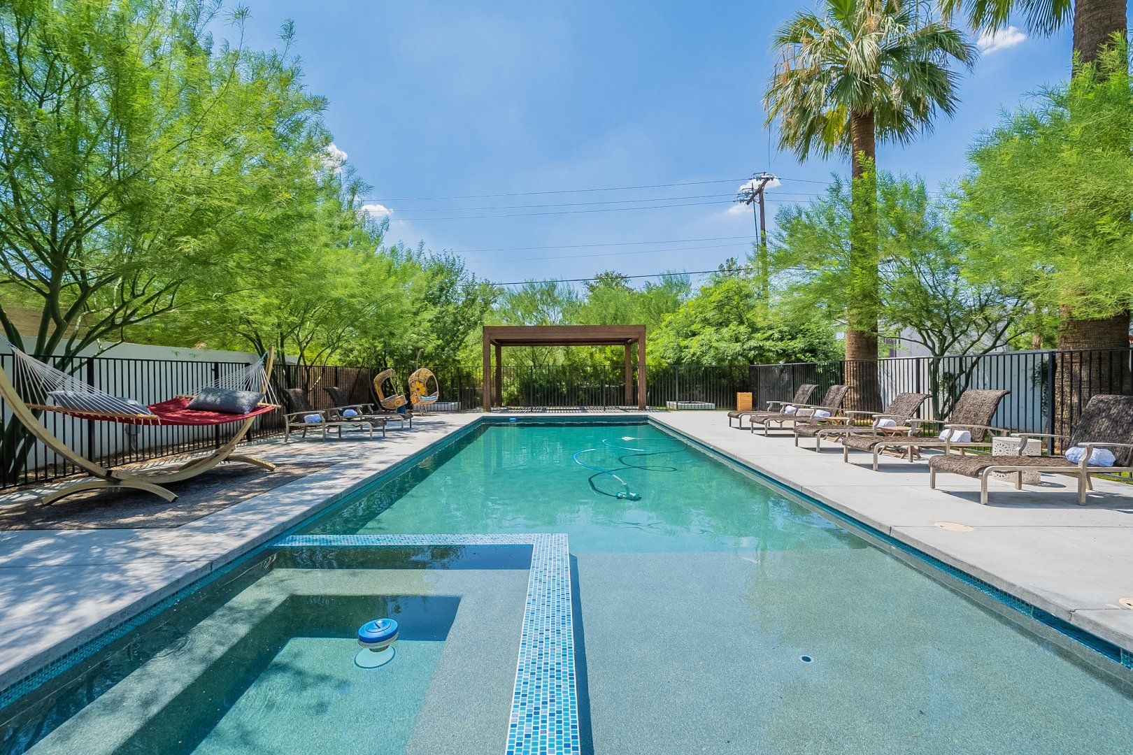 This spectacular home is a bit like having a private resort all to yourself. The luxury villa has a 50 foot long swimming pool, surrounded by palm trees and sun loungers – with the added bonus that you get to pick who you're sharing it with. You'll also find a jacuzzi, big enough to fit 12 people, and a fire pit, for chillier desert nights. Inside is just as special, with a beautiful nature-inspired colour palette and plenty of chic details – think rustic wood furnishings, statement artworks and cosy throws for wrapping around yourself. In the bedrooms, there's crisp linen, driftwood sculptures and even workspaces for catching up on emails. The trendy neighbourhood of Arcadia is on your doorstep, with its cool farm-to-table restaurants and trendy boutiques. If you fancy getting active, drive out into the desert for a hike, or follow one of the trails up iconic Camelback Mountain for incredible views across Arizona.