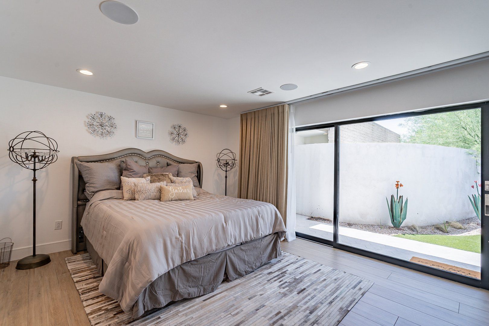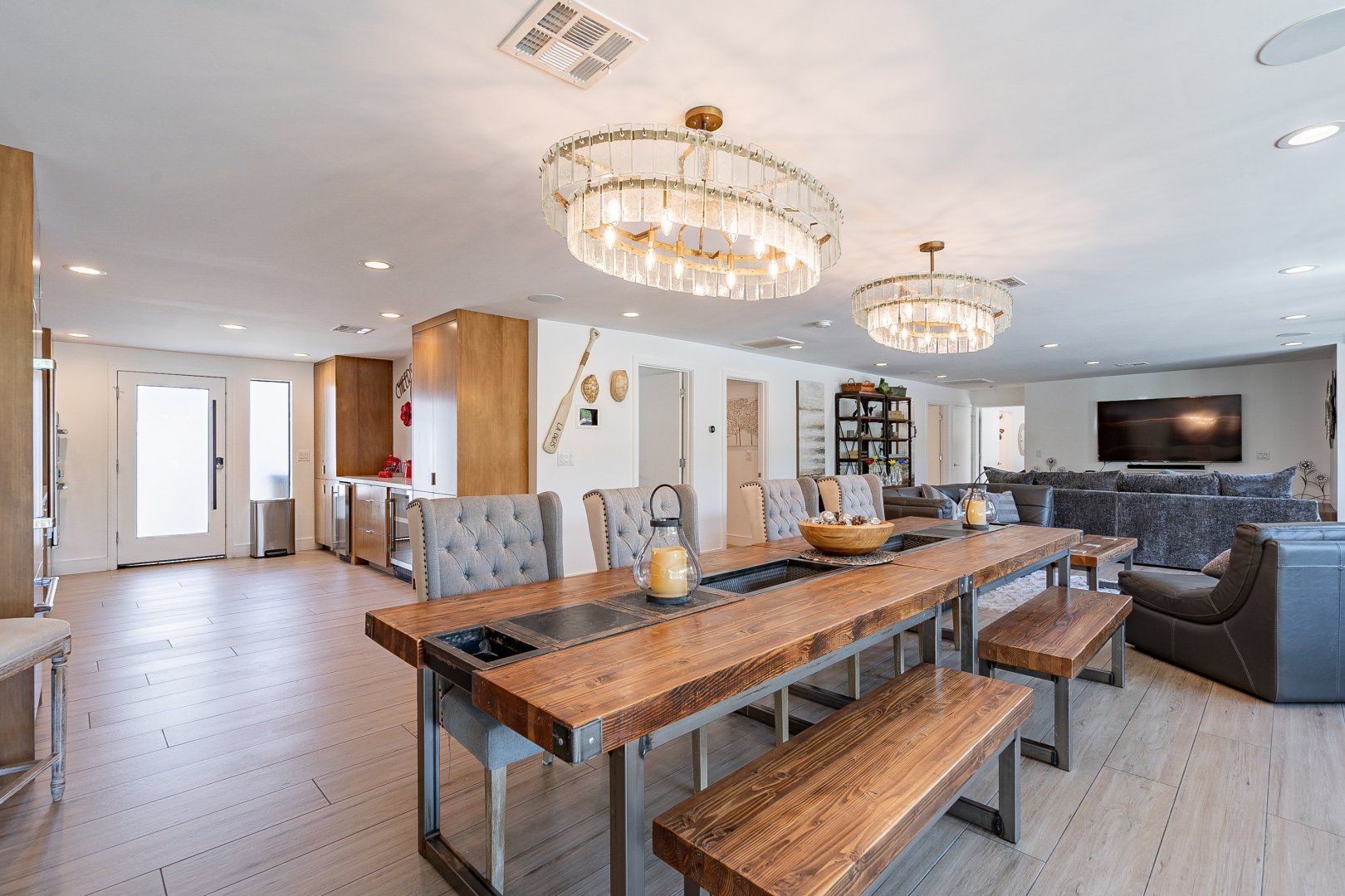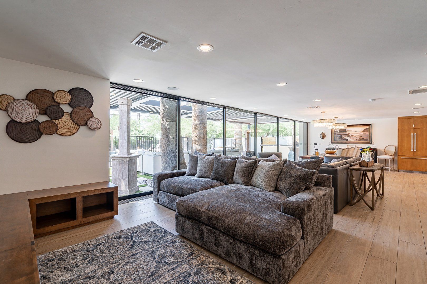 This spectacular home is a bit like having a private resort all to yourself. The luxury villa has a 50 foot long swimming pool, surrounded by palm trees and sun loungers – with the added bonus that you get to pick who you're sharing it with. You'll also find a jacuzzi, big enough to fit 12 people, and a fire pit, for chillier desert nights. Inside is just as special, with a beautiful nature-inspired colour palette and plenty of chic details – think rustic wood furnishings, statement artworks and cosy throws for wrapping around yourself. In the bedrooms, there's crisp linen, driftwood sculptures and even workspaces for catching up on emails. The trendy neighbourhood of Arcadia is on your doorstep, with its cool farm-to-table restaurants and trendy boutiques. If you fancy getting active, drive out into the desert for a hike, or follow one of the trails up iconic Camelback Mountain for incredible views across Arizona.