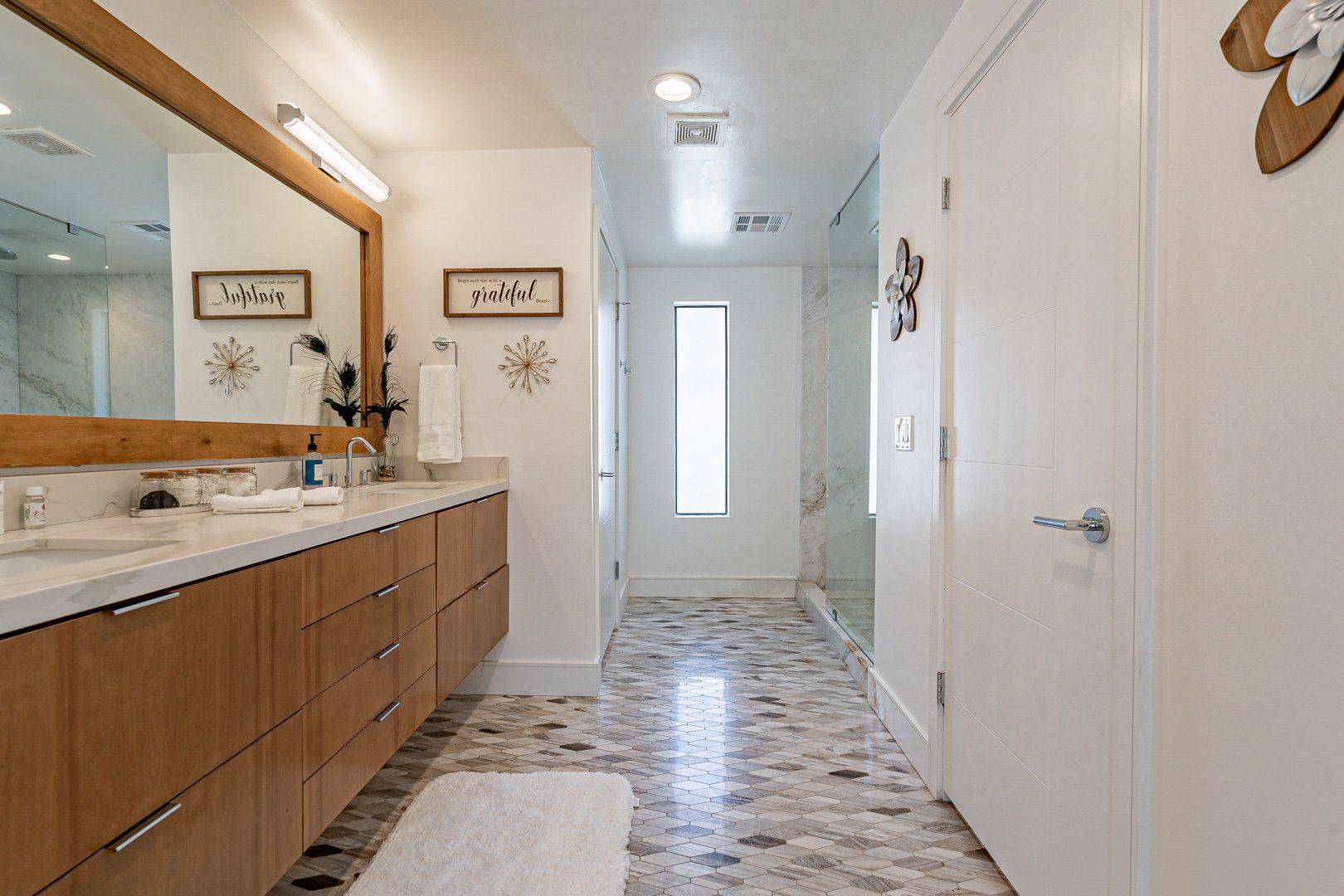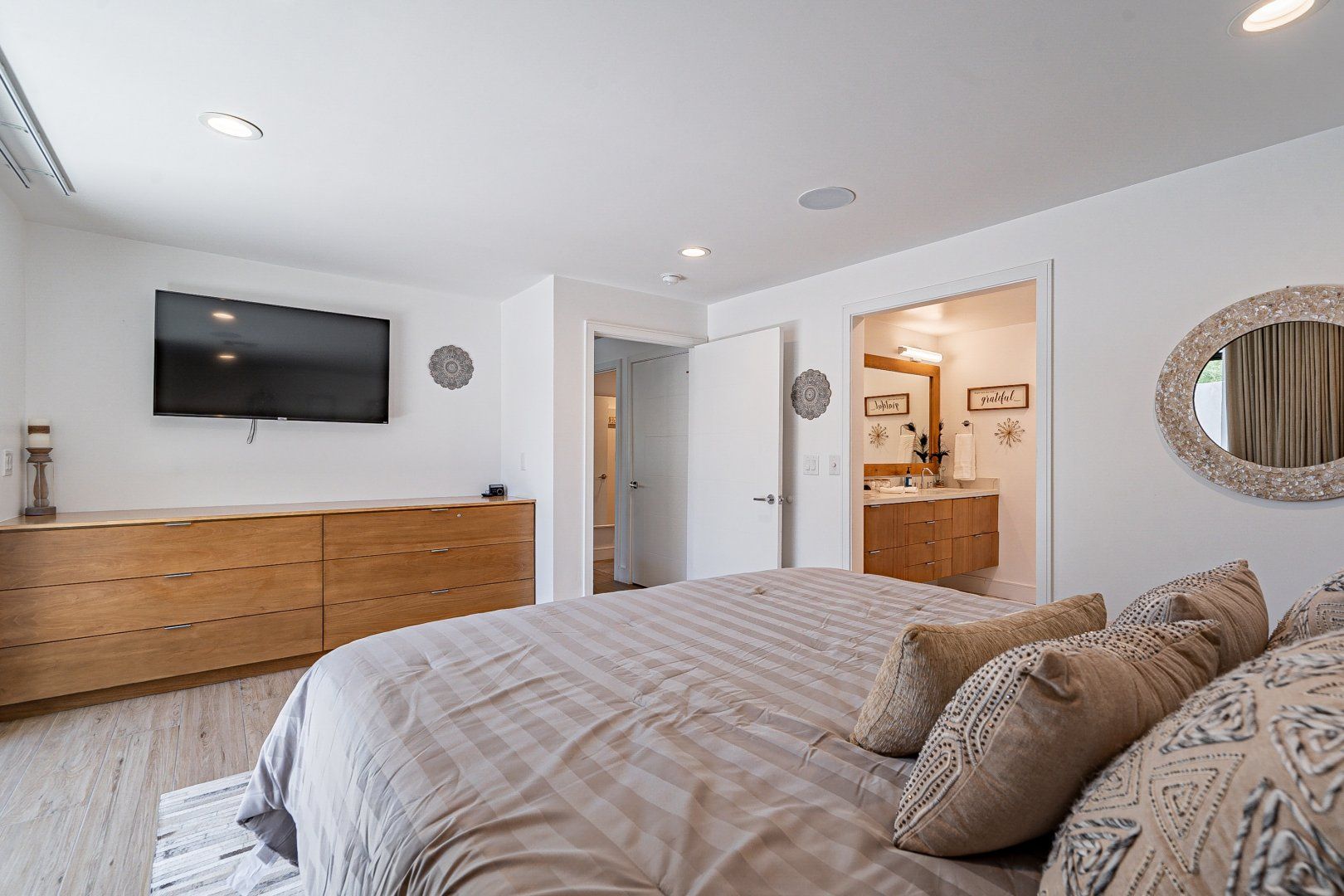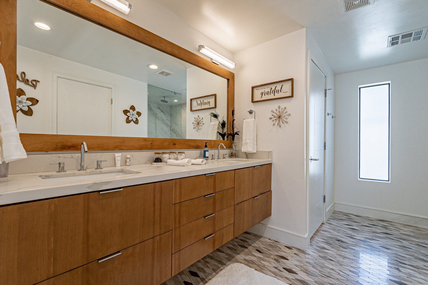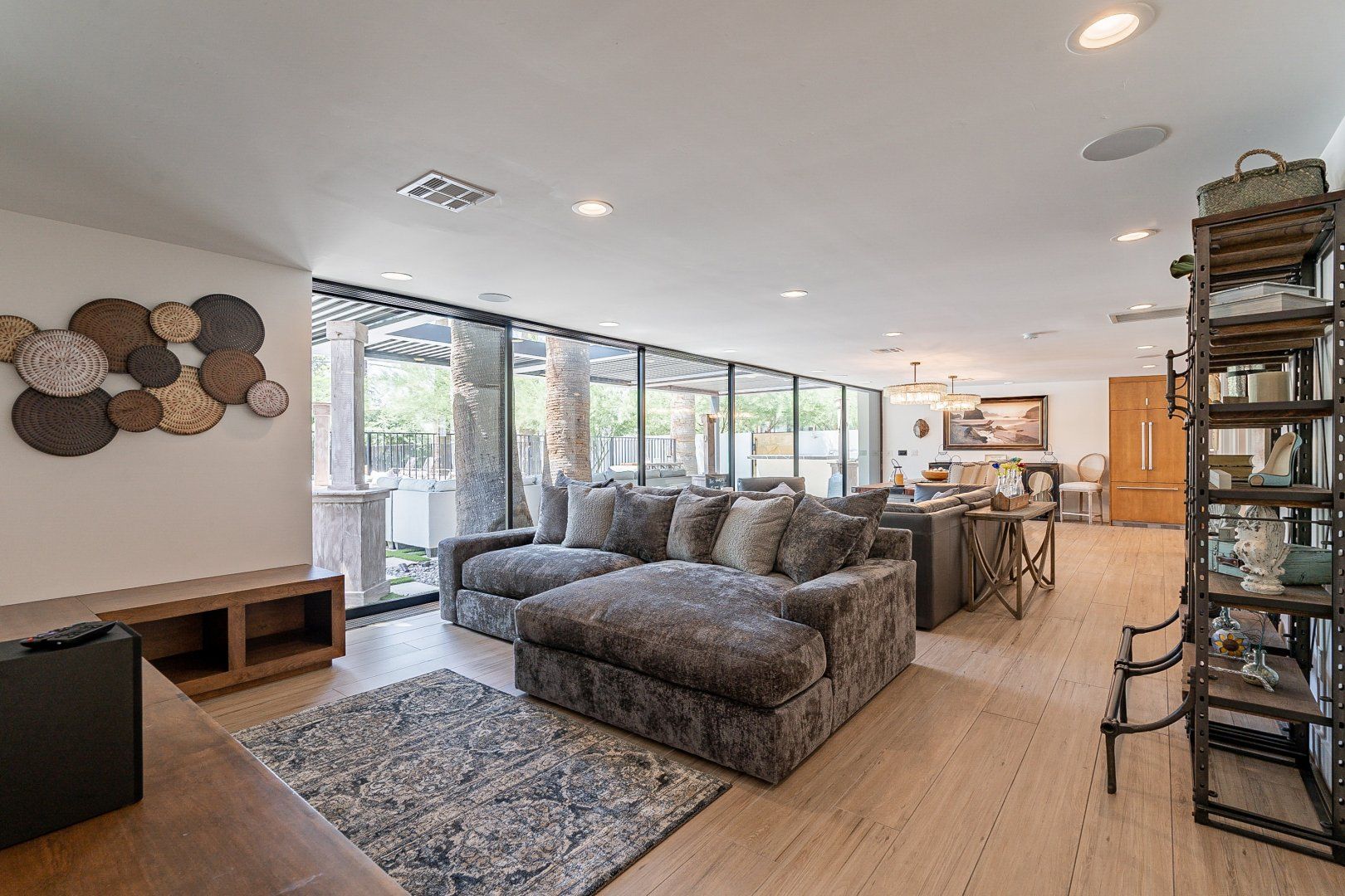 This spectacular home is a bit like having a private resort all to yourself. The luxury villa has a 50 foot long swimming pool, surrounded by palm trees and sun loungers – with the added bonus that you get to pick who you're sharing it with. You'll also find a jacuzzi, big enough to fit 12 people, and a fire pit, for chillier desert nights. Inside is just as special, with a beautiful nature-inspired colour palette and plenty of chic details – think rustic wood furnishings, statement artworks and cosy throws for wrapping around yourself. In the bedrooms, there's crisp linen, driftwood sculptures and even workspaces for catching up on emails. The trendy neighbourhood of Arcadia is on your doorstep, with its cool farm-to-table restaurants and trendy boutiques. If you fancy getting active, drive out into the desert for a hike, or follow one of the trails up iconic Camelback Mountain for incredible views across Arizona.