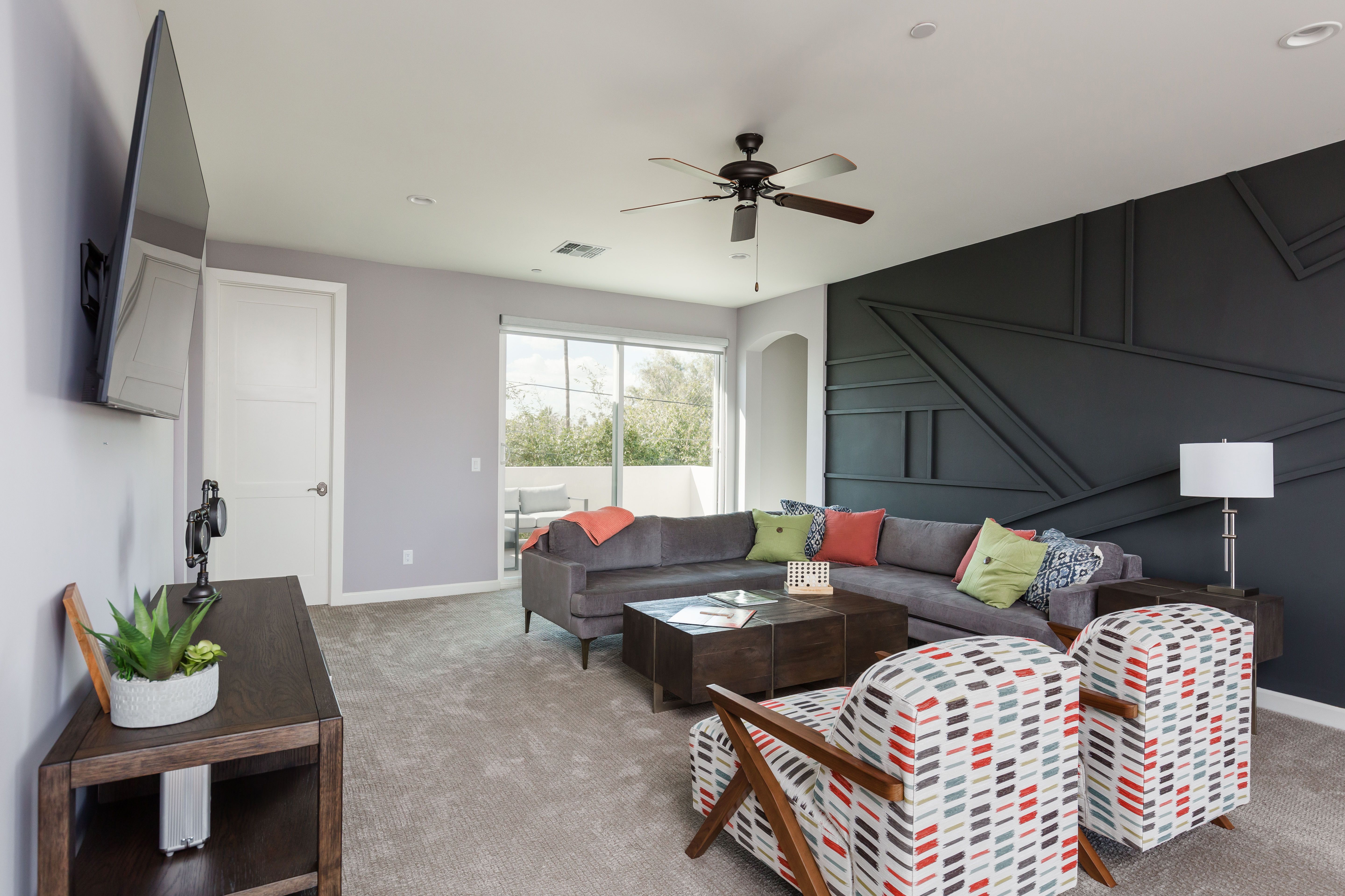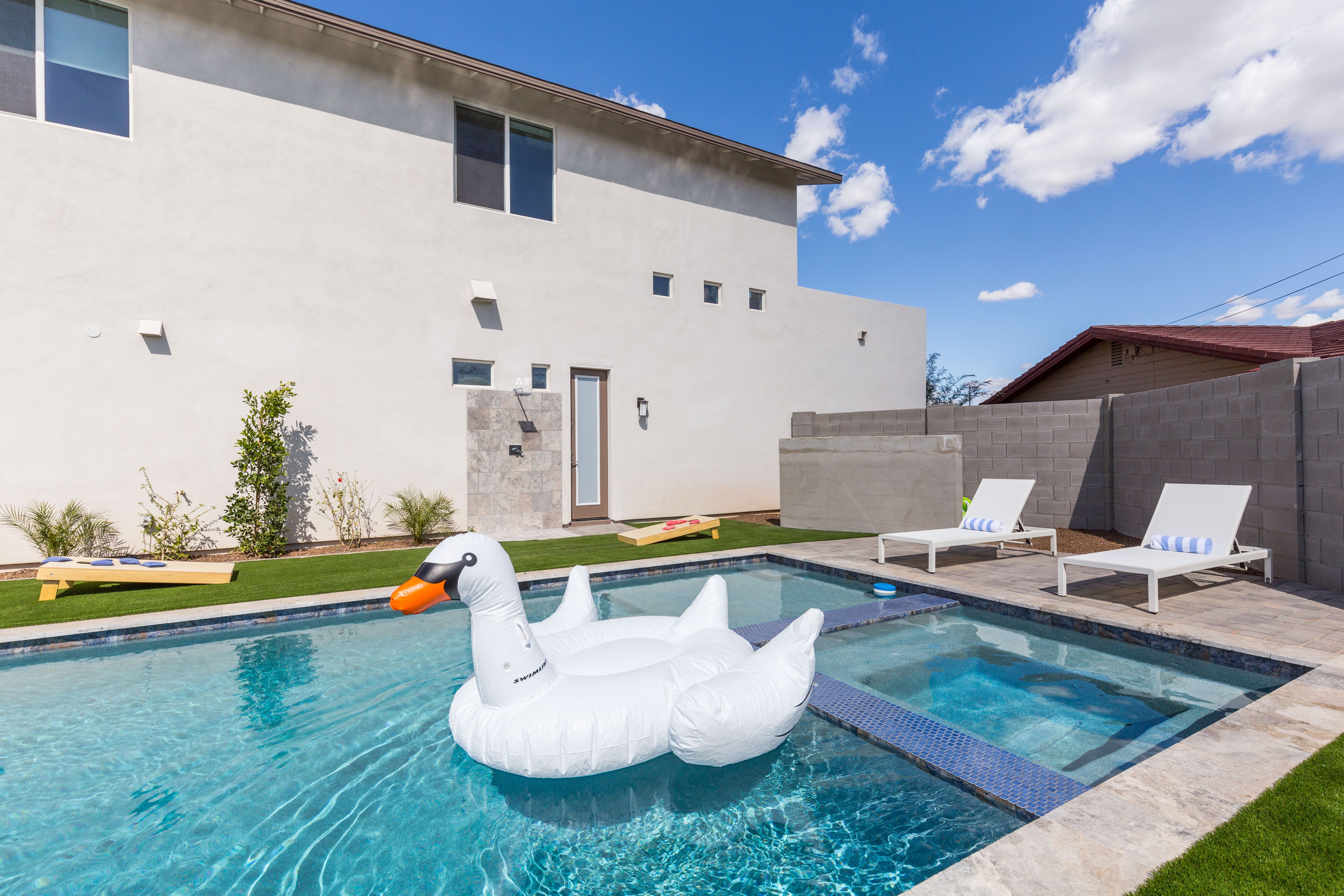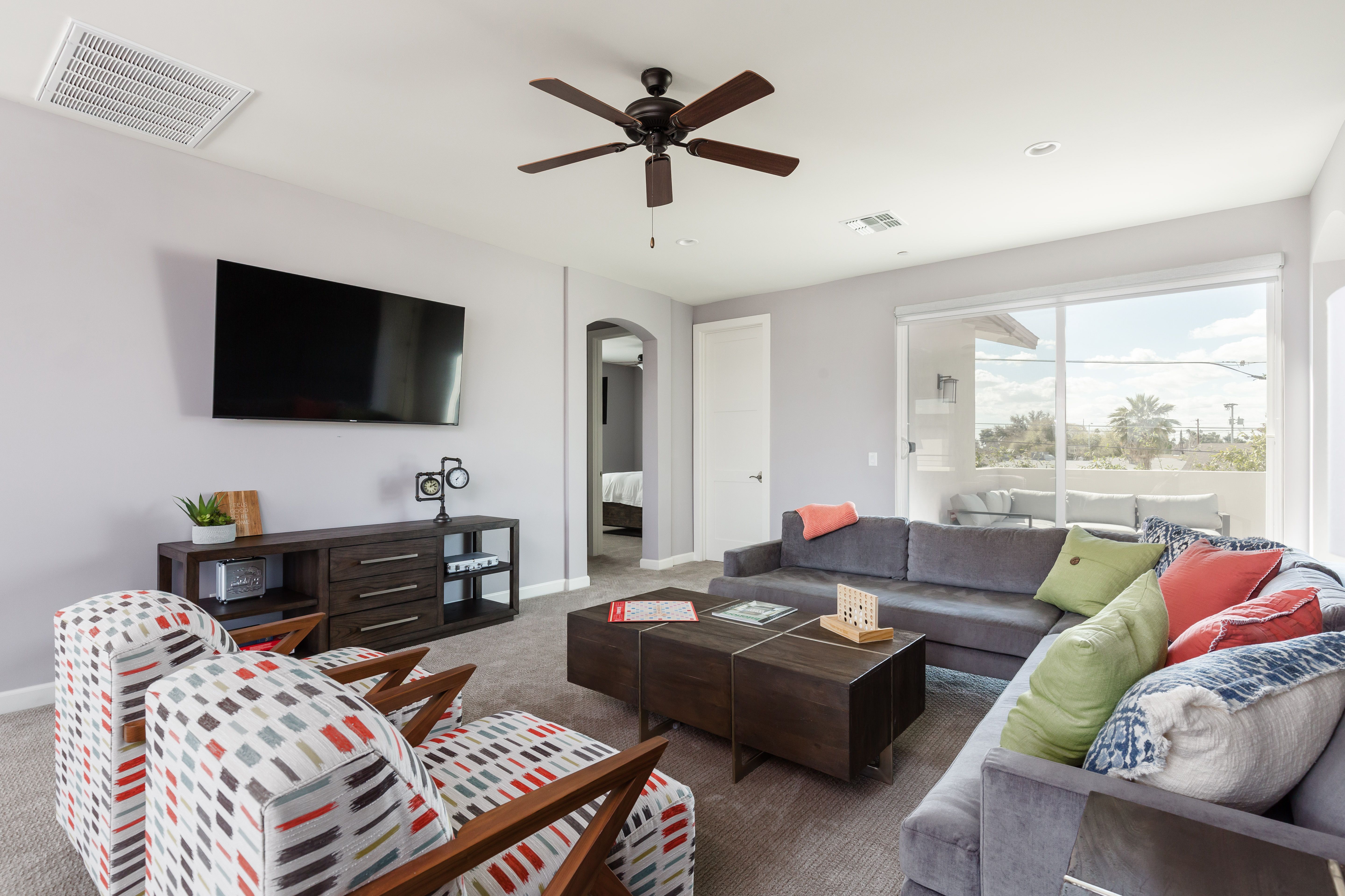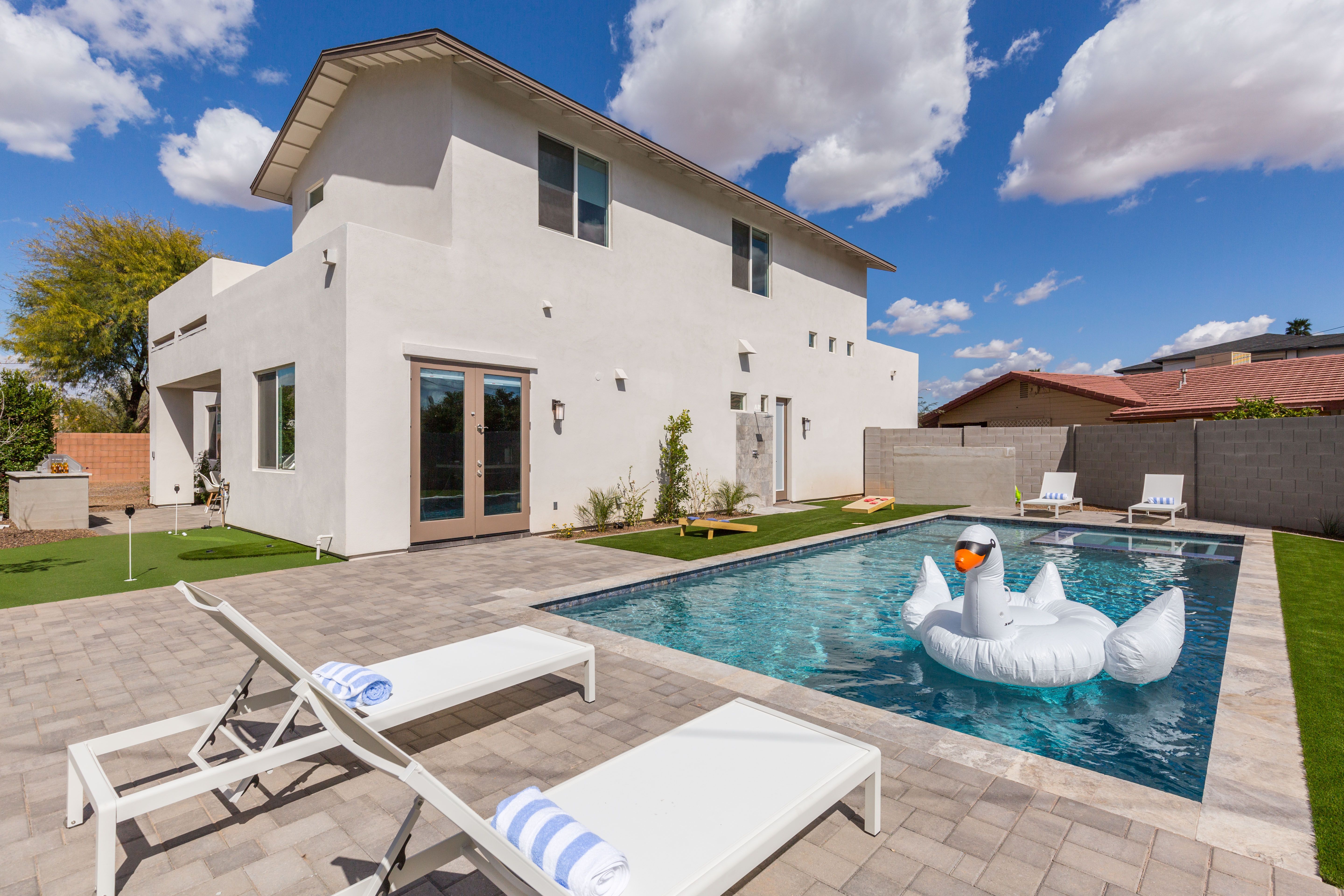 Bright, open desert living beckons you at this family home in the centre of Scottsdale’s Old Town. Cook up some waffles to eat perched on the breakfast bar before heading outside to take in the canyon views or stroll into the heart of your neighbourhood. The desert climate is irresistible, so you’d be forgiven for wanting to spend most of your time in the yard, lounging around the pool, kicking back by the fire pit, and practicing your stroke on the putting green. Situated on a quiet street not far from what’s considered “the South Beach of the desert,” all the shopping and night’s entertainment is just a walk from your front door. If you have some golfers in the mix, TPC Scottsdale is just a fifteen minute drive from the home. Back home in the evenings, gather and chat around the crackling fire.
