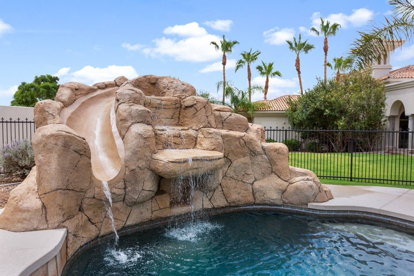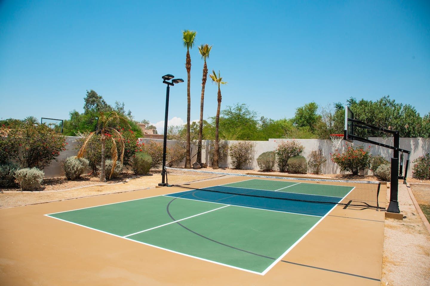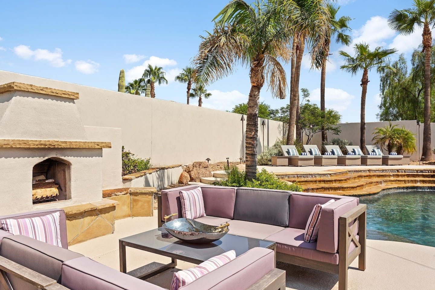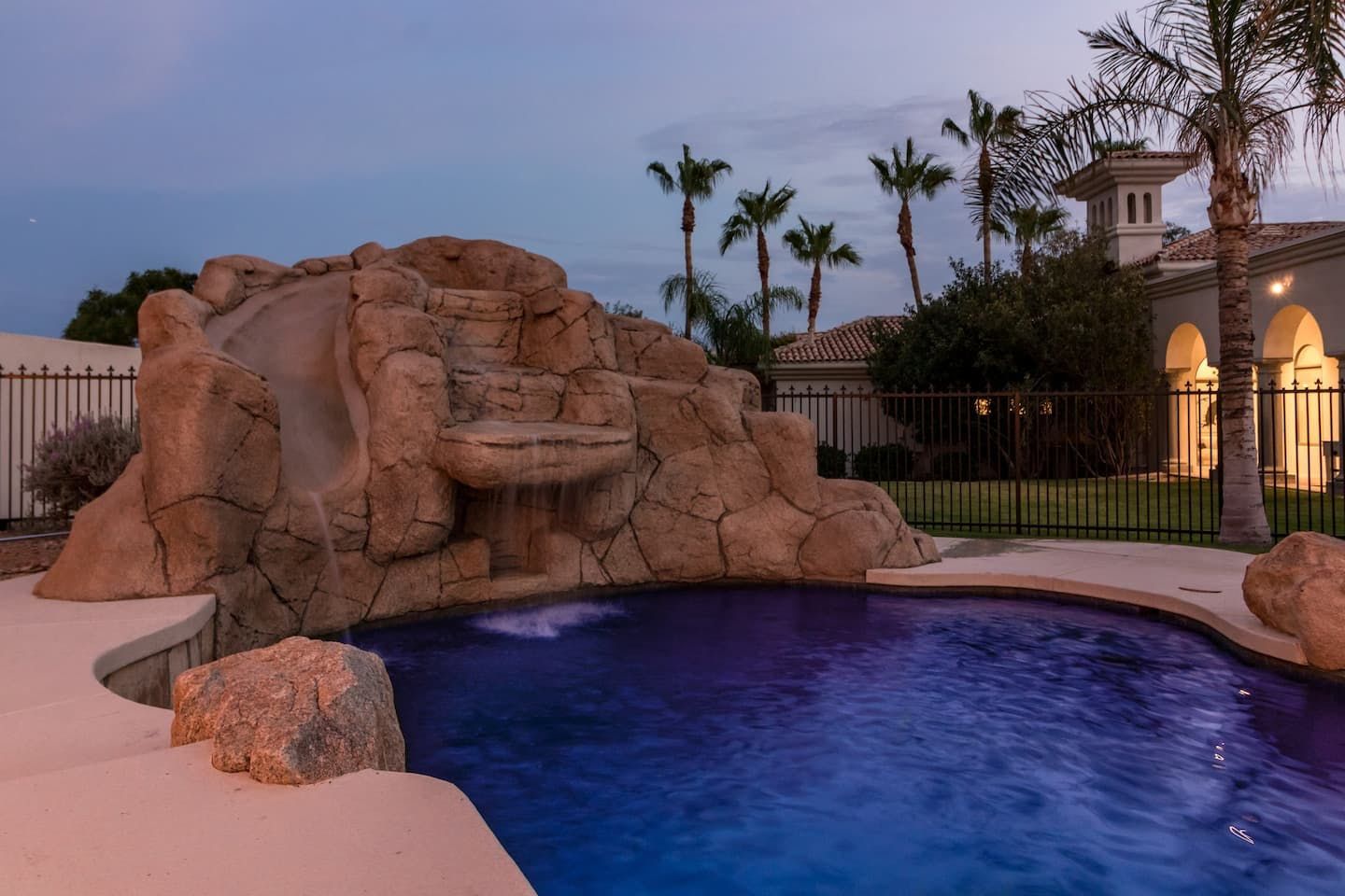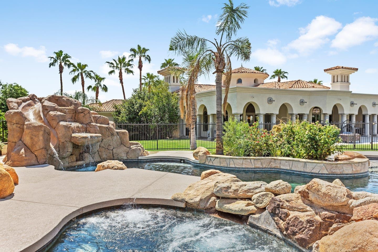 It wouldn't be doing this property justice to call it a "home" as it truly is so much more than that. Combining everything you'd find at a five-star hotel resort with the added bonus of having it all to yourselves – this one-of-a-kind villa offers the trip of a lifetime. Set in Scottsdale, guests can soak up the Arizona sunshine from almost anywhere on the property and beyond. With so many extravagant outdoor spaces to choose from, you certainly won't be short on things to do here. In fact, the problem may rest more with if you'll have enough time to try out all of the amenities on offer. Whether it's relaxing by the waterfall pool (with a water slide), unwinding in the jacuzzi or playing a game of tennis, foosball, ping pong, pickleball, basketball or mini-golf – you'll find something to enjoy before having even stepped foot inside. When you can tear yourself away from the glorious sunshine outside, prepare to be impressed by the impeccable soothing interiors which invite guests to relax in style through neutral colours and natural materials. With plenty of designated workspaces dotted around the home, you'll be able to balance work with play when staying here too. Once you've worked up an appetite, hire a private chef to come and cook for you in the state of the art kitchen – you'll have the choice of dining alfresco on the terrace or inside with a view of the garden from the formal dining area. After dinner, head to the games room for a round of pool, or cosy up in front of the (indoor or outdoor) fireplace with a nightcap in hand, before making the most of the spa-like bathrooms. We particularly appreciate the ultra-luxurious mattresses and bedding, ensuring a dreamy night's sleep they'll have you feeling refreshed and ready to discover the local hikes and desert trails in no time. Venture out to one of the many breathtaking and iconic Camelback trails in Scottsdale – Camelback mountain and Black Mountain are both around a thirty-minute drive away. With the Old Town, only fifteen minutes away and Downtown Phoenix, just twenty-five minutes away – lap up your own secluded slice of heaven without being too far away from the centre of town should you need it.