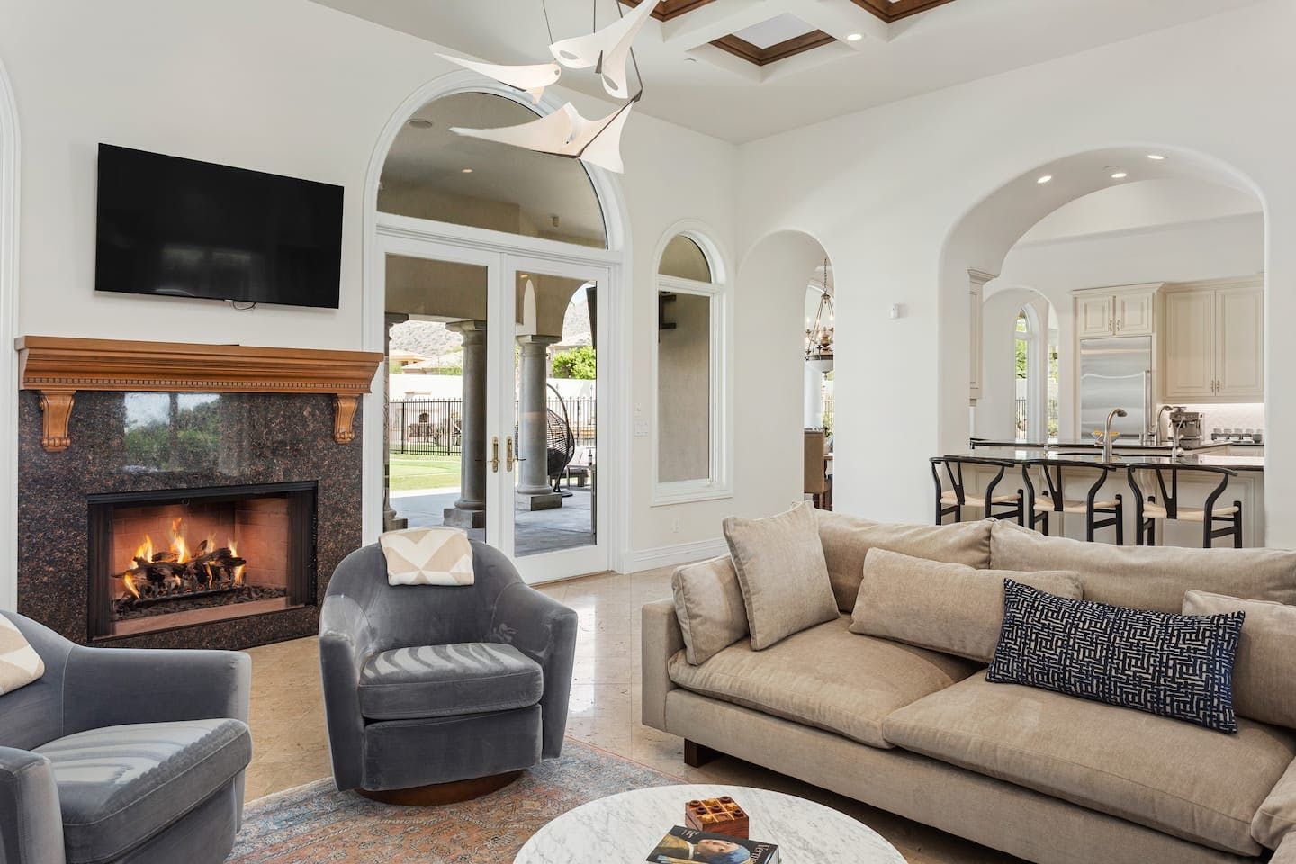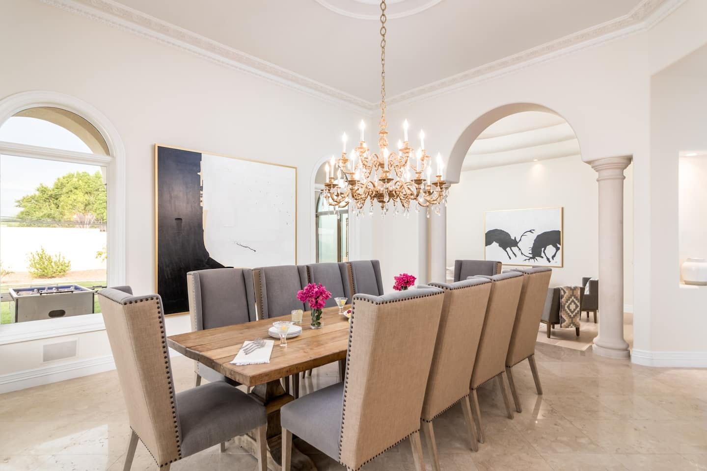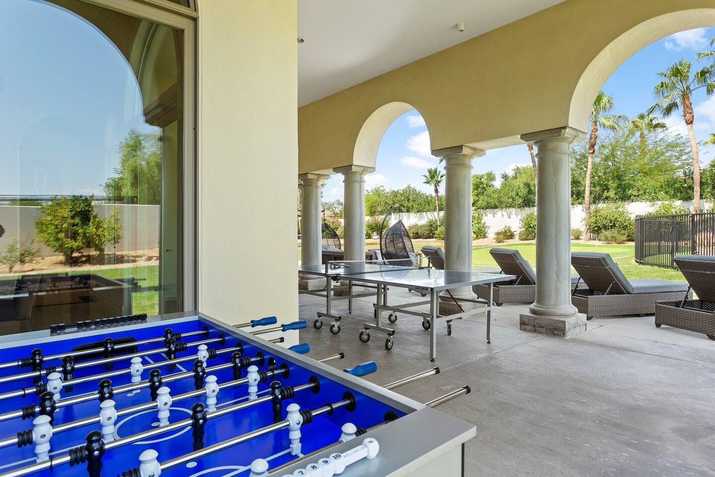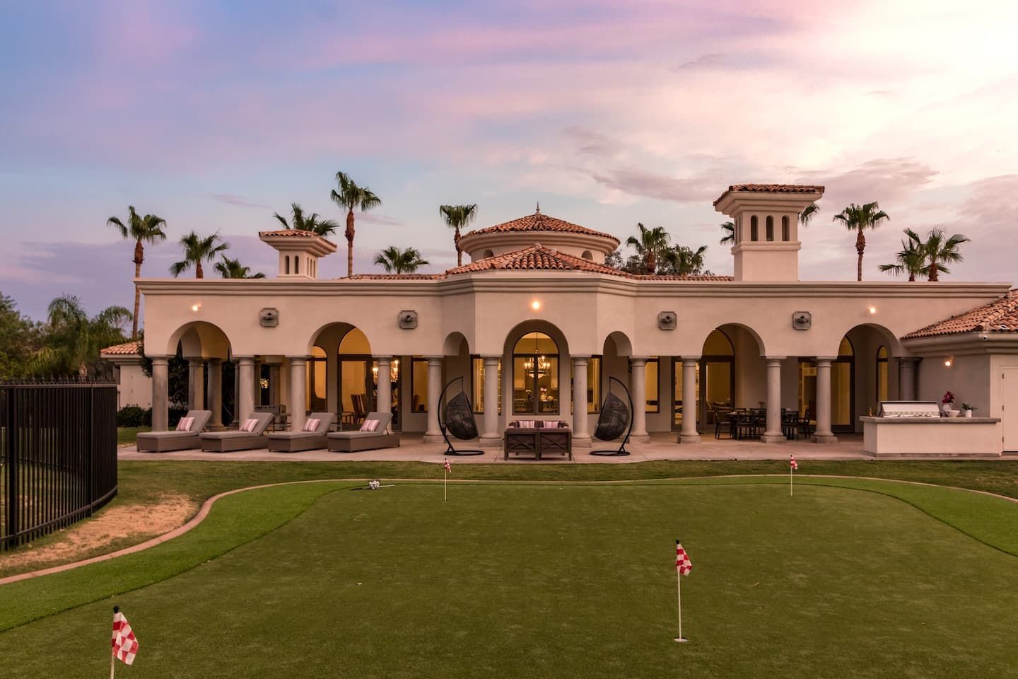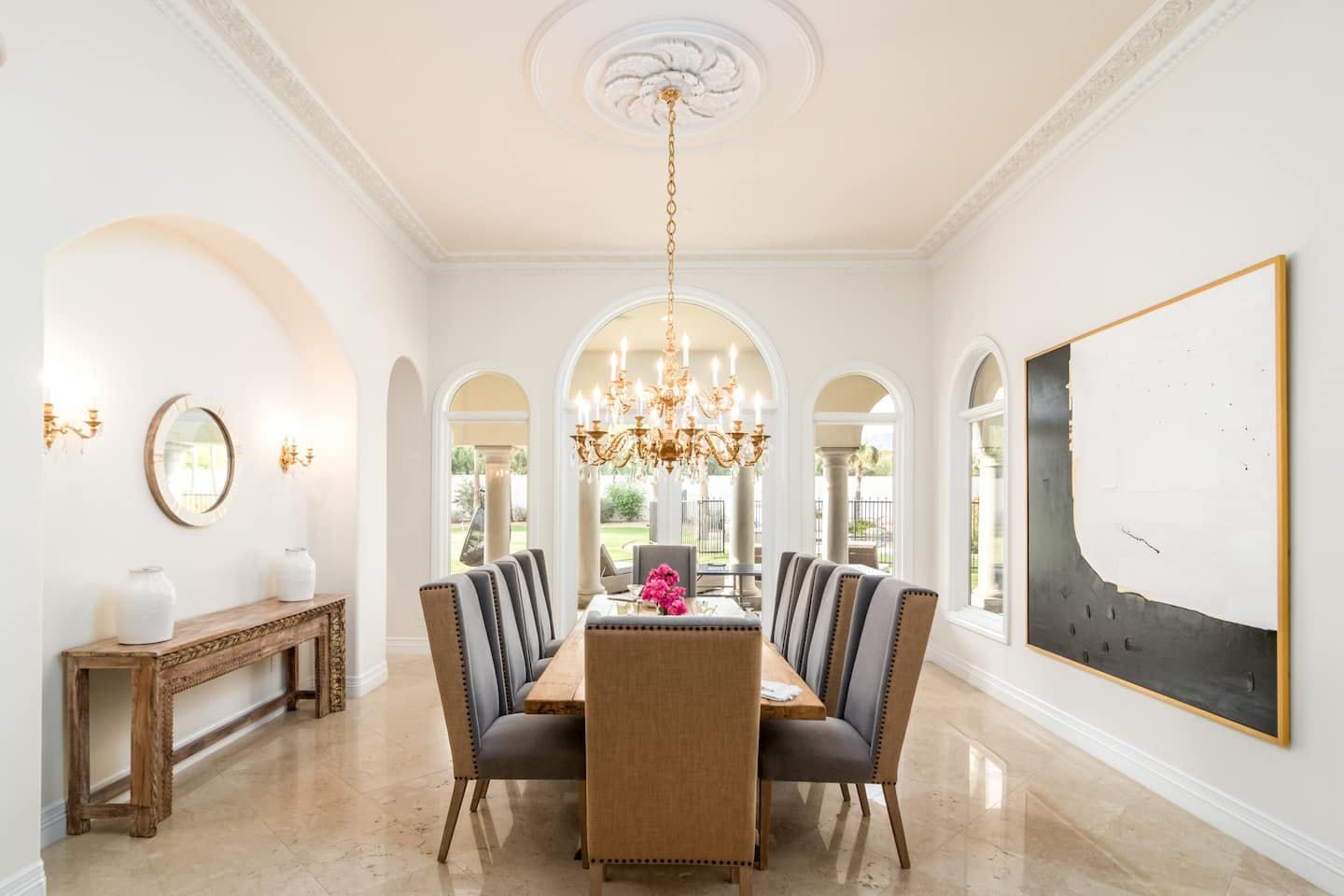 It wouldn't be doing this property justice to call it a "home" as it truly is so much more than that. Combining everything you'd find at a five-star hotel resort with the added bonus of having it all to yourselves – this one-of-a-kind villa offers the trip of a lifetime. Set in Scottsdale, guests can soak up the Arizona sunshine from almost anywhere on the property and beyond. With so many extravagant outdoor spaces to choose from, you certainly won't be short on things to do here. In fact, the problem may rest more with if you'll have enough time to try out all of the amenities on offer. Whether it's relaxing by the waterfall pool (with a water slide), unwinding in the jacuzzi or playing a game of tennis, foosball, ping pong, pickleball, basketball or mini-golf – you'll find something to enjoy before having even stepped foot inside. When you can tear yourself away from the glorious sunshine outside, prepare to be impressed by the impeccable soothing interiors which invite guests to relax in style through neutral colours and natural materials. With plenty of designated workspaces dotted around the home, you'll be able to balance work with play when staying here too. Once you've worked up an appetite, hire a private chef to come and cook for you in the state of the art kitchen – you'll have the choice of dining alfresco on the terrace or inside with a view of the garden from the formal dining area. After dinner, head to the games room for a round of pool, or cosy up in front of the (indoor or outdoor) fireplace with a nightcap in hand, before making the most of the spa-like bathrooms. We particularly appreciate the ultra-luxurious mattresses and bedding, ensuring a dreamy night's sleep they'll have you feeling refreshed and ready to discover the local hikes and desert trails in no time. Venture out to one of the many breathtaking and iconic Camelback trails in Scottsdale – Camelback mountain and Black Mountain are both around a thirty-minute drive away. With the Old Town, only fifteen minutes away and Downtown Phoenix, just twenty-five minutes away – lap up your own secluded slice of heaven without being too far away from the centre of town should you need it.