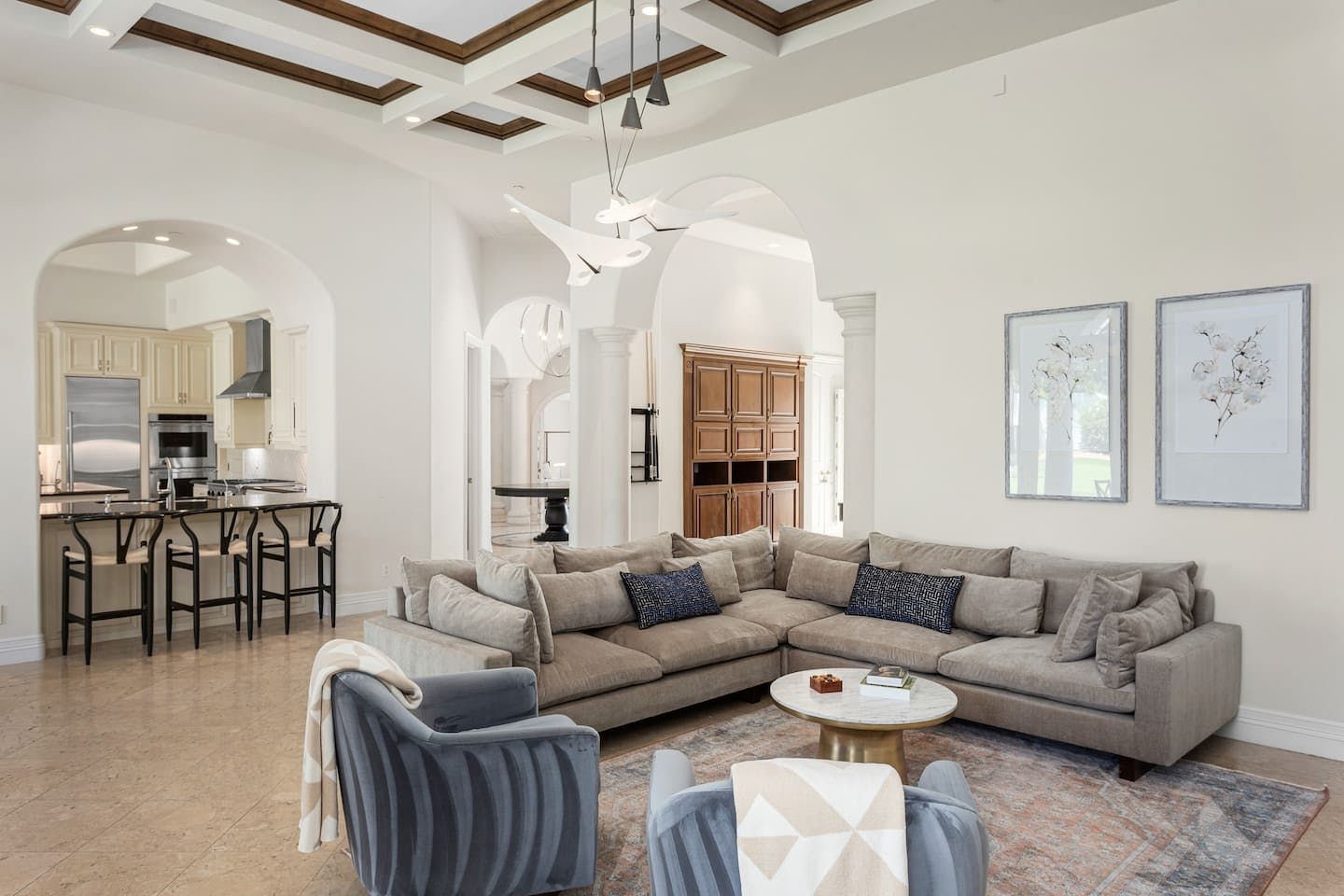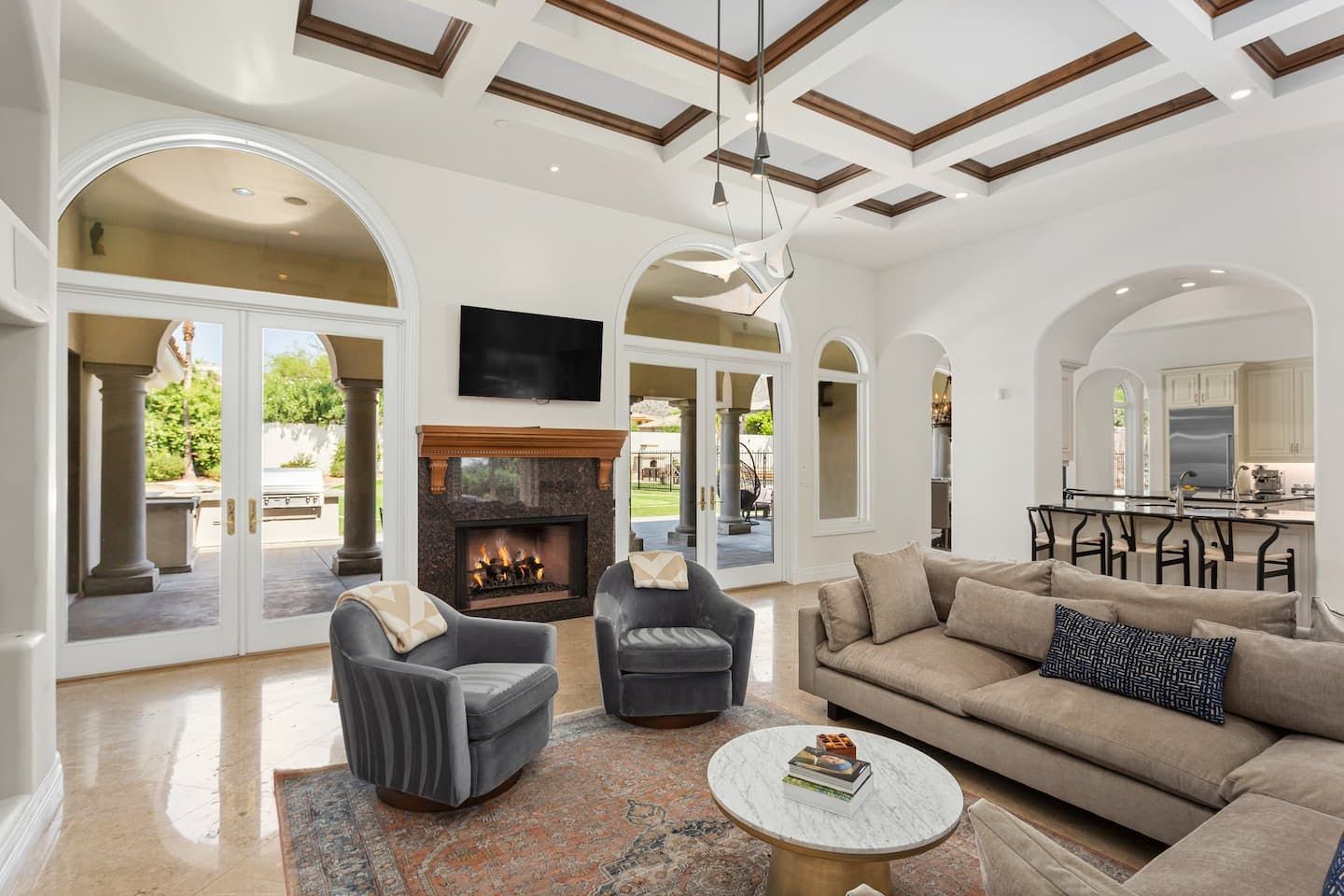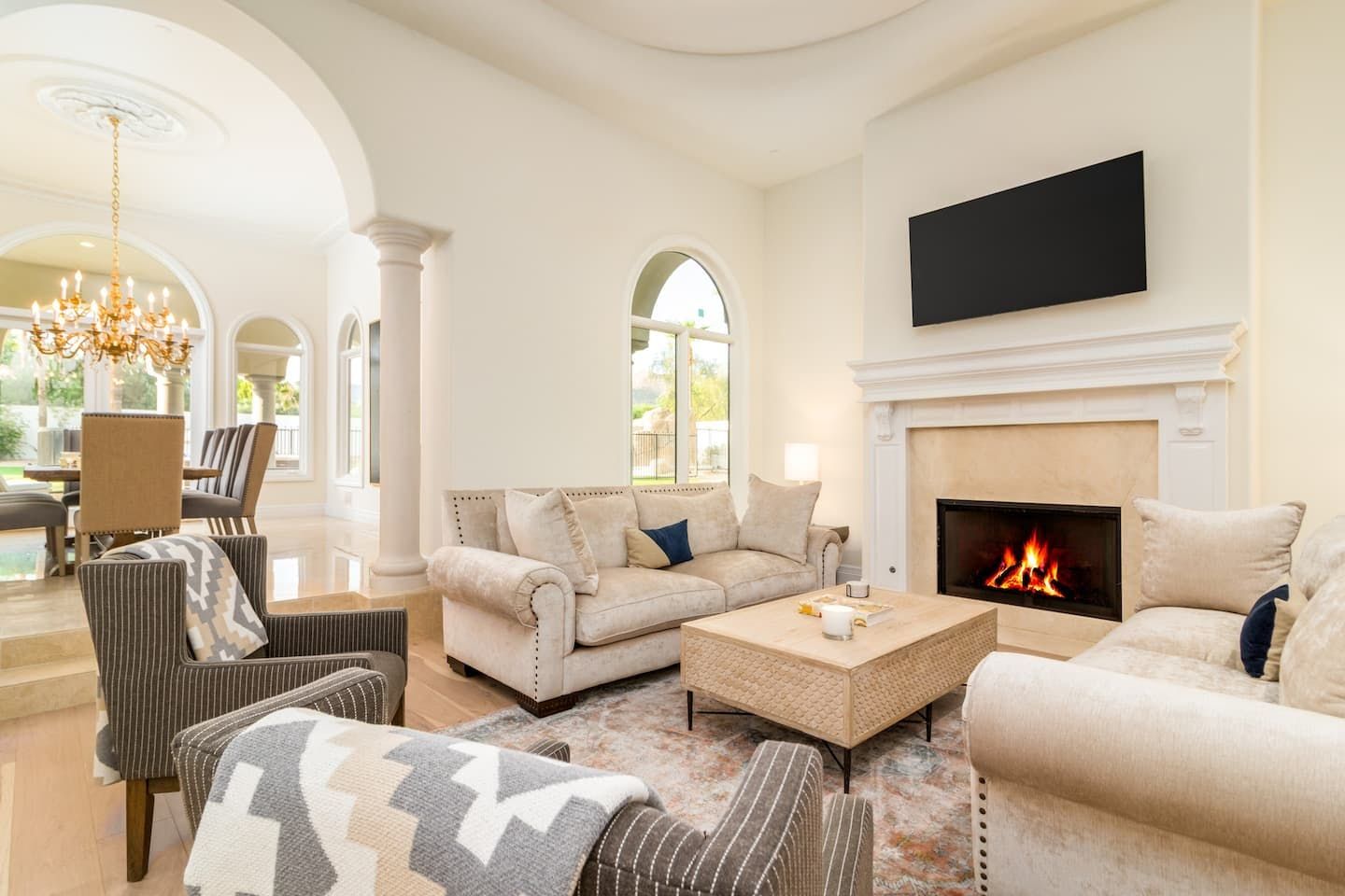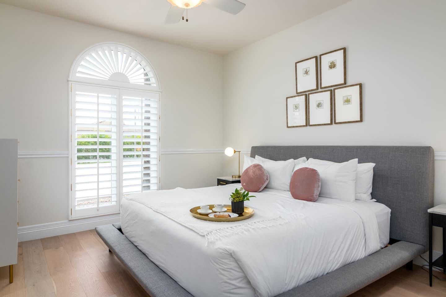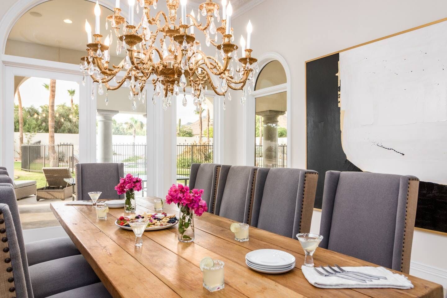 It wouldn't be doing this property justice to call it a "home" as it truly is so much more than that. Combining everything you'd find at a five-star hotel resort with the added bonus of having it all to yourselves – this one-of-a-kind villa offers the trip of a lifetime. Set in Scottsdale, guests can soak up the Arizona sunshine from almost anywhere on the property and beyond. With so many extravagant outdoor spaces to choose from, you certainly won't be short on things to do here. In fact, the problem may rest more with if you'll have enough time to try out all of the amenities on offer. Whether it's relaxing by the waterfall pool (with a water slide), unwinding in the jacuzzi or playing a game of tennis, foosball, ping pong, pickleball, basketball or mini-golf – you'll find something to enjoy before having even stepped foot inside. When you can tear yourself away from the glorious sunshine outside, prepare to be impressed by the impeccable soothing interiors which invite guests to relax in style through neutral colours and natural materials. With plenty of designated workspaces dotted around the home, you'll be able to balance work with play when staying here too. Once you've worked up an appetite, hire a private chef to come and cook for you in the state of the art kitchen – you'll have the choice of dining alfresco on the terrace or inside with a view of the garden from the formal dining area. After dinner, head to the games room for a round of pool, or cosy up in front of the (indoor or outdoor) fireplace with a nightcap in hand, before making the most of the spa-like bathrooms. We particularly appreciate the ultra-luxurious mattresses and bedding, ensuring a dreamy night's sleep they'll have you feeling refreshed and ready to discover the local hikes and desert trails in no time. Venture out to one of the many breathtaking and iconic Camelback trails in Scottsdale – Camelback mountain and Black Mountain are both around a thirty-minute drive away. With the Old Town, only fifteen minutes away and Downtown Phoenix, just twenty-five minutes away – lap up your own secluded slice of heaven without being too far away from the centre of town should you need it.