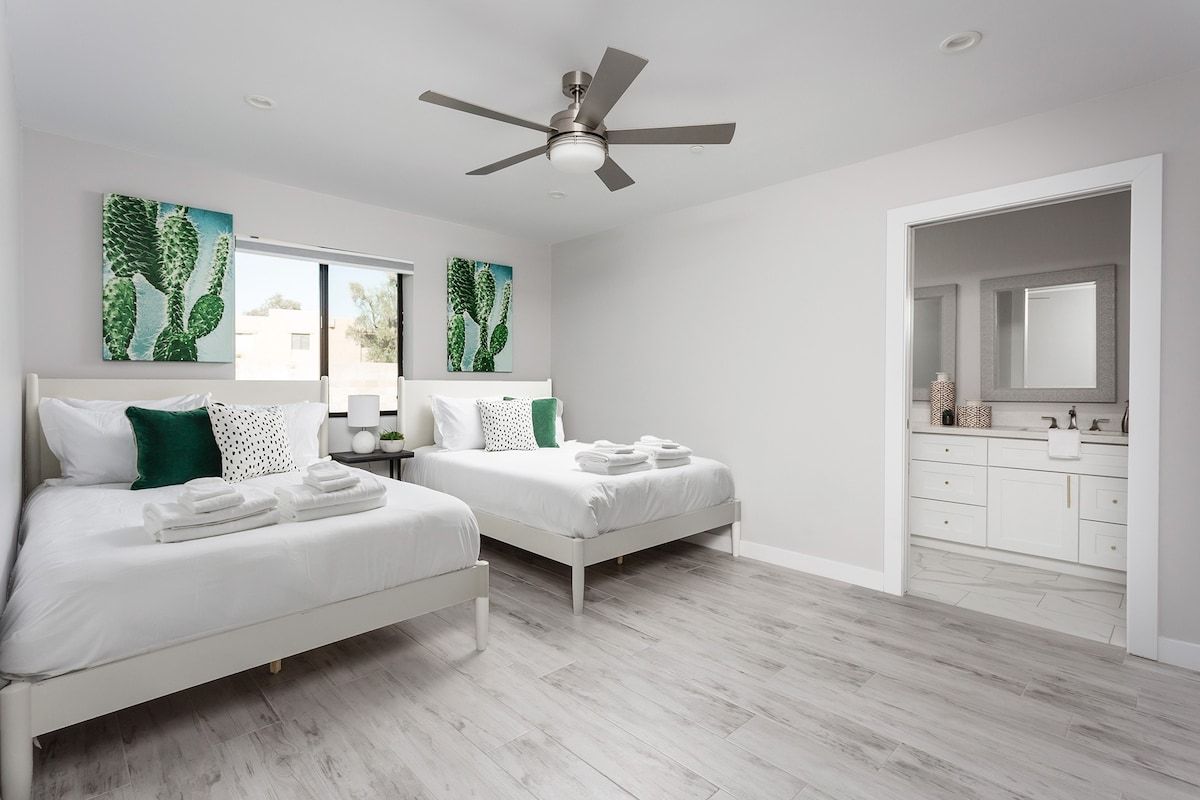 Enjoy a relaxing stay in Arizona at this modern home in Scottsdale. Chill out on the outdoor sofas, lie back on a sun lounger, or sit chatting around the fire pit. Alternatively, for a more active day, go for a swim in the pool, play a game of pool and cook up a feast on the barbecue. The home is not far from Scottsdale’s famous entertainment offerings, and you can even start the party early with a drink at the indoor-outdoor bar. Camelback Mountain, world-class golf courses, hiking and biking trails are all nearby, as well as Old Town Scottsdale, where you’ll find restaurants, bars and shopping malls.