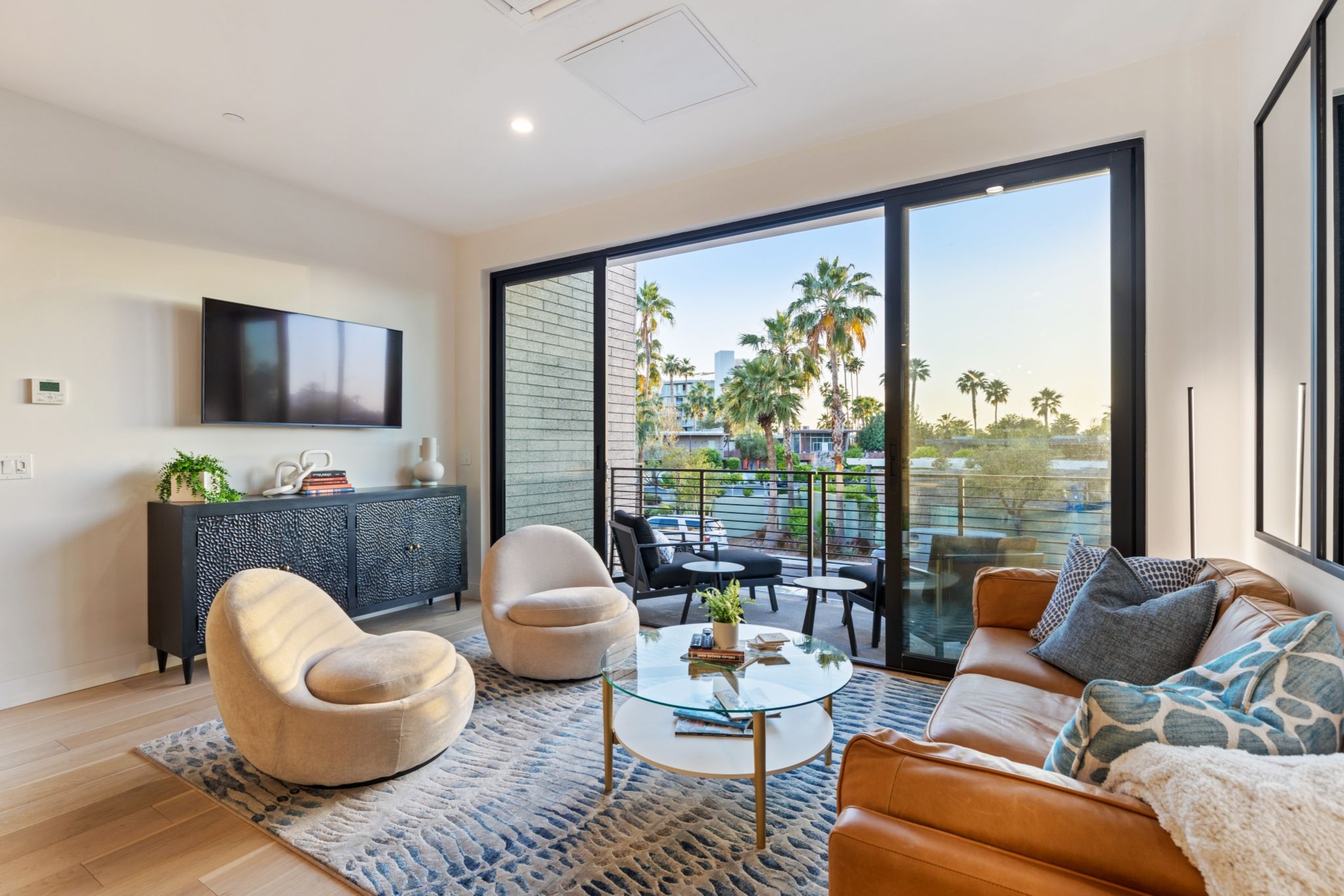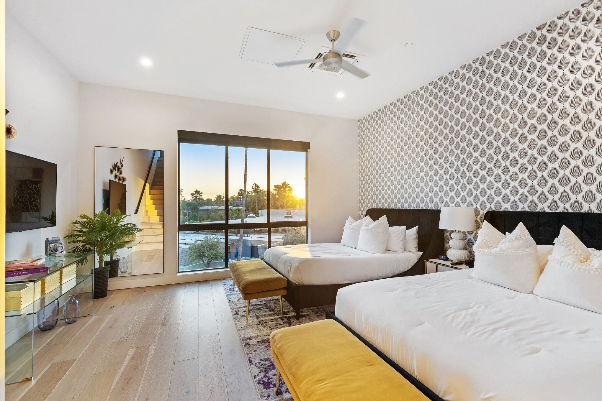Contemporary and cool, this townhouse is a superior Scottsdale base. It’s a chic home spread across four floors – so you’ll need to be able to climb stairs to stay here – with a glorious rooftop terrace at its pinnacle. Mountain views and sunshine await on the terrace, while inside, you can look forward to a comfortable and stylish living and dining space, a well-equipped kitchen, and three attractive bedrooms. One bedroom is set up with a sofa bed and boasts a kitchenette, perfect for a couple seeking more privacy. The home is close to restaurants, bars, and shops. It comes with passes for a nearby resort, where you can swim and work out, and there are golf courses close by, too.