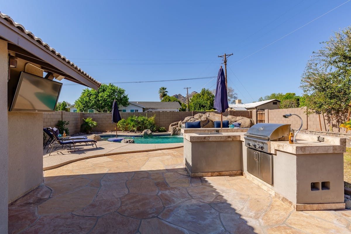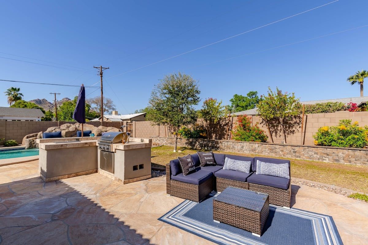 With the Old Town, fashion square mall, entertainment district and Camelback mountain right on your doorstep, The Blue Pearl is a great base for those wishing to explore the best of Scottsdale. The modern home itself is perfect for relaxing and soaking up the Arizona sun, with a lovely back garden. Take a dip in your private swimming pool with a soothing waterfall feature or spend balmy evenings cooking up tasty meals by the BBQ area. There’s plenty of space, making this a great home for groups of friends or multiple families – that said, there are a few twin trundle beds instead of actual beds. Also bear in mind that one of the bedrooms doubles up as a games room, but the pool table and smart TV make up for it.