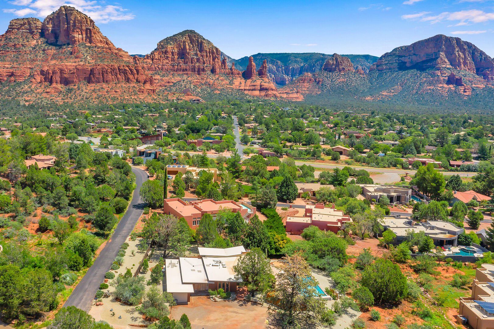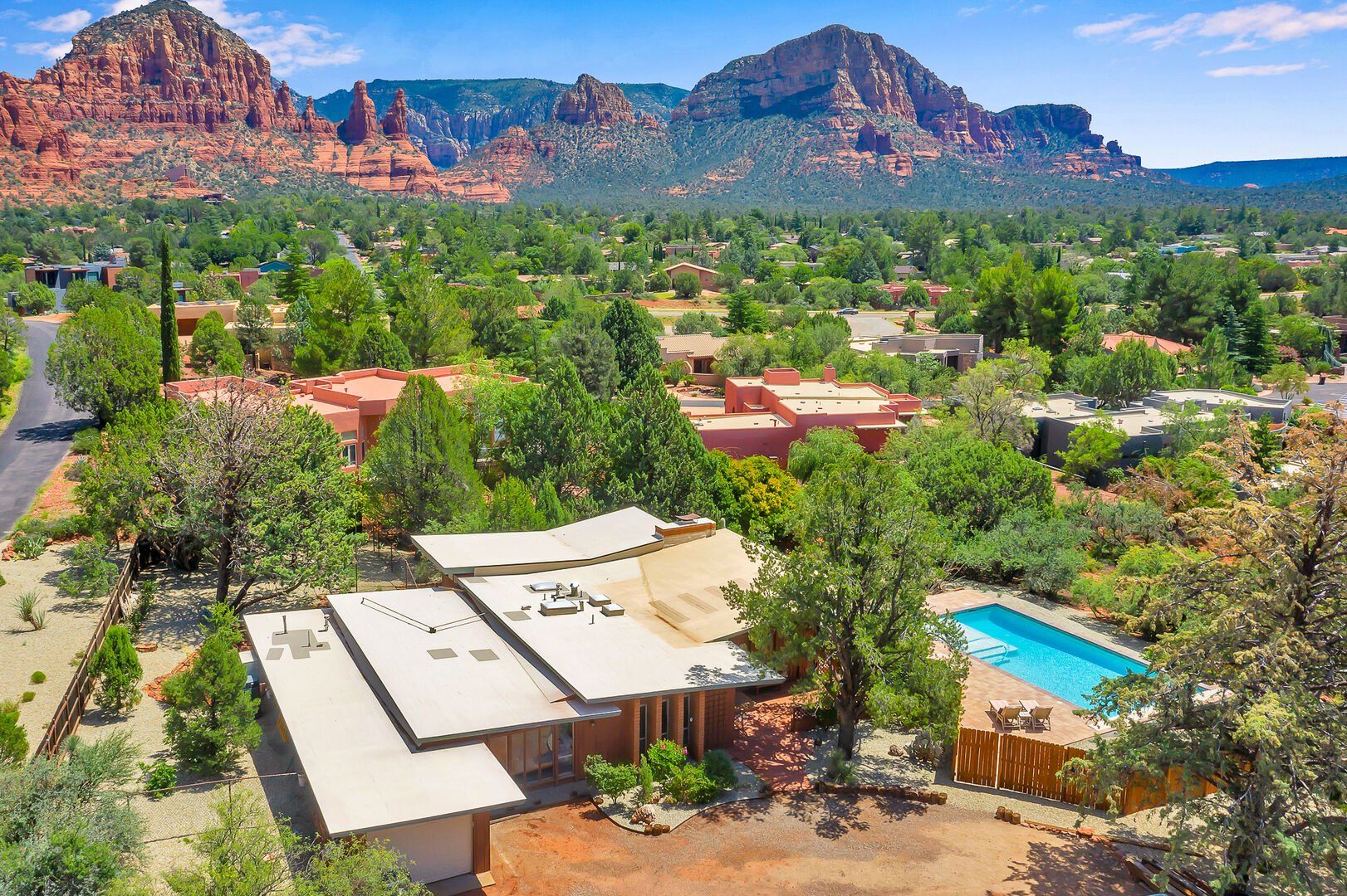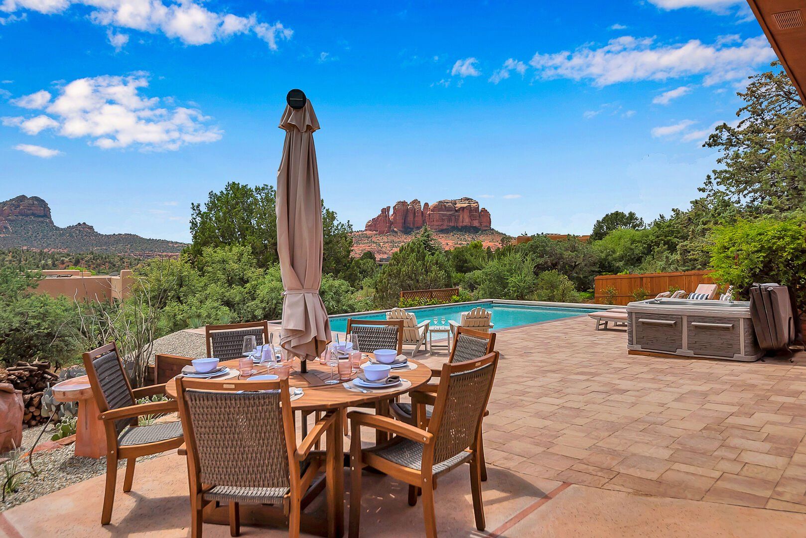 With views like that, it's easy to see why we fell in love with this Sedona home. From nearly every angle – inside or out – you'll be treated to panoramas of the famous red rocks. Our favourite spot is by the private pool – there's also a hot tub ideal for soaks under the stars. Head inside, and you'll find a light-filled living area ideal for group gatherings. Keen cooks will have everything they need in the kitchen, while those planning to work from home will appreciate the separate study. When you're in the mood to explore, there are hiking trails, restaurants, and shopping about a mile or so away.