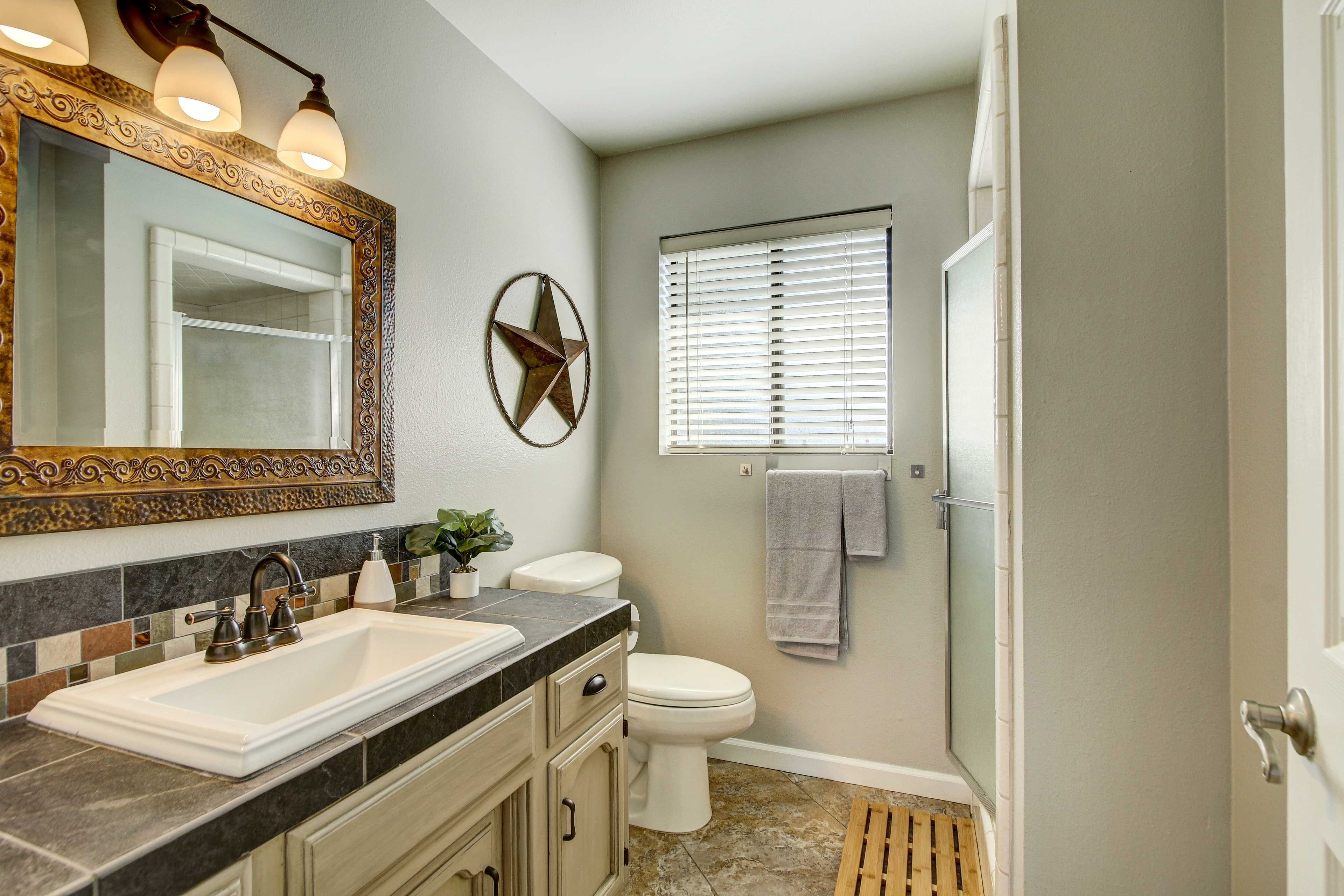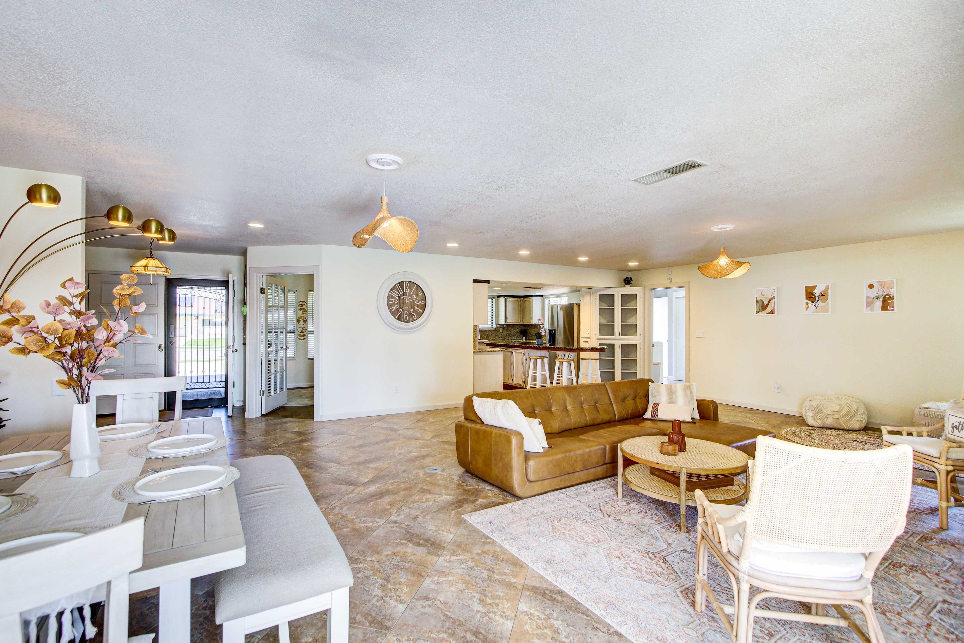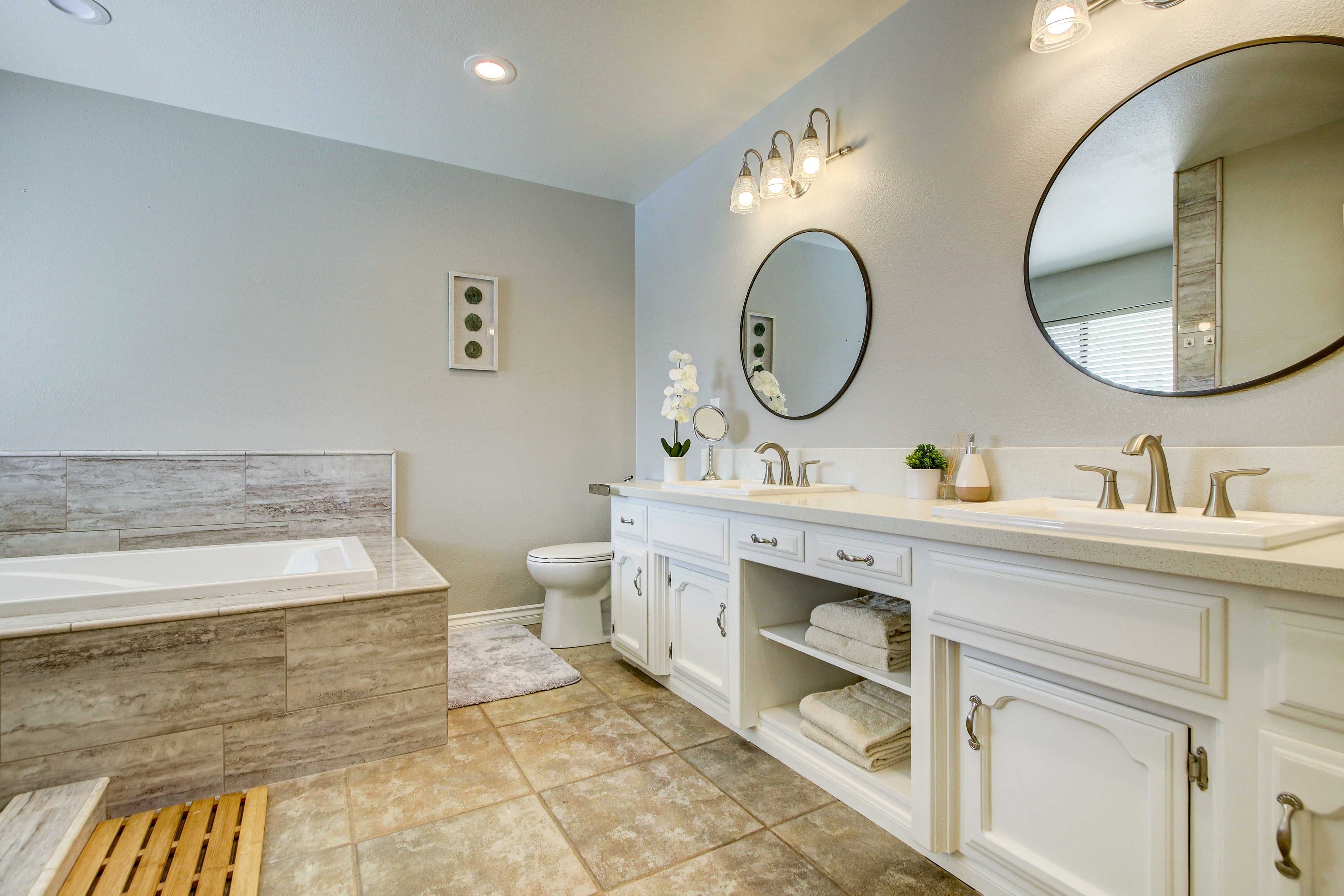 With a Cali-cool aesthetic and a backyard that transforms into the perfect playground, your home is a welcoming and inviting place to stay for the whole family. Fire up the grill and enjoy alfresco dining on the patio or relax by the sparkling pool — the interior of the home offers a neutral palette and top-of-the-range cabinetry. After a full day of sightseeing, soak in the bath while the kids retire to their bedrooms.