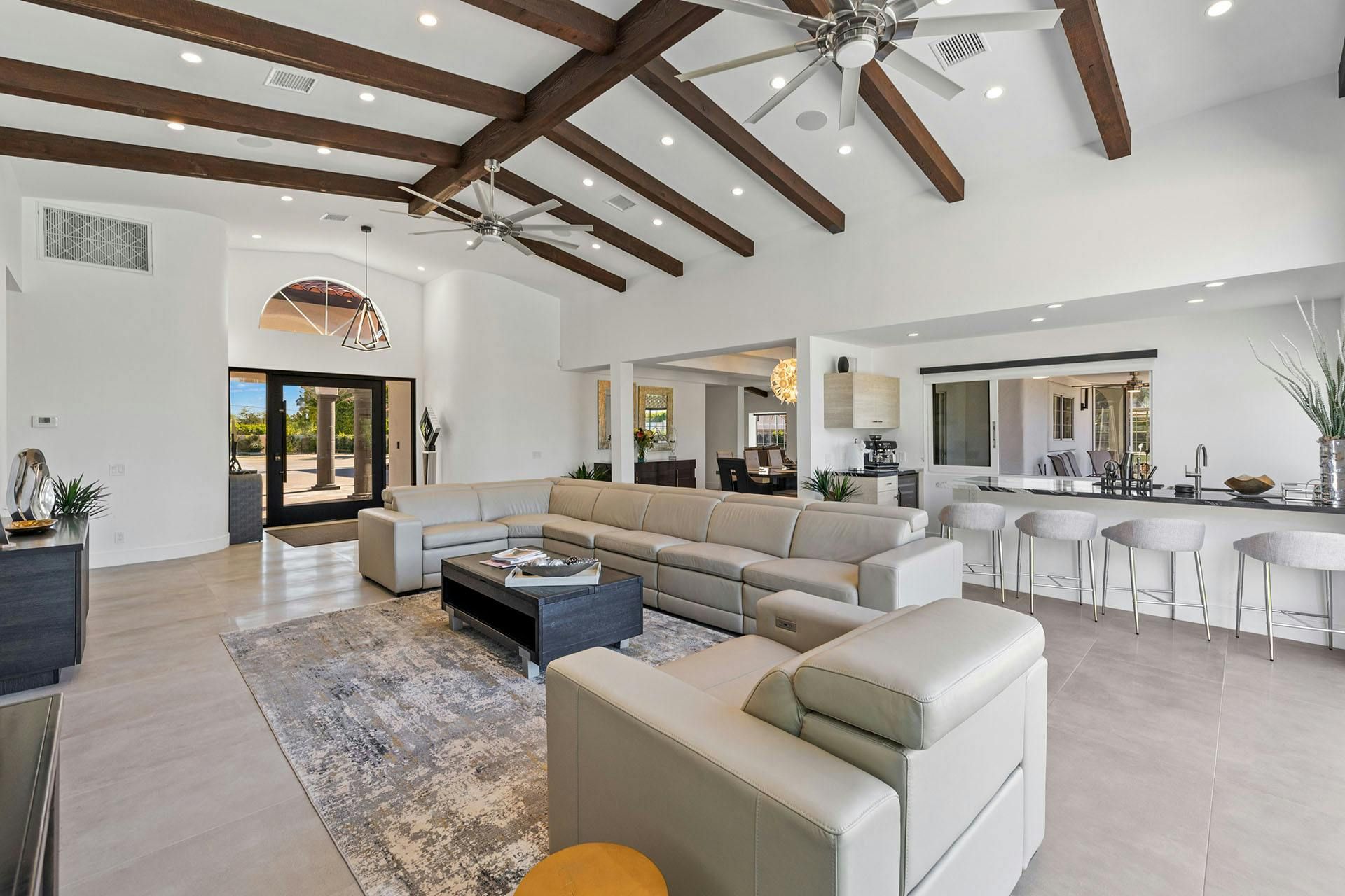 Enjoy some deluxe desert downtime in this bright and modern home. Outdoor fun is the order of the day here, with a big swimming pool, a pickleball court, and a putting green. Meanwhile inside, the generously-sized rooms offer plenty of space to make yourself at home (and sunny views from almost every angle). There’s lots to do in the local area too, from golfing and hiking to tennis and shopping – making life in the desert livelier than you might expect.