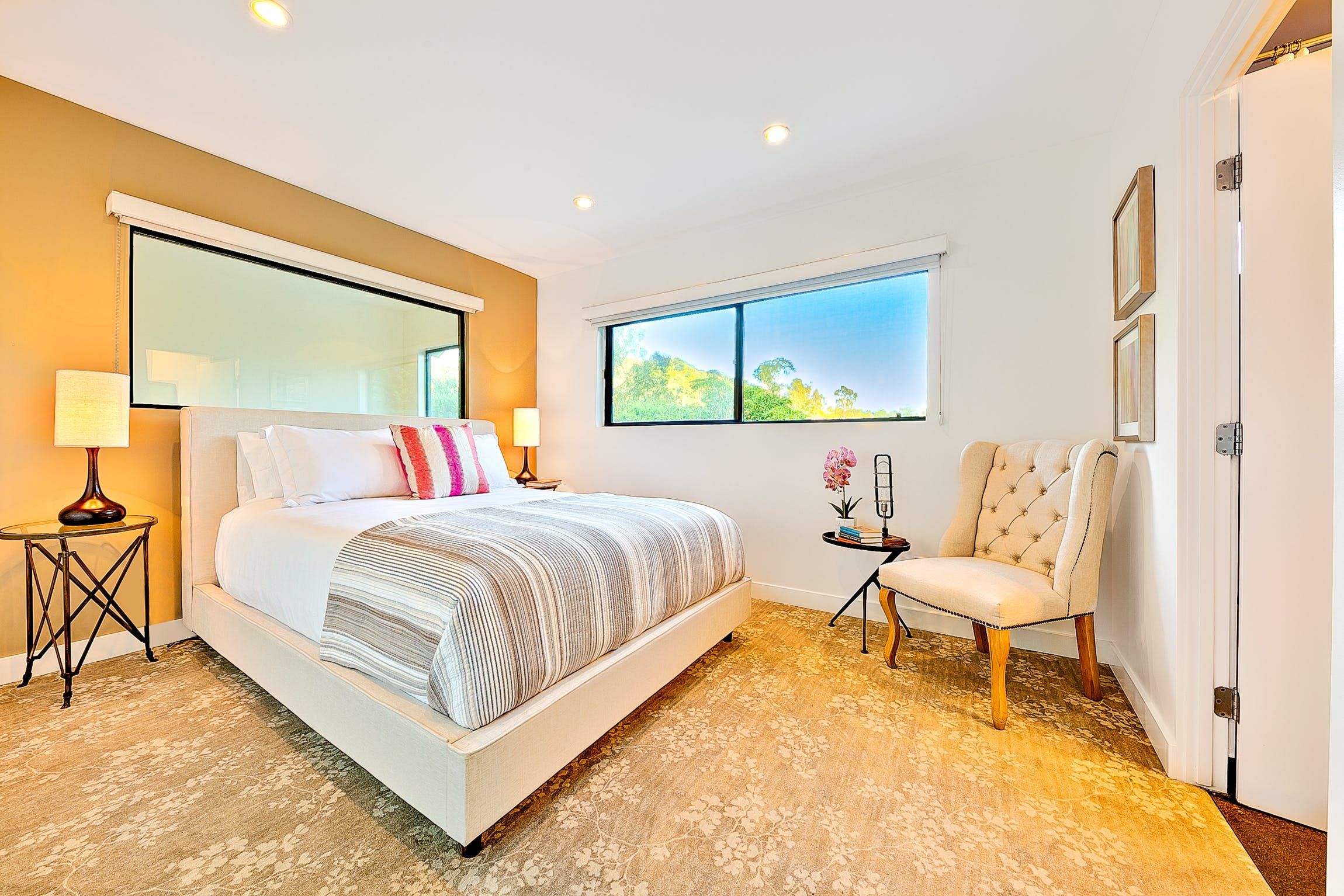 Lounge in the Californian sunshine before cooling off in the waters of your private swimming pool. Then, why not dry off by the fire pit or take advantage of the many bright living spaces inside, and relax with a good book?