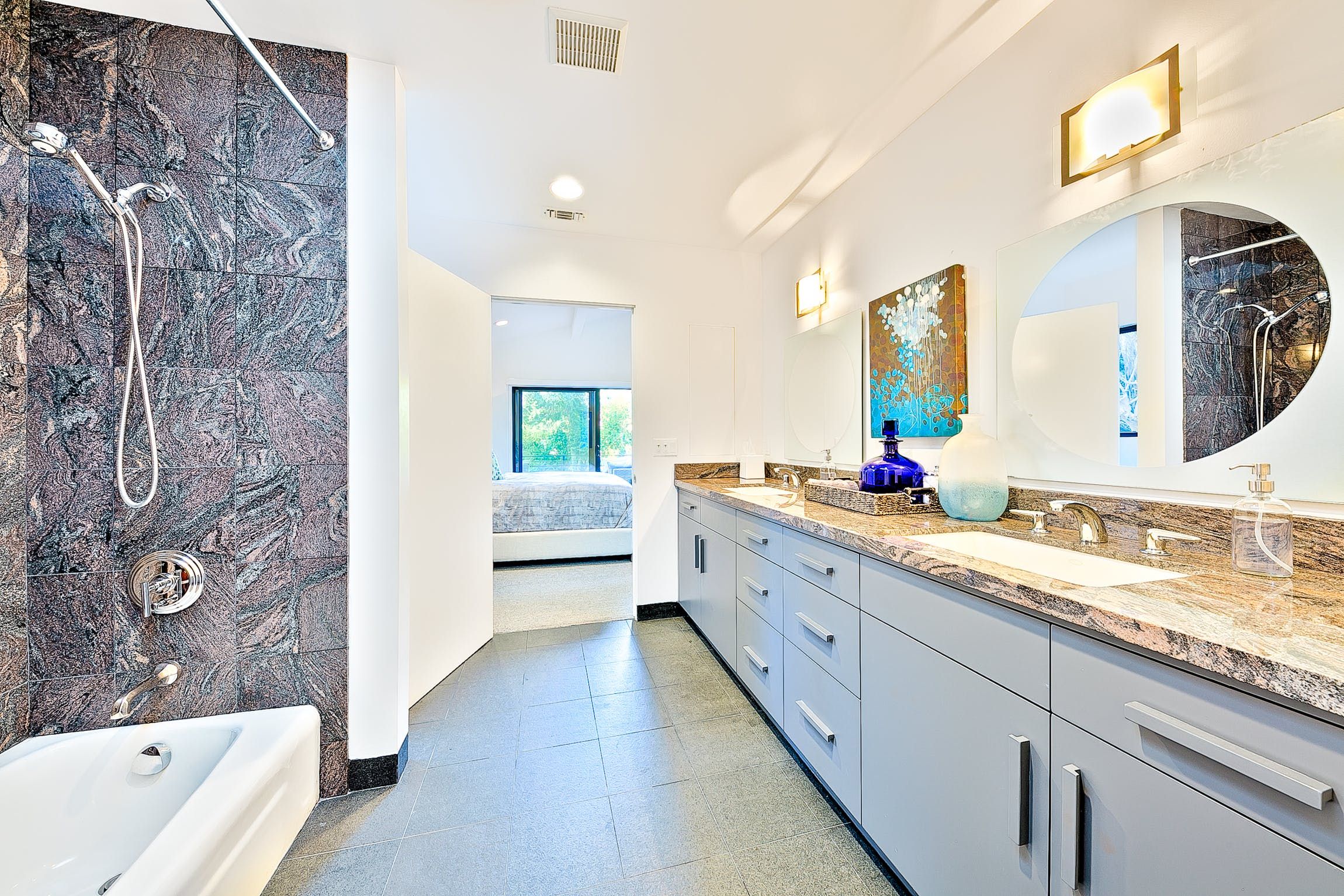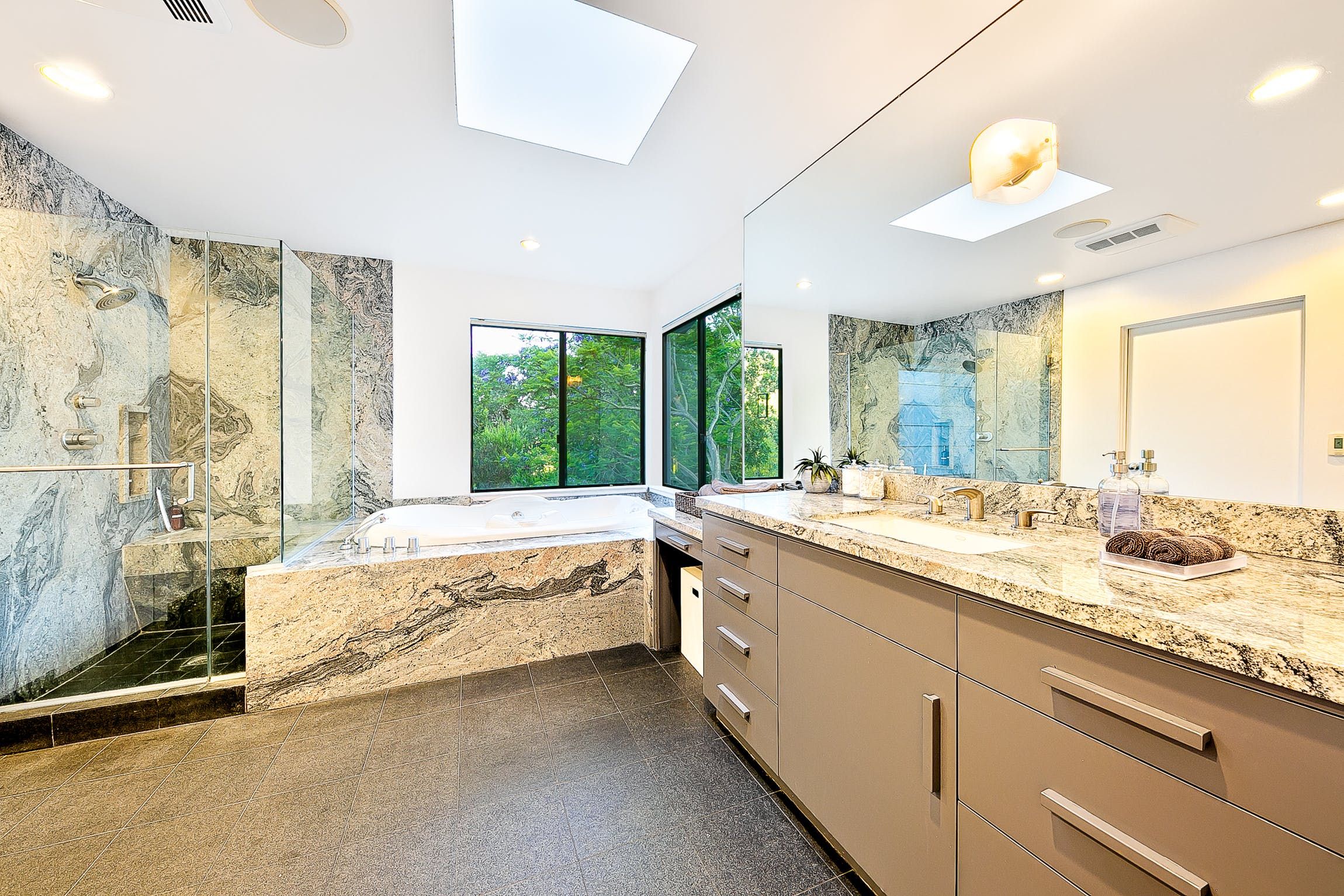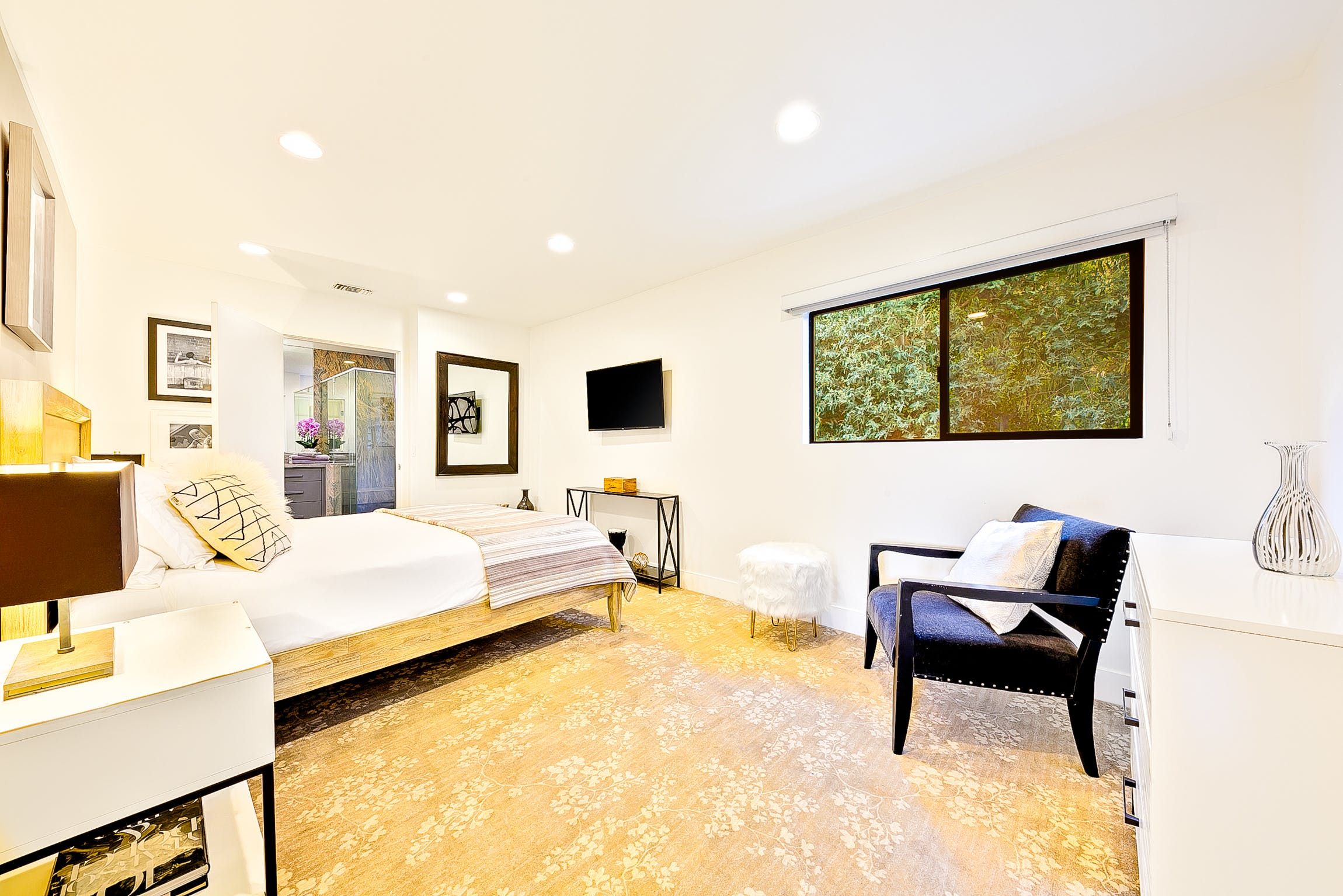 Located on a private hillside retreat, this fantastic home offers the tranquillity and privacy afforded by the greenery and trees that surround the garden while also being perfectly situated to explore Beverly Hills and the wider LA area. Wake up each morning and enjoy a coffee on the balcony overlooking the pool, or even take a seat at the bistro table beside the pool itself as you enjoy your breakfast.