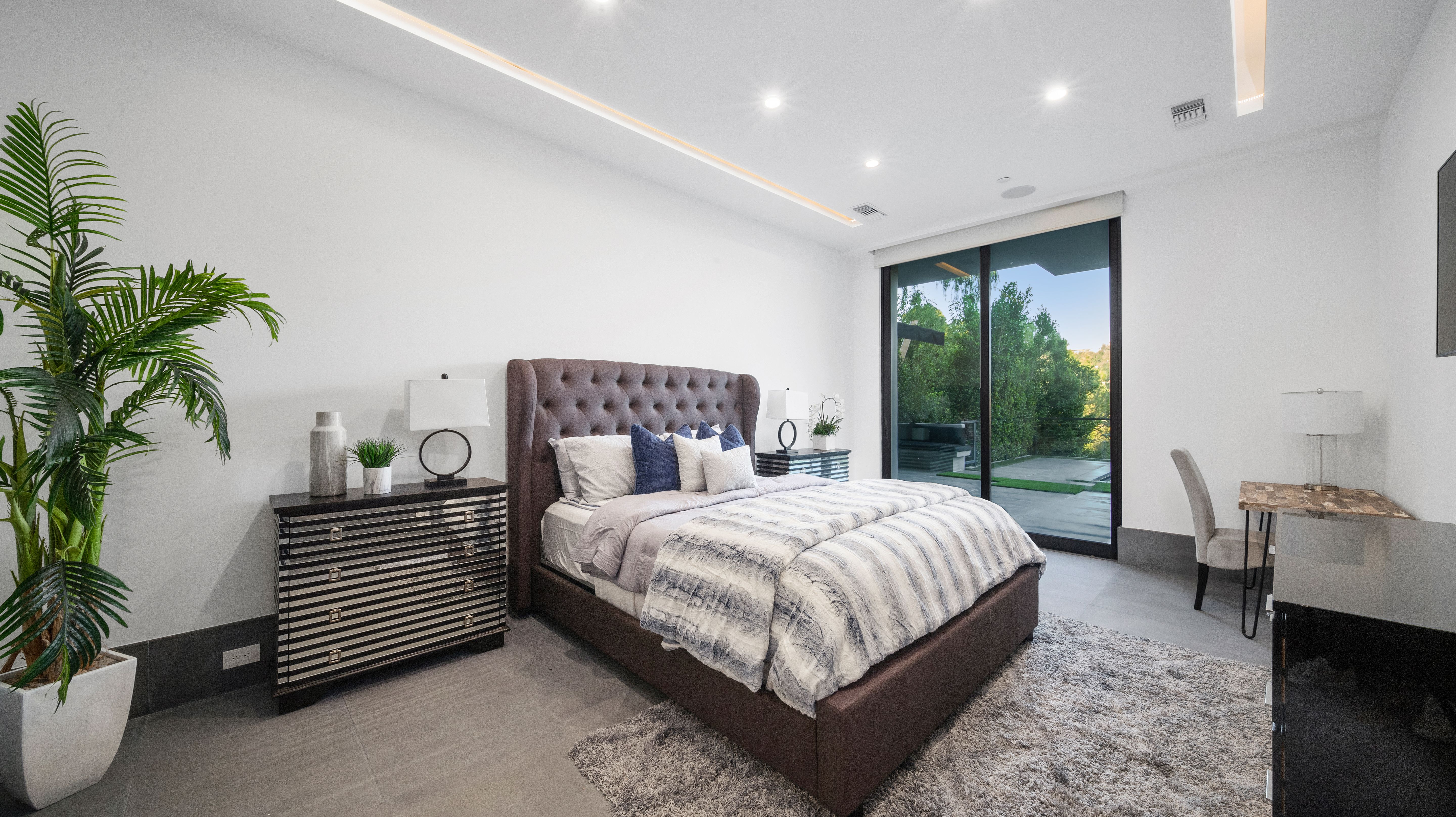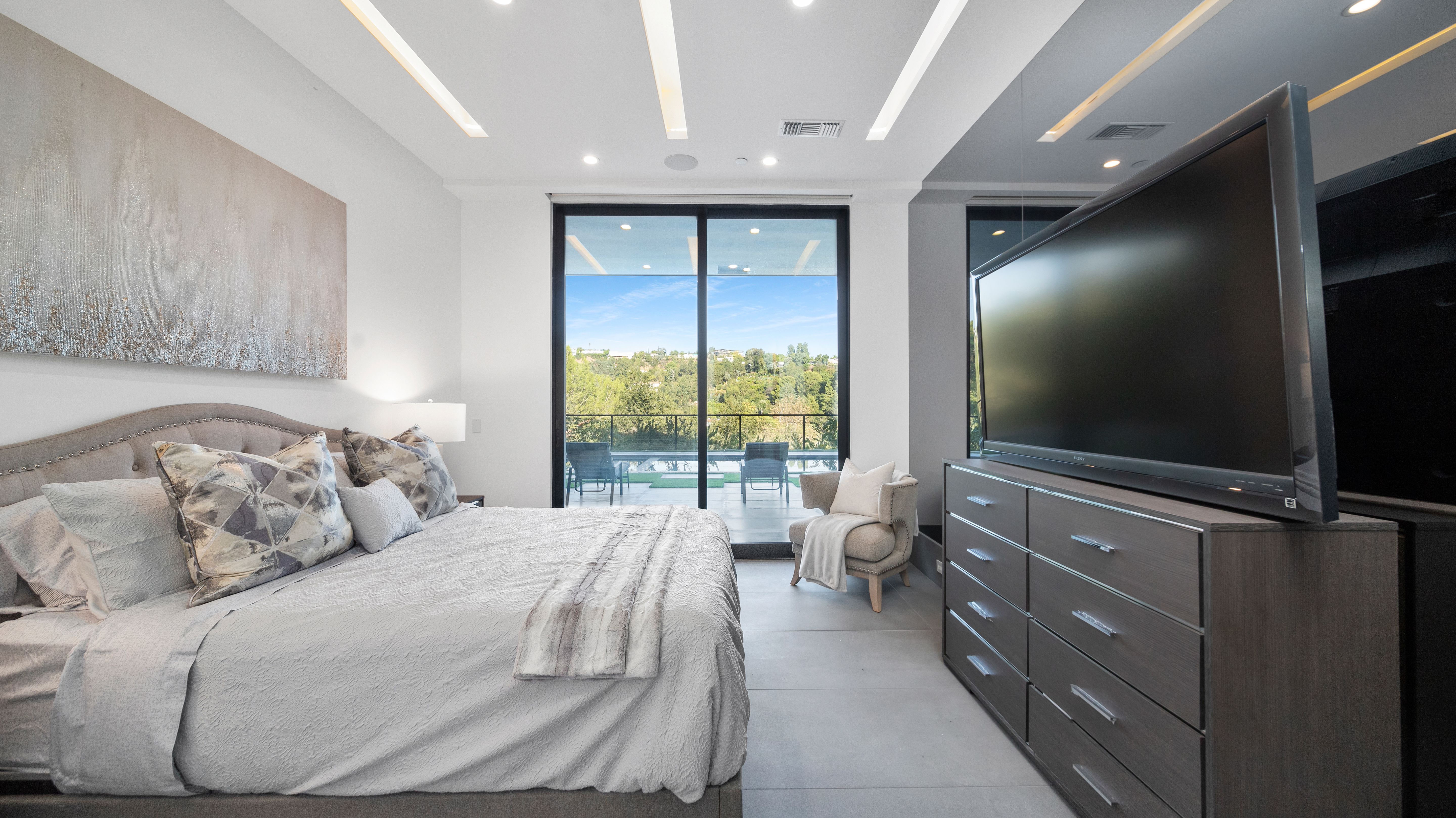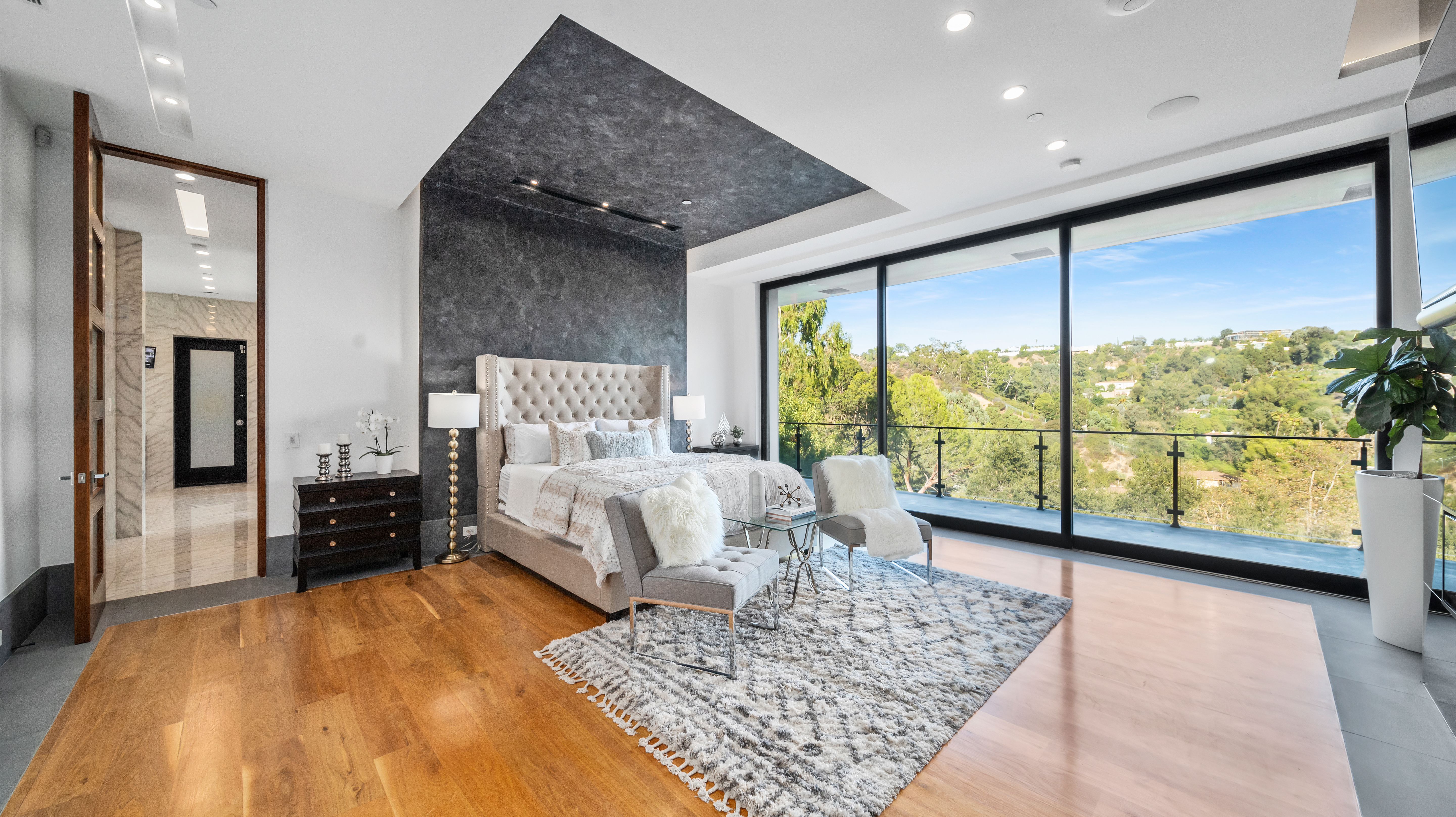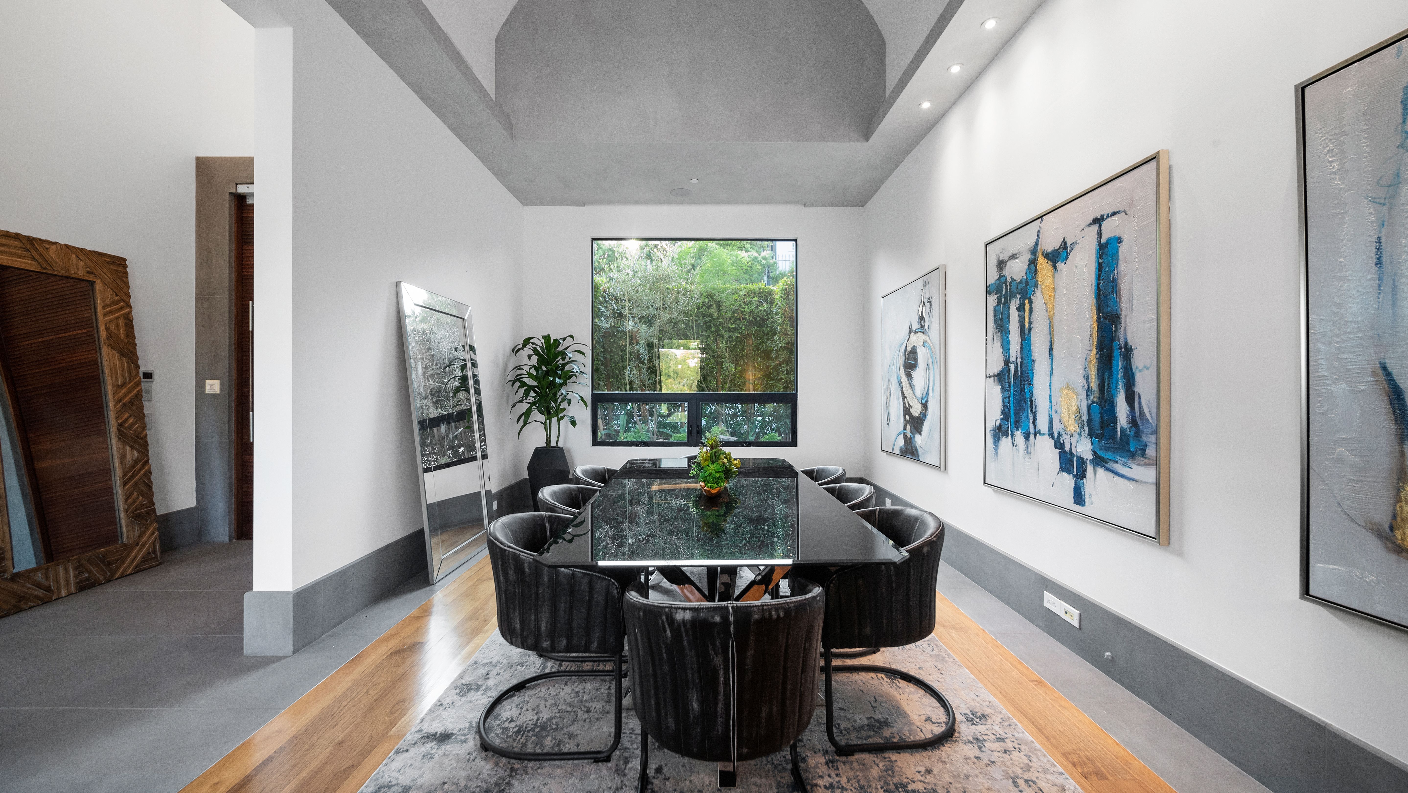 Tucked away on a quiet cul-de-sac in Beverly Hills, this home offers an elegant experience in a great location. We love the luxurious details that make this house stand out, like the entertainment area with its bar, wine cellar, and home cinema setup. From here, you can slide back the floor-to-ceiling glass doors and step out to the pool – perfect for making the most of the LA sunshine. The main bedroom suite is special too, featuring a sauna, huge walk-in wardrobe (hello, shopping trips), and a private terrace overlooking the hills.