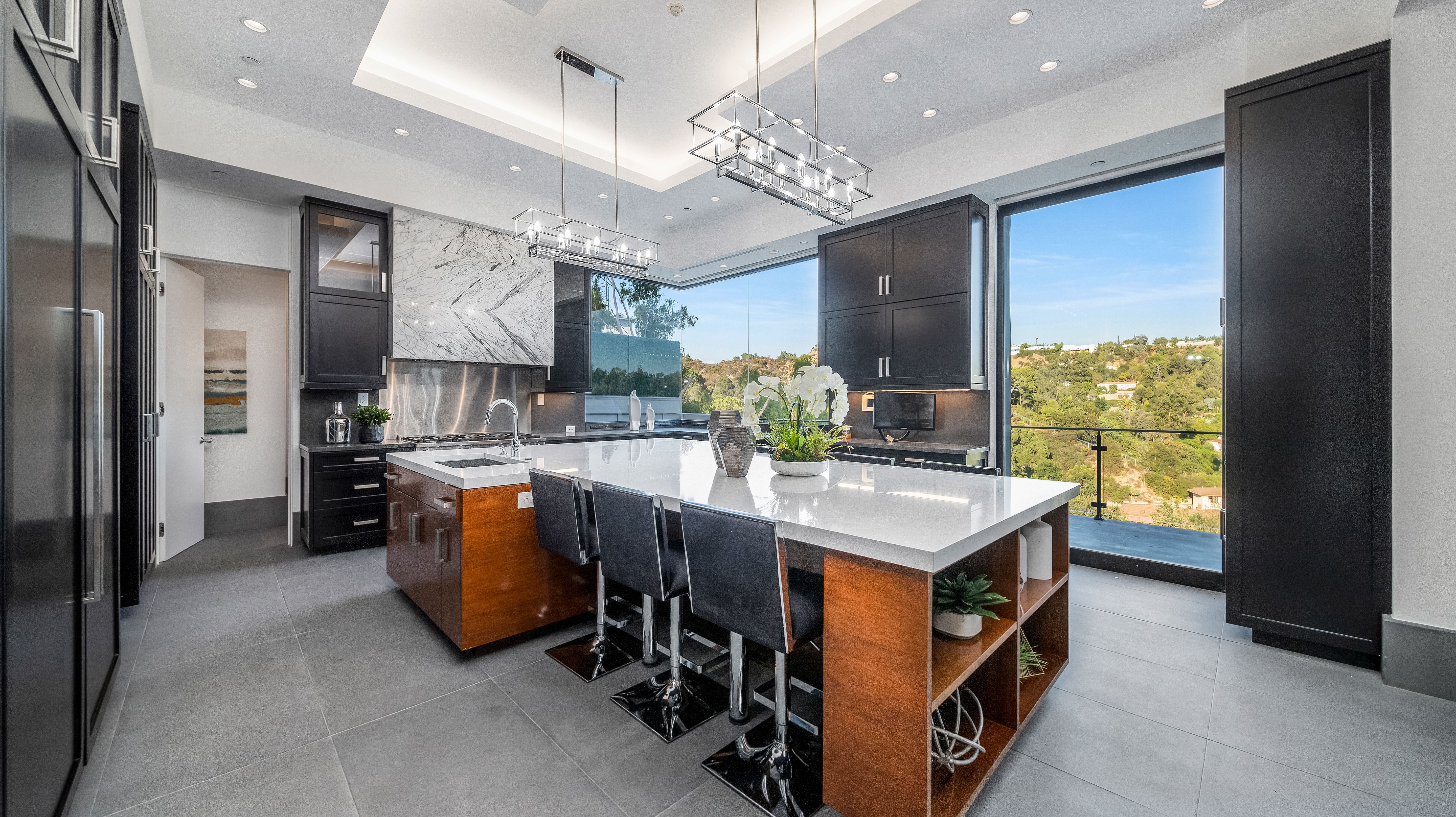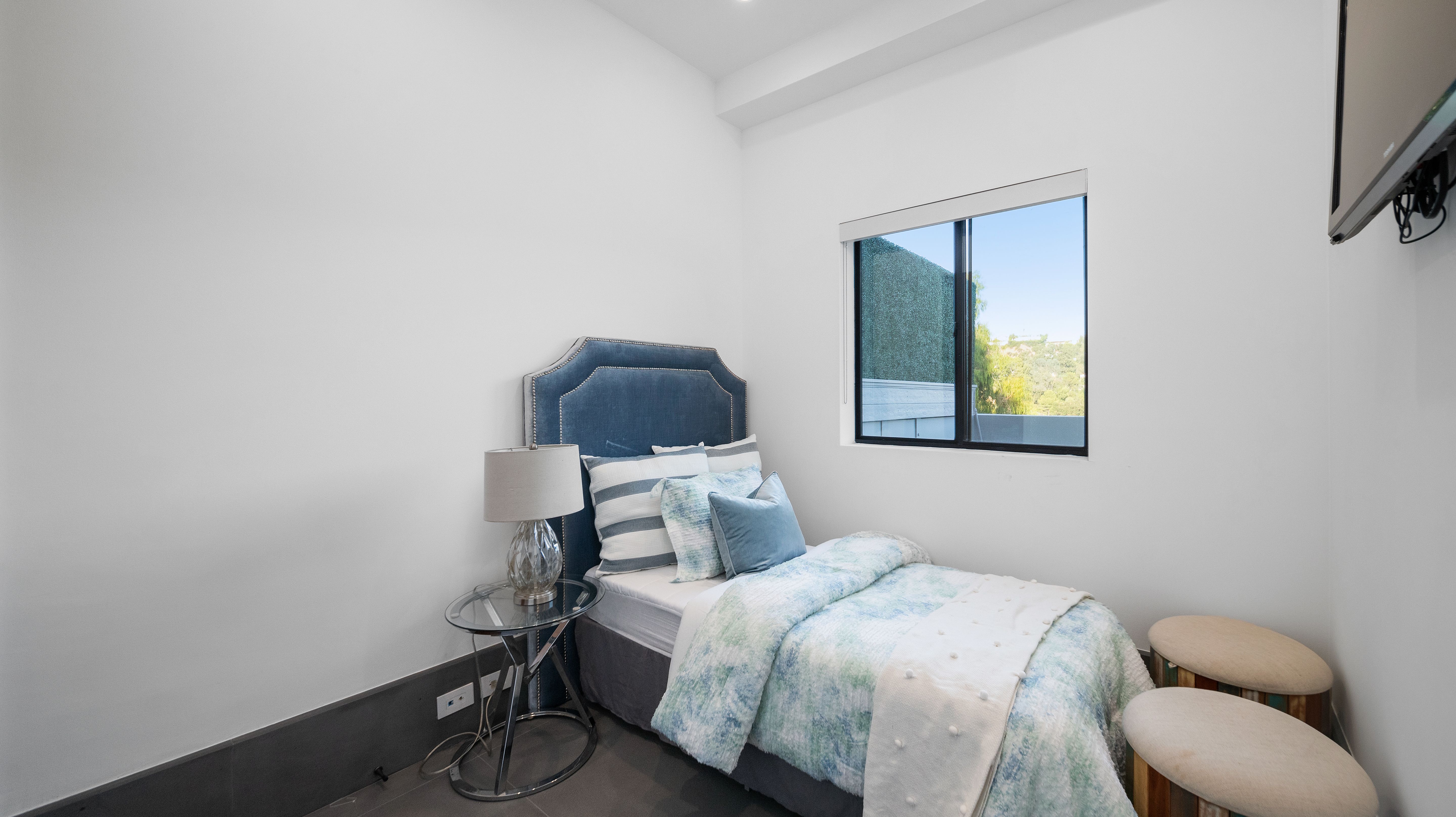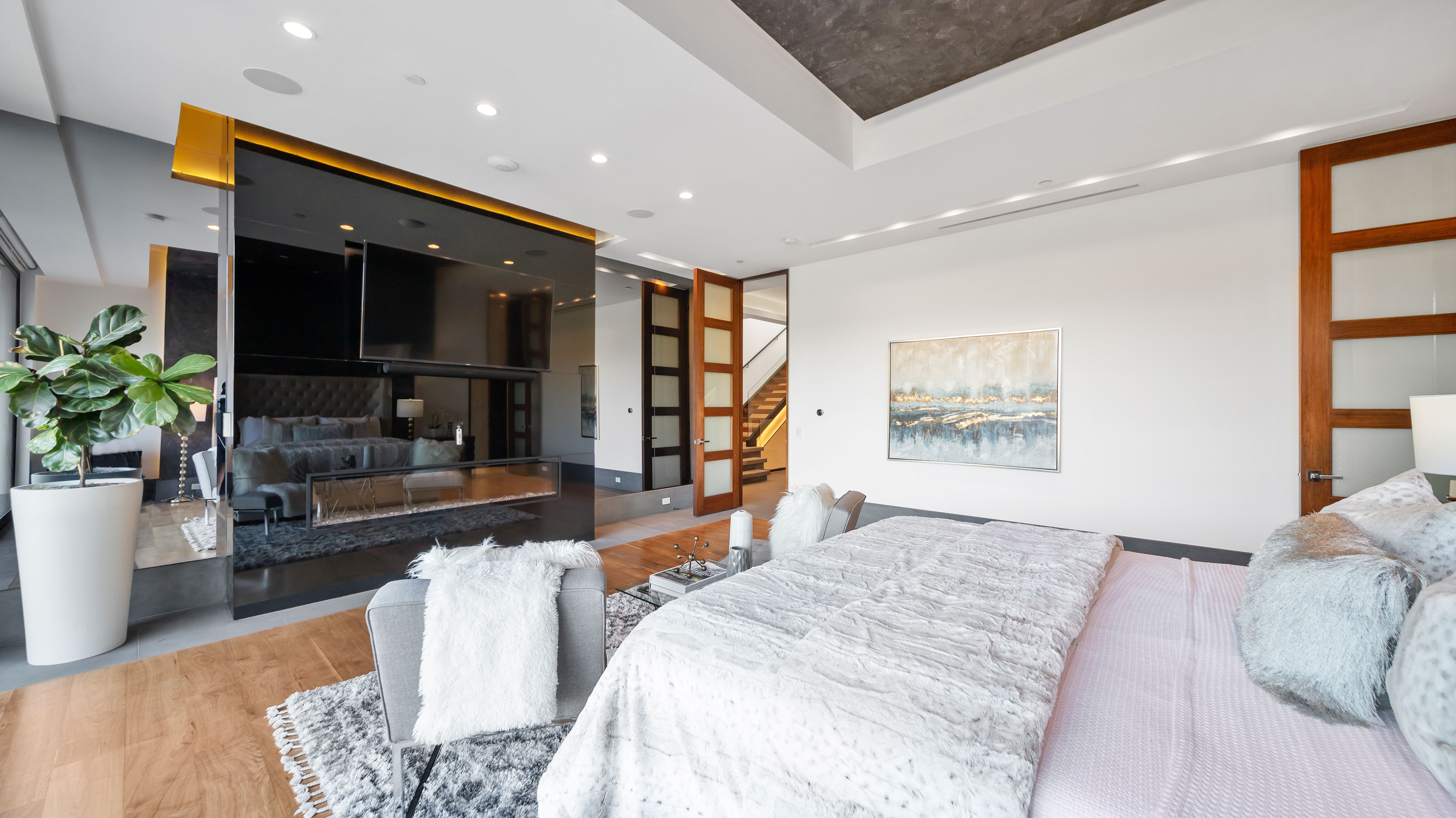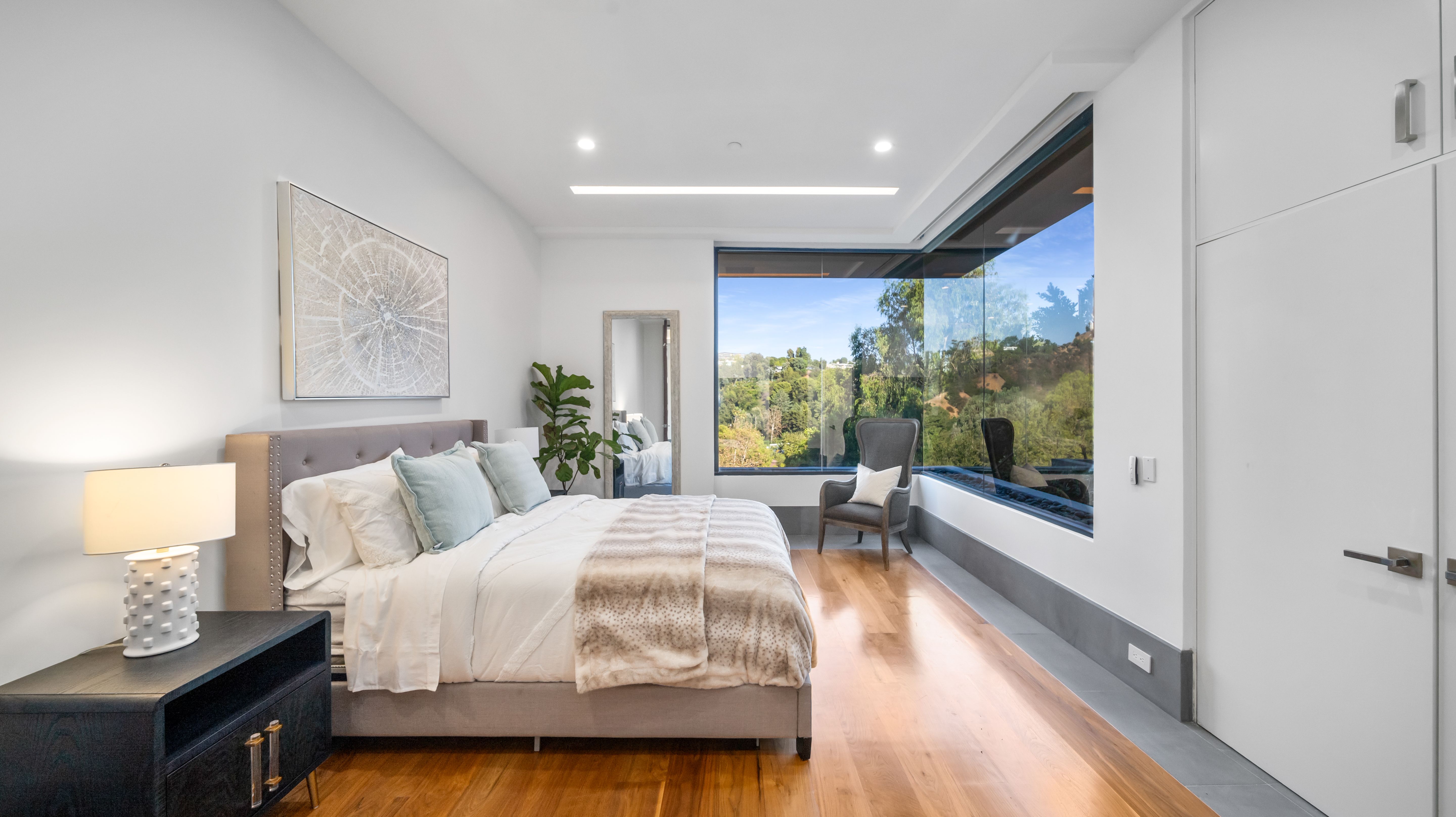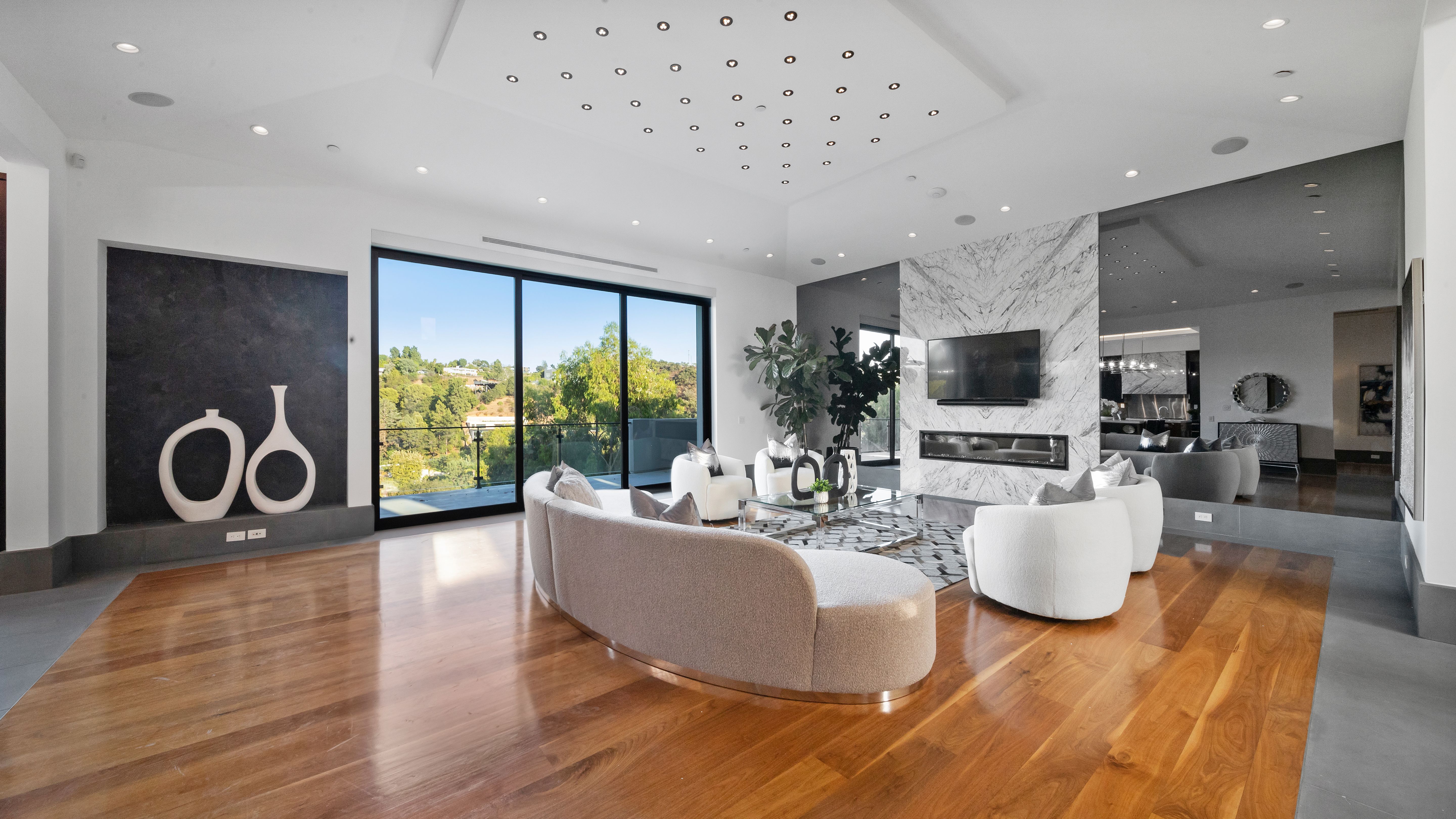 Tucked away on a quiet cul-de-sac in Beverly Hills, this home offers an elegant experience in a great location. We love the luxurious details that make this house stand out, like the entertainment area with its bar, wine cellar, and home cinema setup. From here, you can slide back the floor-to-ceiling glass doors and step out to the pool – perfect for making the most of the LA sunshine. The main bedroom suite is special too, featuring a sauna, huge walk-in wardrobe (hello, shopping trips), and a private terrace overlooking the hills.