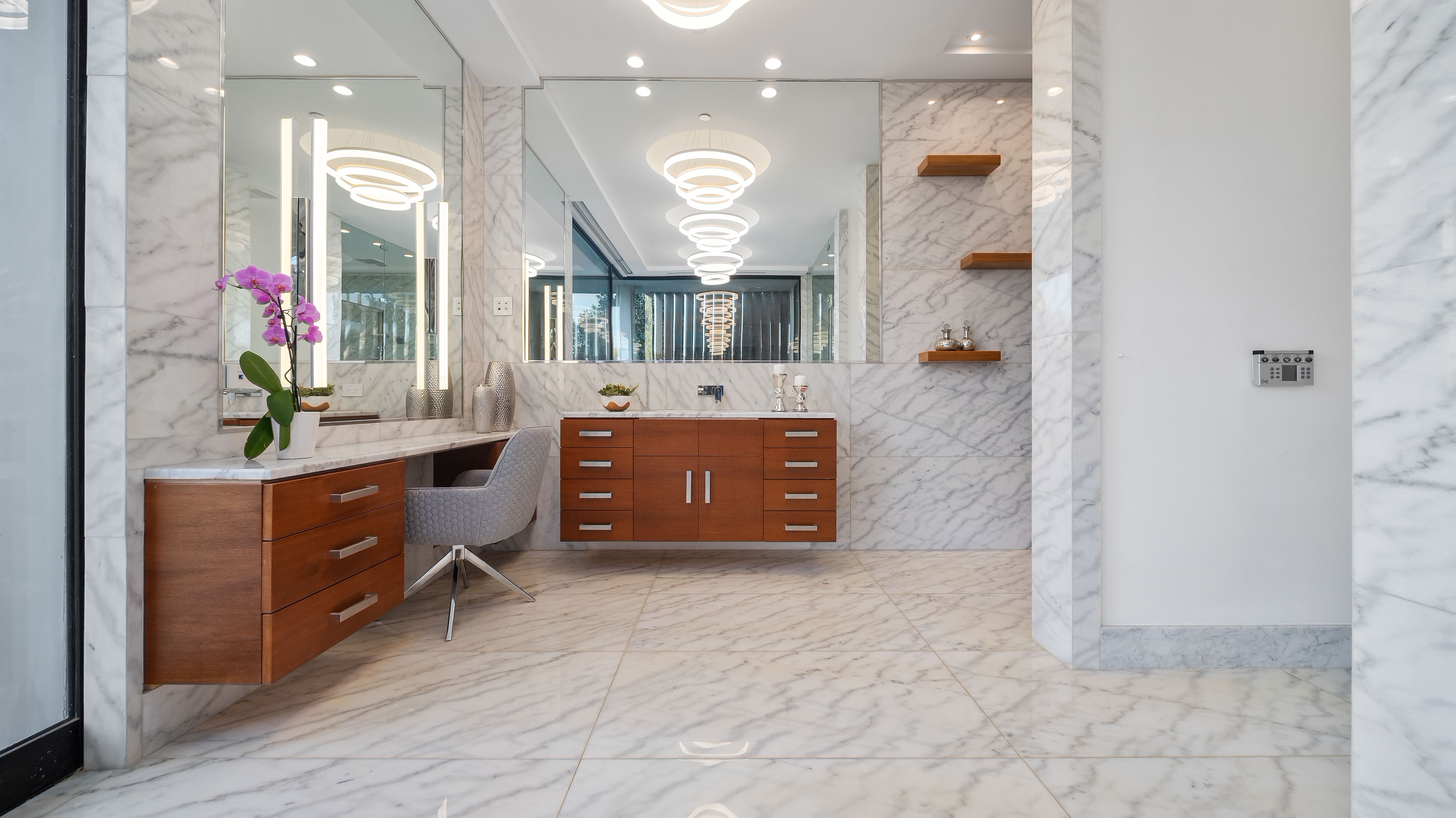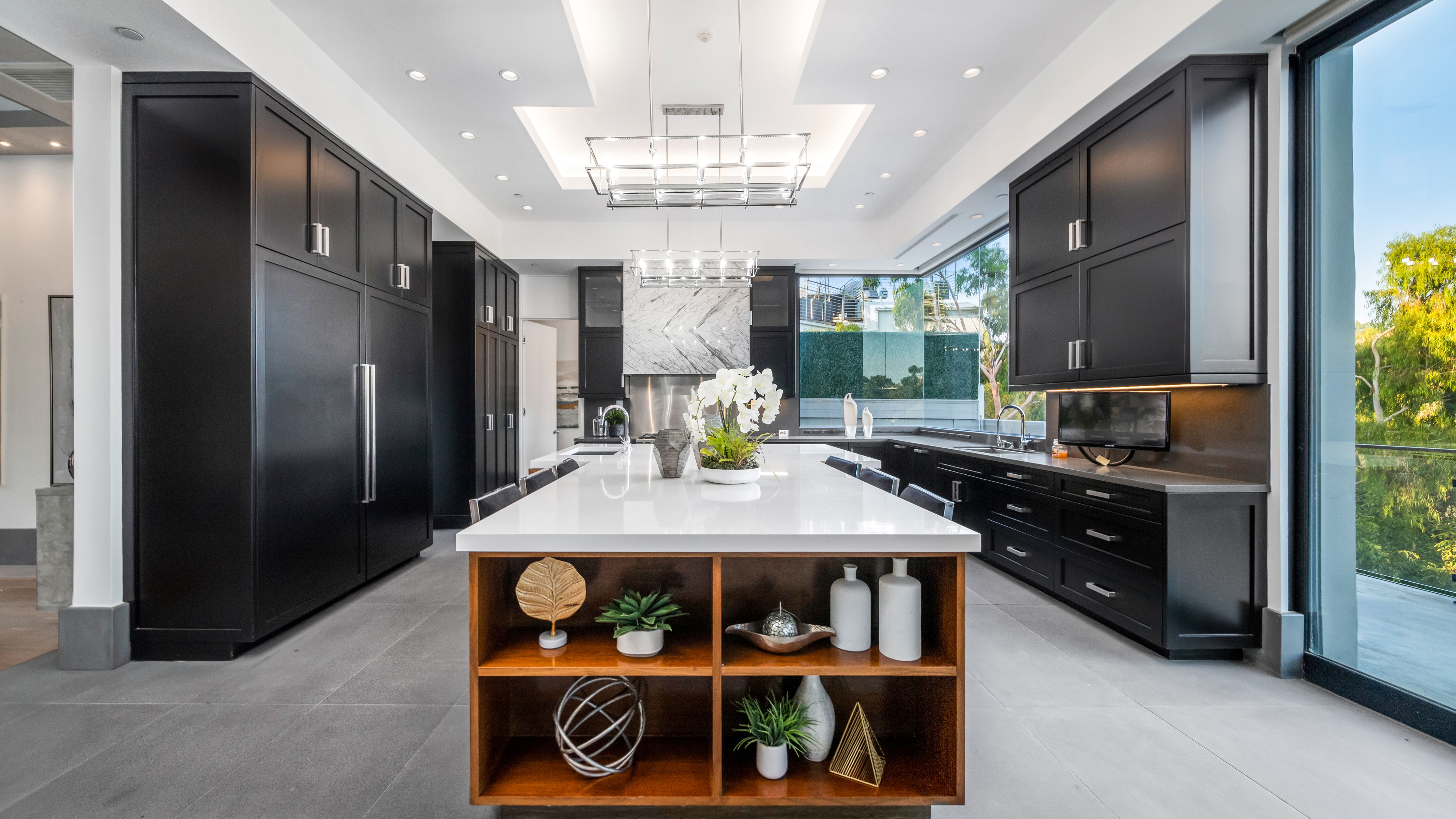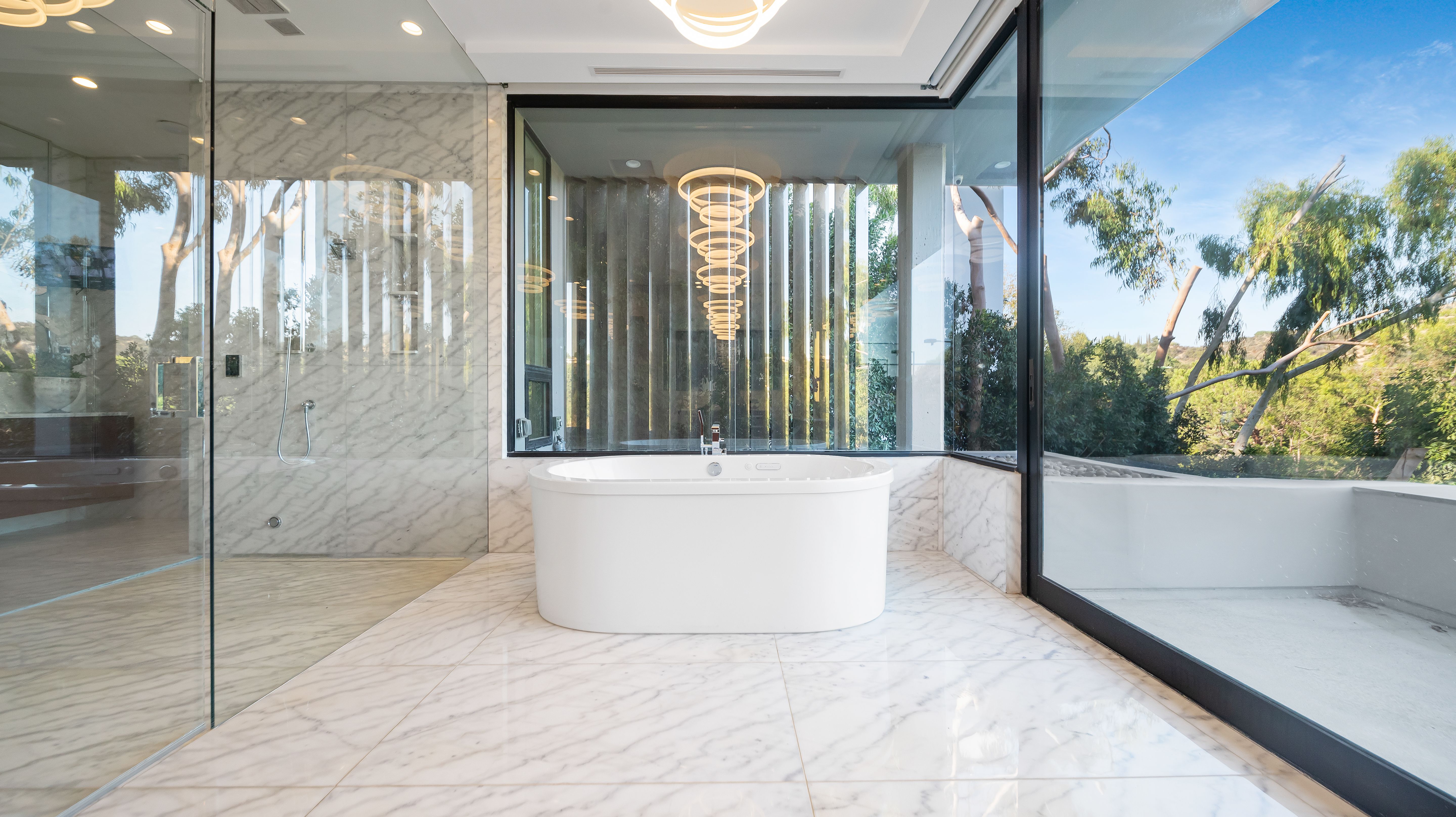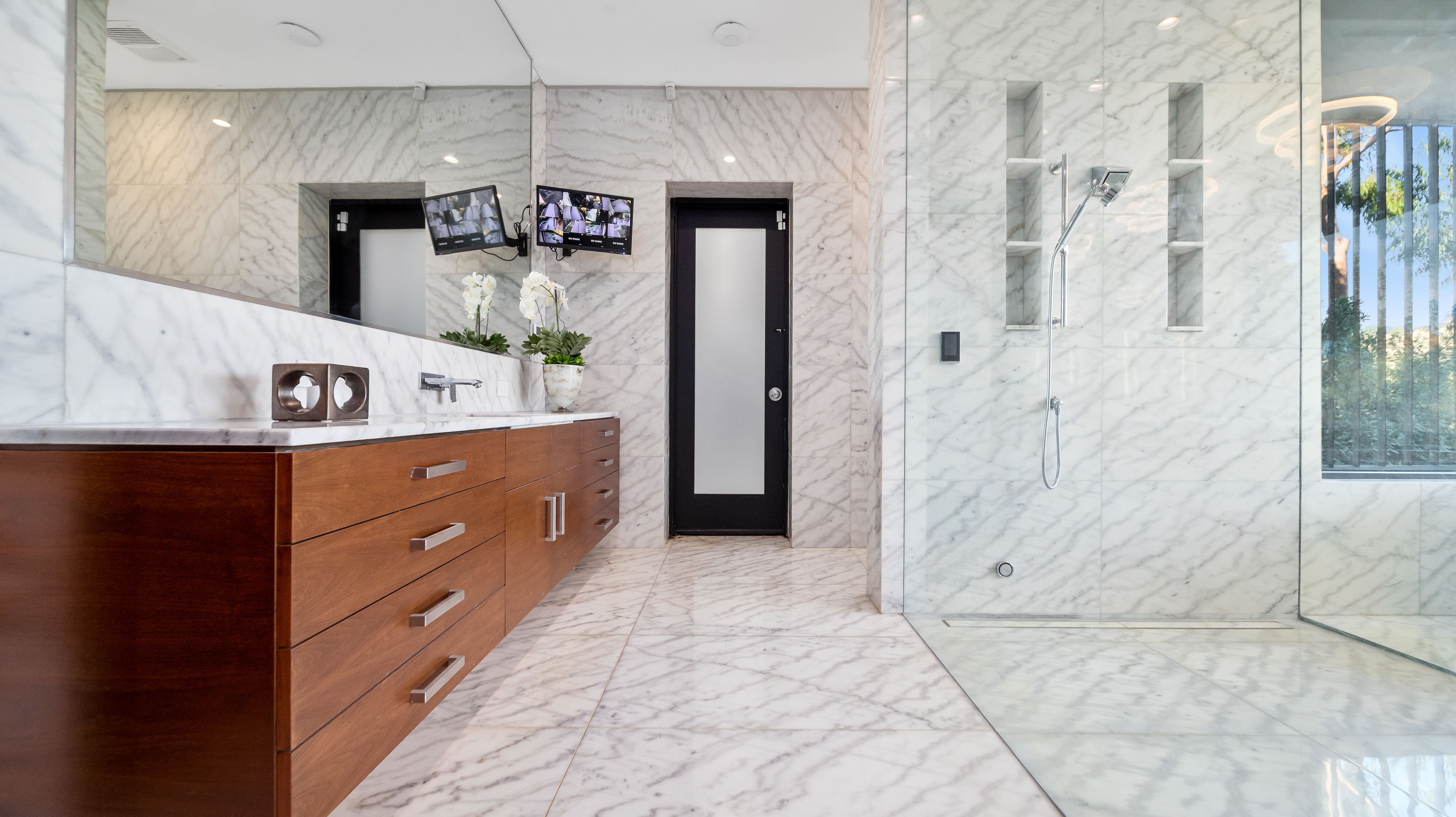Tucked away on a quiet cul-de-sac in Beverly Hills, this home offers an elegant experience in a great location. We love the luxurious details that make this house stand out, like the entertainment area with its bar, wine cellar, and home cinema setup. From here, you can slide back the floor-to-ceiling glass doors and step out to the pool – perfect for making the most of the LA sunshine. The main bedroom suite is special too, featuring a sauna, huge walk-in wardrobe (hello, shopping trips), and a private terrace overlooking the hills.