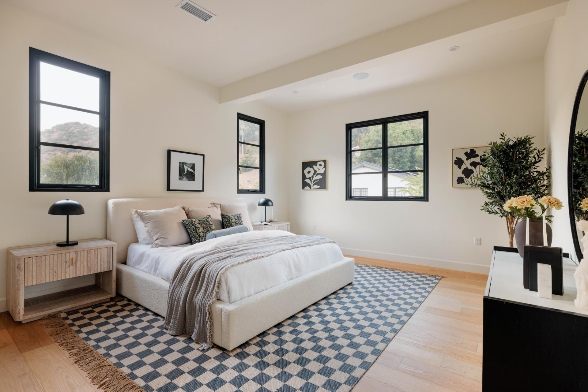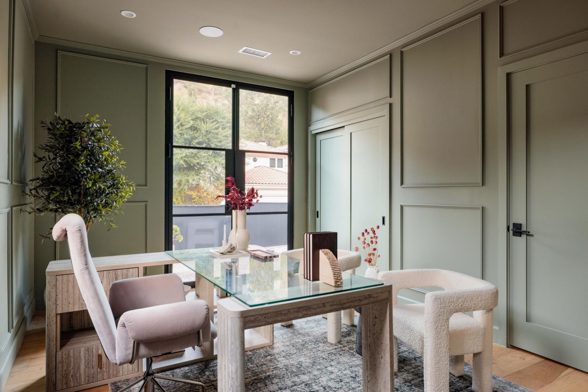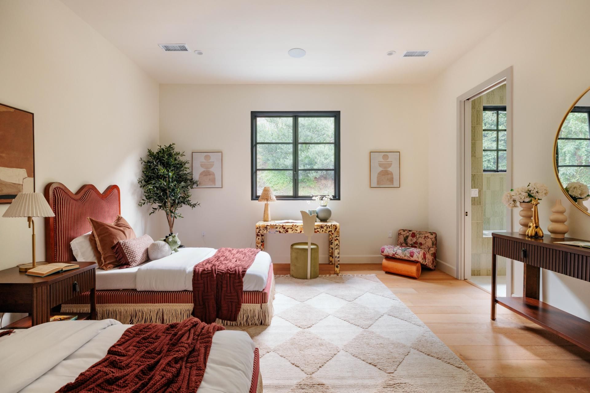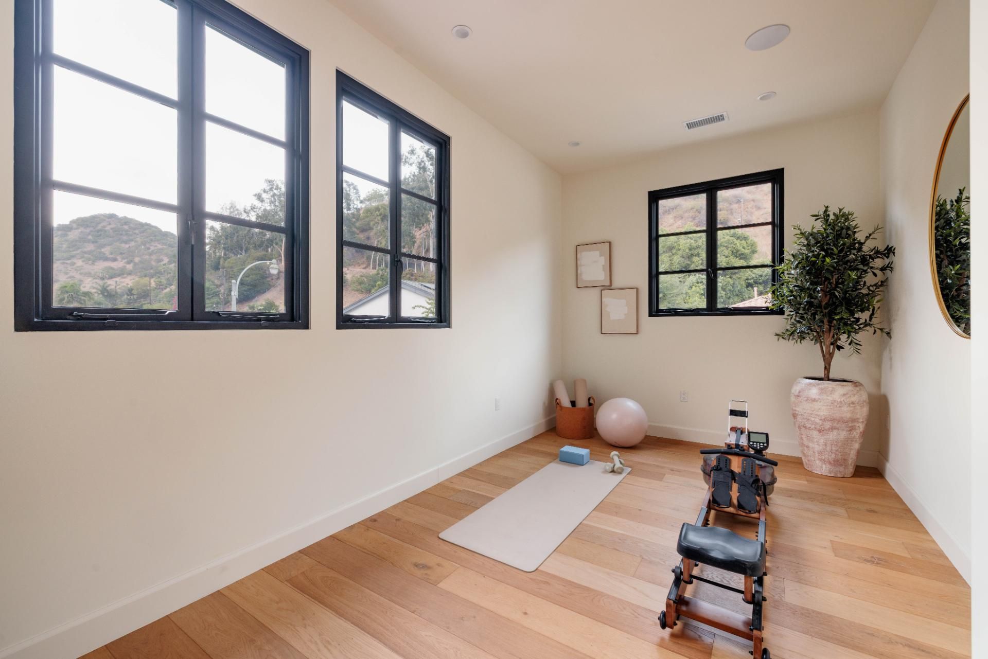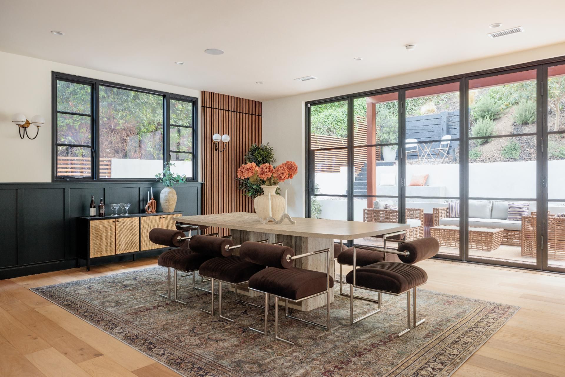 This Beverly Hills home is modern California living at its most polished. Set on a quiet street near scenic walking trails, it’s the perfect blend of peaceful-meets-city living. The open-plan kitchen flows into the living room, designed with family life in mind. Outside, the terrace features a pool and seating to create a private retreat. You’ll find another terrace upstairs, off the master suite, too. With a fitness room, office and spa-inspired bathrooms, long stays at this property are effortless.