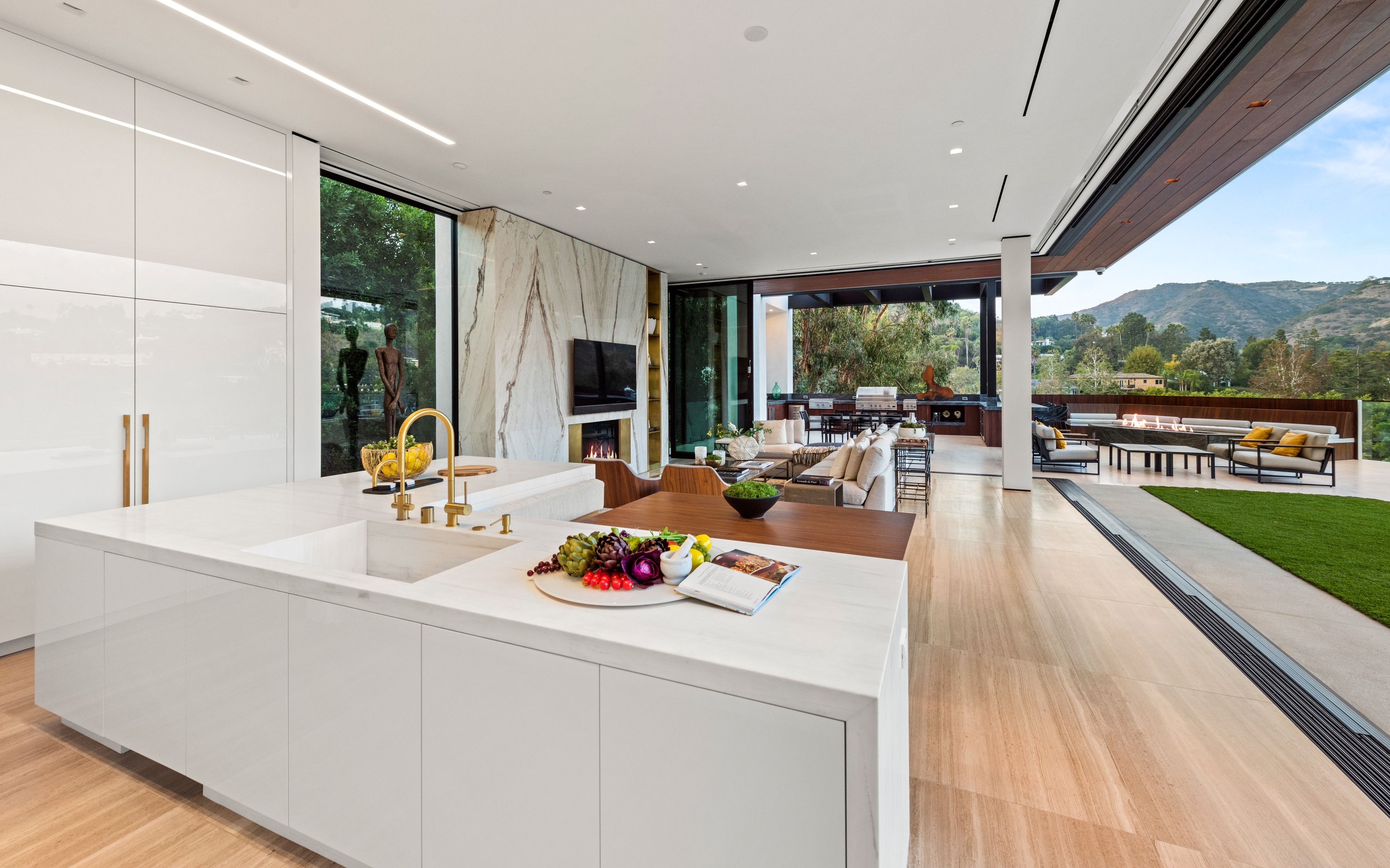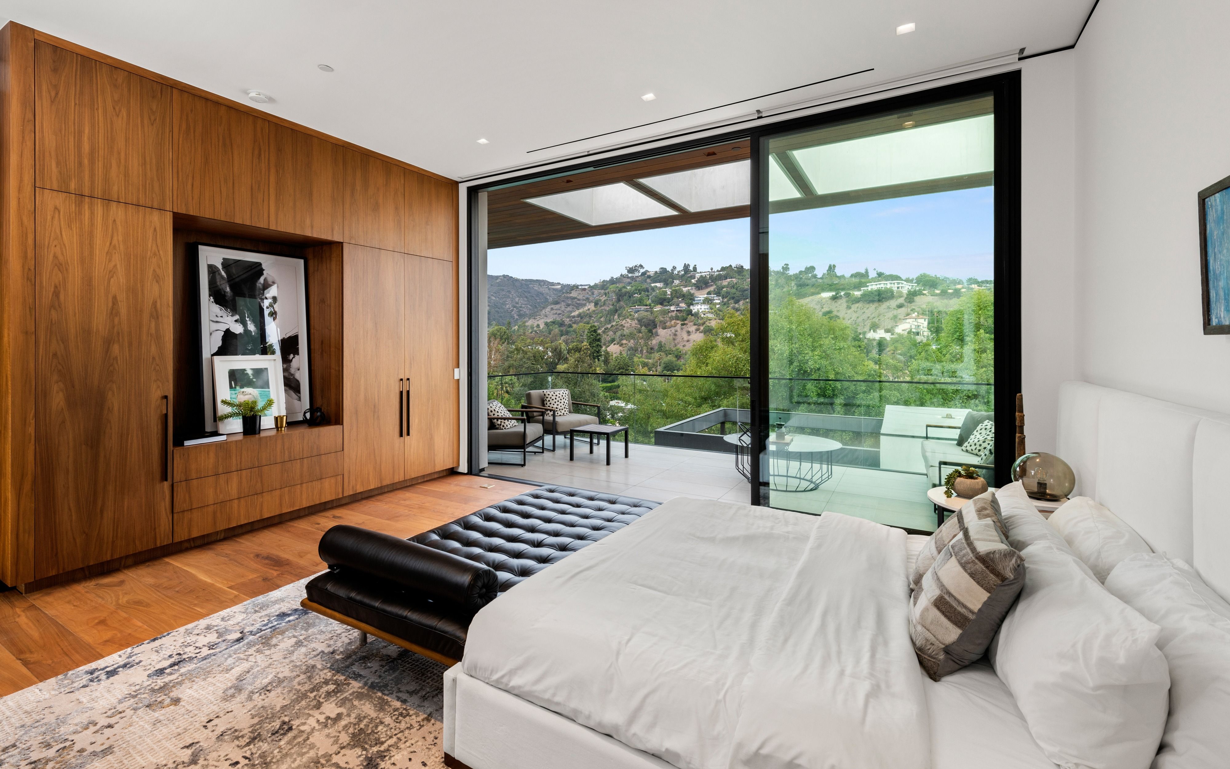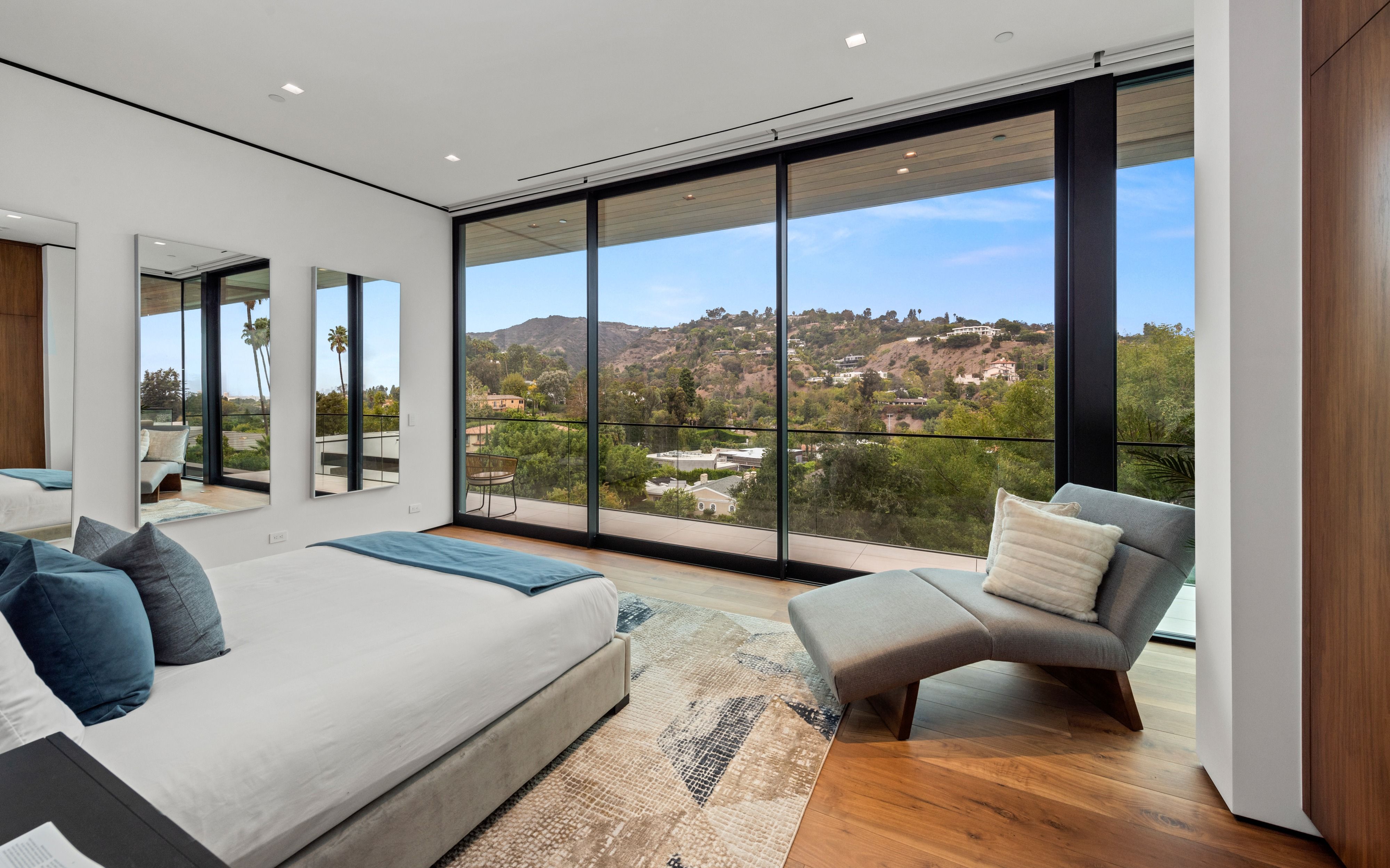 Live in the lap of LA luxury at this stunning hillside home. Set in an affluent residential neighbourhood in the Santa Monica mountains, the contemporary villa enjoy floor-to-ceiling glass doors throughout, with views from all corners. The bedrooms all enjoy access to the balcony or terrace, and the living room doors open fully for seamless indoor-outdoor living. You won't want to spend all your time gazing at the views, however, as this home also boasts a private cinema room for movie nights. There is also a gym on site. You're not far from some of the city's most famous sights here - the Hollywood sign, the Hollywood Walk of Fame and the Griffith Observatory are all within a thirty-minute drive.