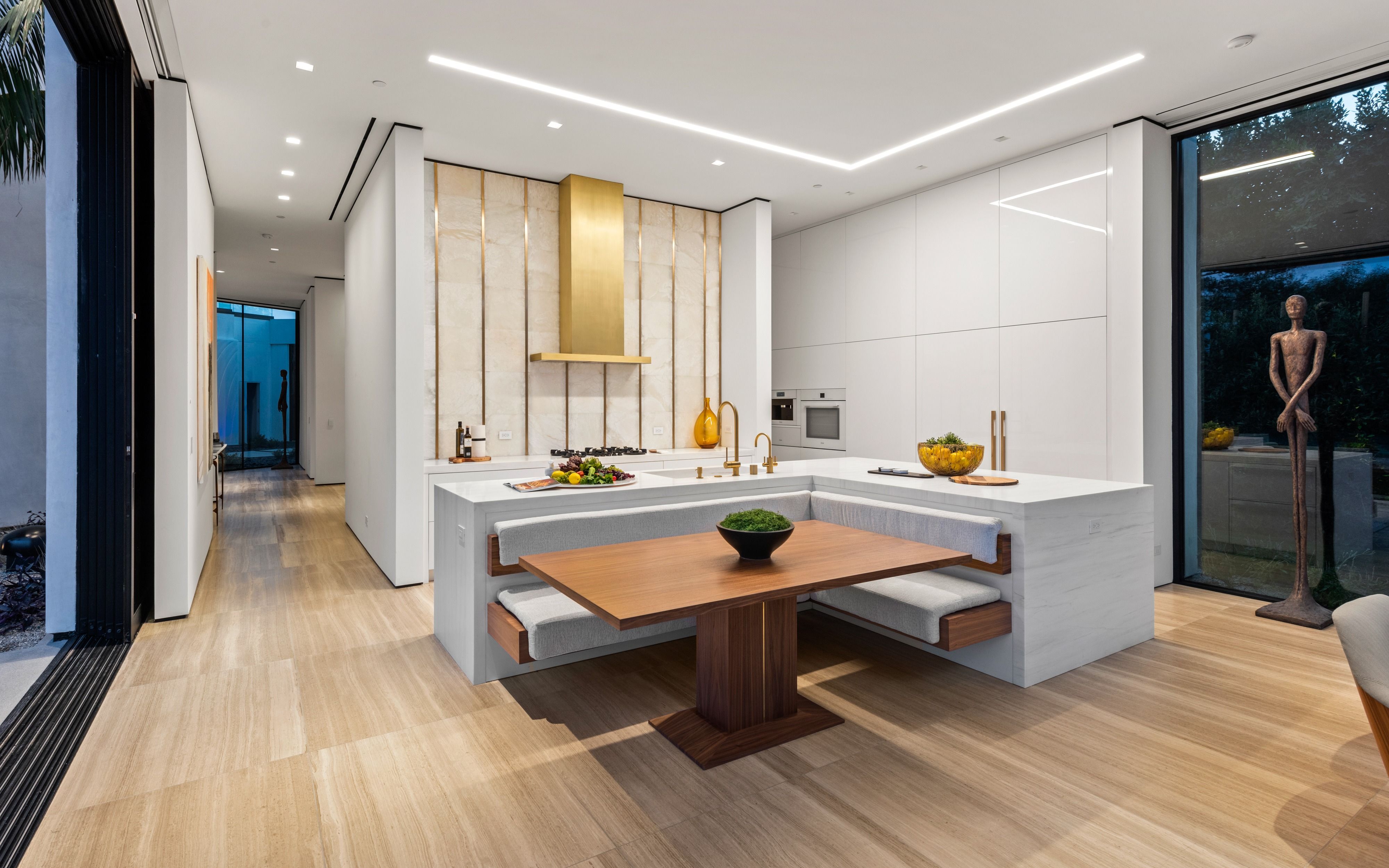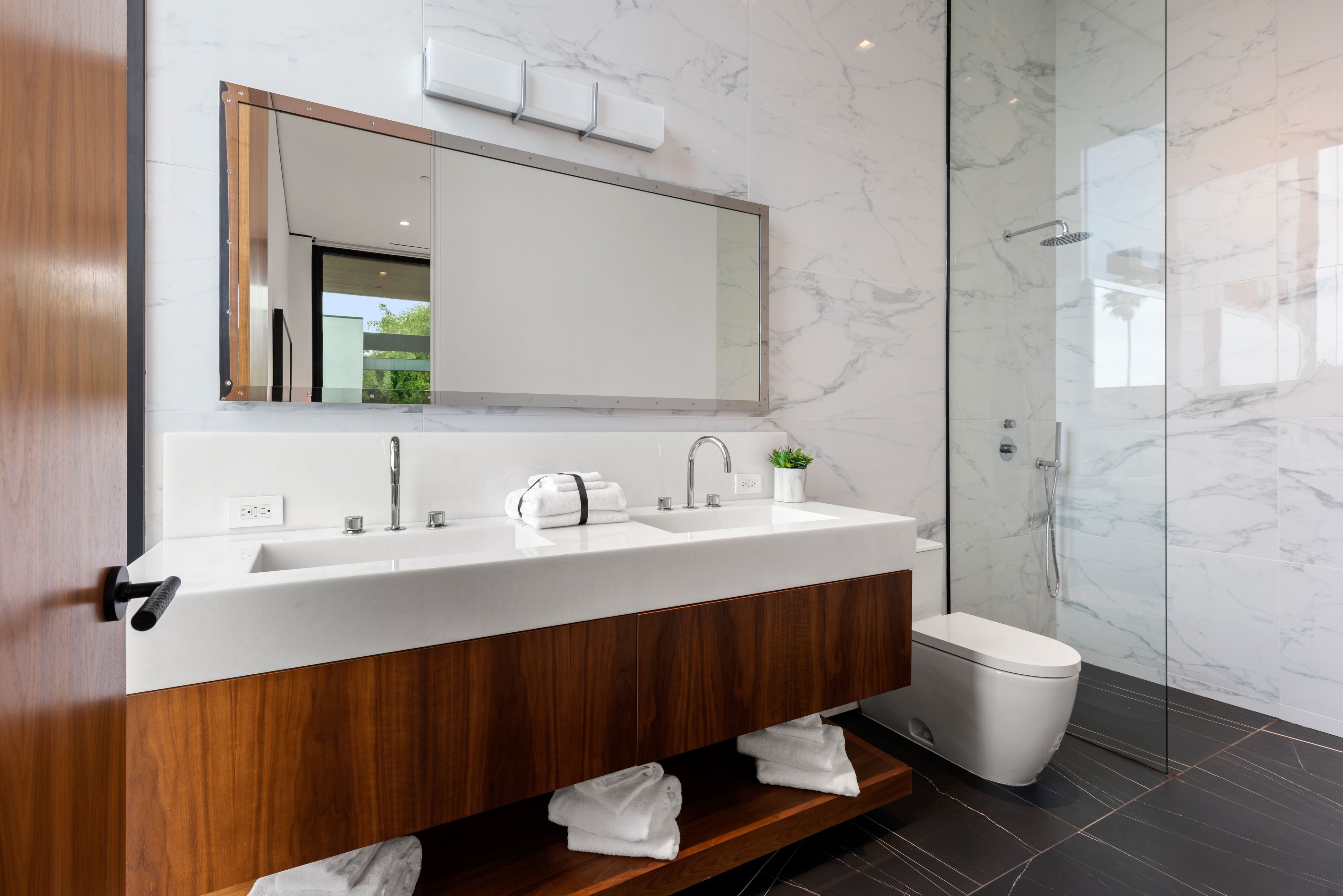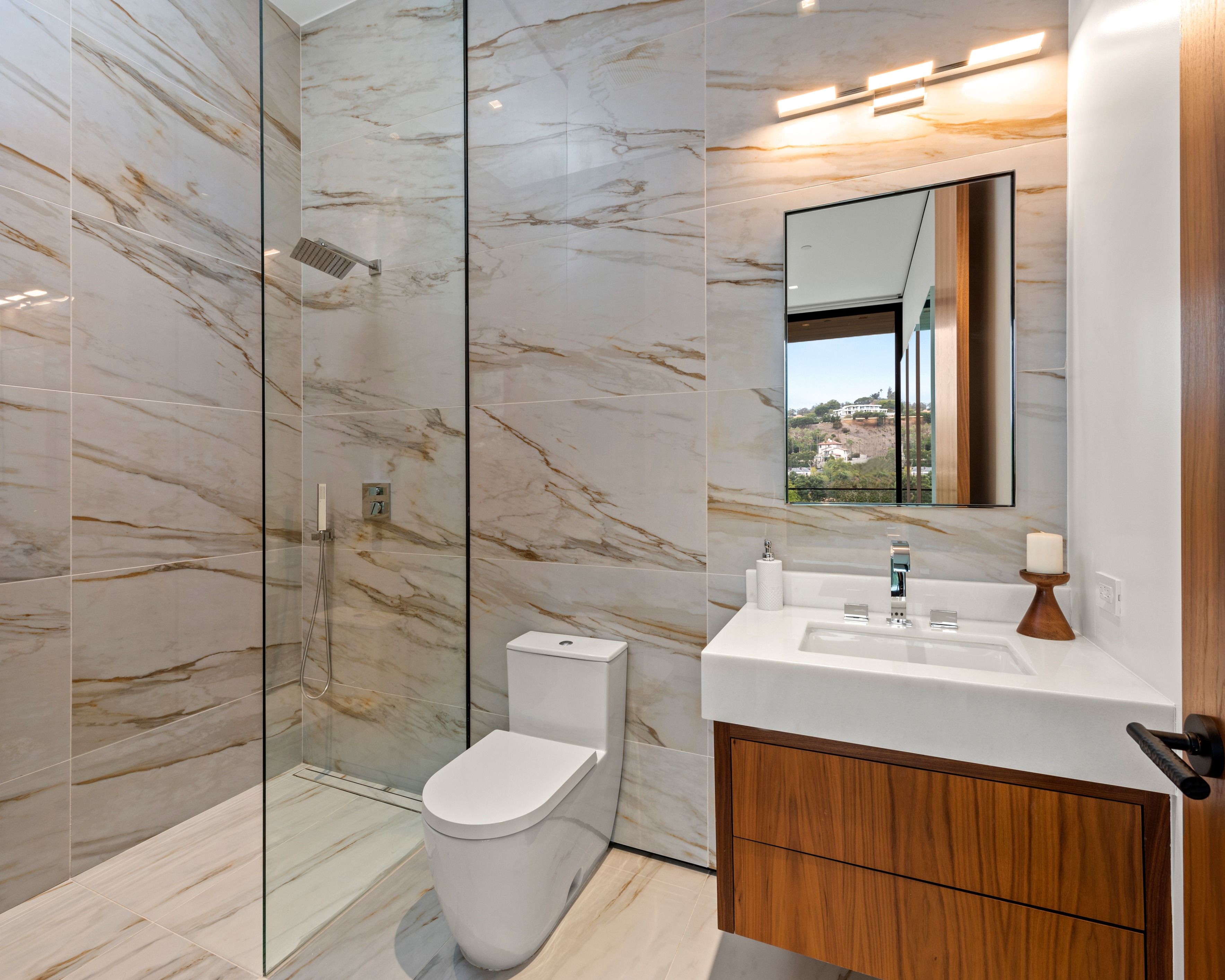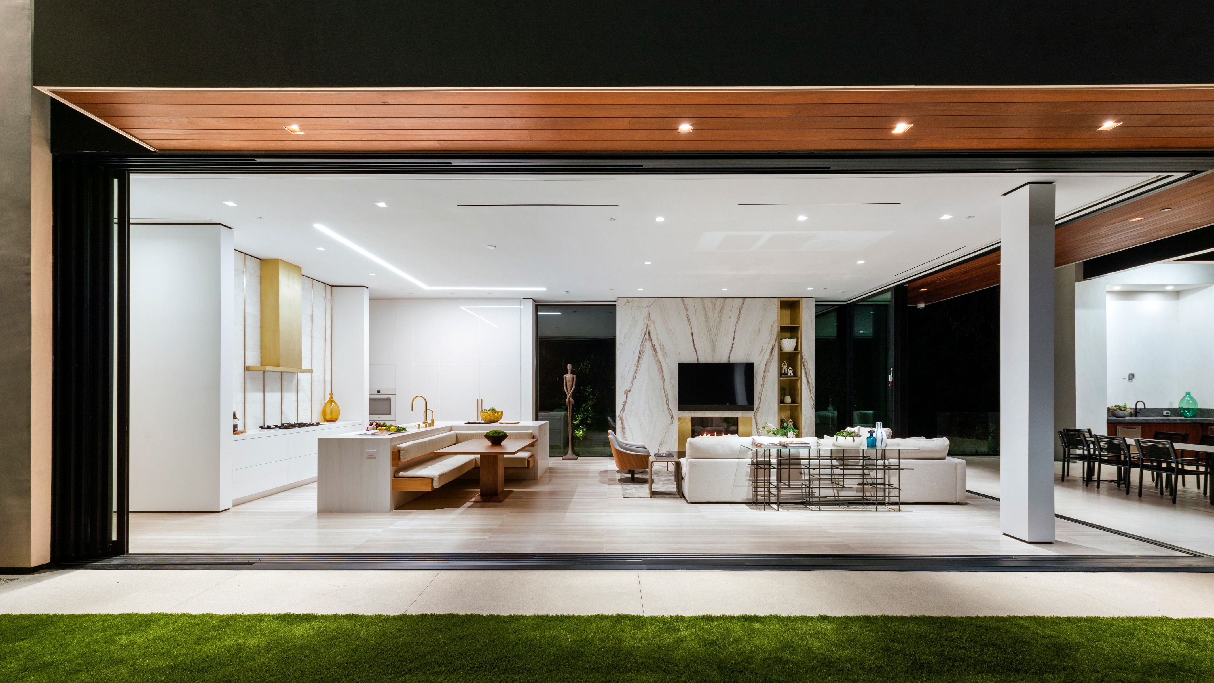 Live in the lap of LA luxury at this stunning hillside home. Set in an affluent residential neighbourhood in the Santa Monica mountains, the contemporary villa enjoy floor-to-ceiling glass doors throughout, with views from all corners. The bedrooms all enjoy access to the balcony or terrace, and the living room doors open fully for seamless indoor-outdoor living. You won't want to spend all your time gazing at the views, however, as this home also boasts a private cinema room for movie nights. There is also a gym on site. You're not far from some of the city's most famous sights here - the Hollywood sign, the Hollywood Walk of Fame and the Griffith Observatory are all within a thirty-minute drive.