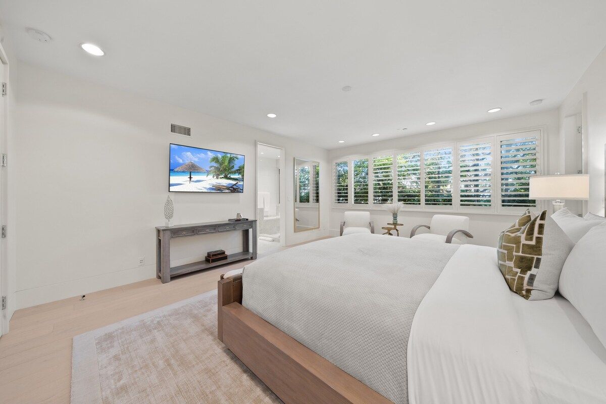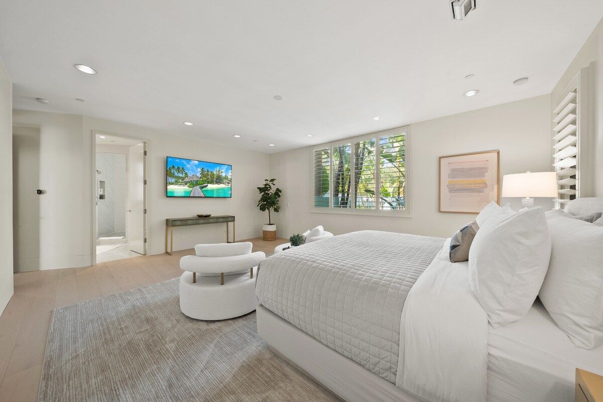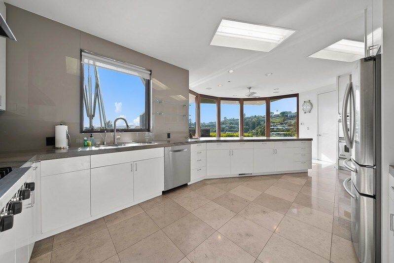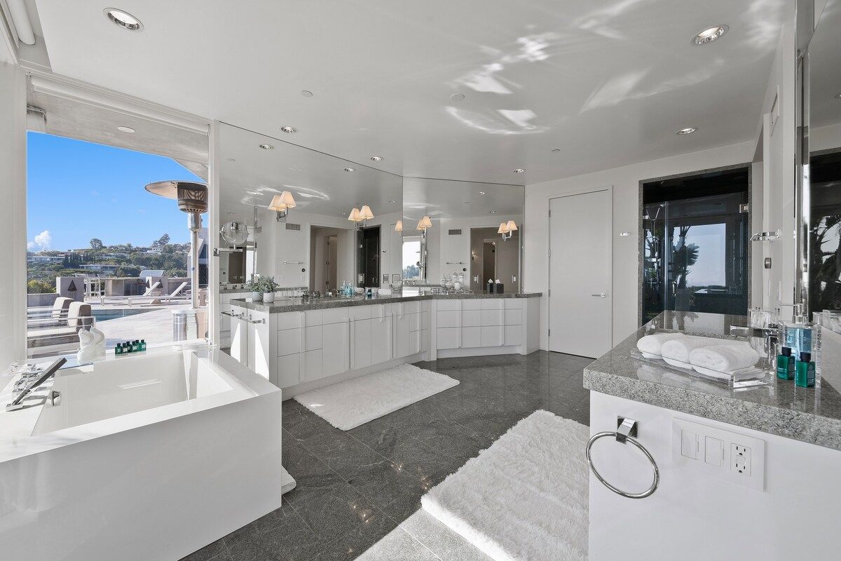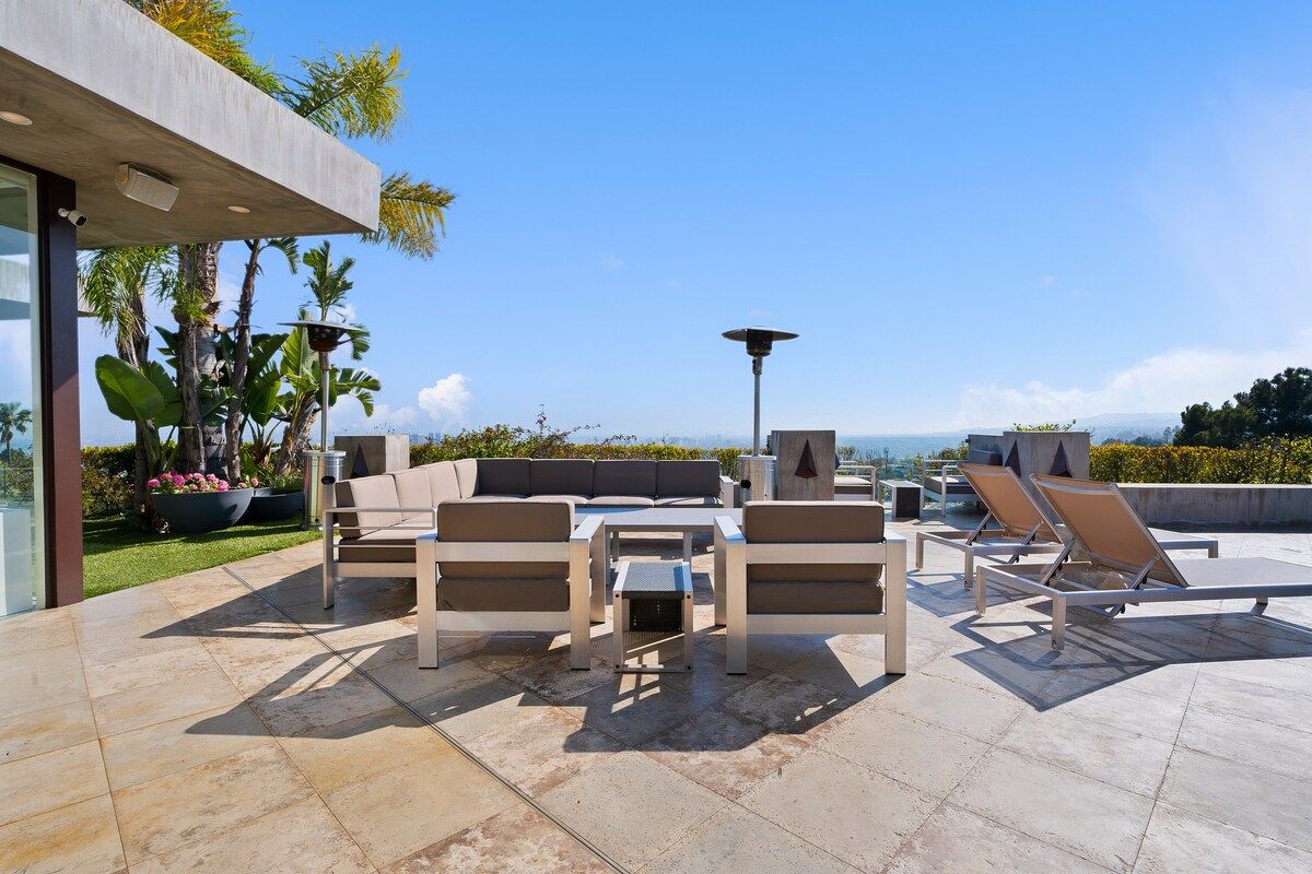 Located in a gated community, this home has all the trappings needed for a laid-back stay in Los Angeles. Outdoor living is encouraged here, thanks to the summer kitchen, private pool and hot tub. You'll also enjoy views of the city and ocean from the terrace. Head inside to find a cinema room for movie marathons when you’re not exploring Hollywood. Speaking of which, the Walk of Fame and the Sunset Strip are a short drive away.
