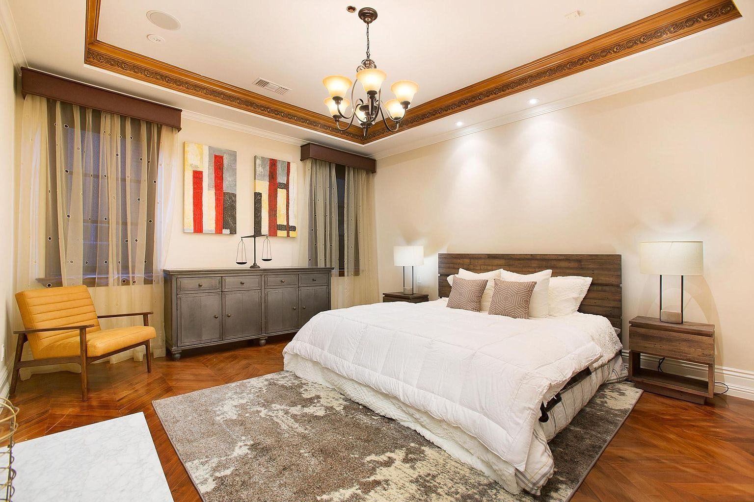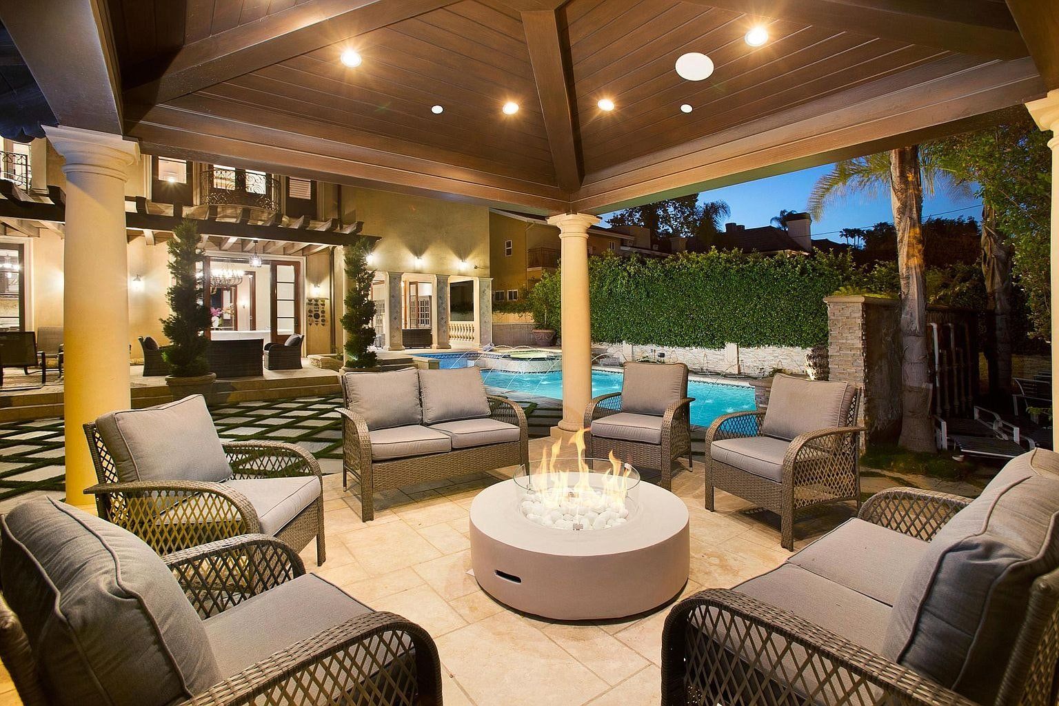 Start the morning with a dip in the Roman-style pool complete with fountains and, to keep it LA, a hot tub for nights under the stars. On cooler evenings, whip up some cocktails and gather round the firepit. No luxury is spared inside – from the home cinema with plush leather recliners to the palatial marble bathrooms, you will never want to leave. If you plan to hit the home gym in the morning, there’s a sauna for a moment of post-exercise calm. You will be discovering new nooks each day – from the design-led living rooms to the wood panelled office, there’s plenty of space to work, rest, and play.