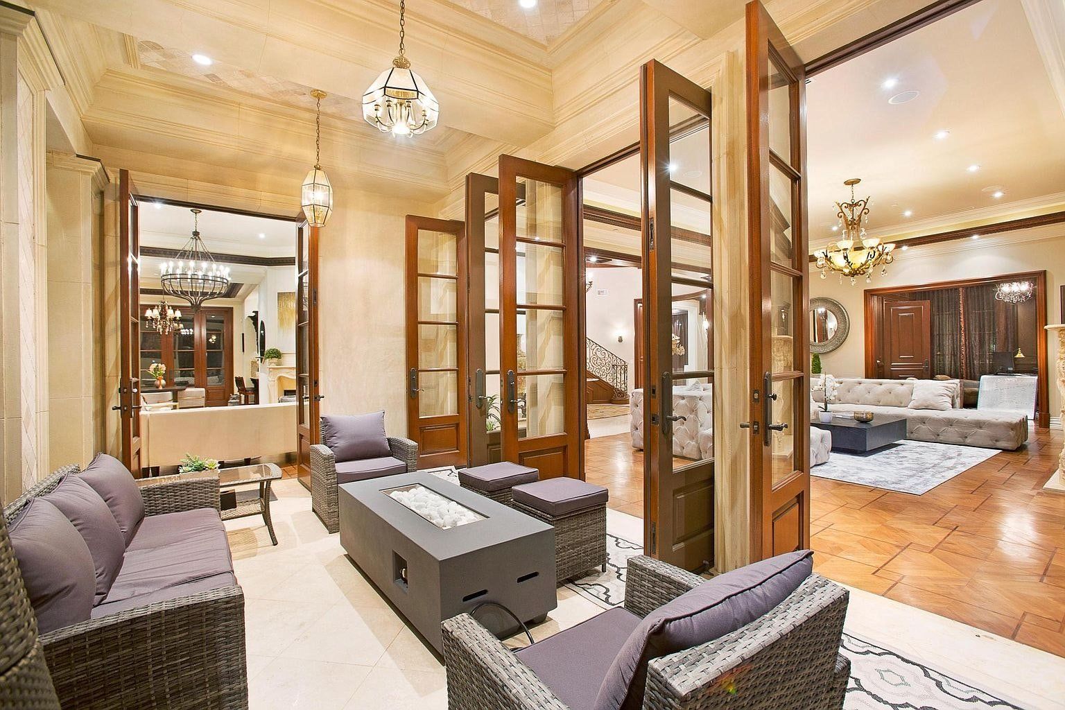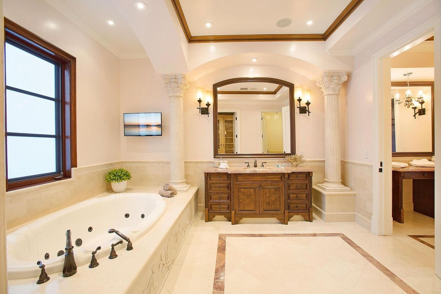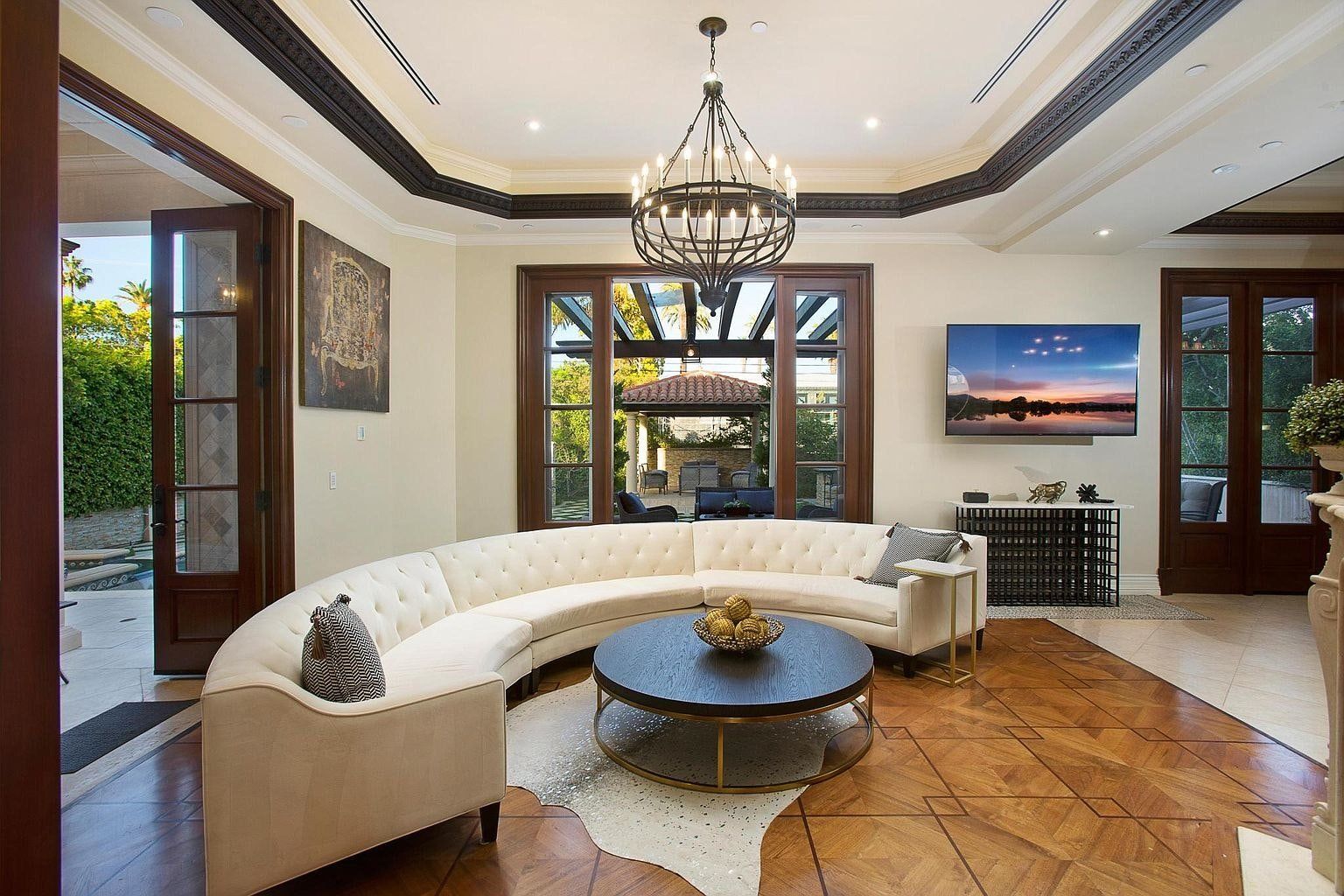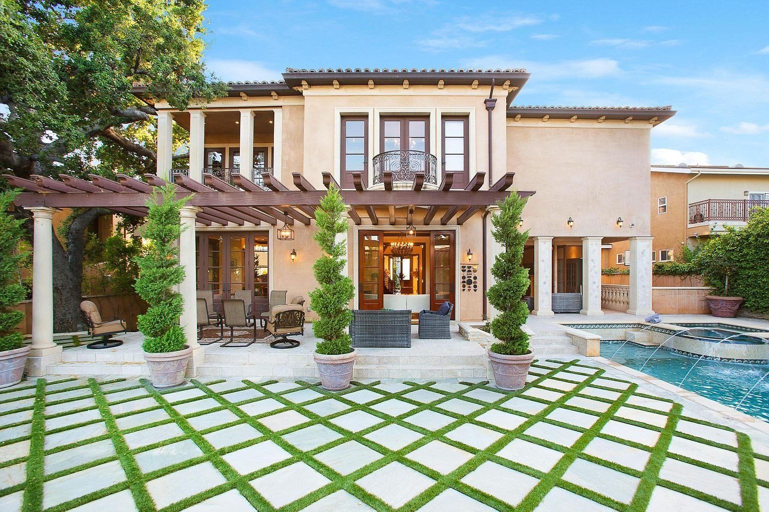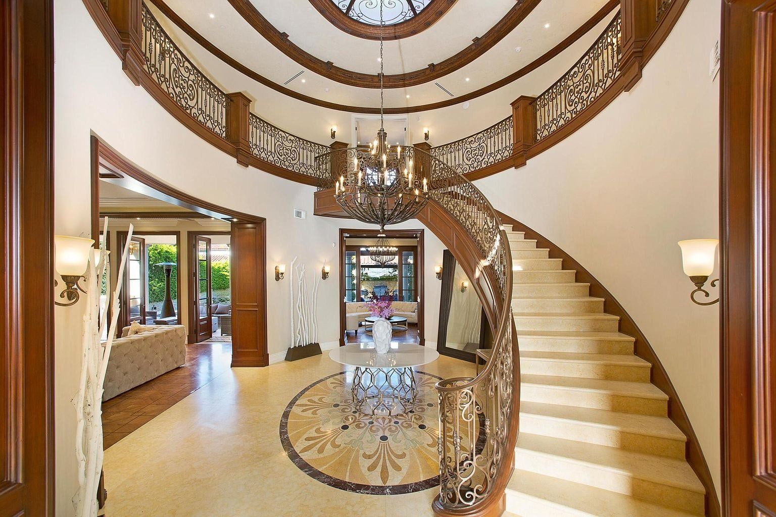 With an entrance flanked by cypress trees, a Juliet balcony centre-stage and a colonnaded terrace out the back, this architectural marvel is like an Italian palazzo right in the middle of Beverly Hills, in the iconic 90210 neighbourhood. True Hollywood glamour emanates from the house as soon as you step into the entrance hall, replete with a sweeping spiral staircase and circular mezzanine balcony.