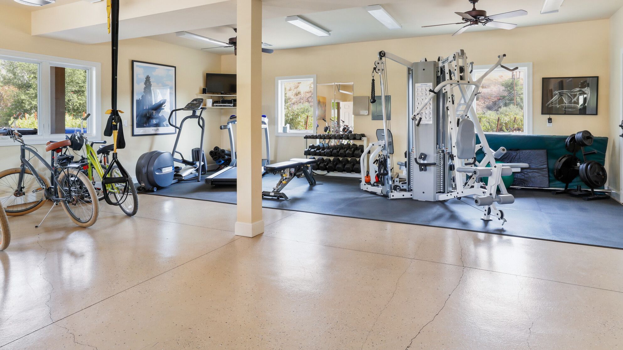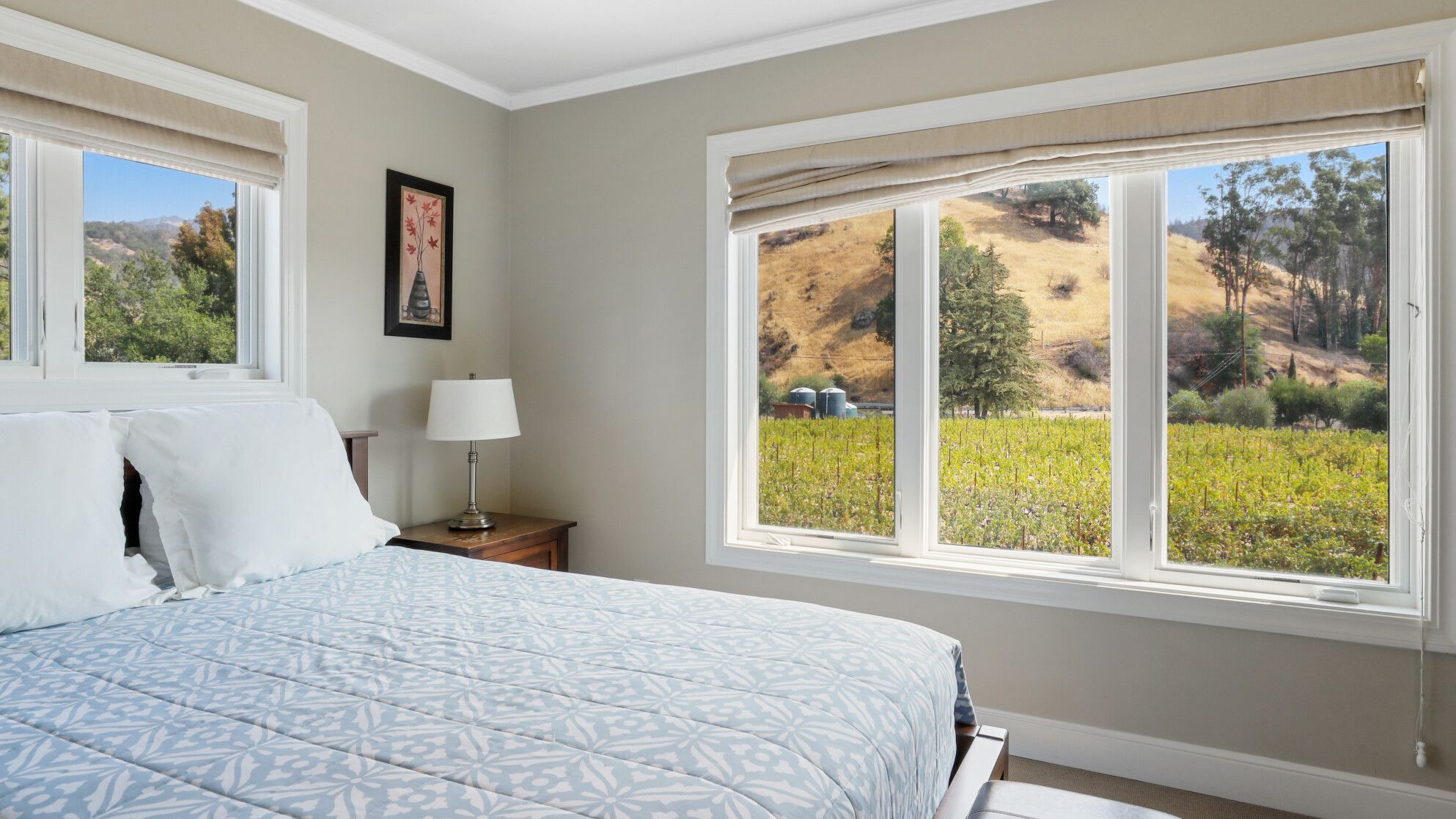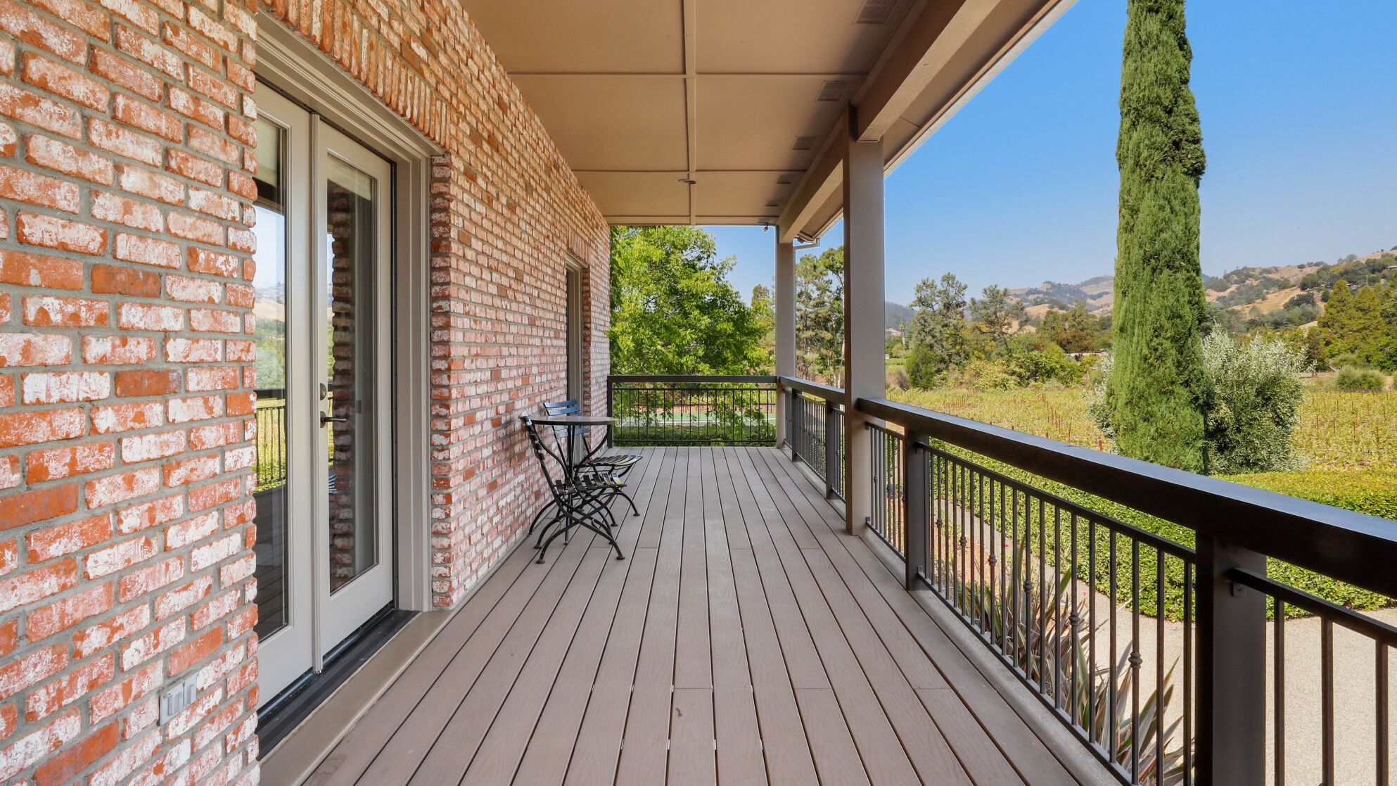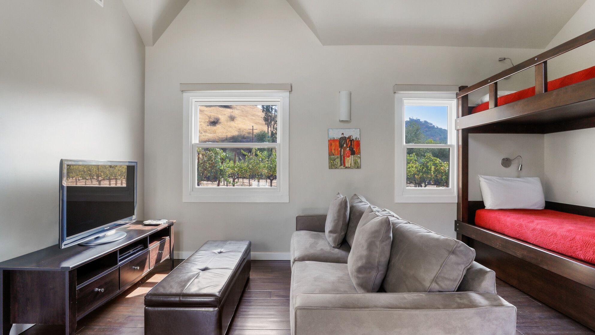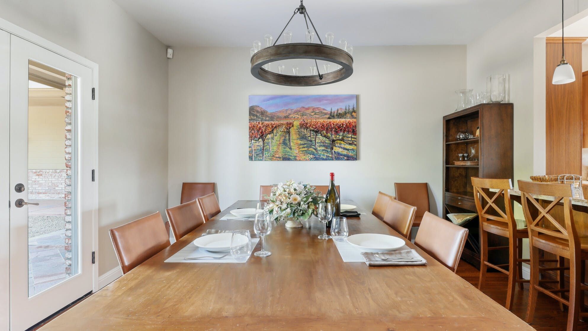 Just outside of the village of Calistoga in the northernmost tip of the Napa Valley, you'll encounter this rustic yet refined retreat surrounded by acres of verdant vineyards and lush gardens. With no nearby neighbours, enjoy that all-too-rare feeling of seclusion, yet the convenience of only being a mile and a half from downtown Calistoga. The estate is divided across three adjacent villas – which helps maintain privacy for large family get-togethers and groups of friends – while there's a yurt on the grounds that makes for an adventurous option for the kids. Everything here is set up for outdoor living. There are no fewer than twelve sets of French doors leading out onto ~1,000 sq ft of balconies and ~2,000 sq ft of patio space. The large outdoor gazebo boasts a full outdoor kitchen with a serious gas barbecue and alfresco dining area overlooking the stunning pool and Jacuzzi area. In addition to the usual high-end outdoor amenities, you'll also find professional-standard courts for sand volleyball, bocce ball and tennis. We sense a bit of friendly competition. Take a peek inside the barn, and you'll find a private games room with a pool table, ping pong, air hockey, and dartboard and a large rose garden adjacent to the villa, which provides fresh roses daily.
