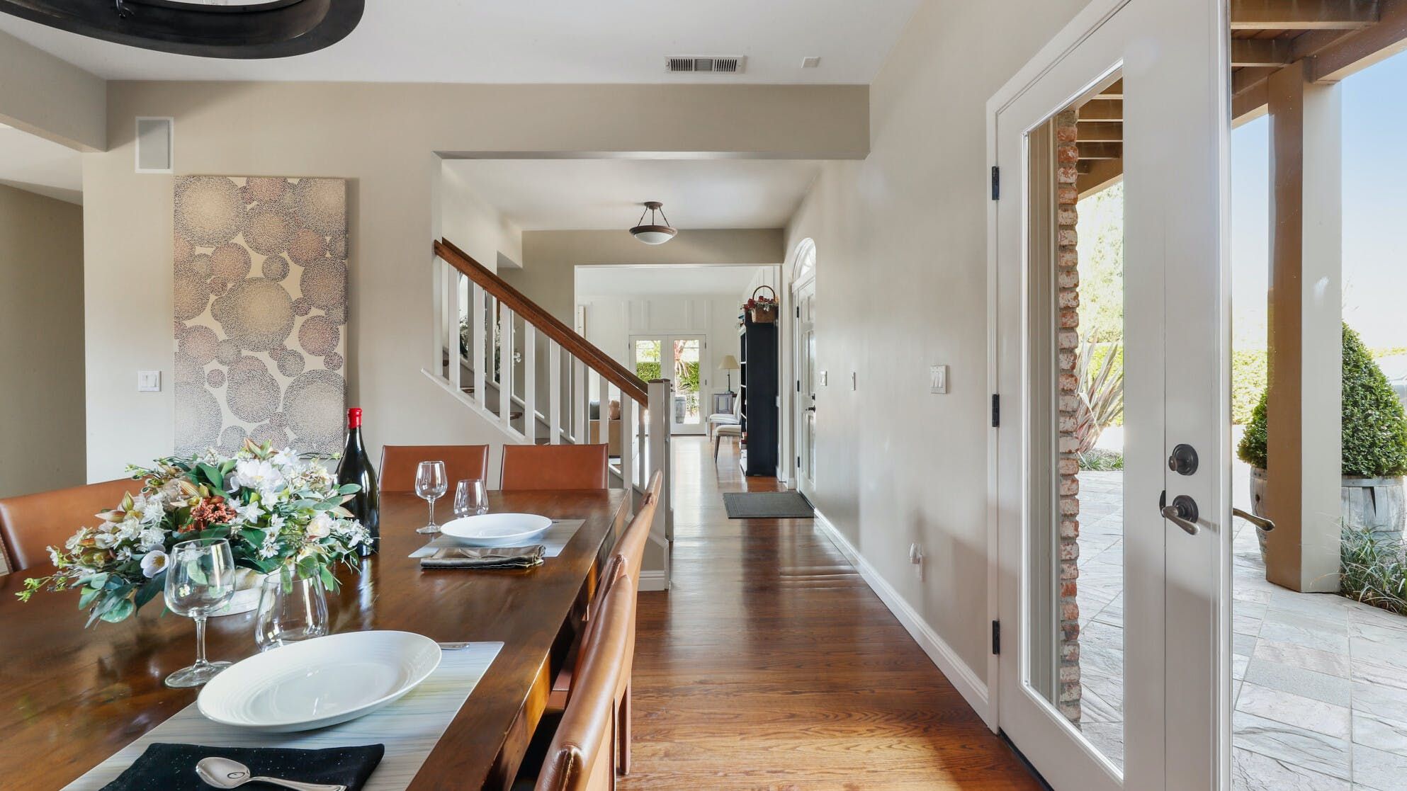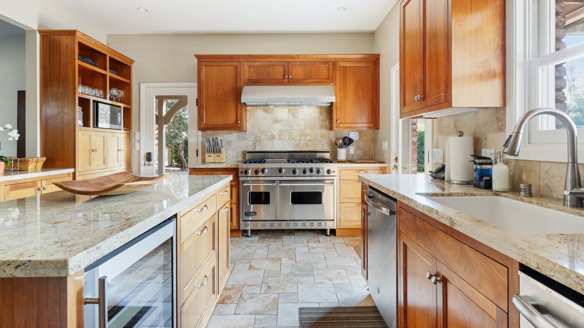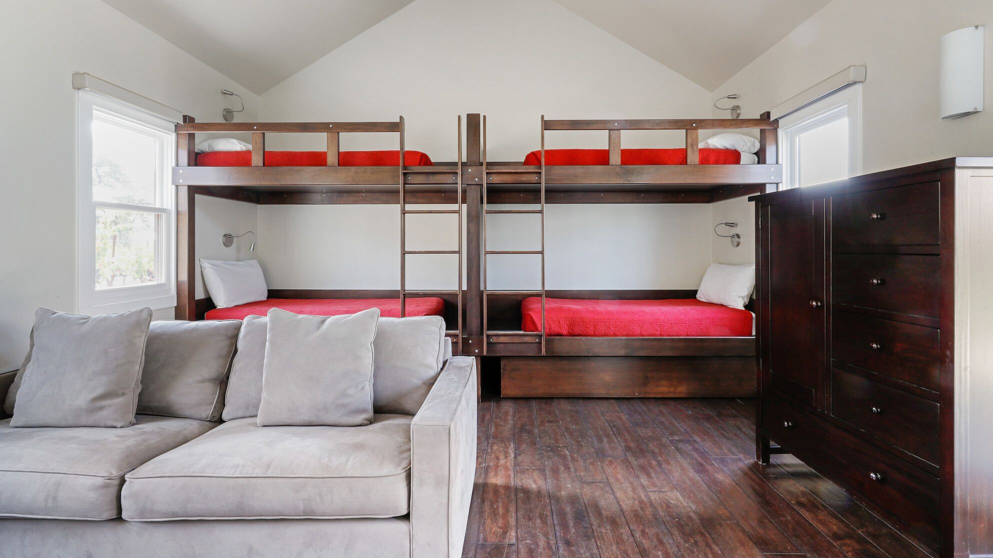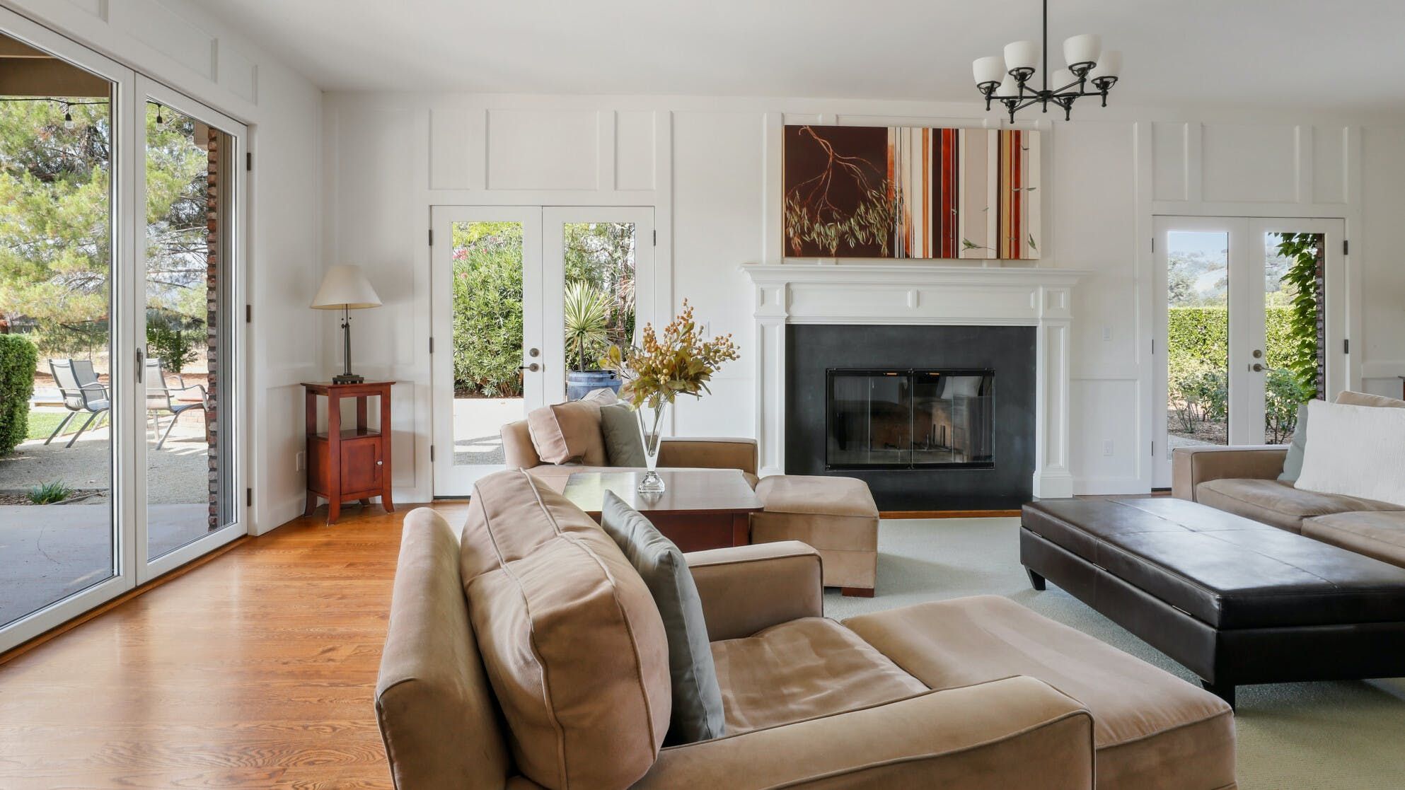 Just outside of the village of Calistoga in the northernmost tip of the Napa Valley, you'll encounter this rustic yet refined retreat surrounded by acres of verdant vineyards and lush gardens. With no nearby neighbours, enjoy that all-too-rare feeling of seclusion, yet the convenience of only being a mile and a half from downtown Calistoga. The estate is divided across three adjacent villas – which helps maintain privacy for large family get-togethers and groups of friends – while there's a yurt on the grounds that makes for an adventurous option for the kids. Everything here is set up for outdoor living. There are no fewer than twelve sets of French doors leading out onto ~1,000 sq ft of balconies and ~2,000 sq ft of patio space. The large outdoor gazebo boasts a full outdoor kitchen with a serious gas barbecue and alfresco dining area overlooking the stunning pool and Jacuzzi area. In addition to the usual high-end outdoor amenities, you'll also find professional-standard courts for sand volleyball, bocce ball and tennis. We sense a bit of friendly competition. Take a peek inside the barn, and you'll find a private games room with a pool table, ping pong, air hockey, and dartboard and a large rose garden adjacent to the villa, which provides fresh roses daily.