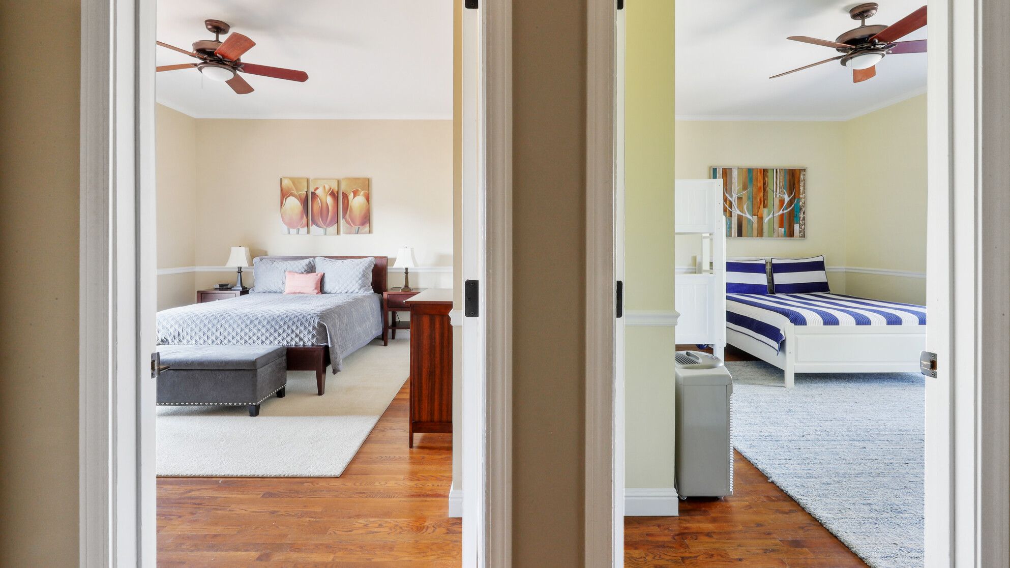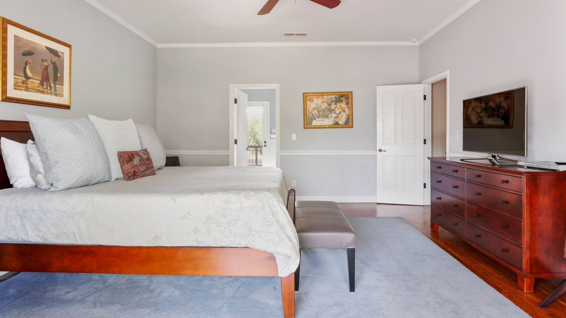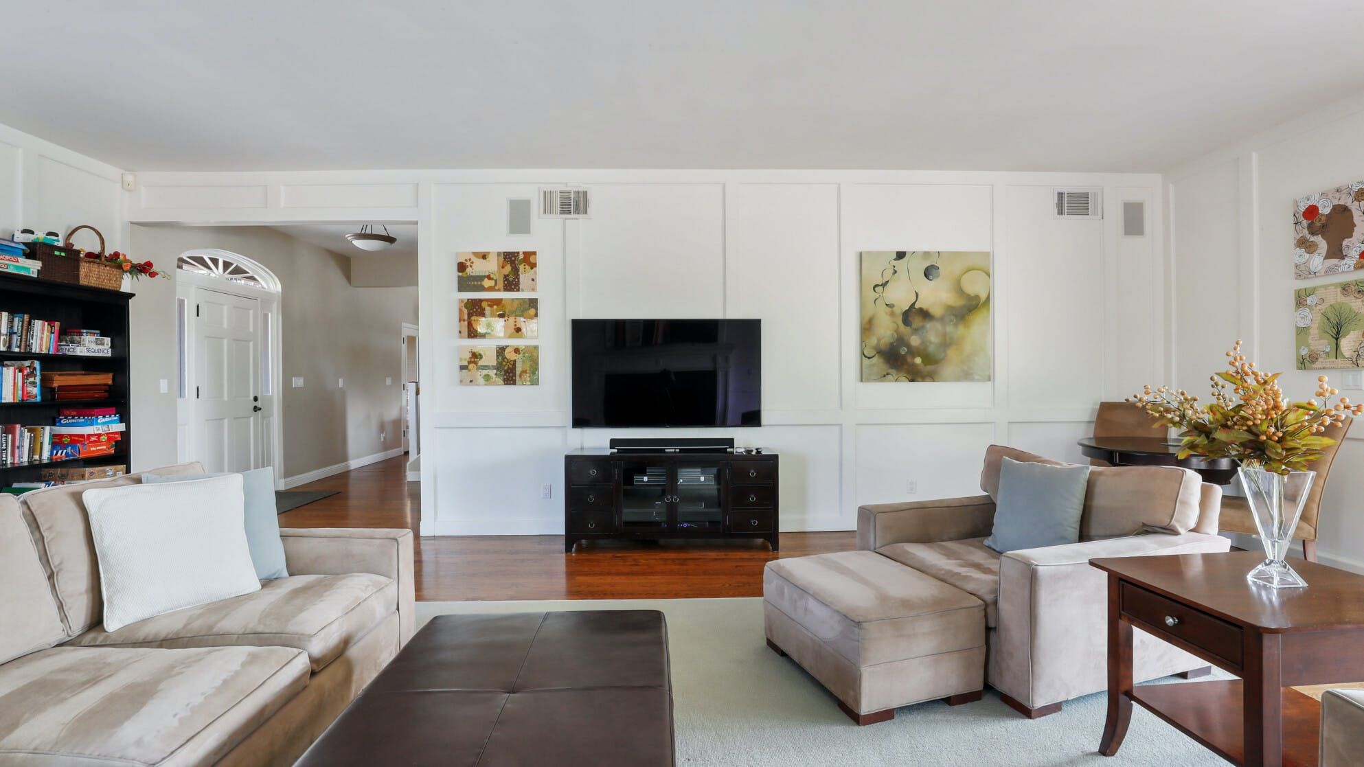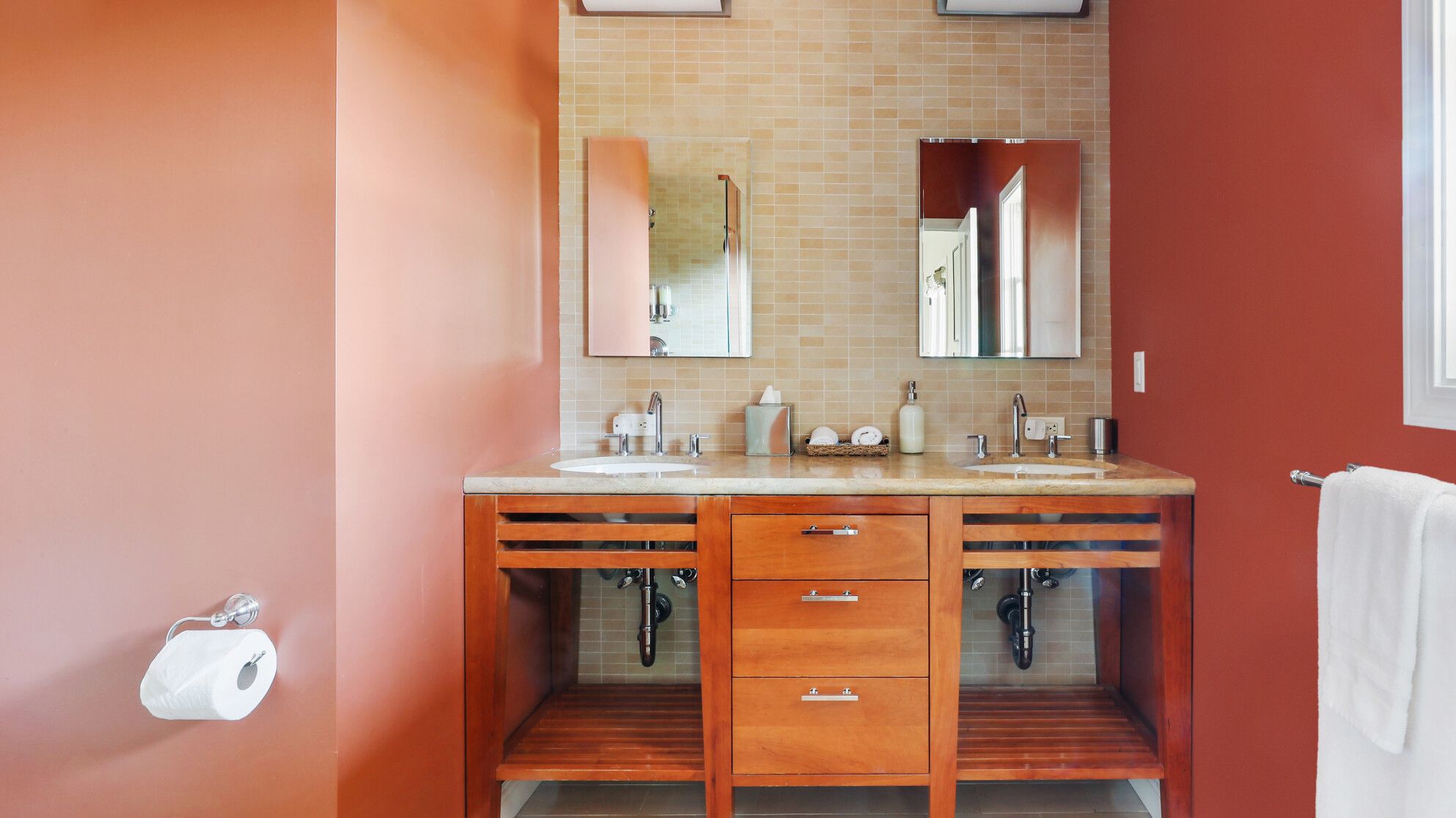 Just outside of the village of Calistoga in the northernmost tip of the Napa Valley, you'll encounter this rustic yet refined retreat surrounded by acres of verdant vineyards and lush gardens. With no nearby neighbours, enjoy that all-too-rare feeling of seclusion, yet the convenience of only being a mile and a half from downtown Calistoga. The estate is divided across three adjacent villas – which helps maintain privacy for large family get-togethers and groups of friends – while there's a yurt on the grounds that makes for an adventurous option for the kids. Everything here is set up for outdoor living. There are no fewer than twelve sets of French doors leading out onto ~1,000 sq ft of balconies and ~2,000 sq ft of patio space. The large outdoor gazebo boasts a full outdoor kitchen with a serious gas barbecue and alfresco dining area overlooking the stunning pool and Jacuzzi area. In addition to the usual high-end outdoor amenities, you'll also find professional-standard courts for sand volleyball, bocce ball and tennis. We sense a bit of friendly competition. Take a peek inside the barn, and you'll find a private games room with a pool table, ping pong, air hockey, and dartboard and a large rose garden adjacent to the villa, which provides fresh roses daily.