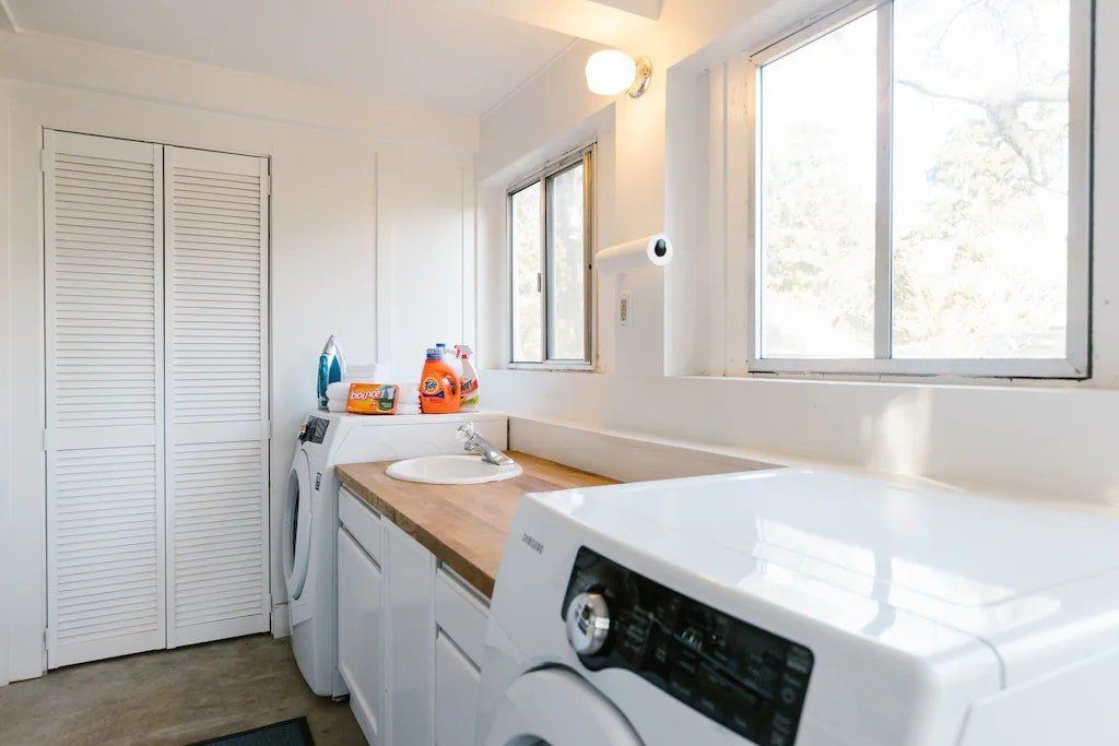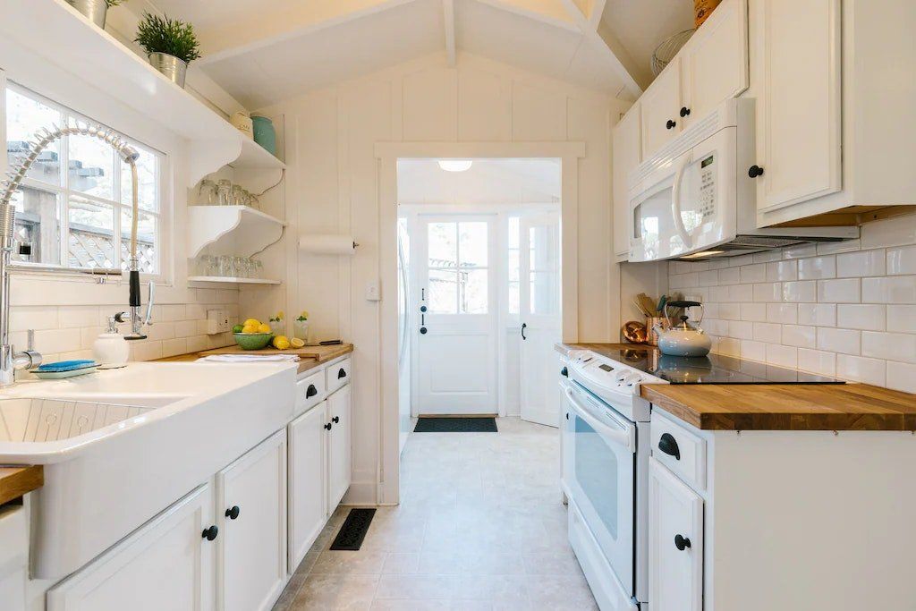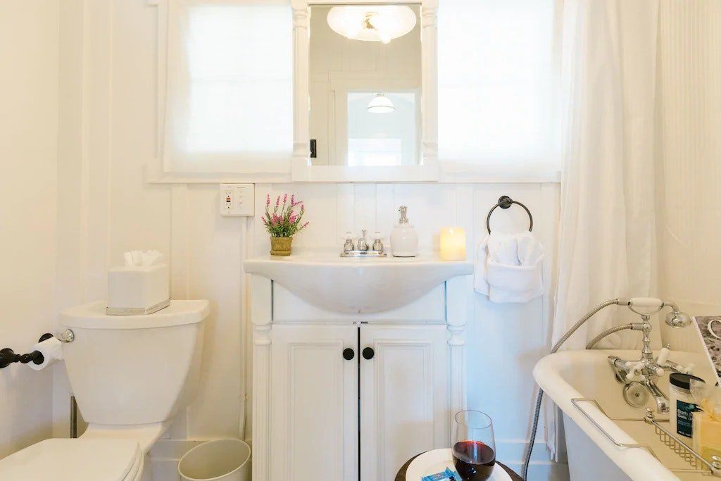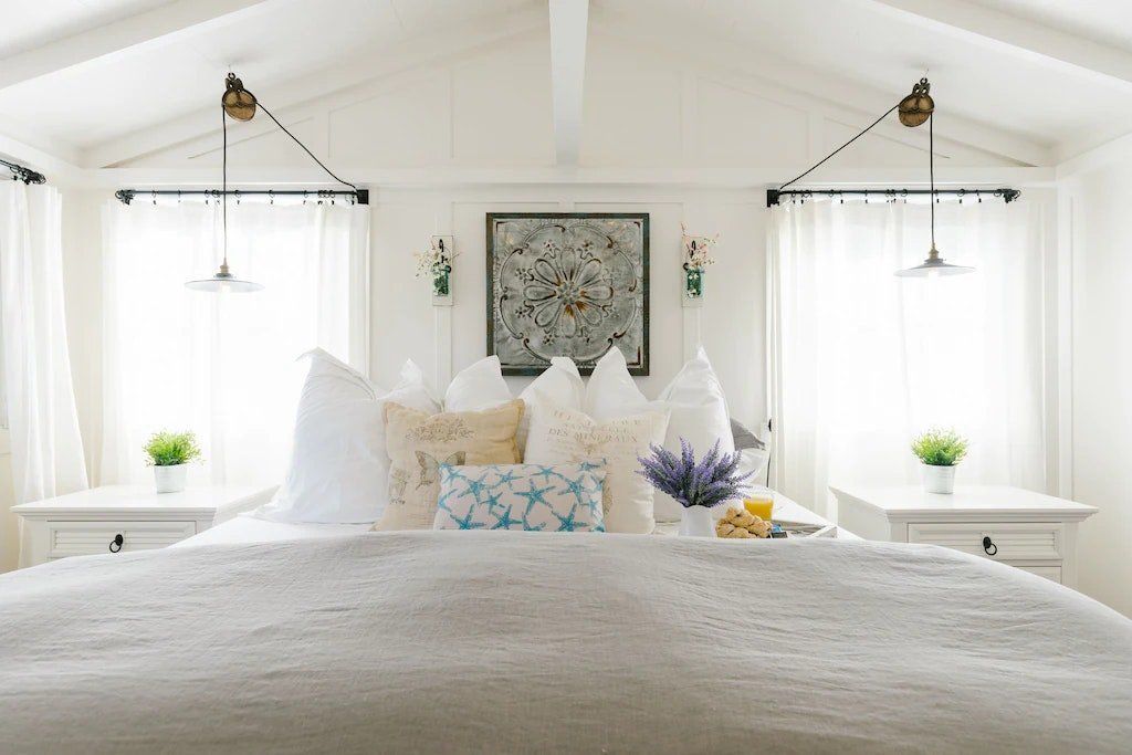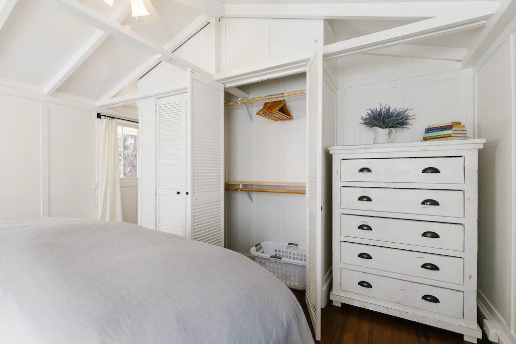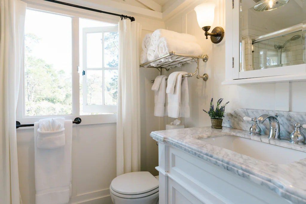 The host of this renovated beach hut in downtown Carmel-by-the-Sea has done a stellar job in retaining the home's historical character while also ensuring it belongs well and truly in the twenty-first century. Pinewood flooring, original windows and the stone fireplace are accompanied by industrial-inspired lighting, furnishings in an angelic shade of white and pops of colour from prints hanging on the wall. At the back of the house, there's a covered porch and a terrace complete with alfresco seating and a barbecue — that's summer afternoons sorted, then. When the sun does makes an appearance — which isn't unheard of in these parts — a ten-minute walk down Ocean Avenue will get you to Carmel Beach, while there are a host of art galleries and restaurants that surround the home.