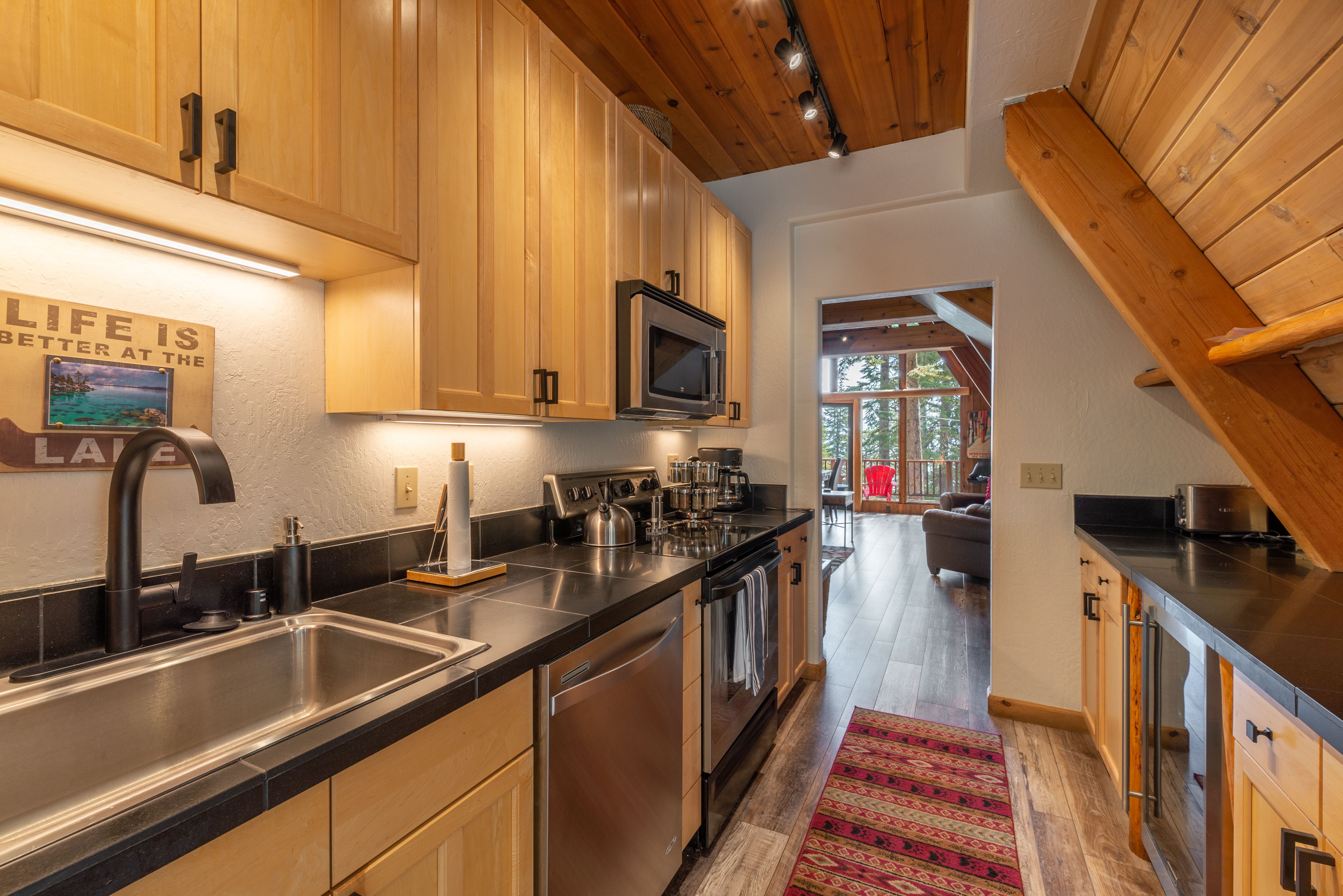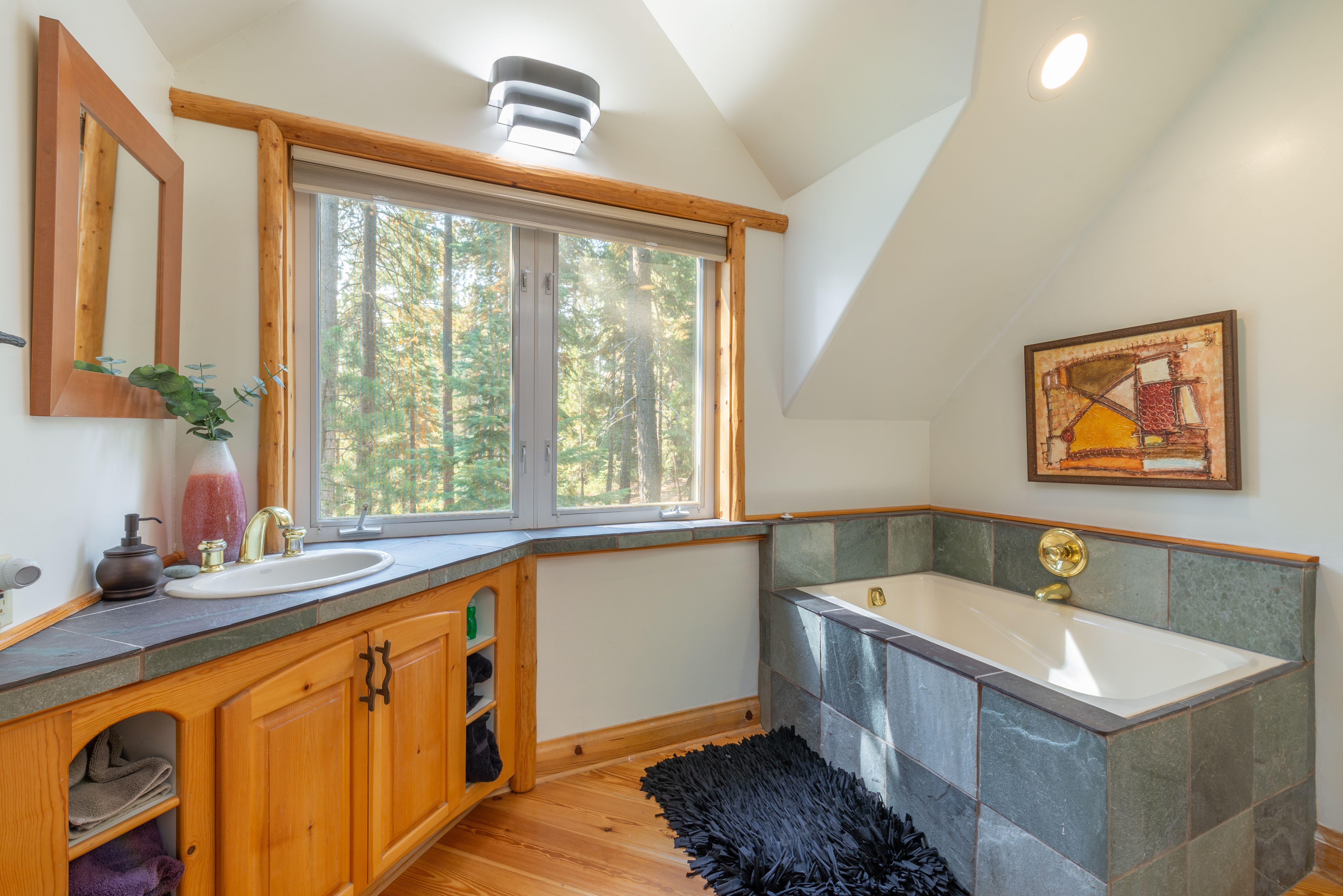 Nestled amid the pines of Carnelian Bay, this rustic retreat is the perfect base for a family trip to Lake Tahoe. Perfectly positioned between Tahoe City and Kings Beach, staying here puts you close to trailheads and just minutes from ski resorts, making this an excellent choice for skiing, biking, and hiking. After days spent outside, it’s a delight to return to this A-frame cabin to relax in the hot tub while stargazing. Even when you’re inside, you can admire the scenery thanks to floor-to-ceiling windows – it’s a dreamy setting.