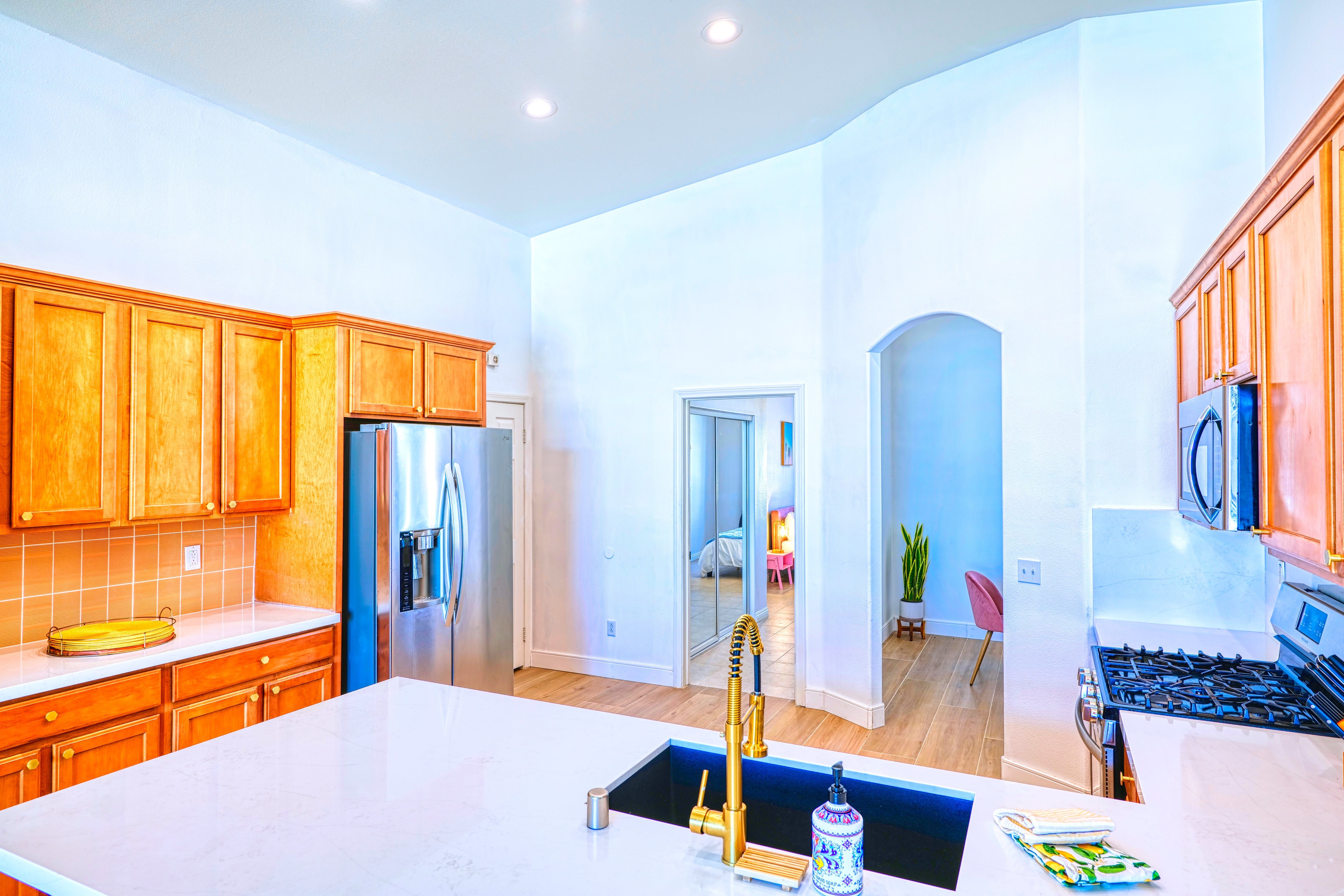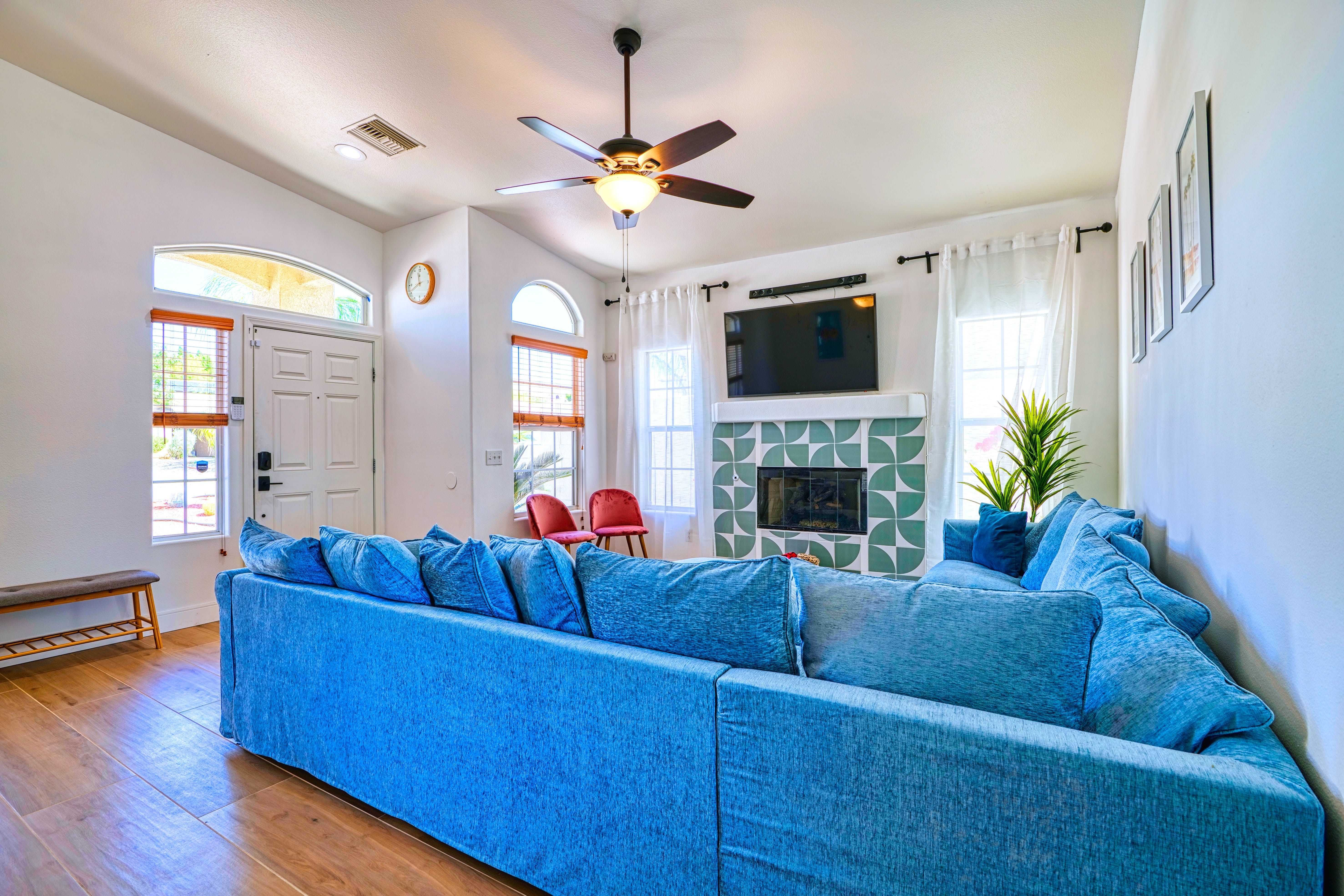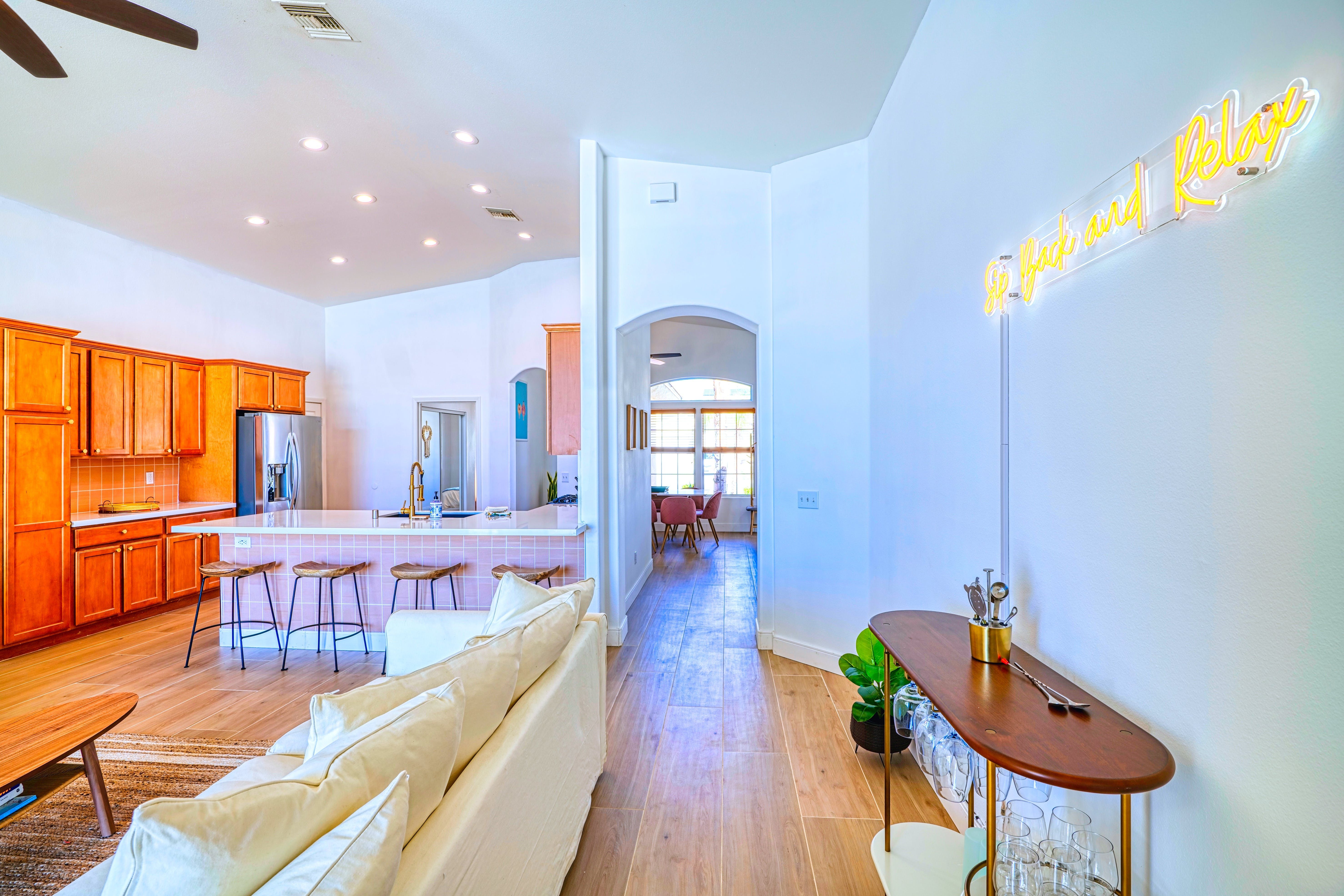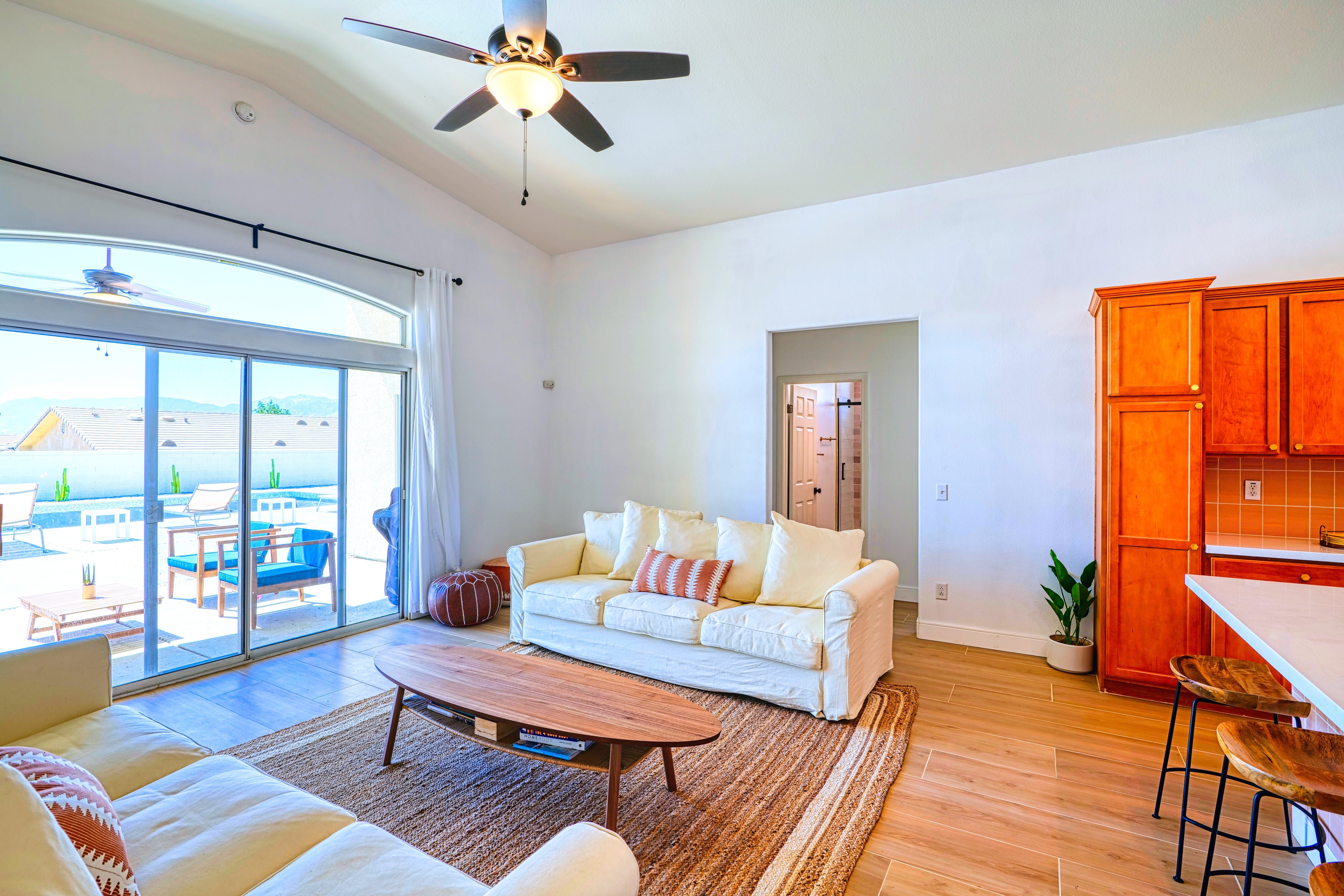 Sitting in-between Joshua Tree National Park and downtown Palm Springs, this home benefits from a striking mountain backdrop and the vast desert sky ideal for star-spotting once the sun's gone down. As you might hope given this dramatic scenery, there are plenty of ways to admire the view here, whether you're paddling in the swimming pool, relaxing in the spa or cooking up dinner on the barbecue.