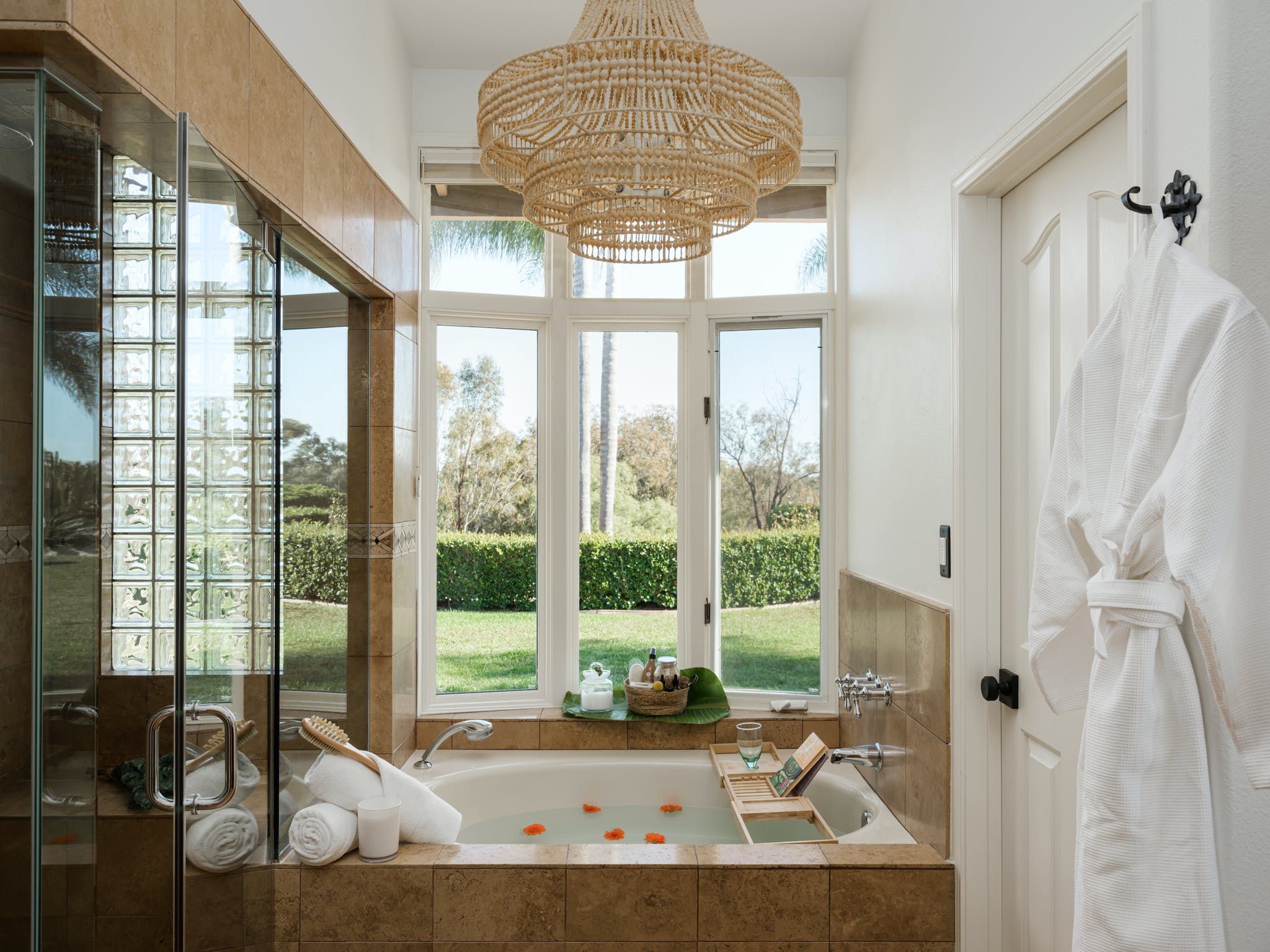 Sophisticated yet comfortable, this resort-style home is sure to impress. It’s in the city of Encinitas, close to the beach but far enough away from the hustle and bustle to make for a relaxing base. We love the outside space, which boasts a salt-water pool and spa, along with a Gas Viking barbecue and an authentic pizza oven. Best of all, there are numerous lovely spots to enjoy the sunset from. Inside, there’s plenty of space for everyone to gather together, but there are cosy corners too. If you’re anything like us, you’ll love the elegant en-suites – particularly the one with a dreamy garden-view tub.