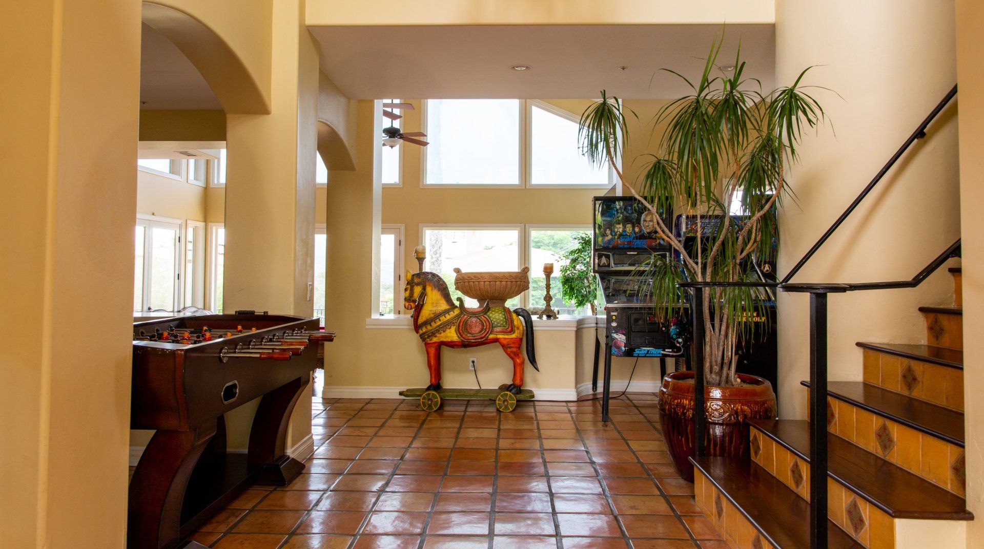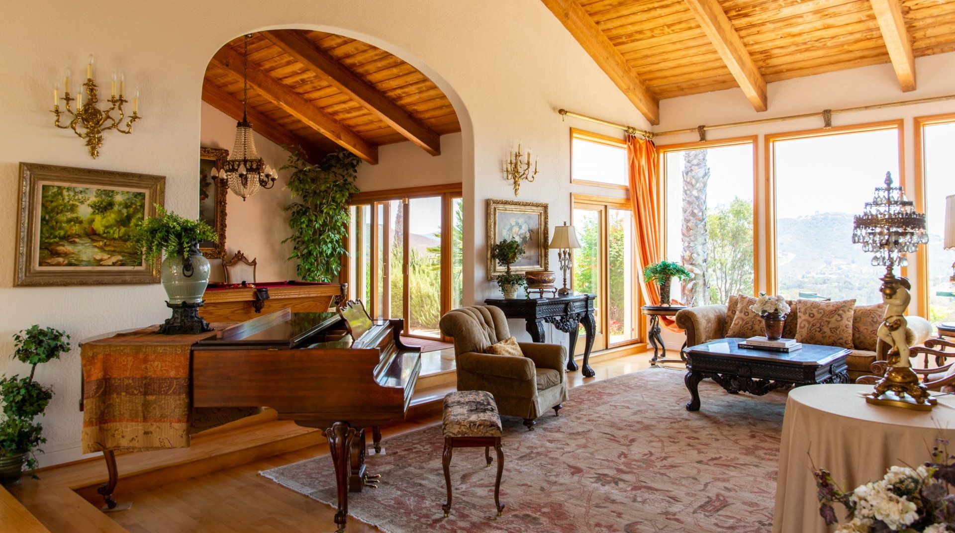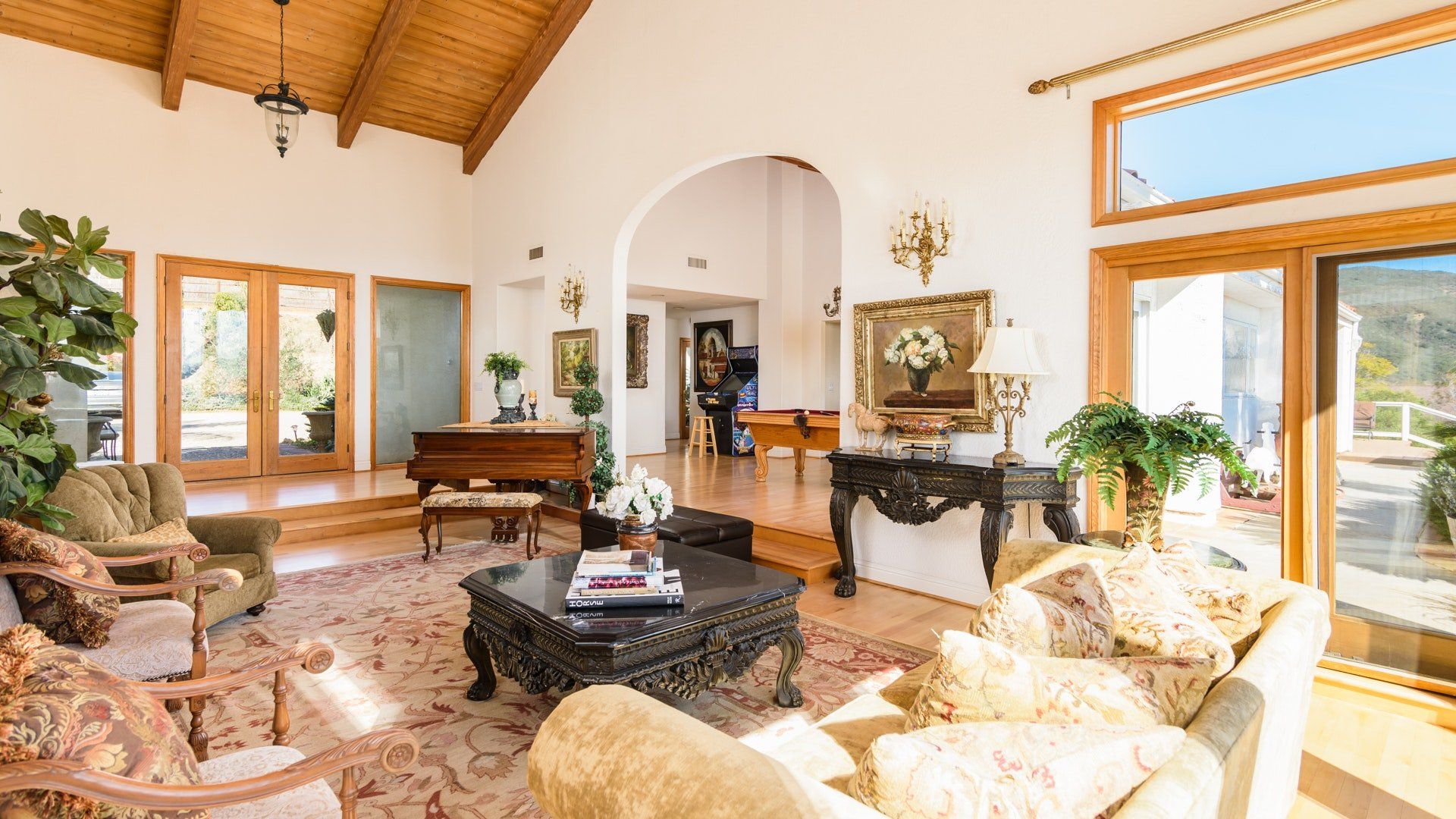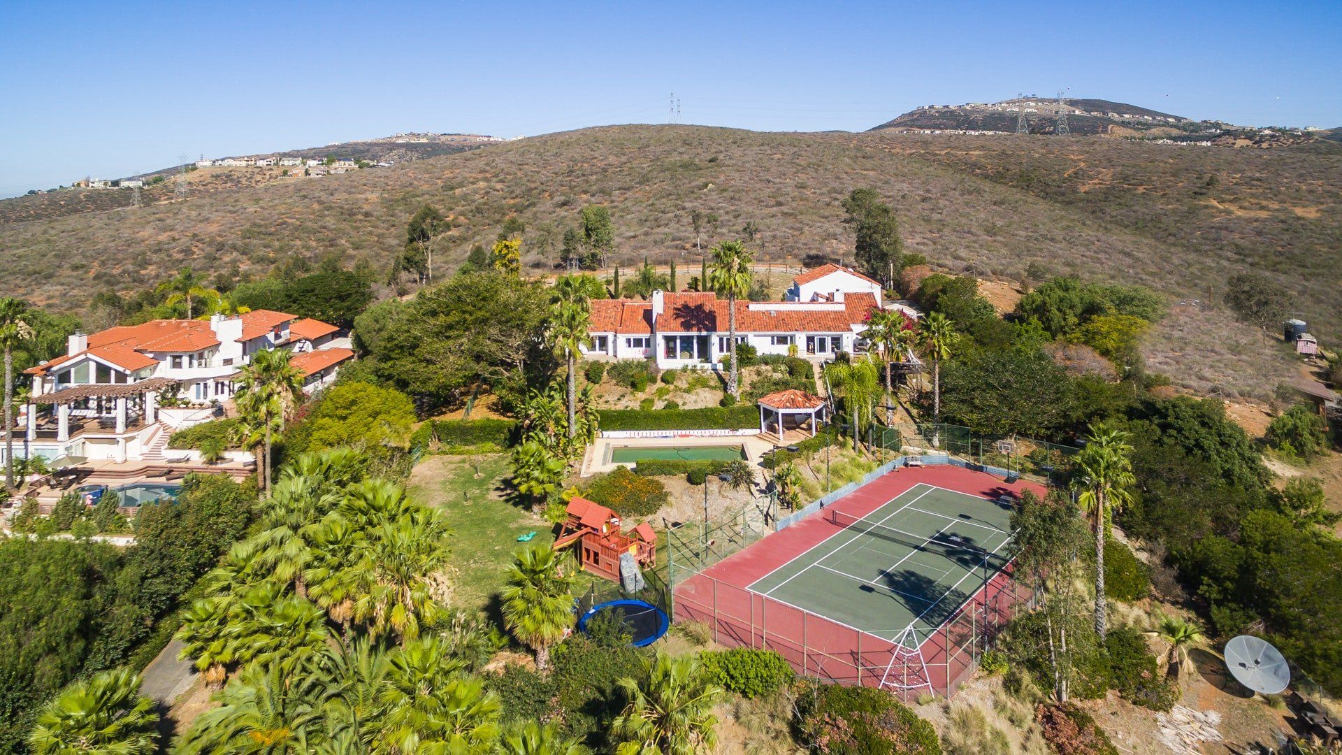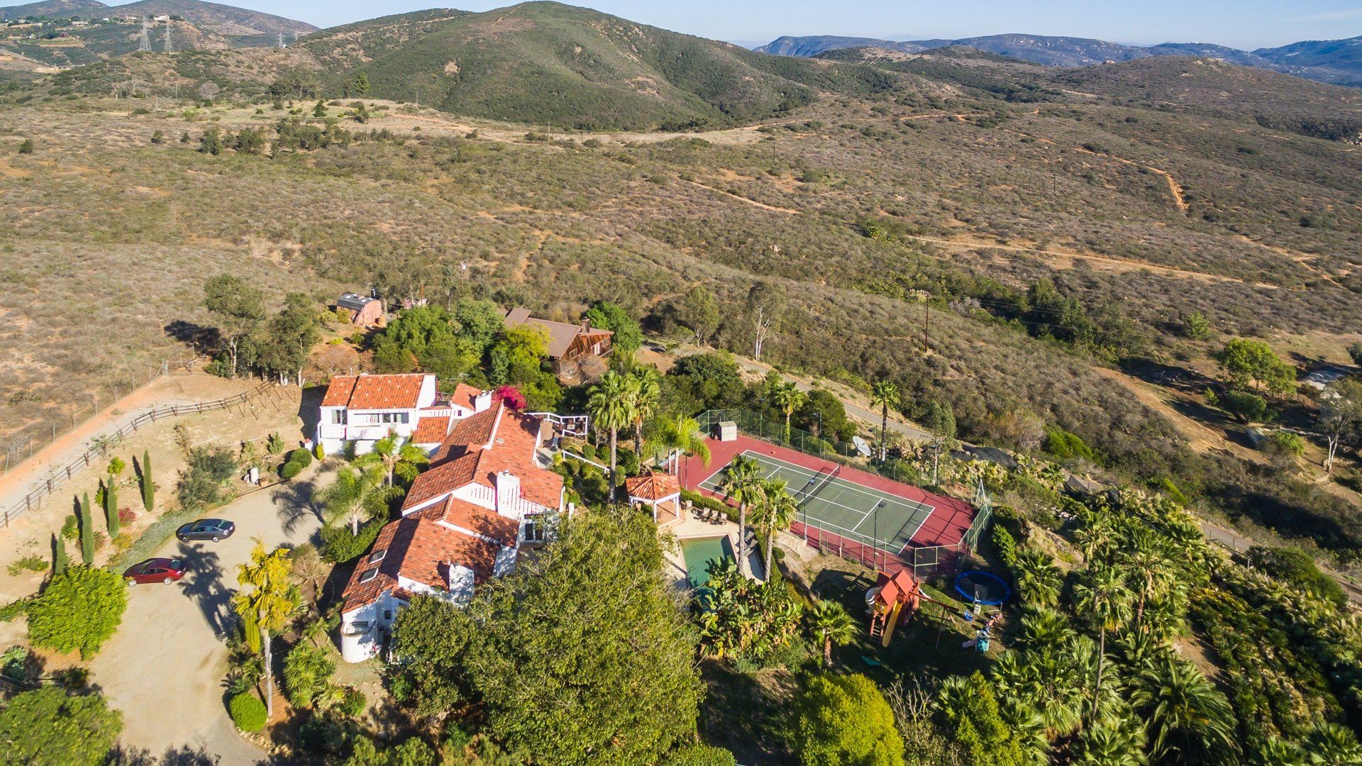 Hidden in the rocky hills of Escondido, this Californian home opens its doors onto a large and luxurious playground. Like a warm embrace, the interiors reflect traditional Spanish style with a fun twist. Breathtaking views of the surrounding landscape fill the large living area, making this the perfect spot to relax and soak in the views or challenge yourself to a game of pool or table tennis. Wherever you turn in this home, there’s an opportunity to be entertained. Spread across six acres, there’s plenty of space to move at your own rhythm. Whether you’re relaxing by the swimming pool, cooking in the kitchen or out on the tennis court, experience the magic of this secluded spot in the heart of San Diego. And when you want to spread your wings, the beach and local restaurants are only a short drive away. As the day fades, you’ll be flying back to this rural retreat to watch the sunset as you raise a glass to this playful paradise.