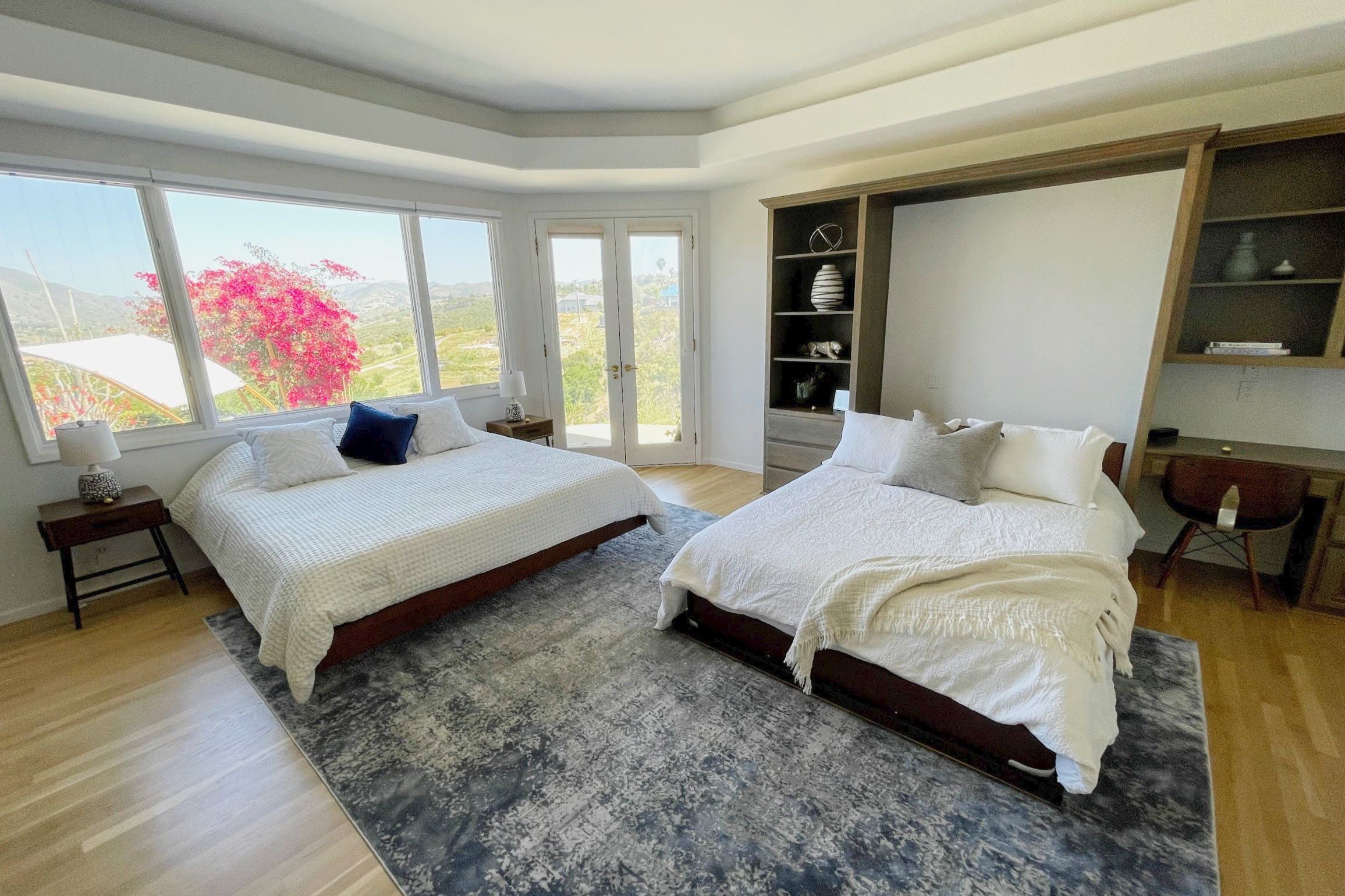 Set on 4 acres in the heart of wine and avocado country, this countryside home offers a dreamy Californian escape. It’s a beautiful home in Fallbrook, the eco-friendly neighbour to the grand wine estates of Temecula, which is only twenty minutes away. It boasts panoramic views and has been designed to show them off, so you can expect vast windows and stunning vistas in every room. There’s an outdoor kitchen and dining area close to the courtyard rose garden and the orchard of citrus trees, as well as chairs to lounge on beneath the wisteria. You’ll have everything you need here, including a gourmet kitchen and a heated pool.