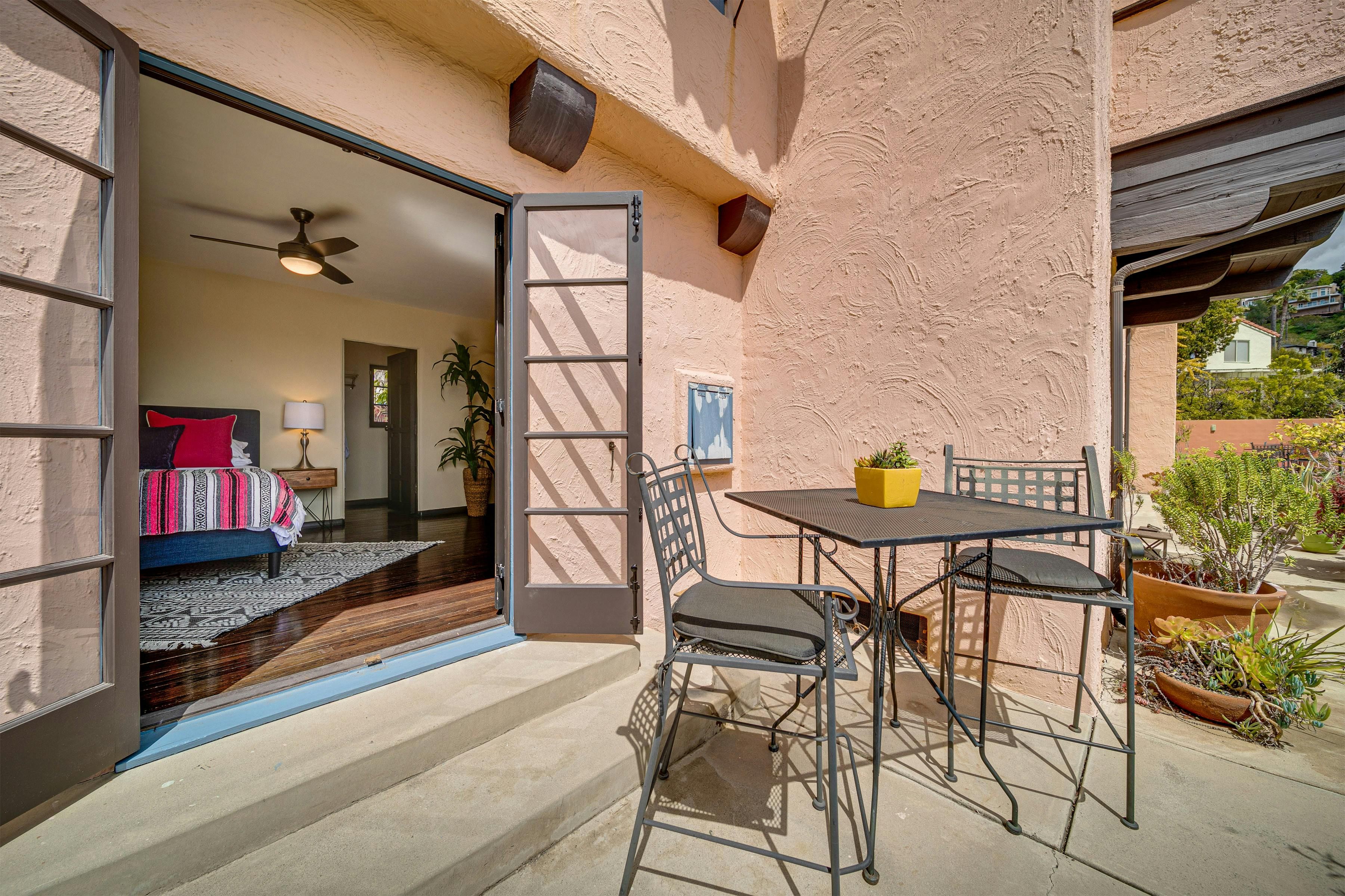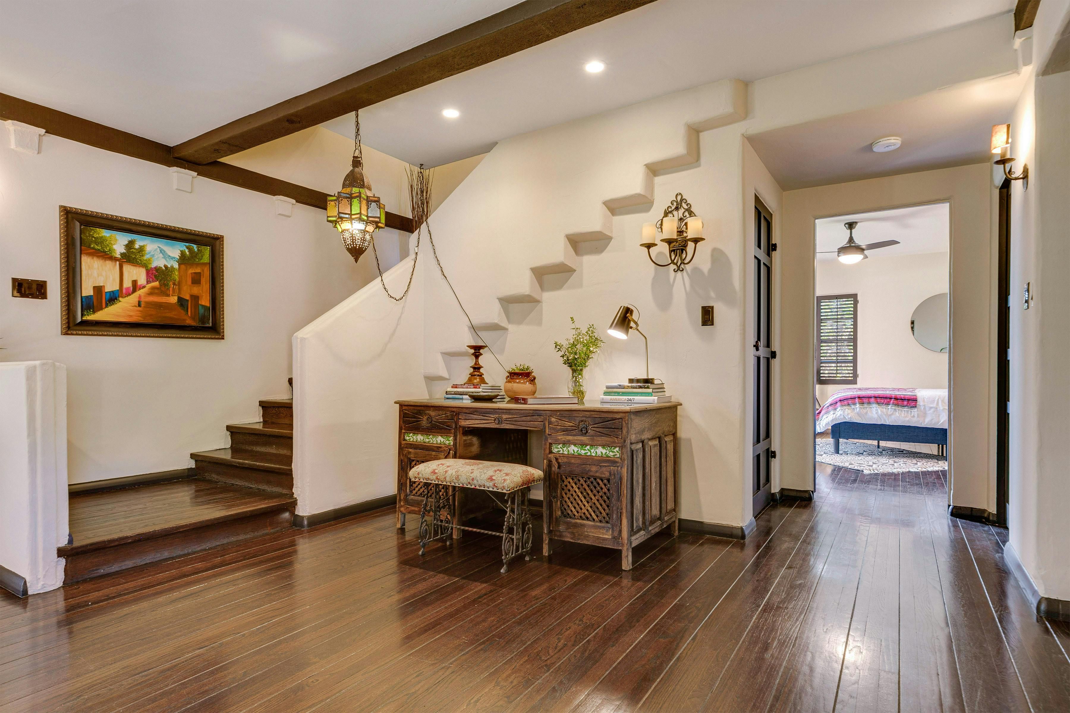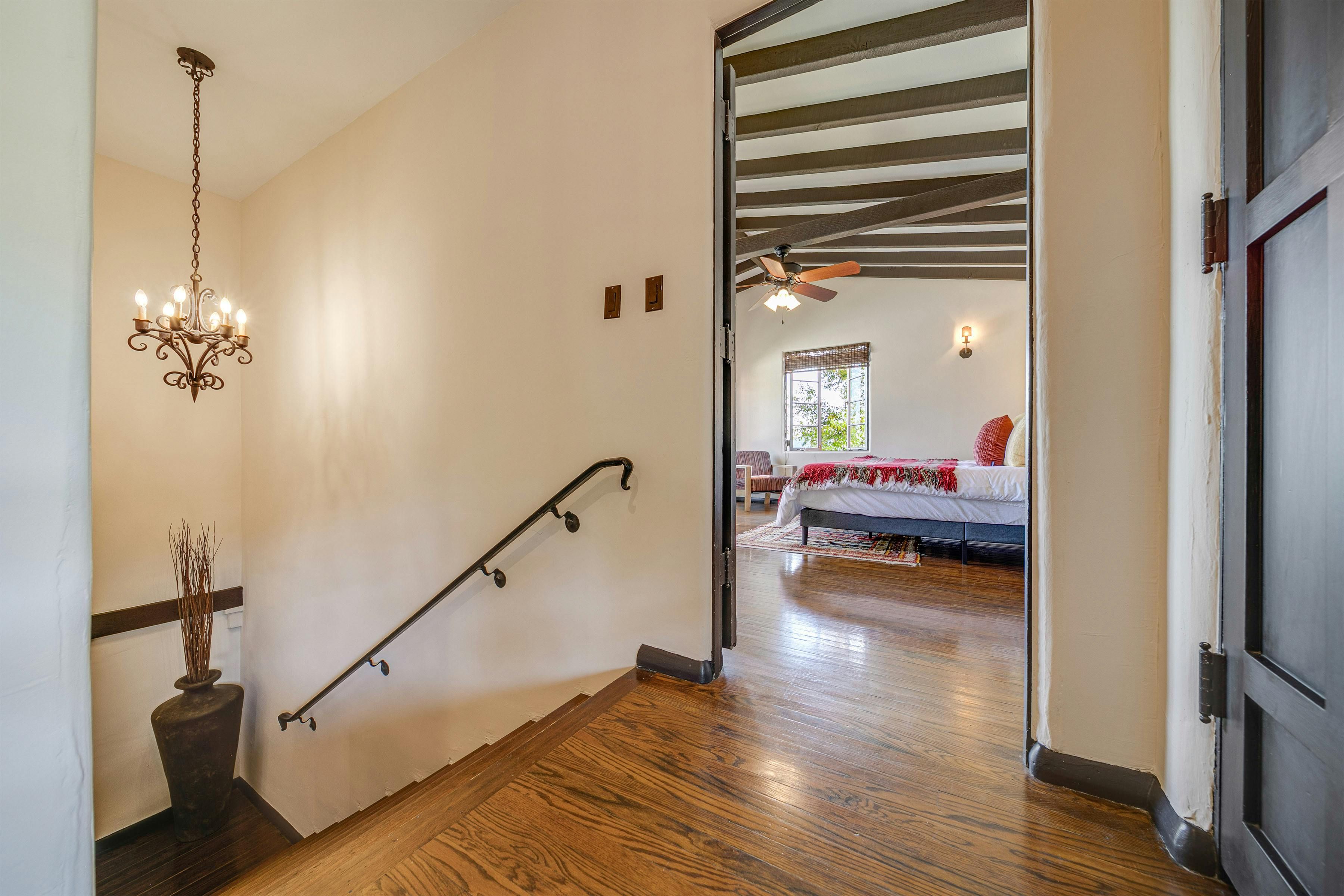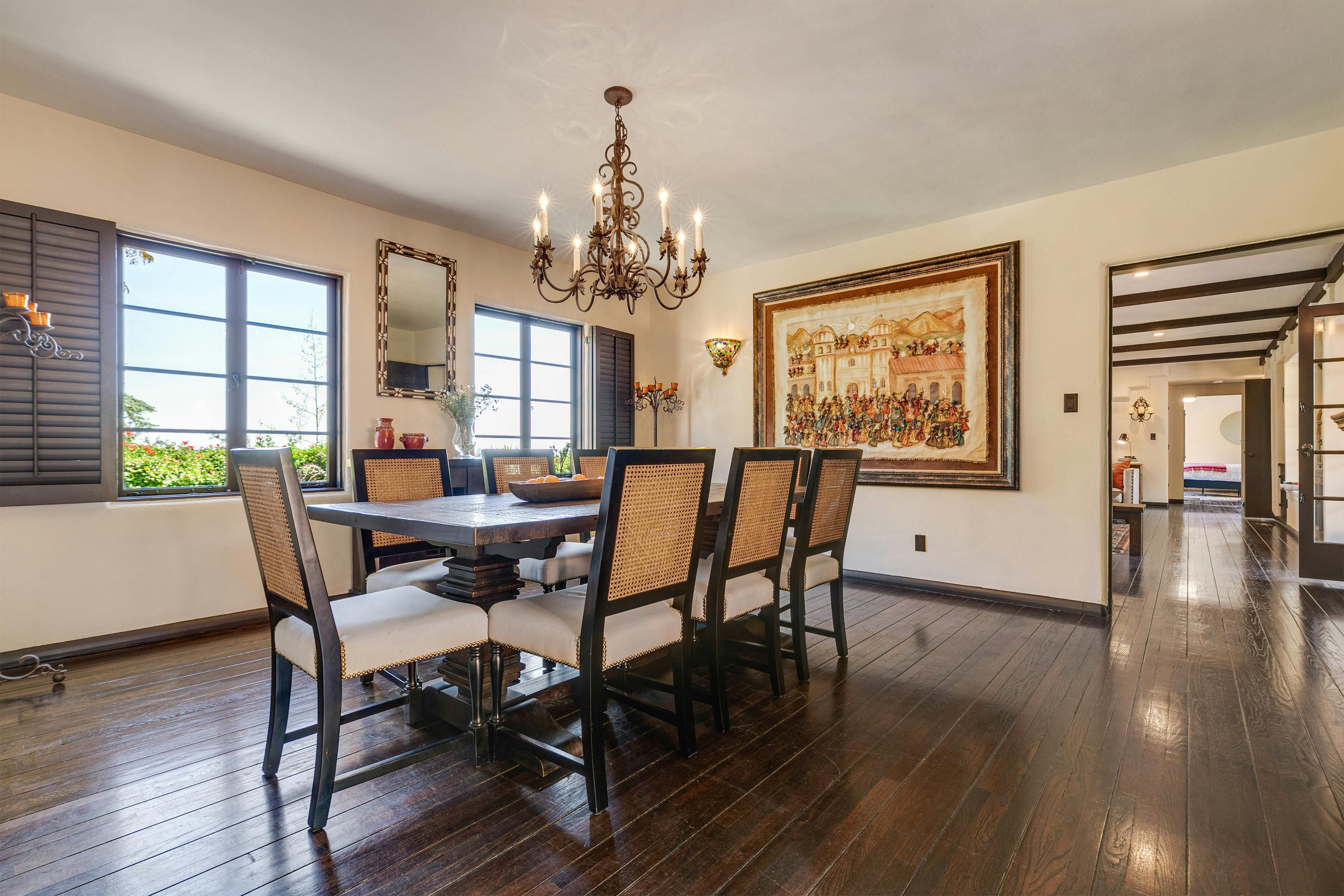 Charm and character are in abundance at this luxury home in Glendale. Fusing rustic charm with contemporary touches, you can expect wooden beams, a Kiva fireplace and enclosed gardens featuring a swimming pool and hot tub. Enjoy views over Downtown Los Angeles or read a book in the California Hacienda-style courtyard that acts as a quiet retreat not far from the vibrant heart of LA. It's only a short drive to Pasadena and Griffith Park. That said, when staying in such an elegant oasis, you could just as easily stay in and enjoy the impressive surroundings of this Hollywood home.