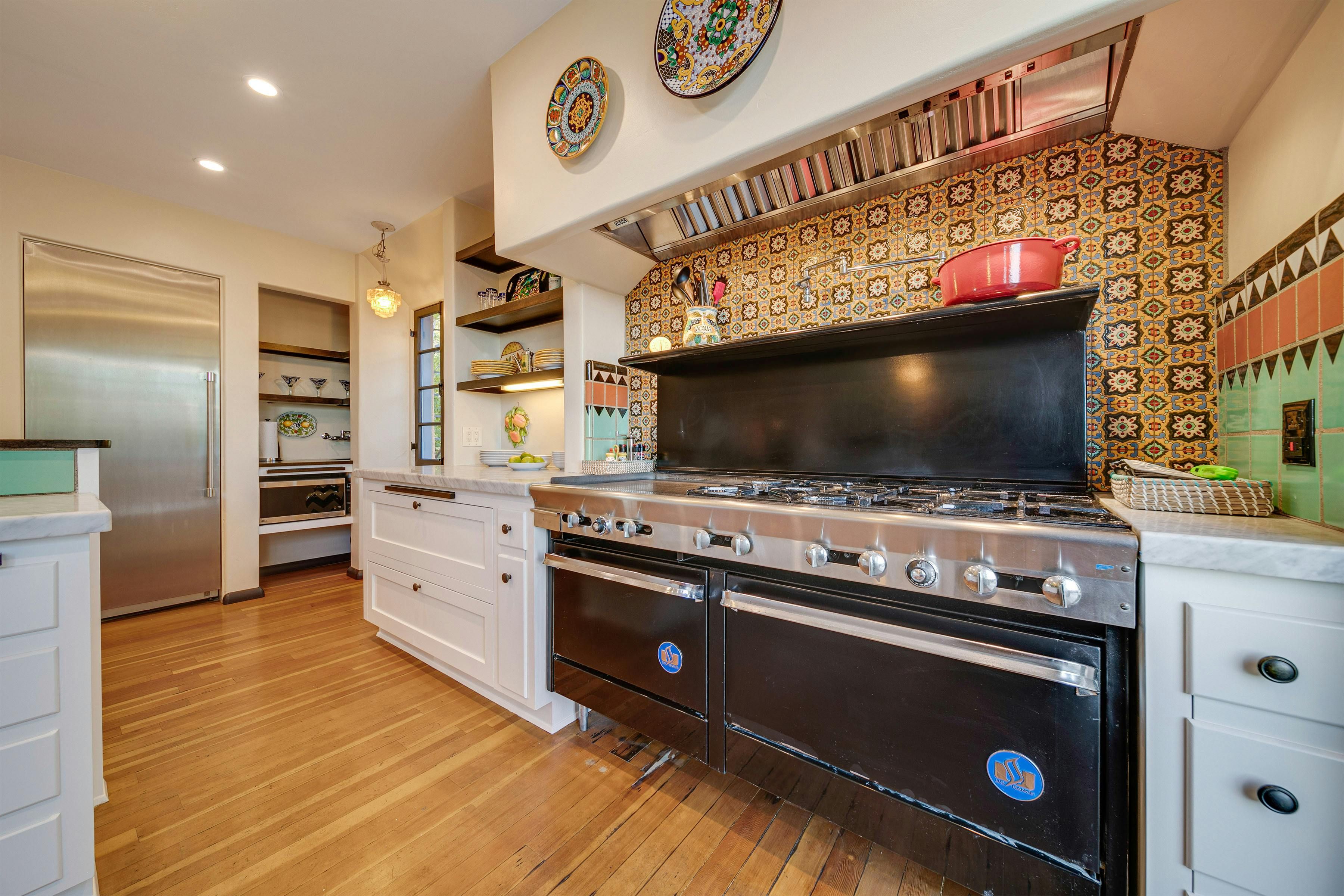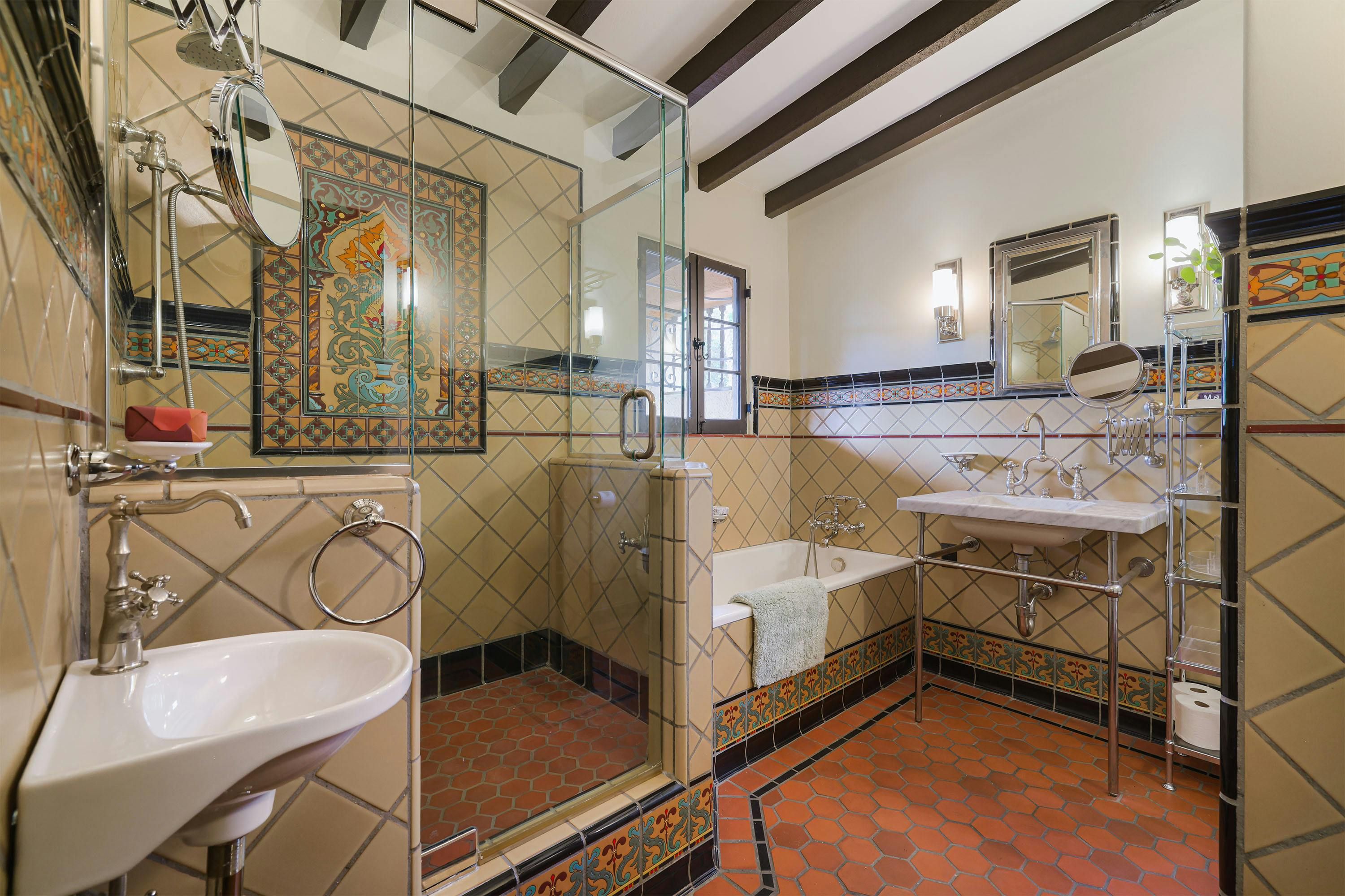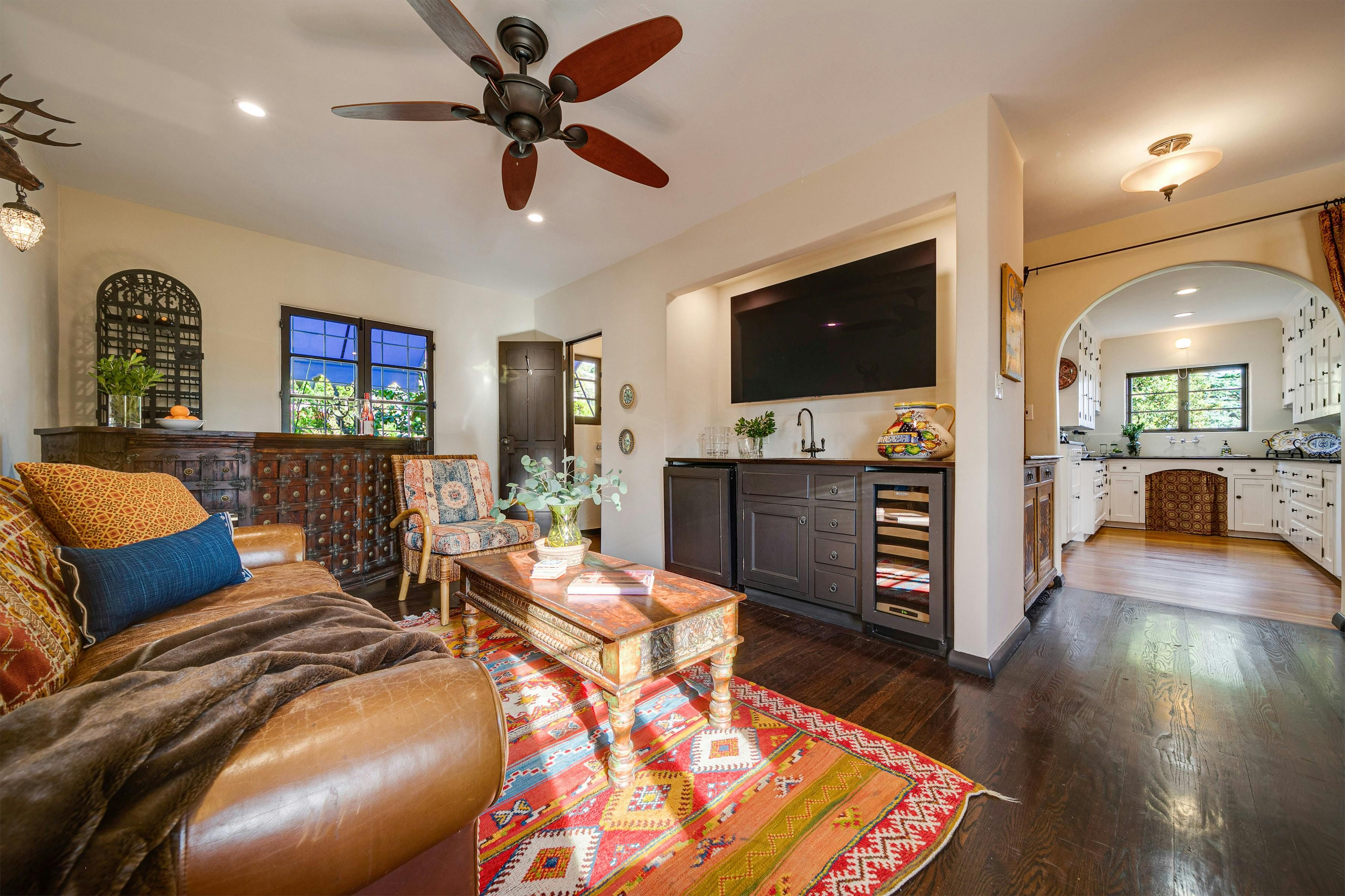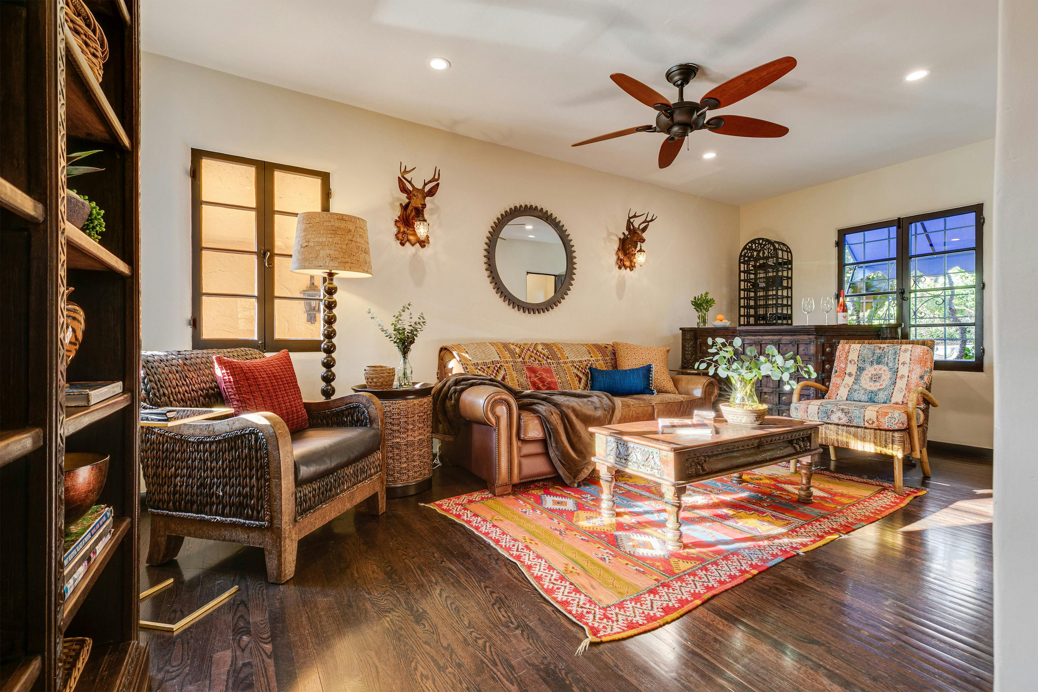 Charm and character are in abundance at this luxury home in Glendale. Fusing rustic charm with contemporary touches, you can expect wooden beams, a Kiva fireplace and enclosed gardens featuring a swimming pool and hot tub. Enjoy views over Downtown Los Angeles or read a book in the California Hacienda-style courtyard that acts as a quiet retreat not far from the vibrant heart of LA. It's only a short drive to Pasadena and Griffith Park. That said, when staying in such an elegant oasis, you could just as easily stay in and enjoy the impressive surroundings of this Hollywood home.