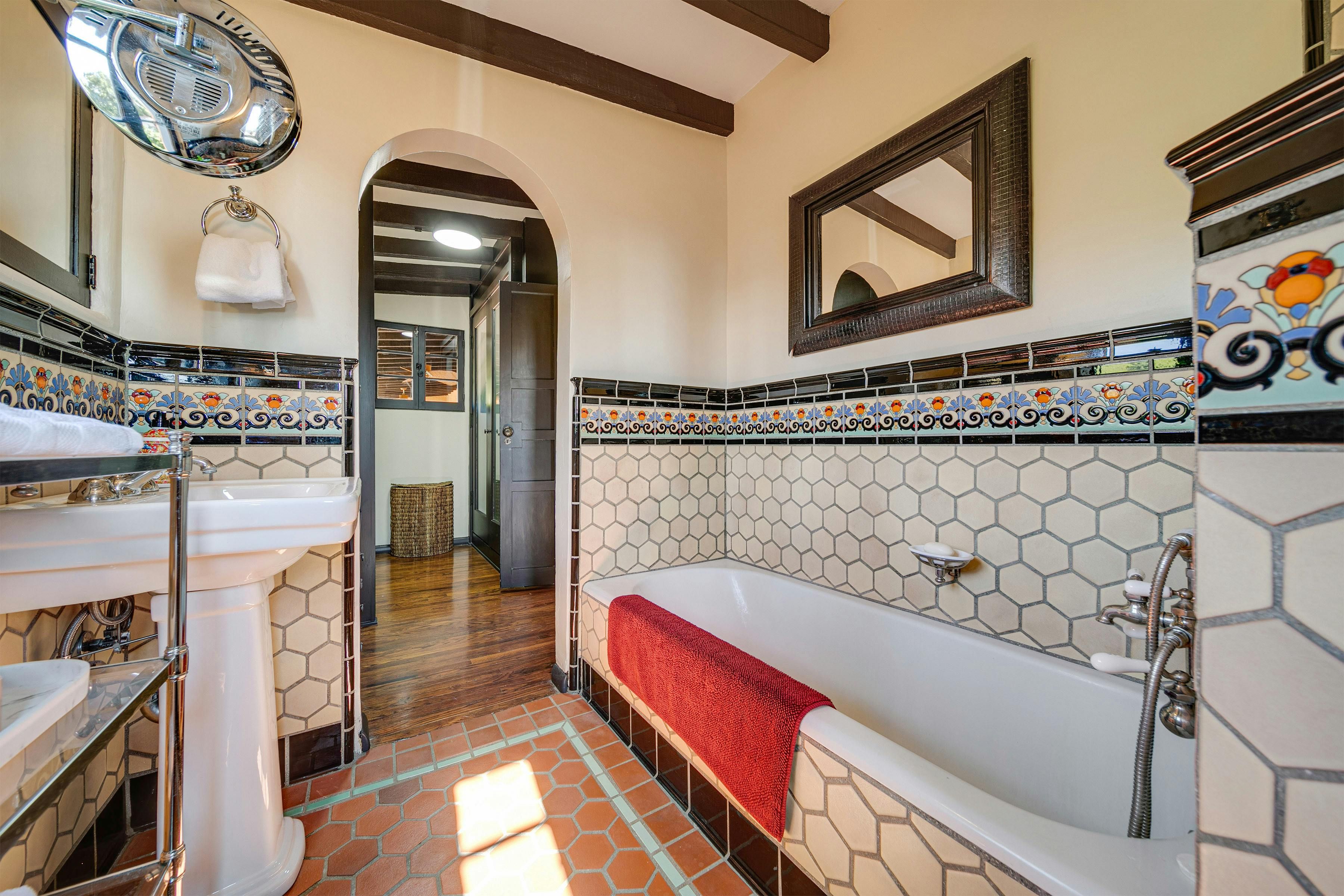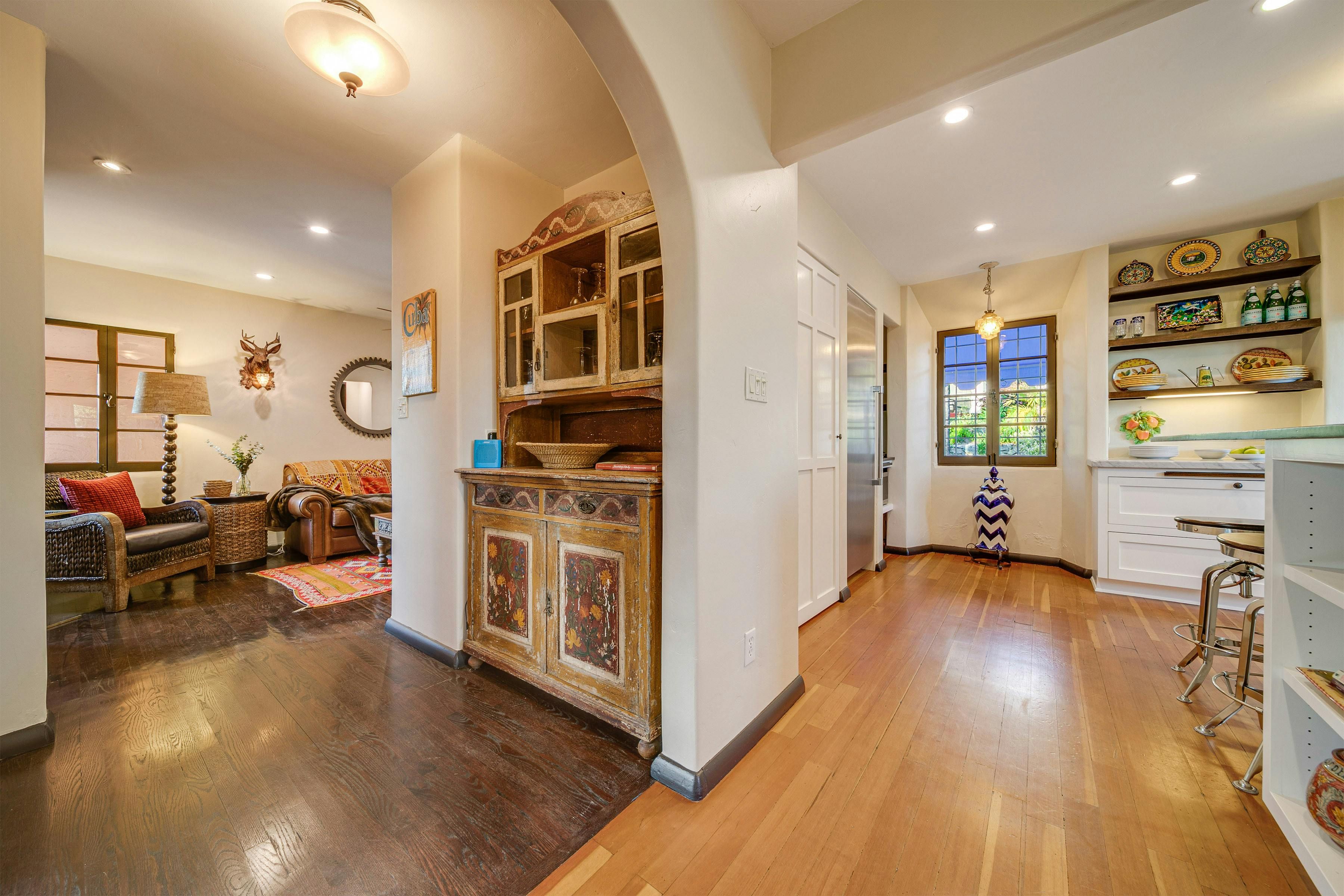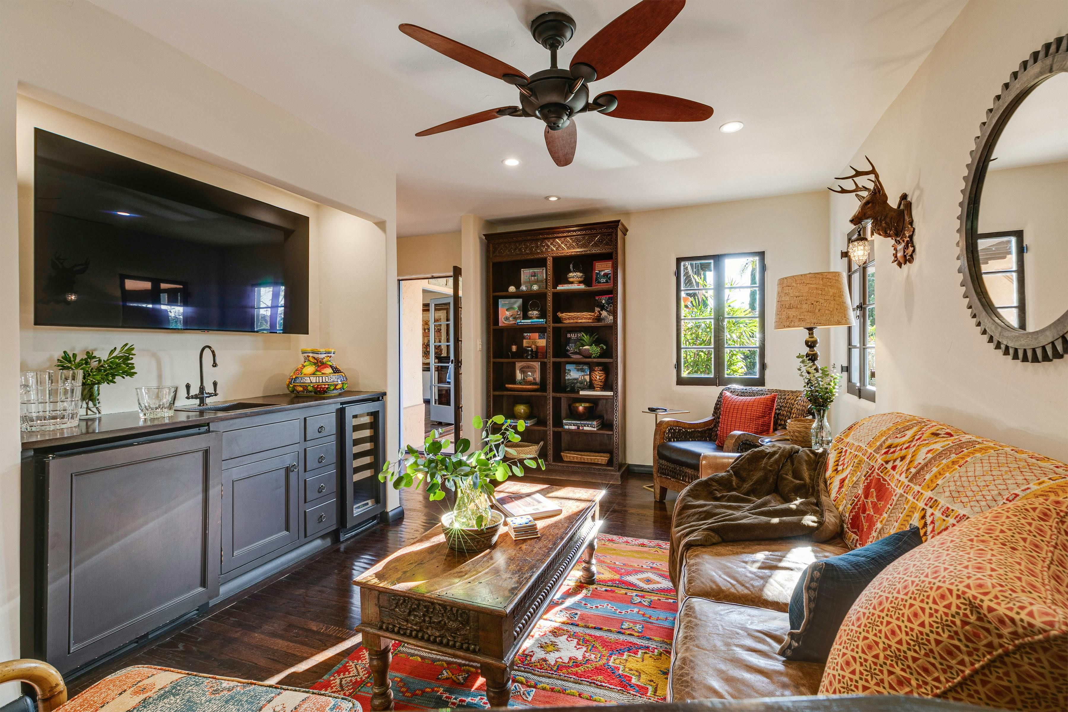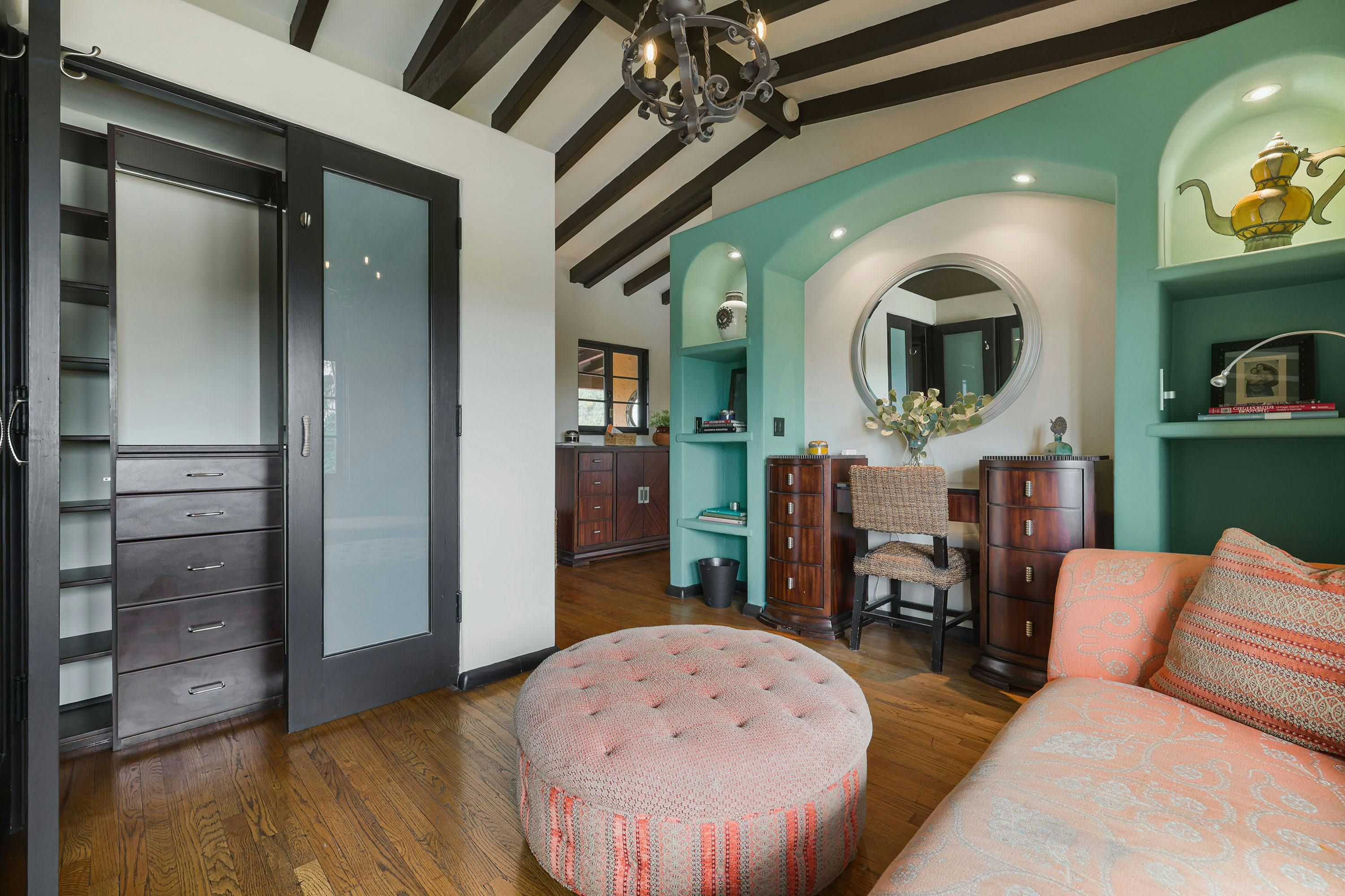 Charm and character are in abundance at this luxury home in Glendale. Fusing rustic charm with contemporary touches, you can expect wooden beams, a Kiva fireplace and enclosed gardens featuring a swimming pool and hot tub. Enjoy views over Downtown Los Angeles or read a book in the California Hacienda-style courtyard that acts as a quiet retreat not far from the vibrant heart of LA. It's only a short drive to Pasadena and Griffith Park. That said, when staying in such an elegant oasis, you could just as easily stay in and enjoy the impressive surroundings of this Hollywood home.