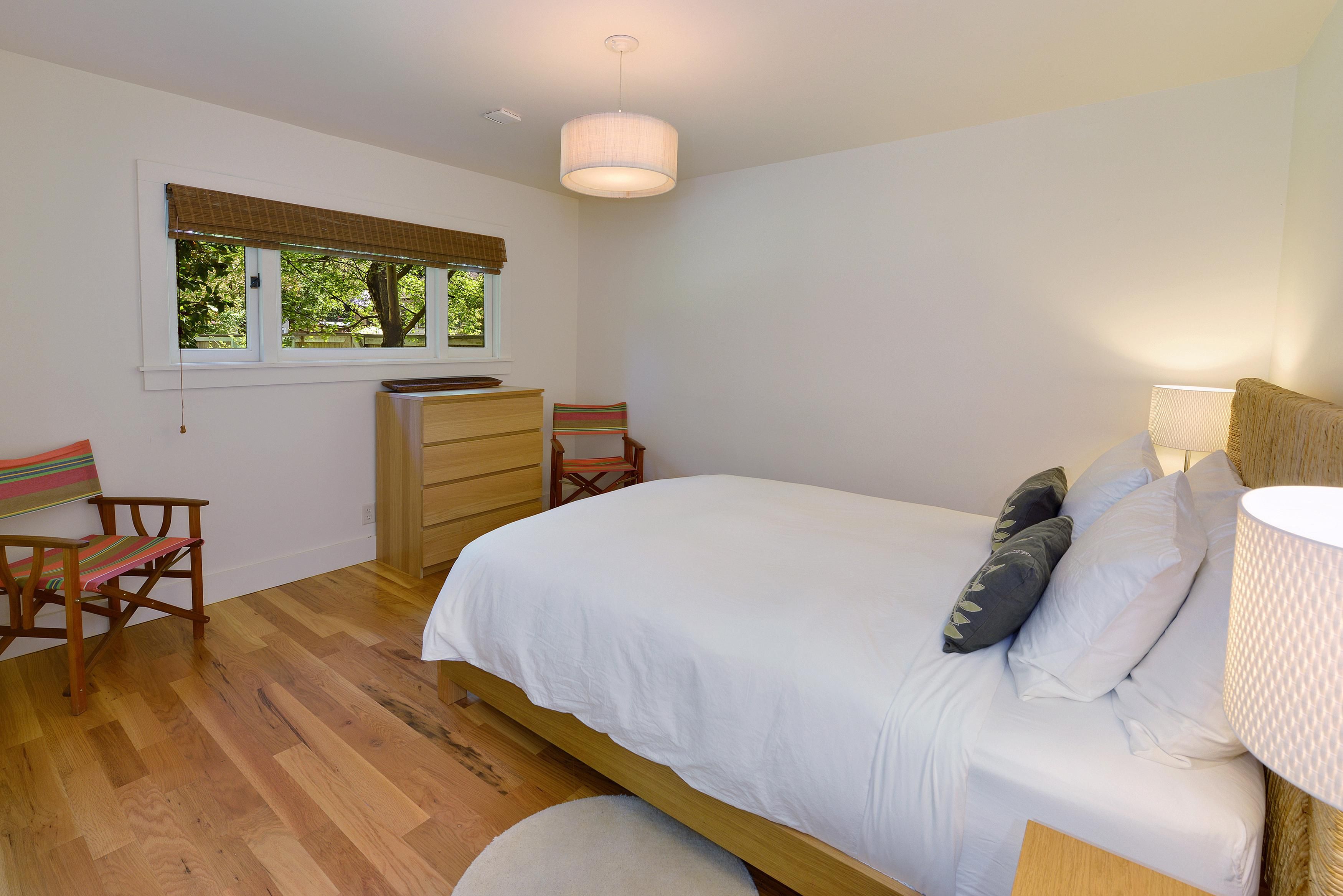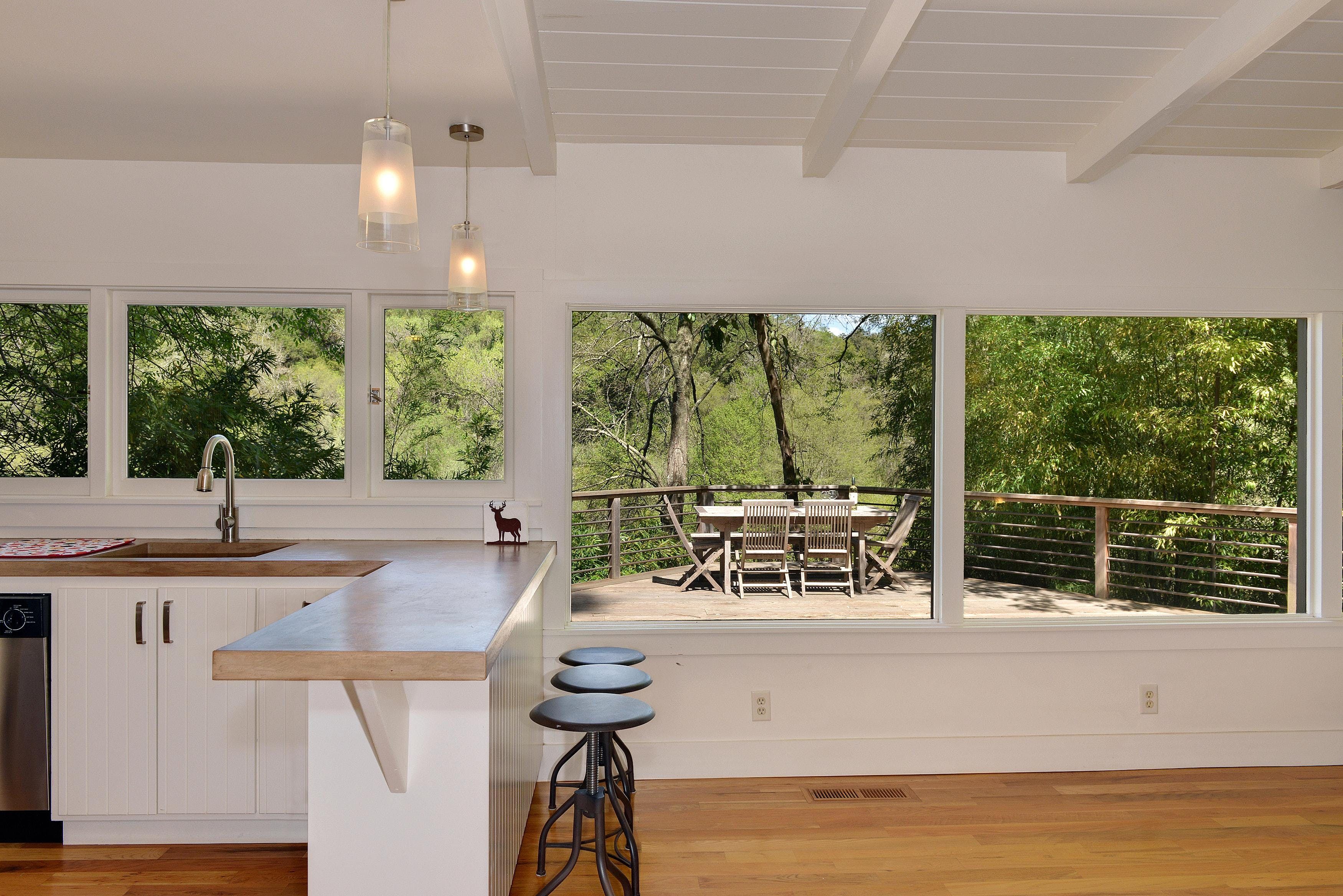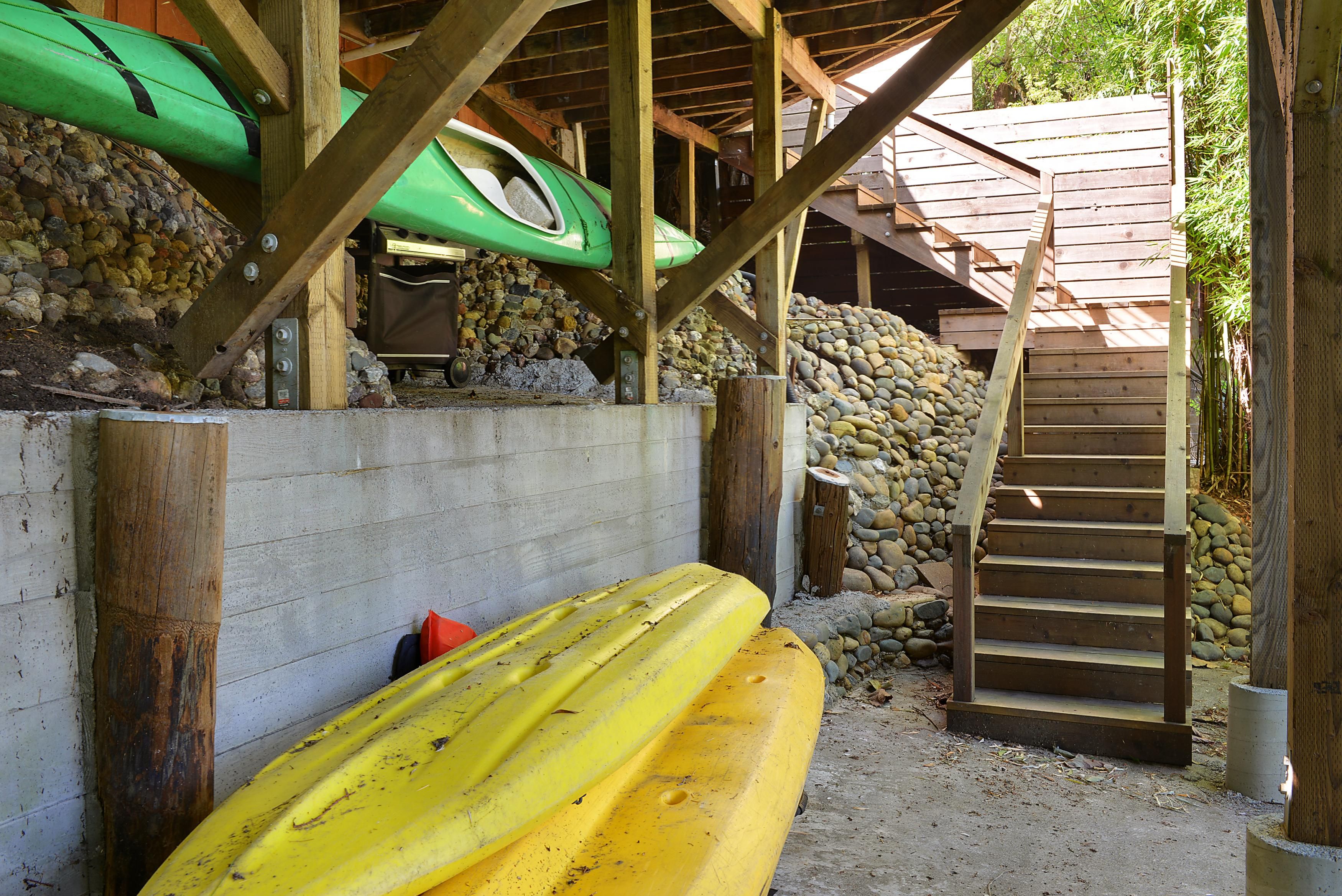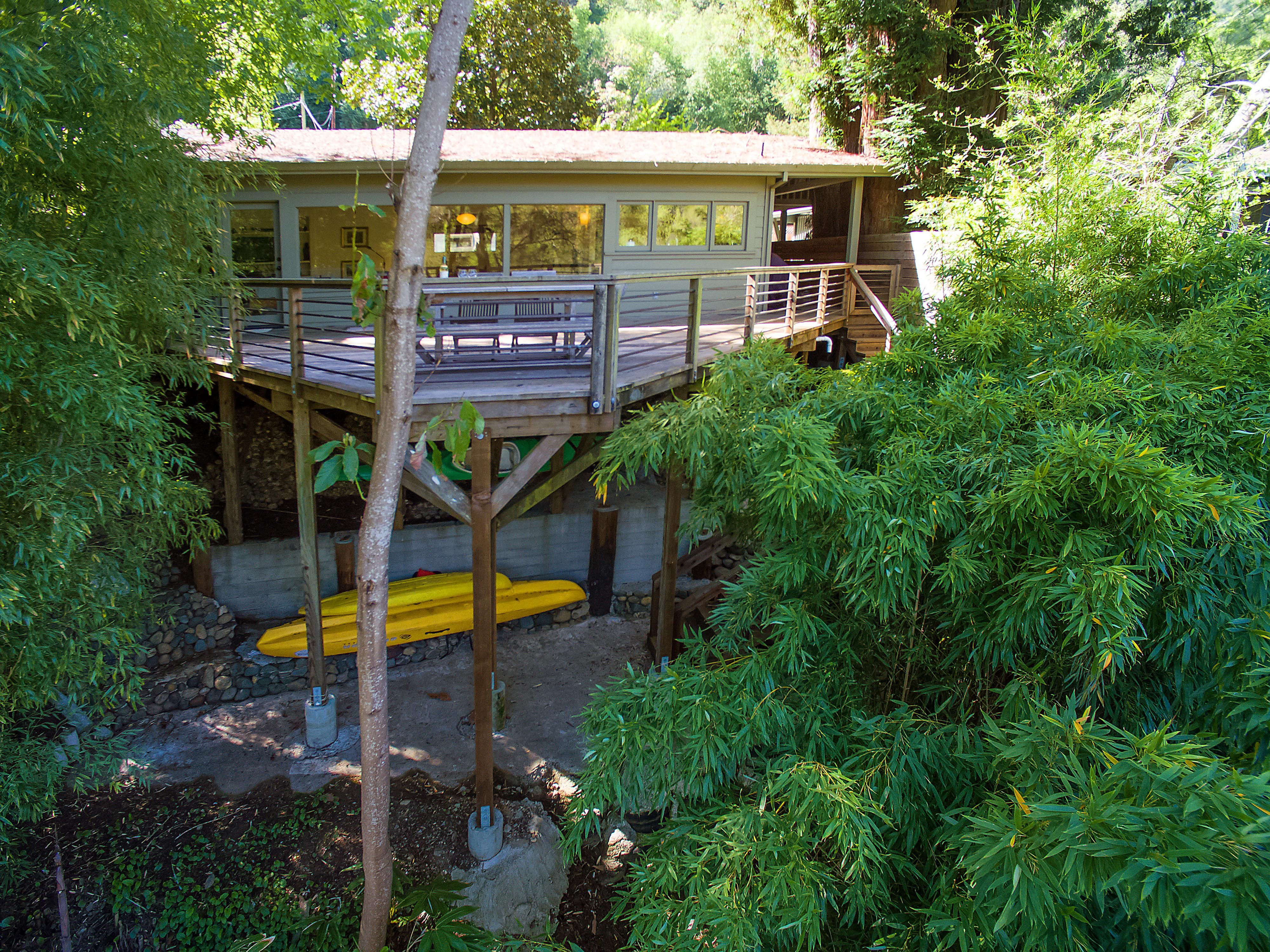 Arrive to be welcomed by a gleeful exterior, set against the lush greenery of the surrounding woods, and with the whisper of the river gently rolling by. You’ll be able to access the riverfront directly from the property, and your host also offers free kayaks and a bicycle, making it even easier to take full advantage of the stunning setting. The large patio is the perfect place to share morning coffee or a bottle of delectable California wine at sunset.