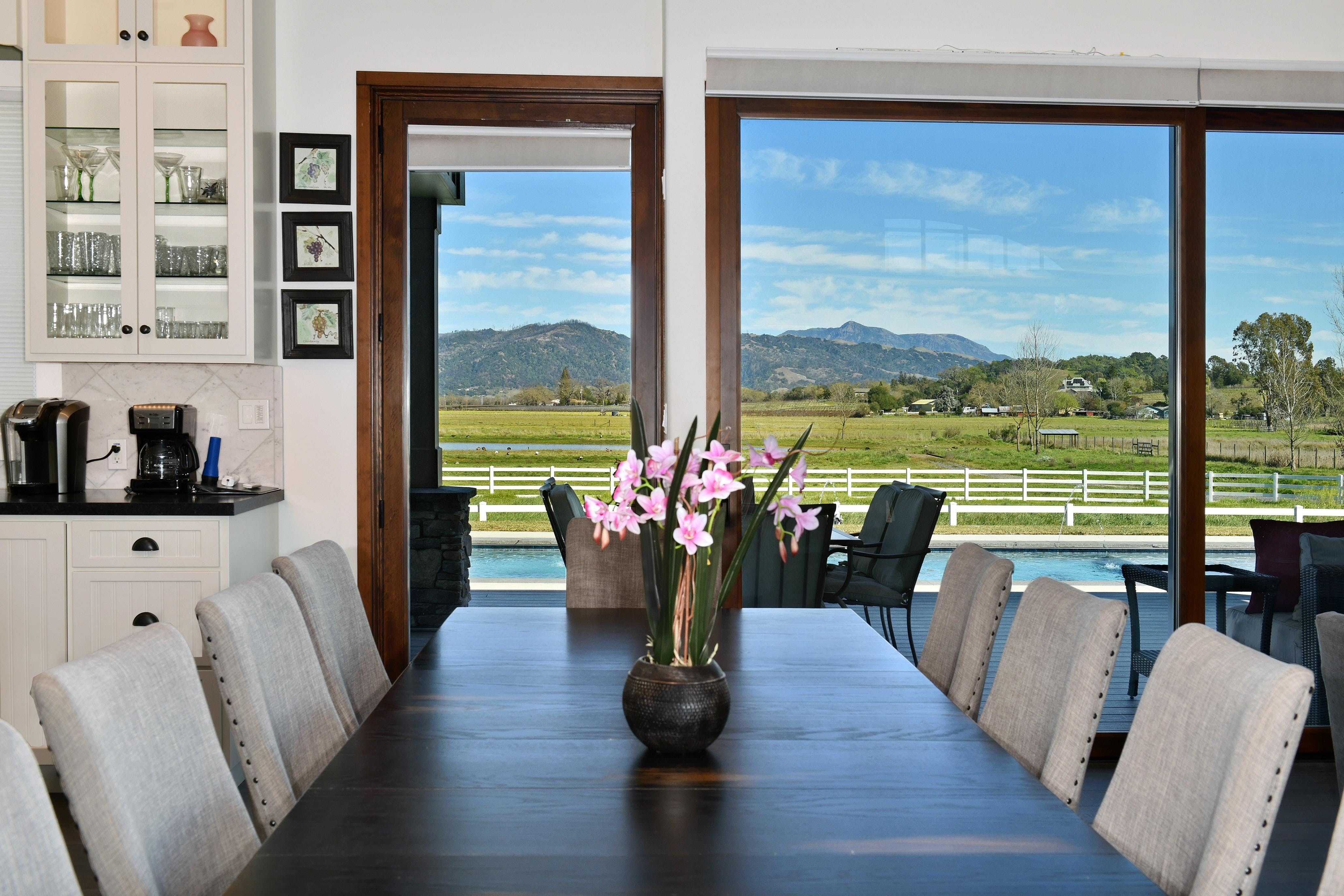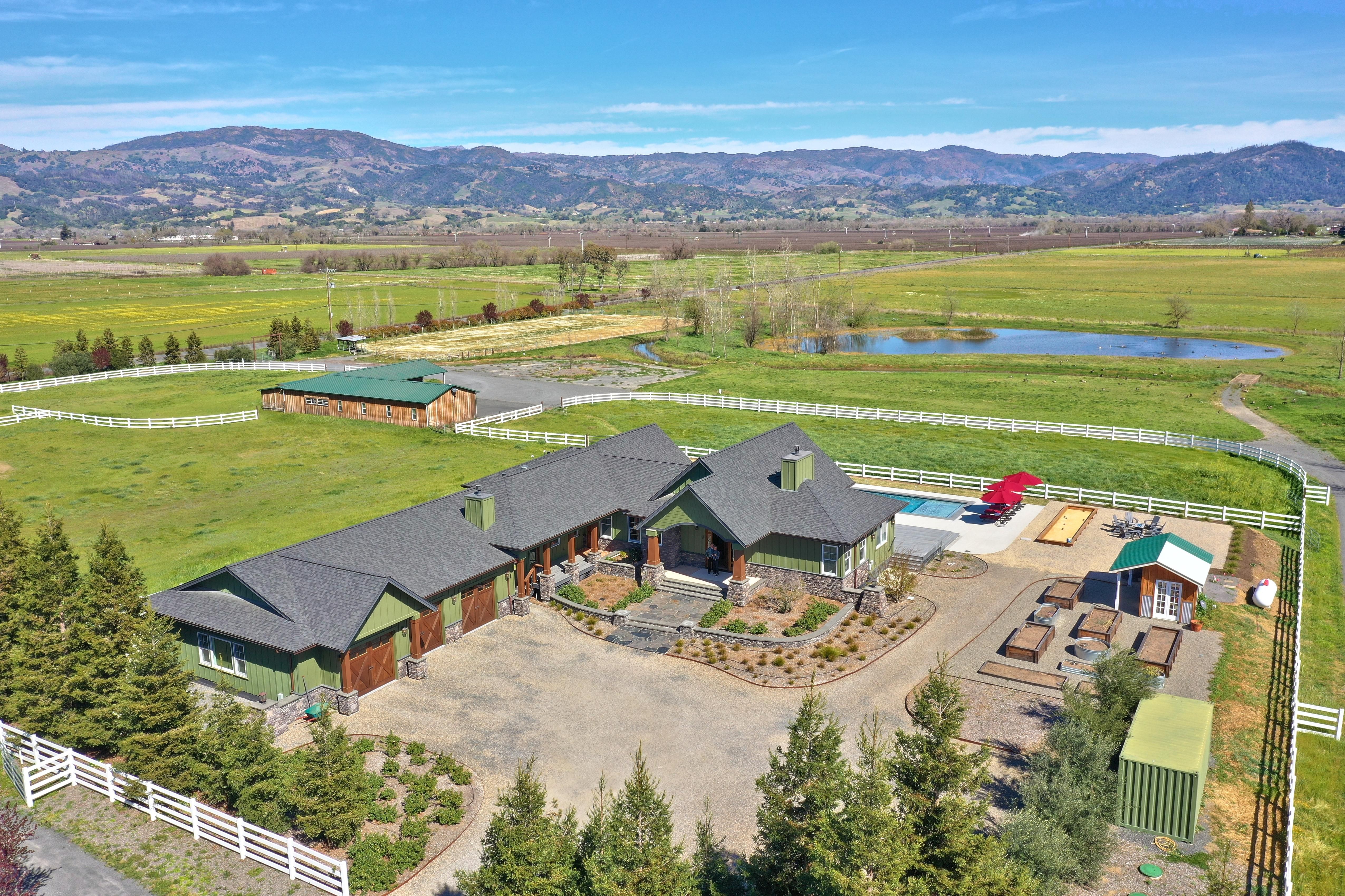 Hidden away in the beautiful Alexander Valley of California, right in the heart of wine country lies this massive property spanning eleven acres. Take advantage of three beautiful accomodations and a range of luxury outdoor facilities including a heated pool, outdoor dining and a basketball court. With breathtaking views of Mt St Helena visible right from your living room, this sanctuary is the perfect backdrop for family retreats and corporate events. Indoor sports like ping pong and pool make for casual games nights, or take advantage of the fully-equipped kitchens and a private chef and dine alfreco under the California sun.