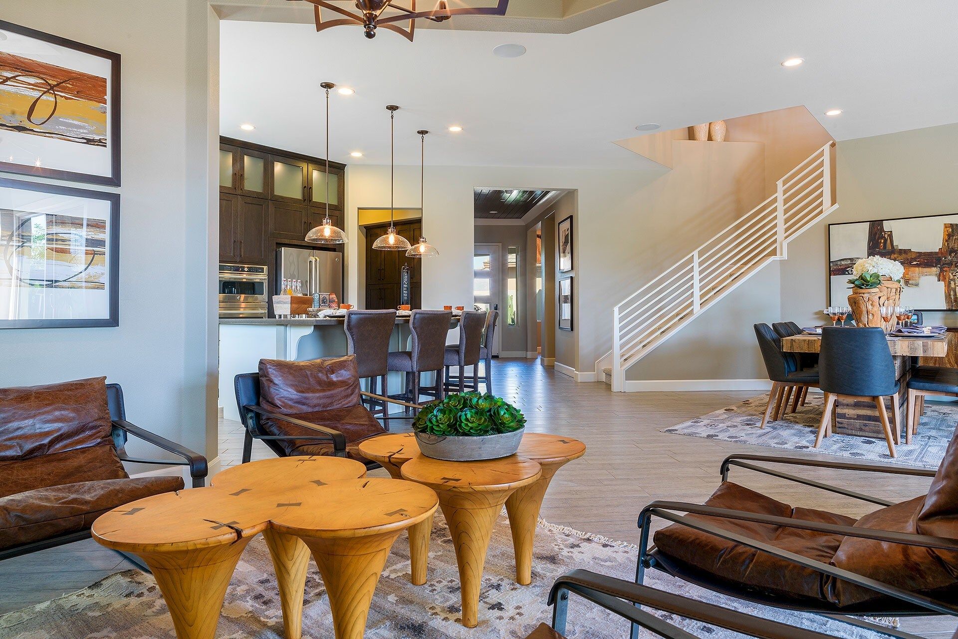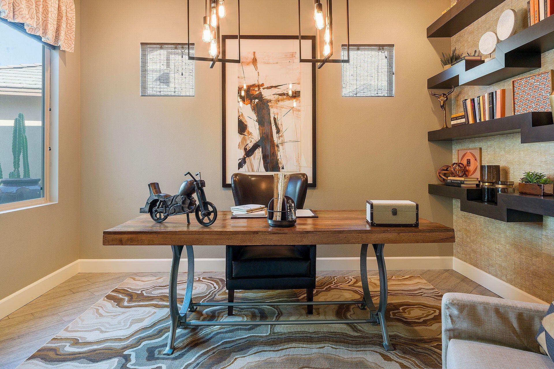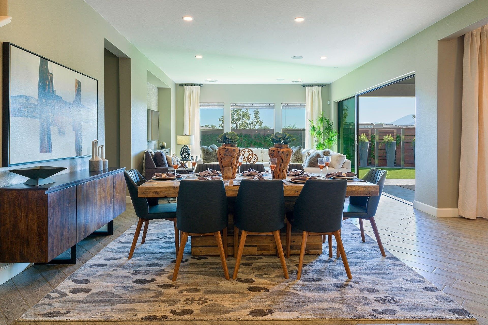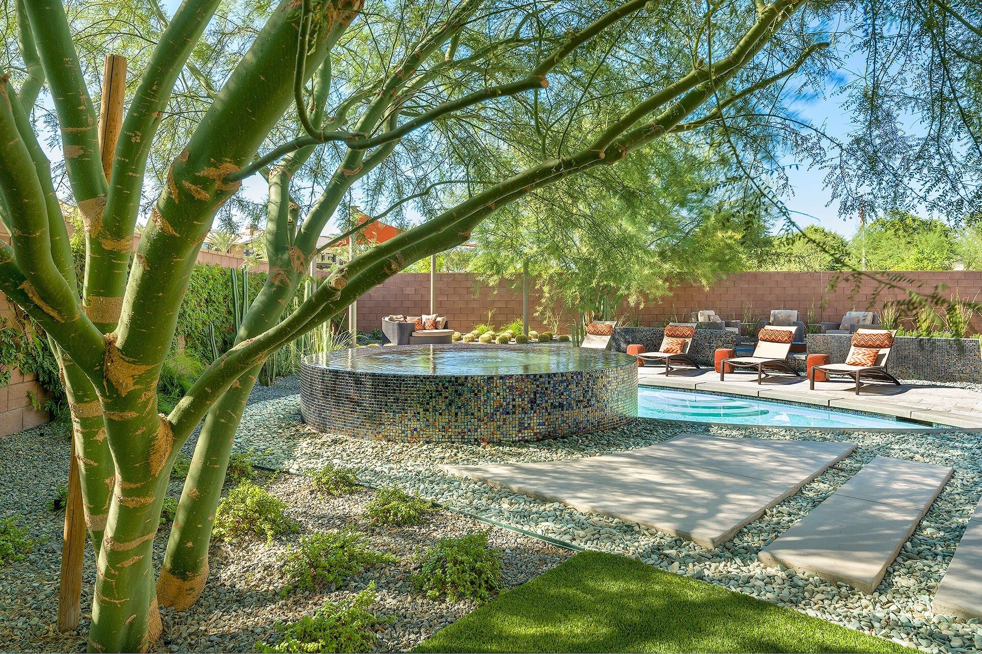 This vibrant, luscious, and luxe home is the ideal spot for a desert escape in the Coachella Valley. Your host will have sorted a fully stocked fridge, and touches like this really set the home apart. The garden feels like an oasis - definitely an overused term for desert dwellings, but no exaggeration here. The salt water flows from the spa into the pool, while branches hang overhead and stone pathways lead you around the serene garden. There’s a well-kept lawn, perfect for a game of croquet or bocce ball. The sleek and effortless home is just as gorgeous indoors, with chocolate leather furniture, a sharp kitchen and breakfast bar, a luxe freestanding bathtub, and stunning bedroom views. If you’re keen to explore beyond the grounds, there's plenty to do nearby. Several golf courses can be reached in a 5-minute drive, and the area has tennis courts, casinos, and a fantastic dining scene. If you want something a little more rugged, you can't beat the glorious landscapes and wildlife of Joshua Tree National Park, just a 30-minute drive away. Prepare yourself for a seriously stylish, elegant, and unforgettable break in this oasis.