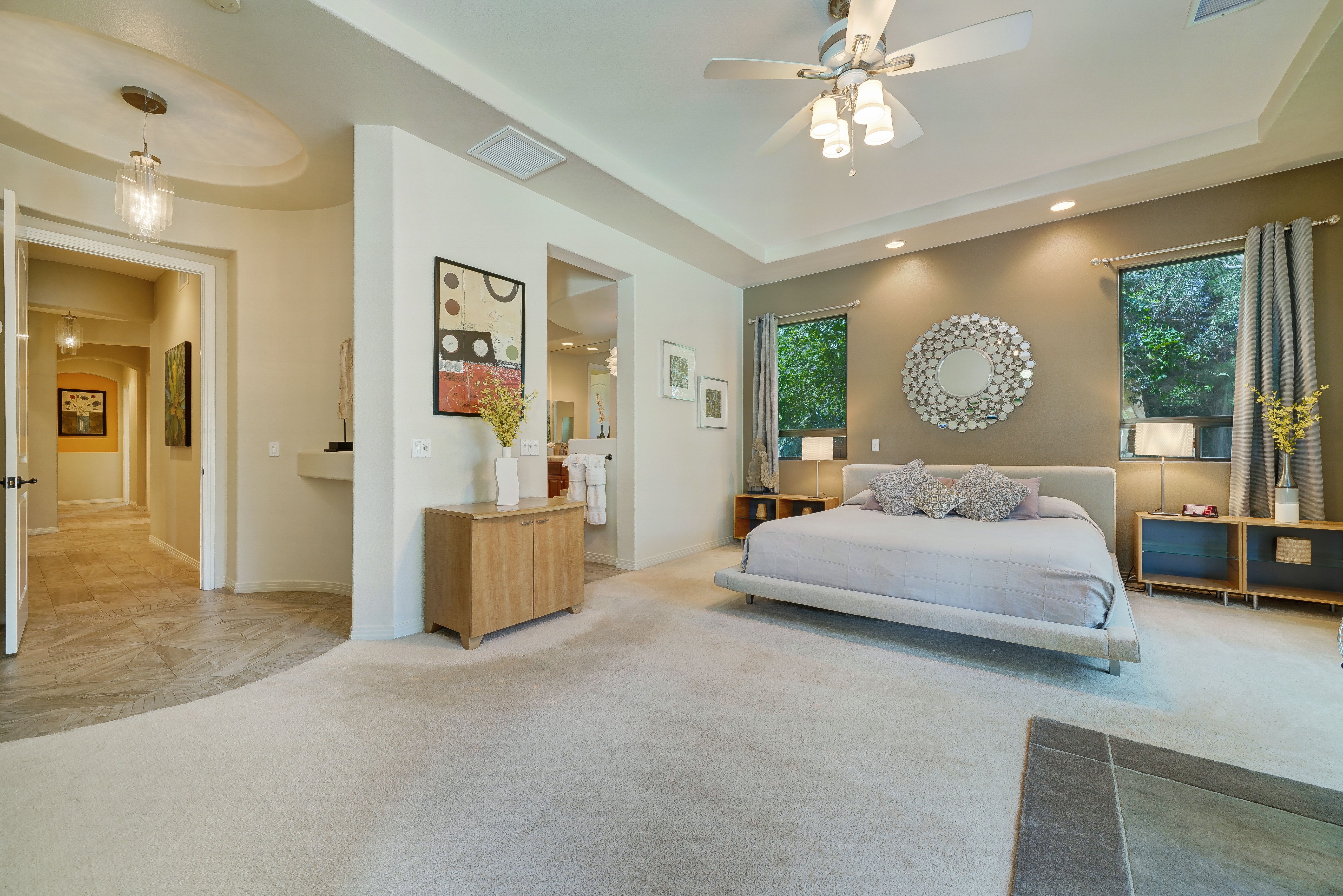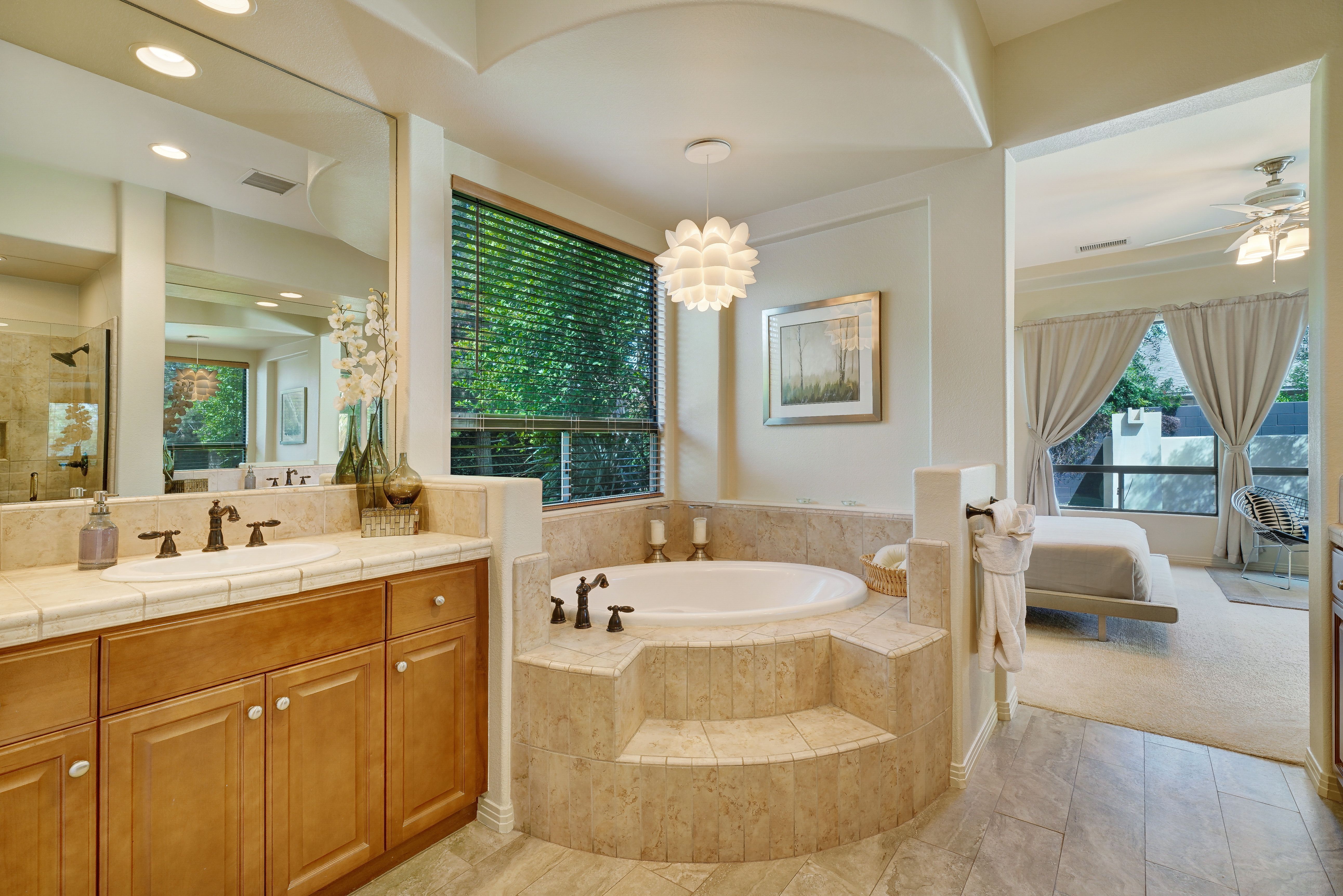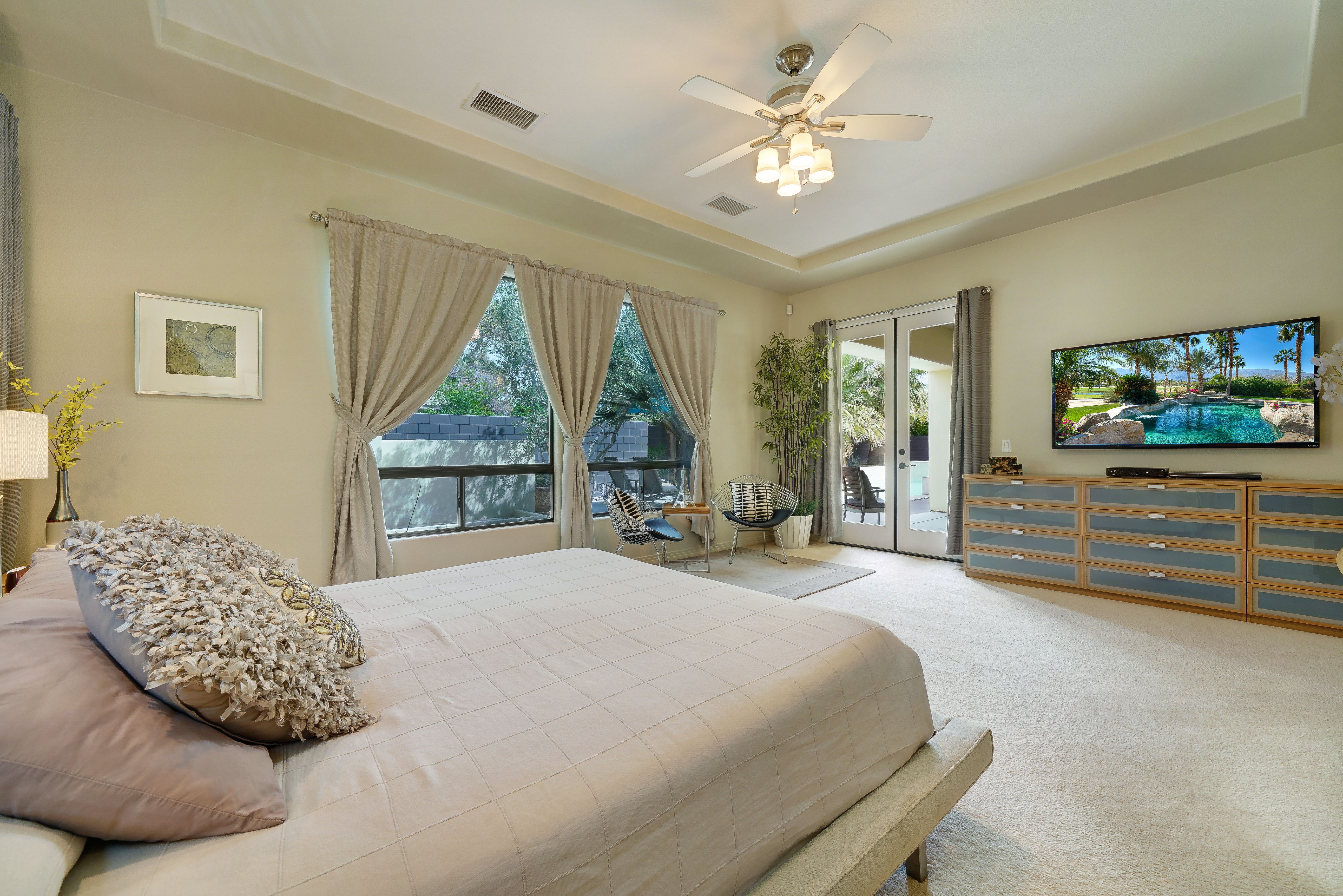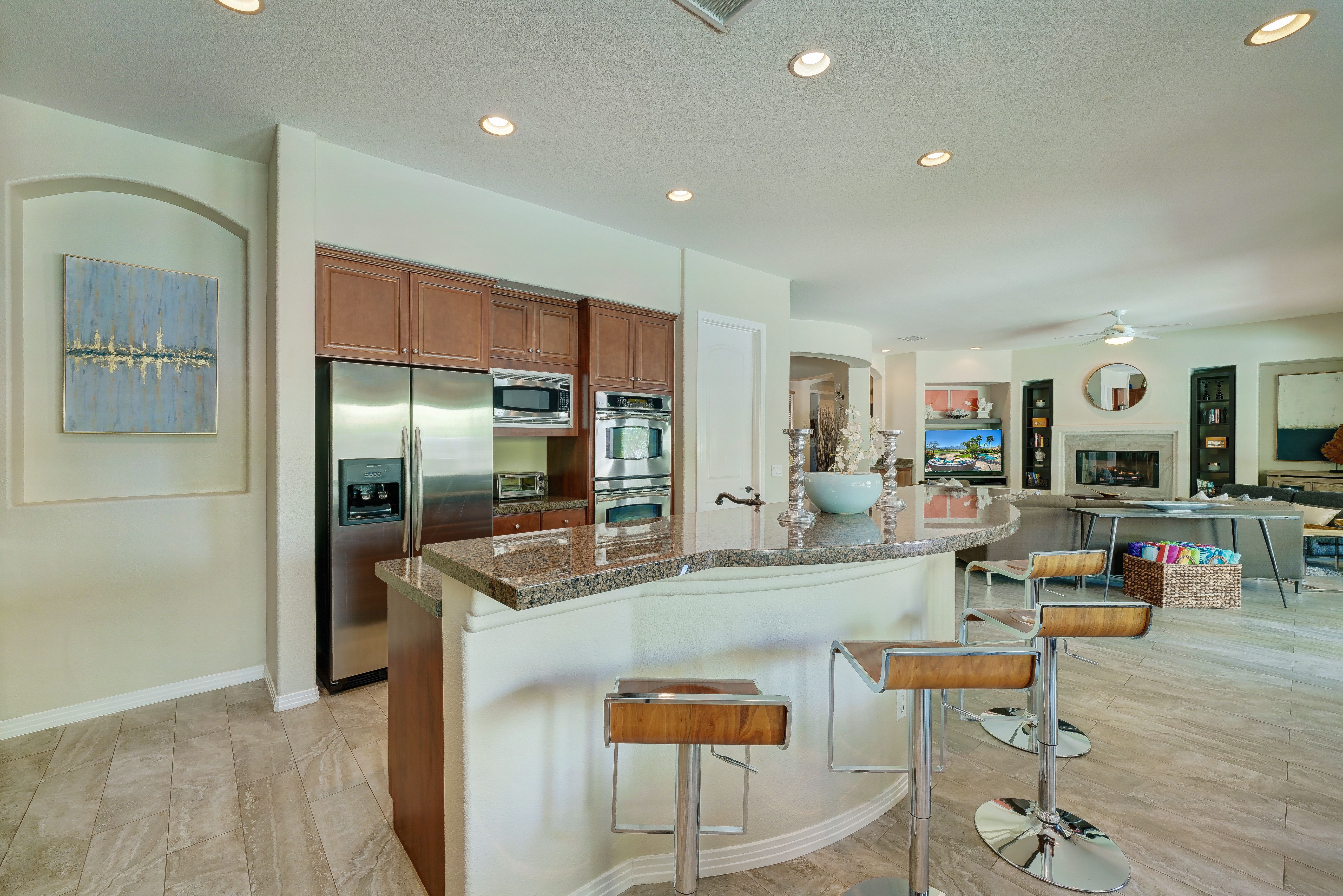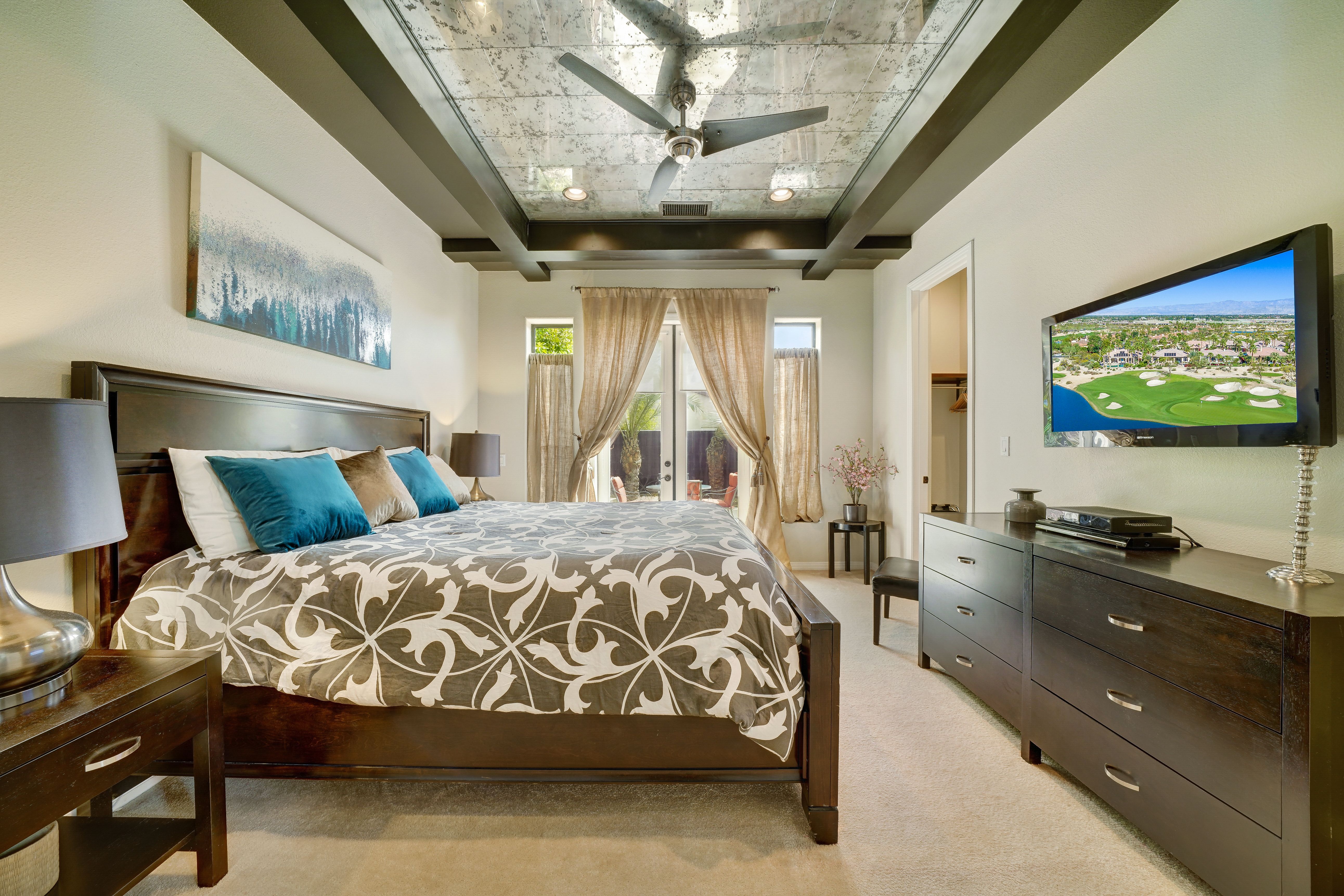 Nestled in the heart of the Coachella Valley, this home is full of European charm but with stunning views of the Californian mountains. If you’re here to experience the Cali lifestyle, The Encore is the perfect desert base. But if you’re here for a relaxing escape from reality, this home has everything you need without ever leaving its grounds. We love the large saltwater pool, which has water jets and a removable volleyball net to keep the kids entertained, as well as a tanning area and hot tub for the adults. Start your days here with a yoga flow on the garden’s lush grass, then end your days around the fire pit and dining alfresco with food you prepared on the barbeque.