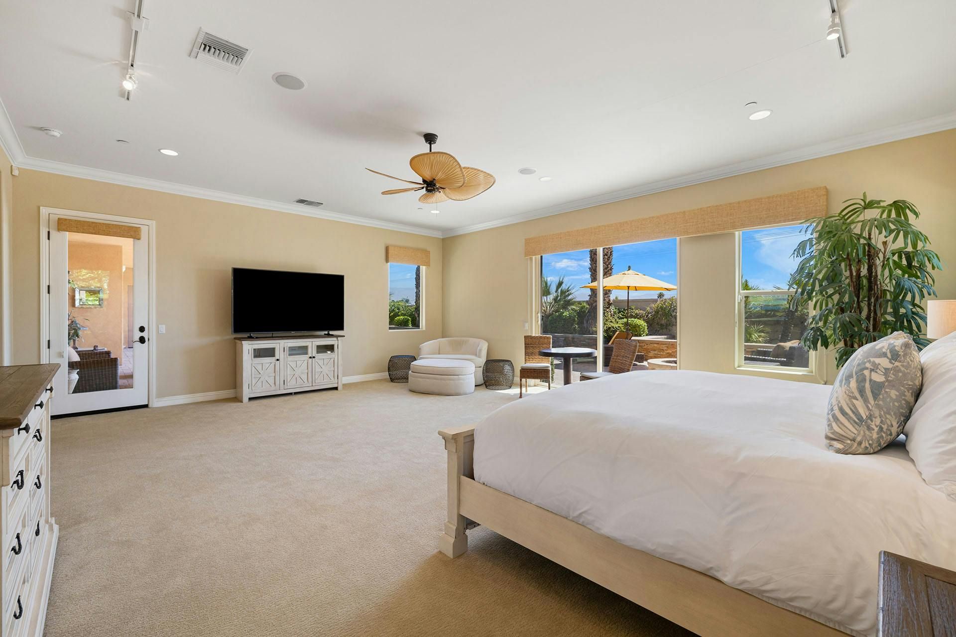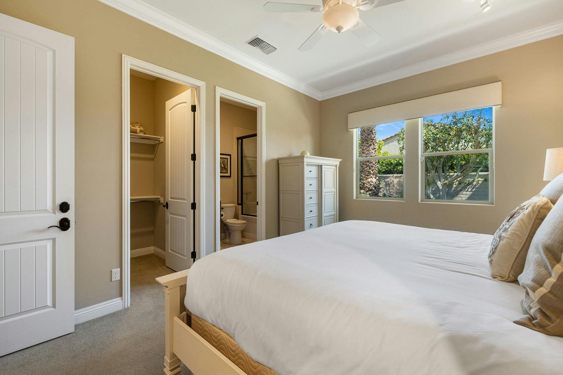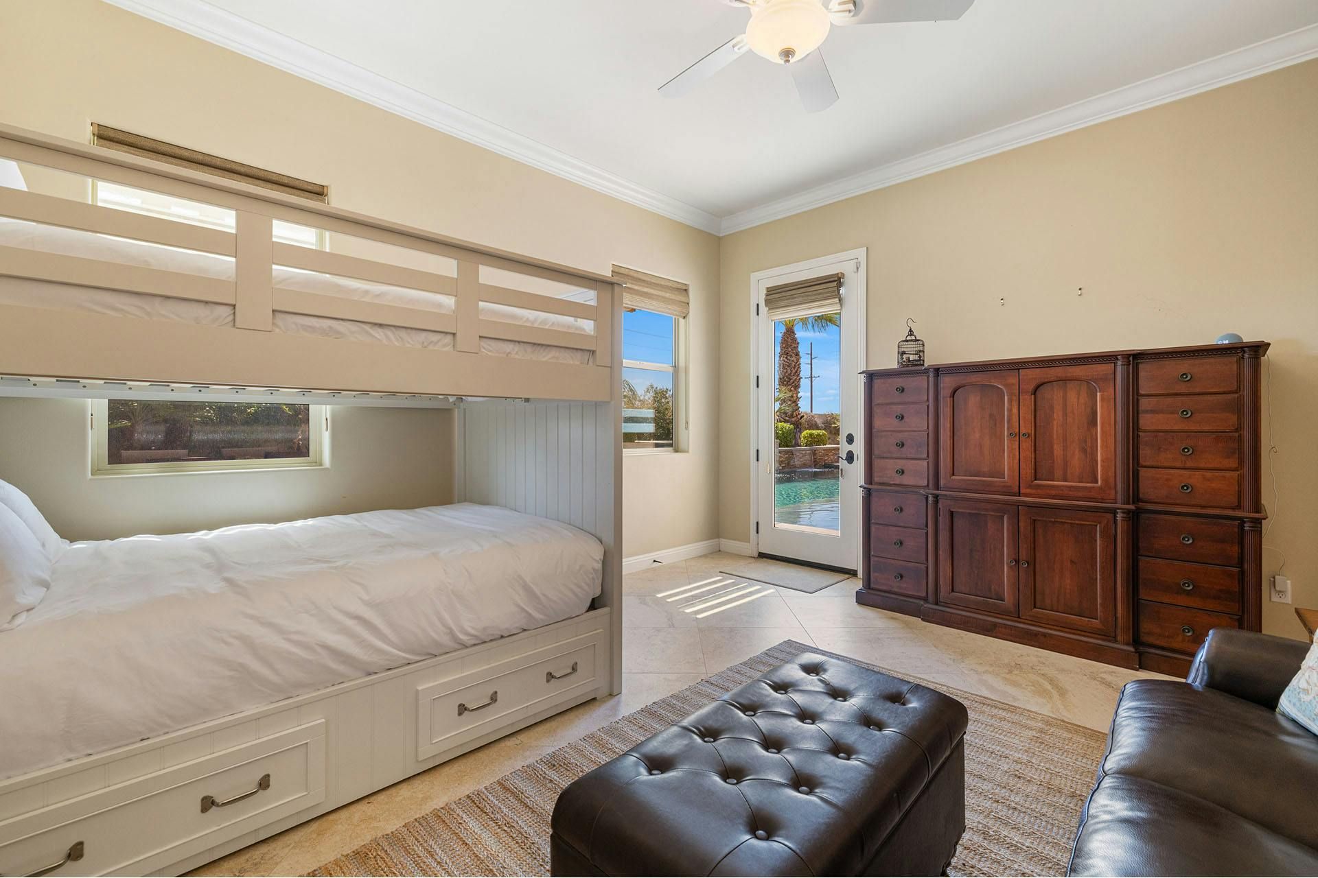 Want to make the most of the desert’s endless sunshine? There’s no shortage of outdoor space to enjoy at this bright and breezy villa. It has not one, but two swimming pools – the palm-fringed backyard pool perfect for lounging, while the smaller one in the front courtyard is great for a cooling dip. Step inside to discover the generous living space and serene bedroom suites, offering effortless comfort at the end of a long day. From golfing and hiking to shopping or simply savouring the sun, there’s lots to see and do in the Coachella Valley and beyond.