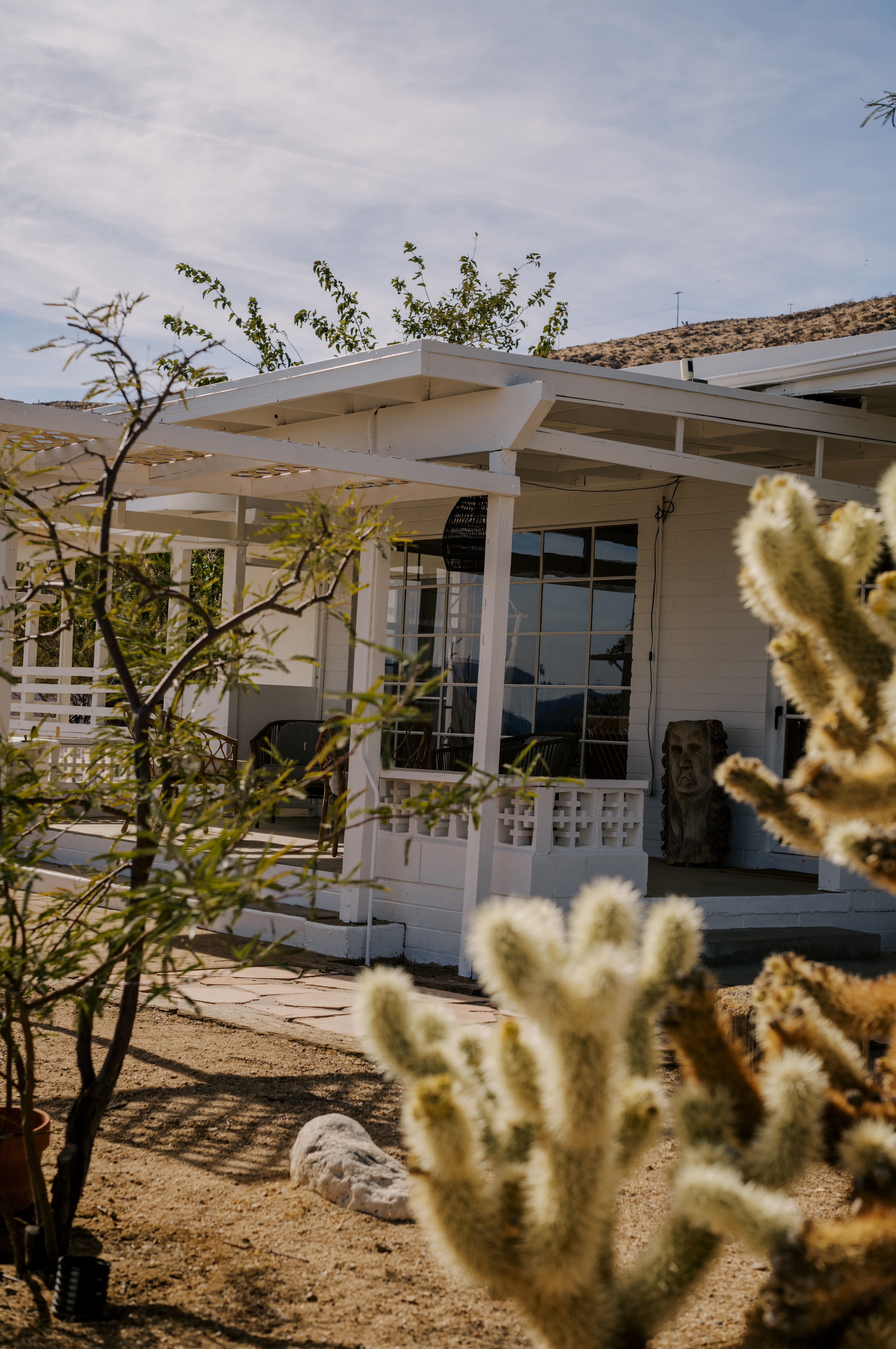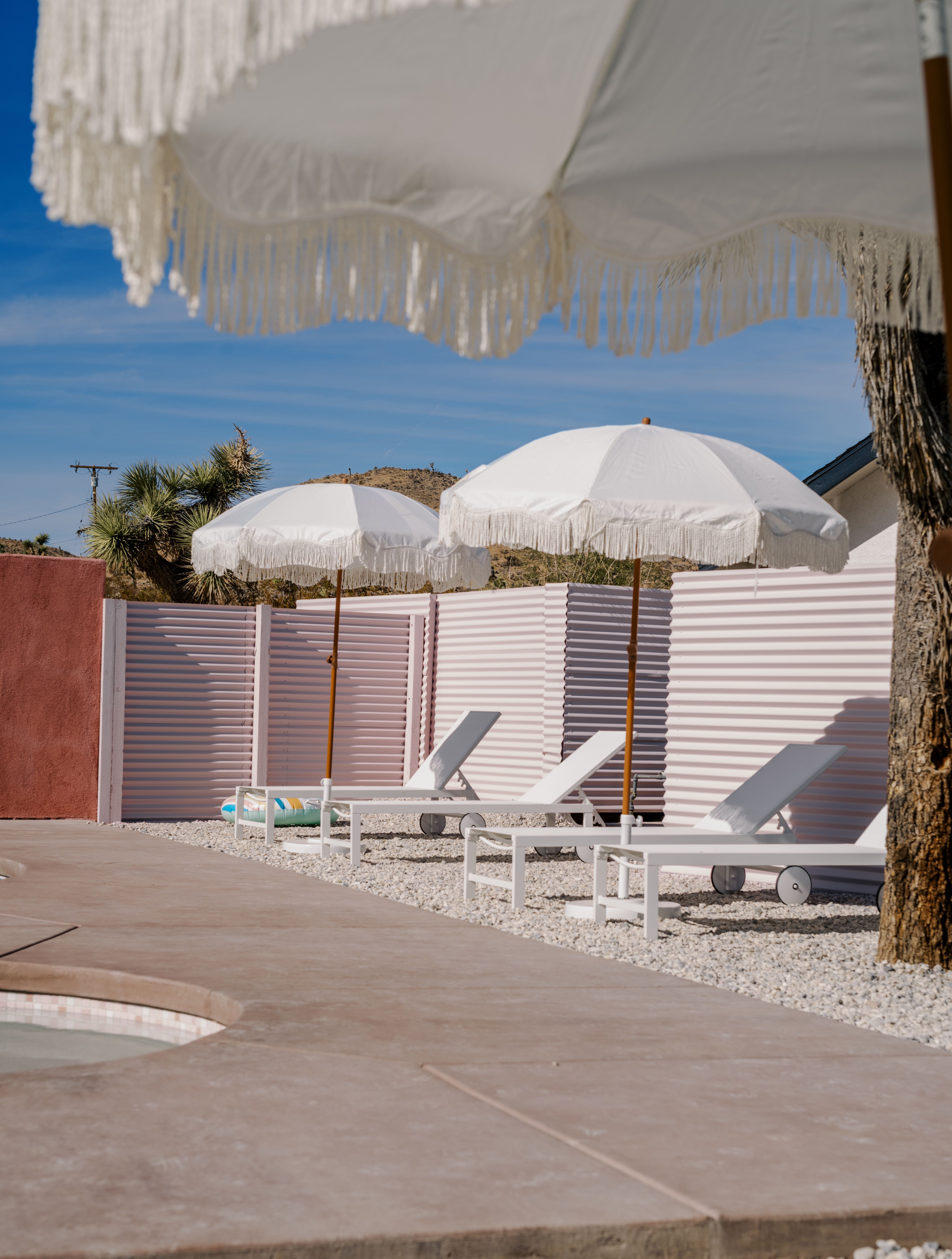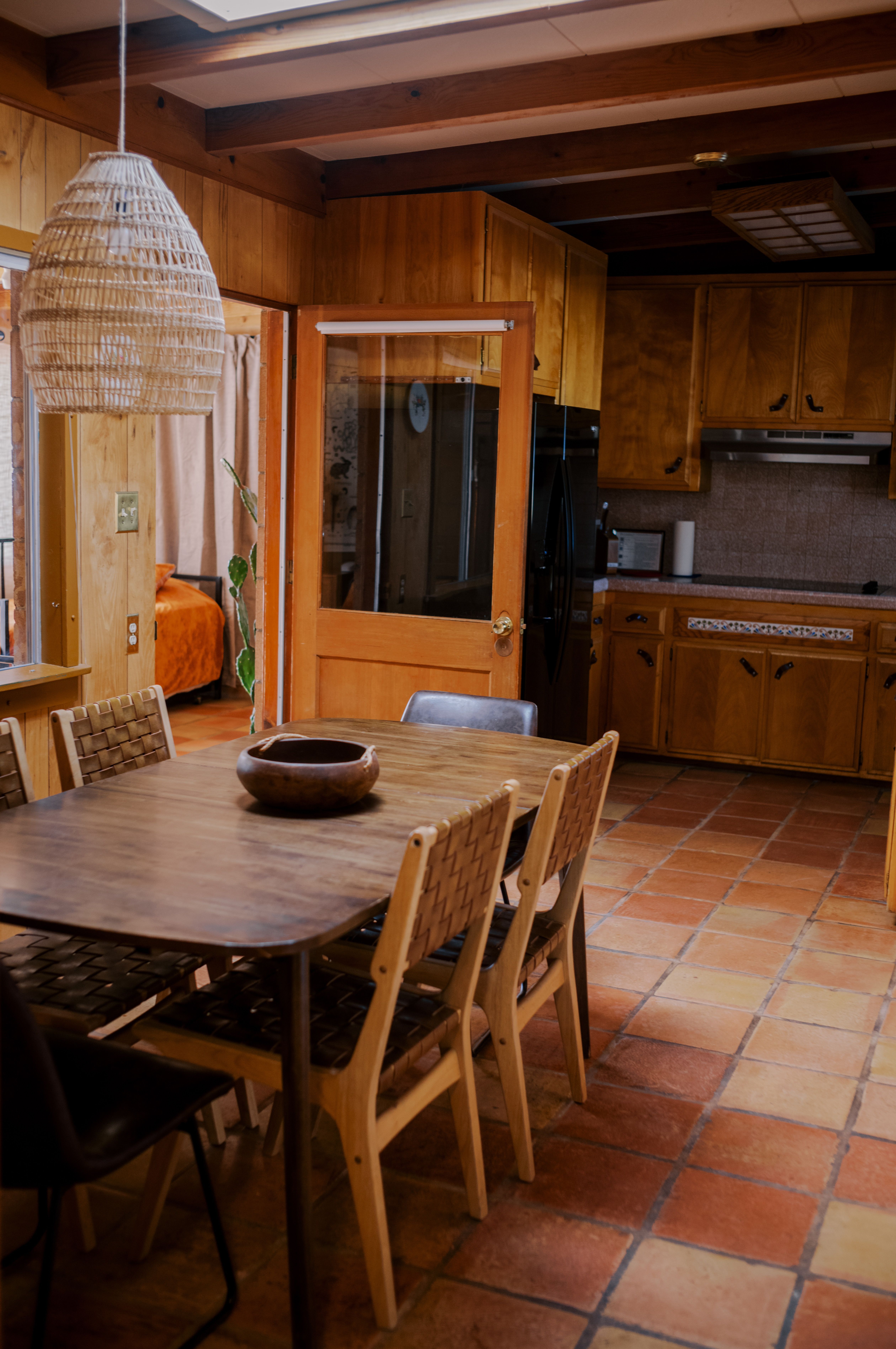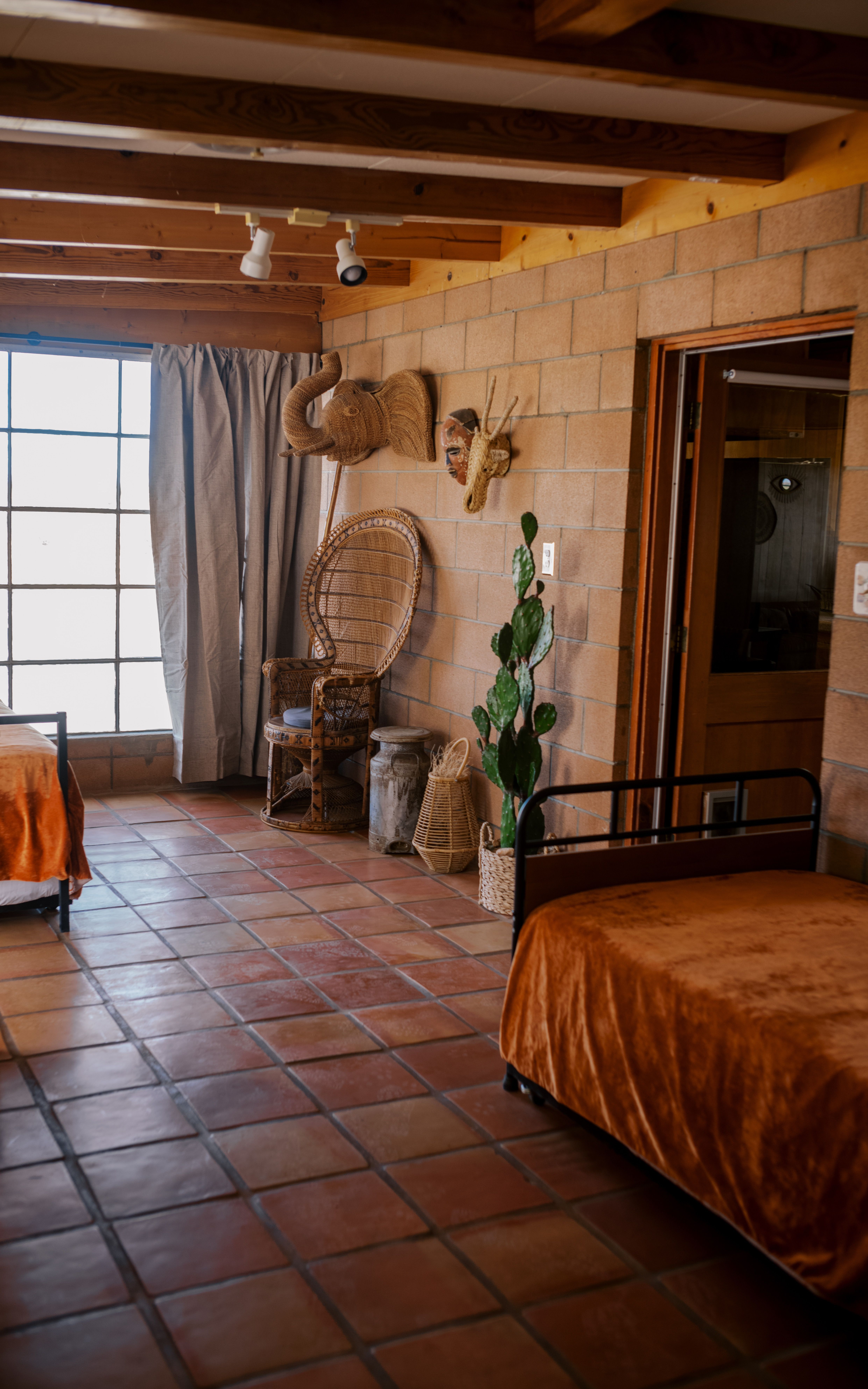 There are cacti, desert and mountain views aplenty in this fabulous home in the heart of the Yucca Valley. Just over six kilometres from the Joshua Tree Visitor Centres and nearby cafes, and even closer to the nearest desert museum, you get the full Joshua Tree experience without being completely cut off from civilisation. The house is set on a five-acre plot and decorated in the laid-back and comfortable style you'd expect. While the home is equipped with all the usual mod cons, it's retained plenty of quaint charm with wood-panelled walls, a record player and retro games console sitting alongside a lightning-fast internet connection and various streaming options. There's also a separate casita ideal for couples. We loved the wicker mirrors, wall hangings, hammock-style hanging seats and the peaceful, minimalist bedroom interiors. Outside you'll find a wood-fired hot tub ideal for chilly evenings and a pink stucco in-ground pool for afternoons. When you're not neck-deep in water, the wooden seating area and firepit is a perfect place to admire the pink and red sunset skies.